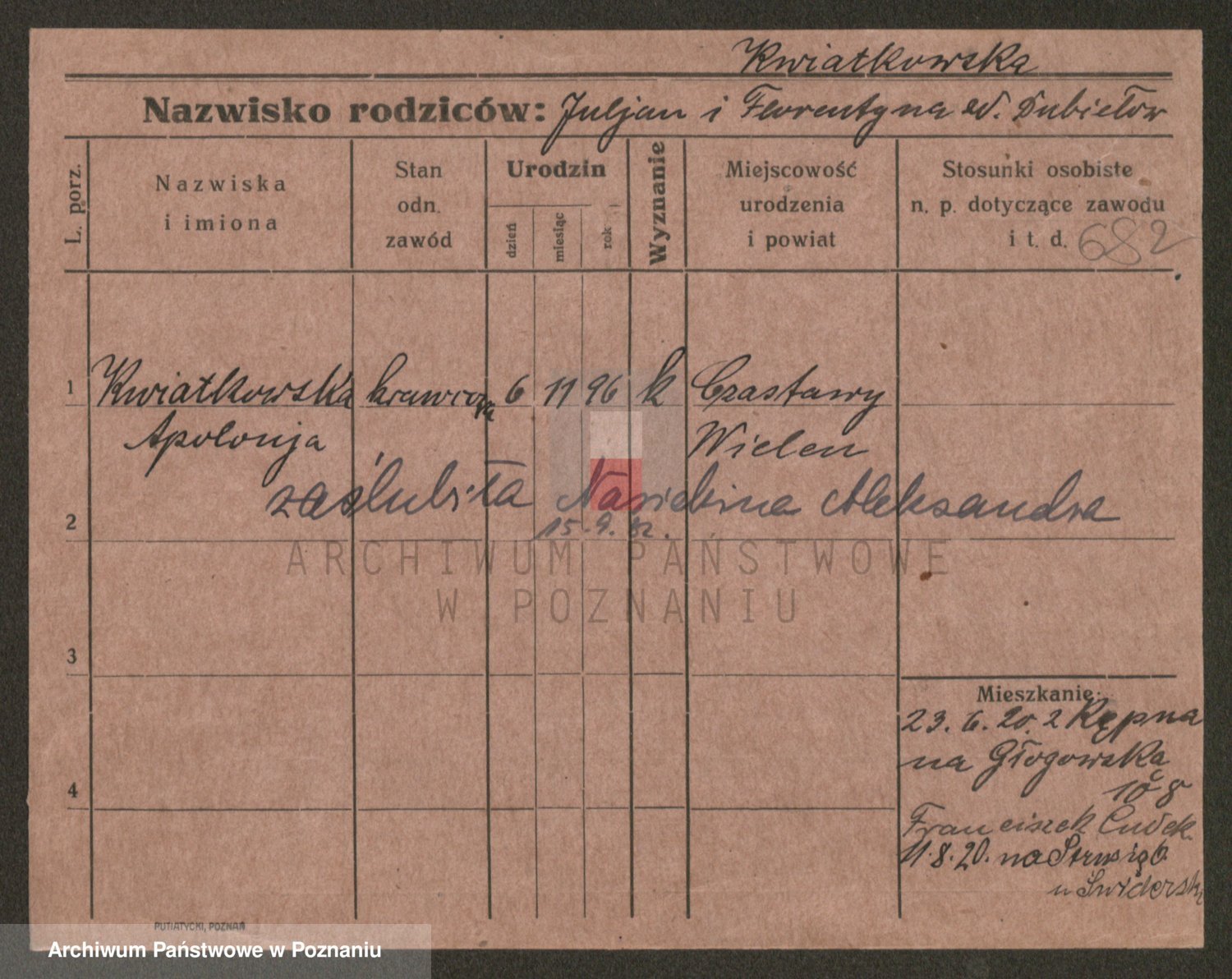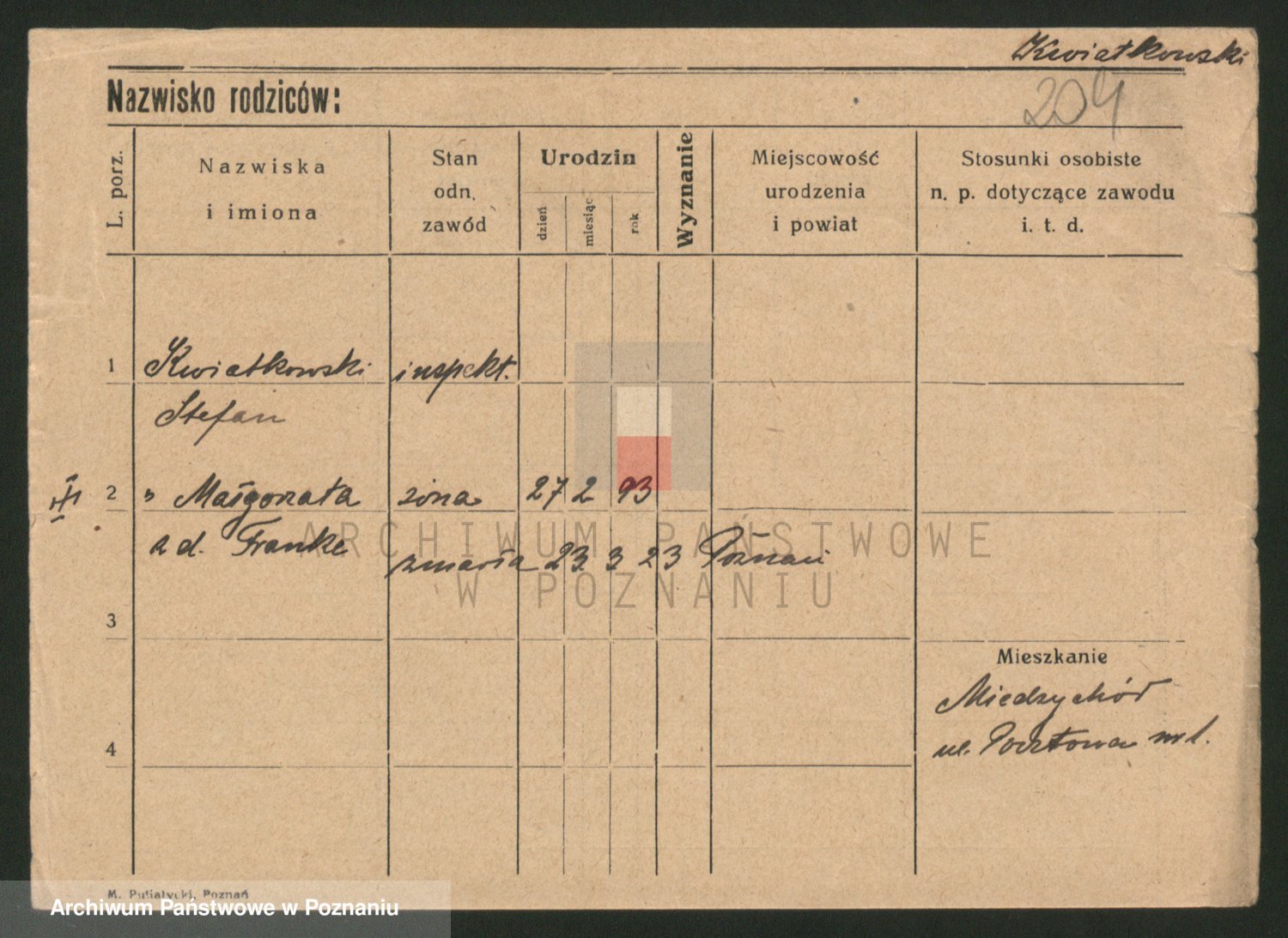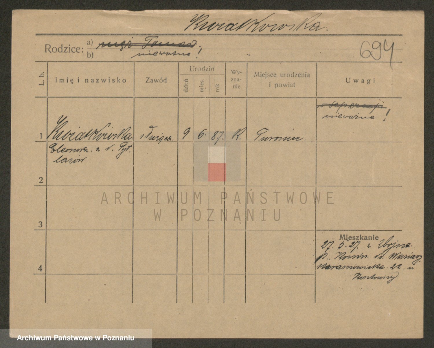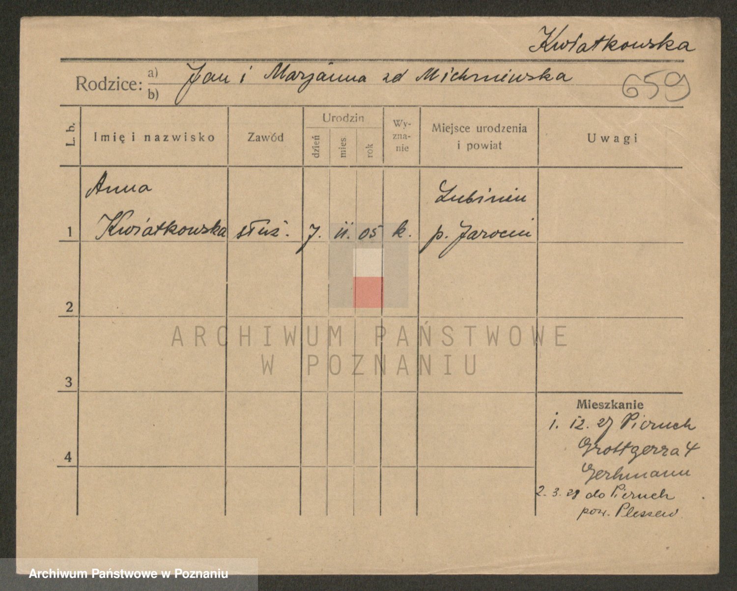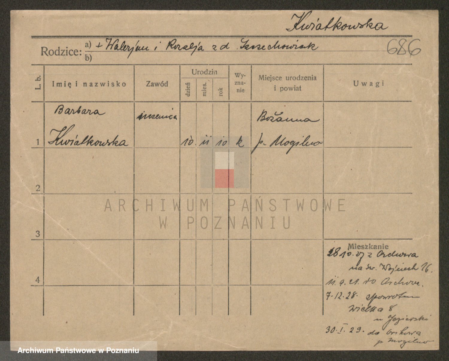 Kwiatkowski z d. Dembinska, Marja