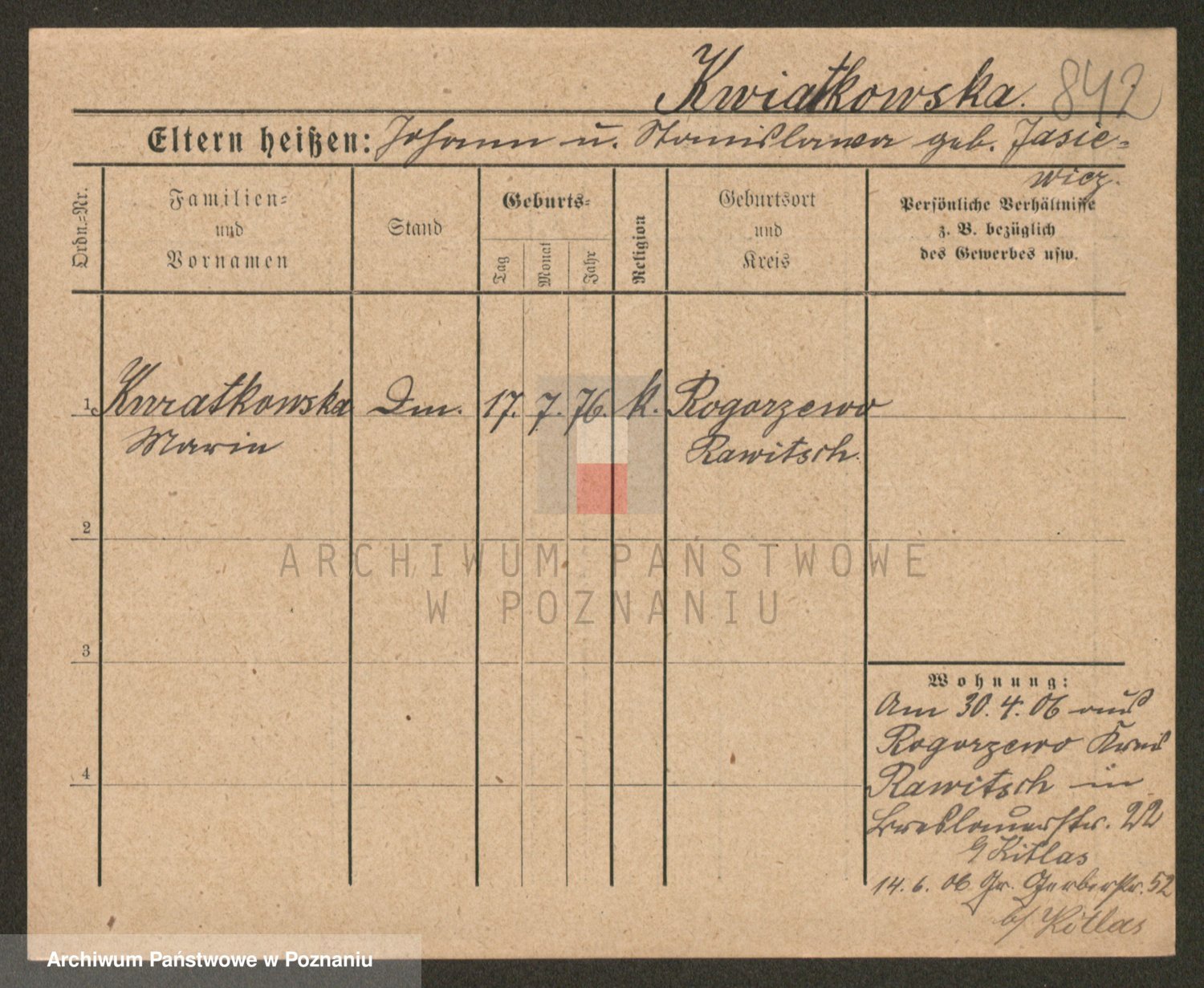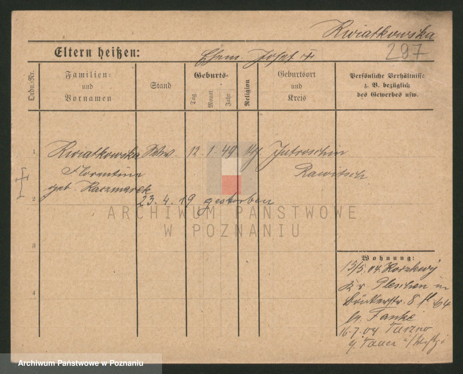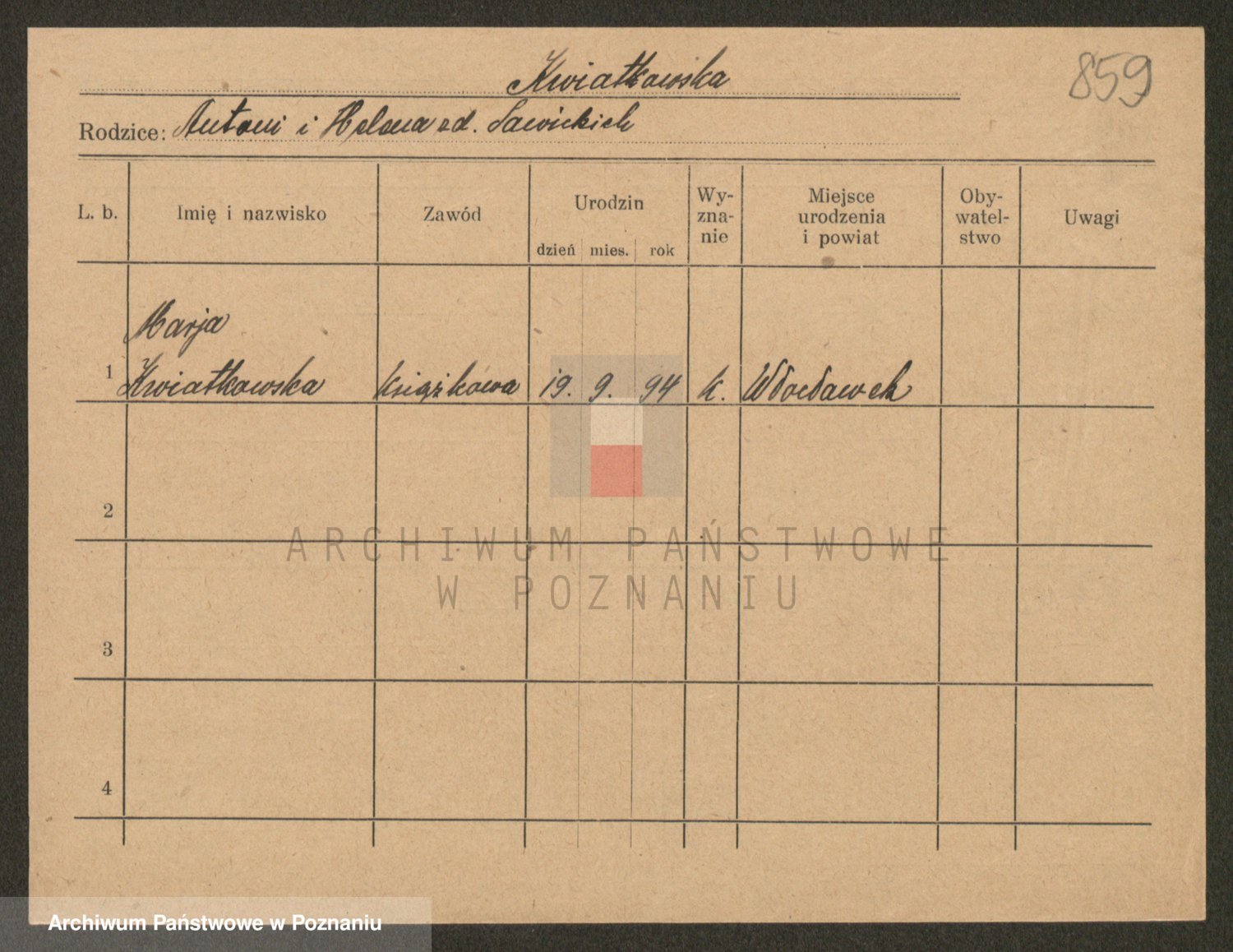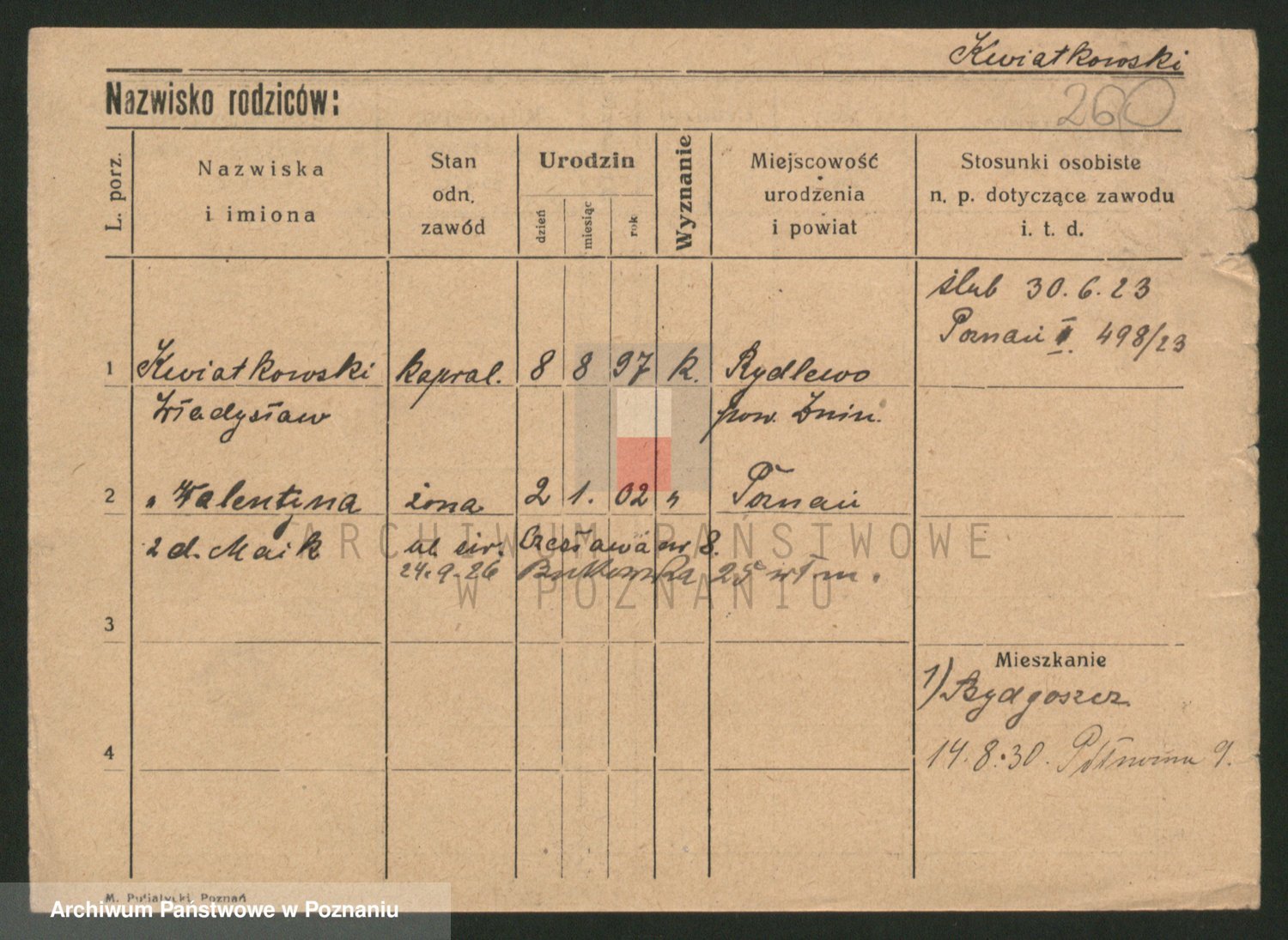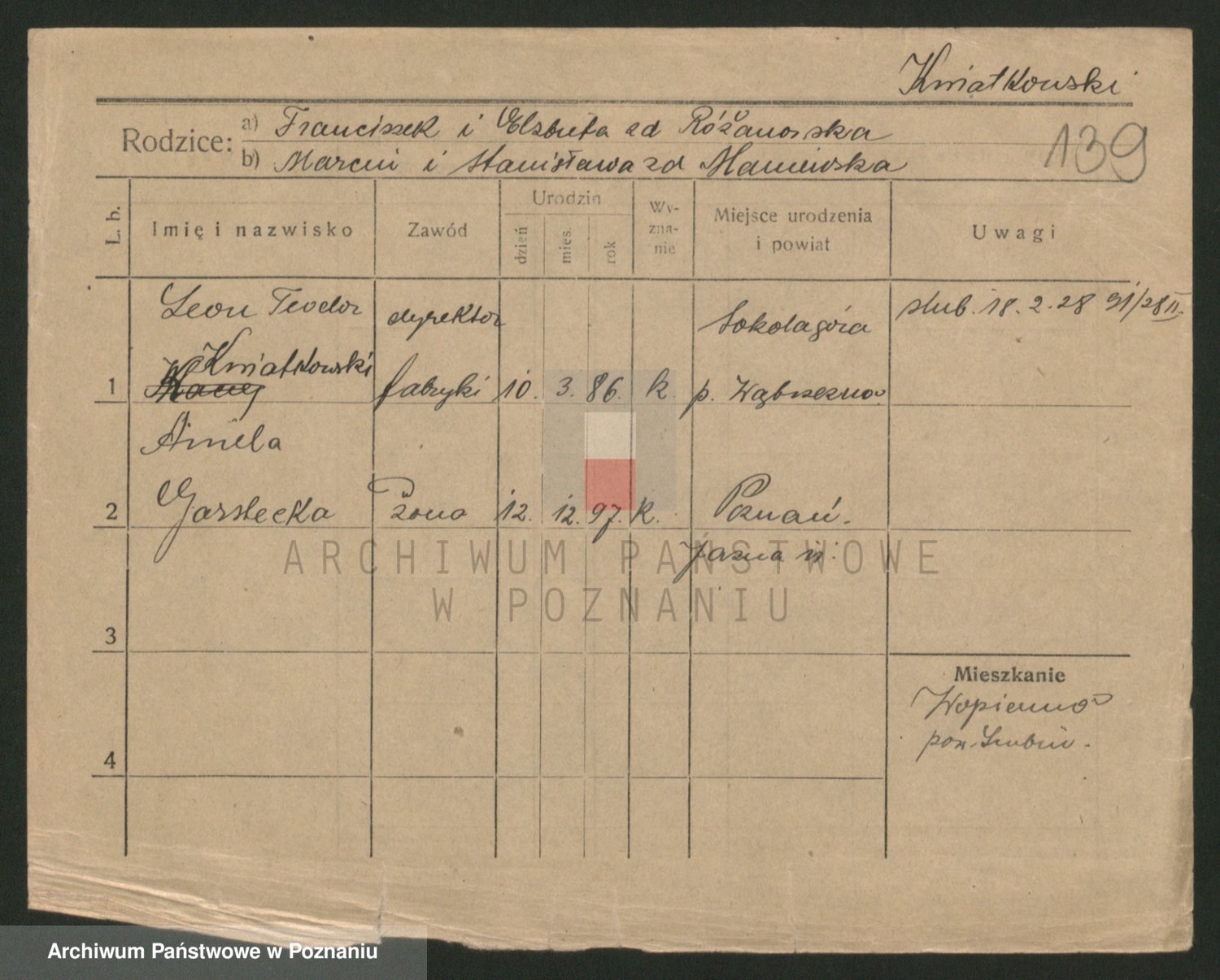 Kwiatkowski z d. Dembinska, Marja
