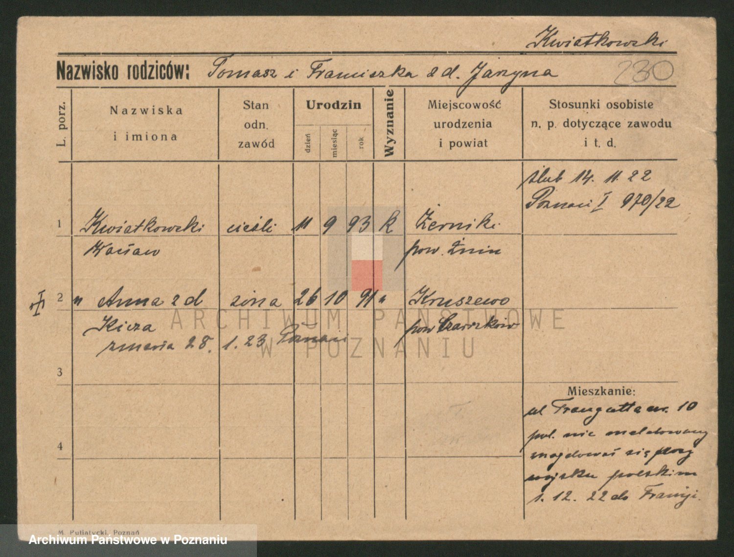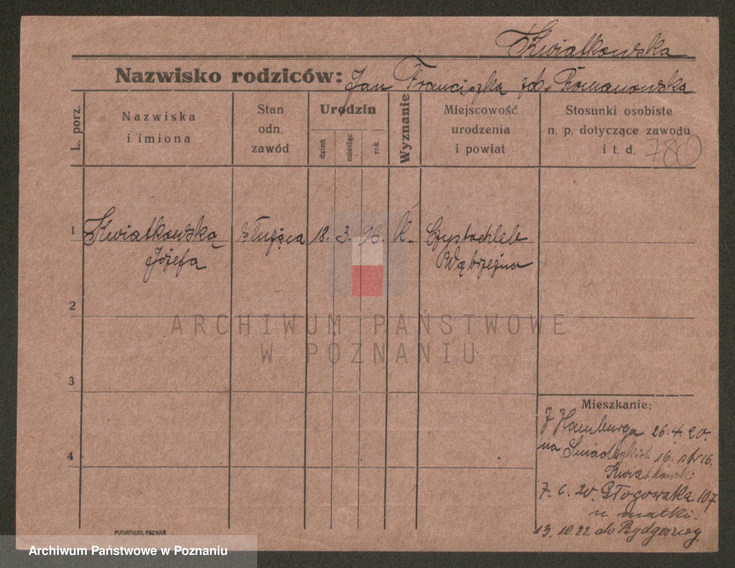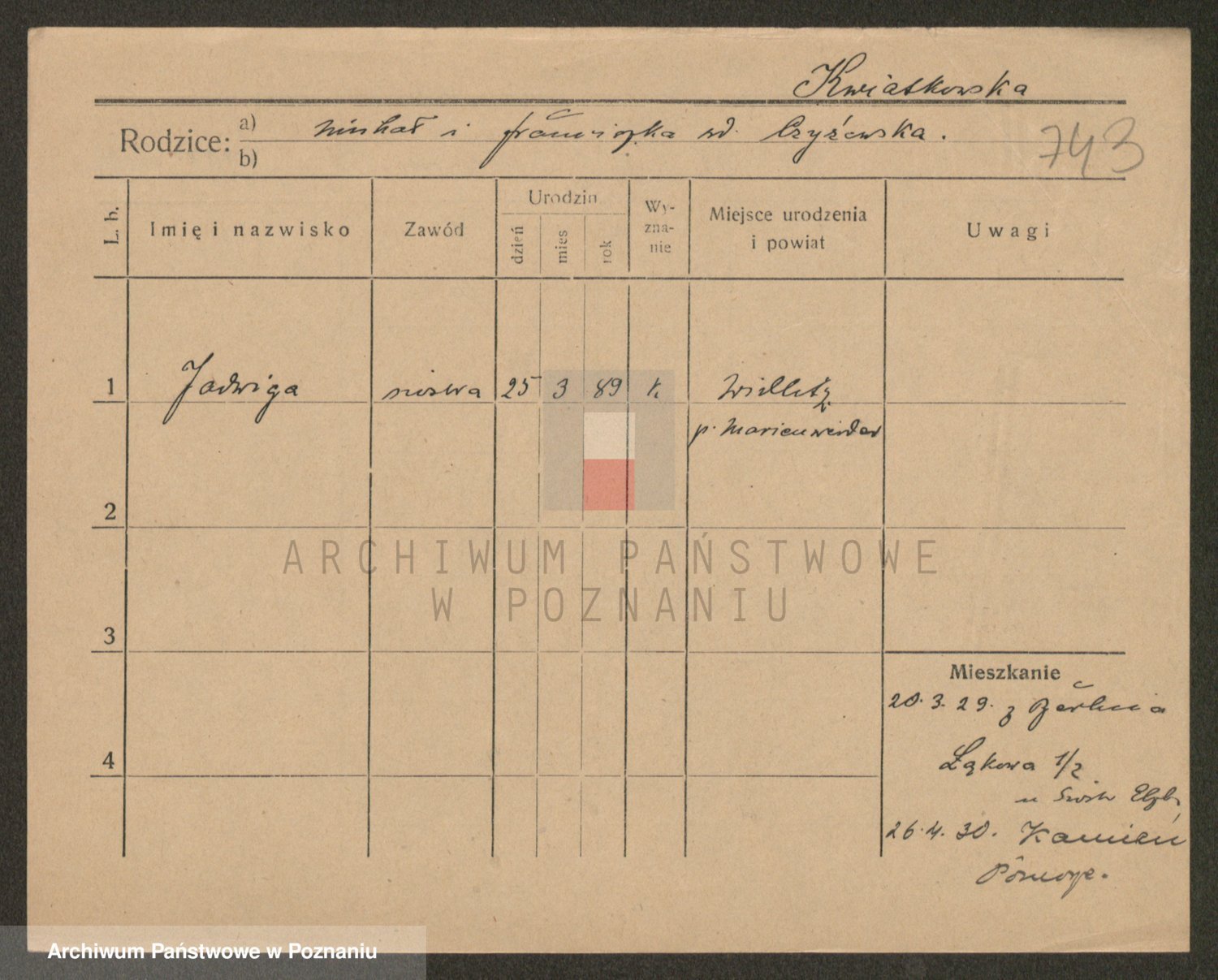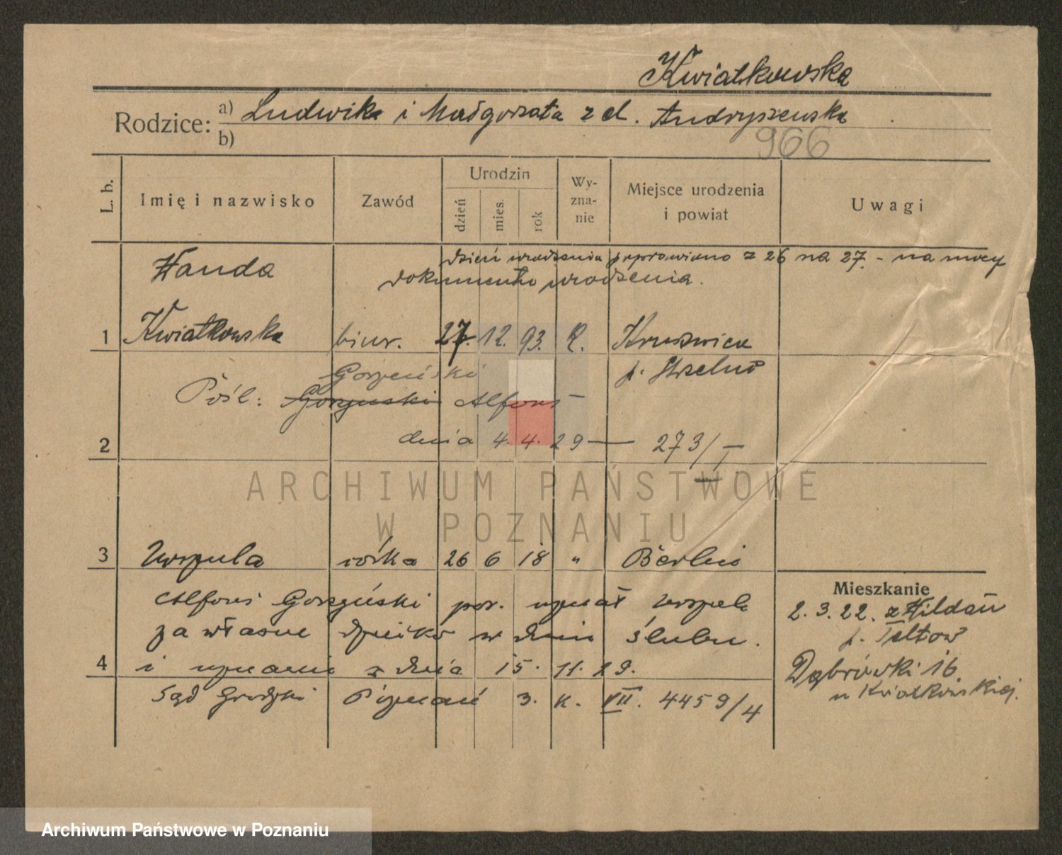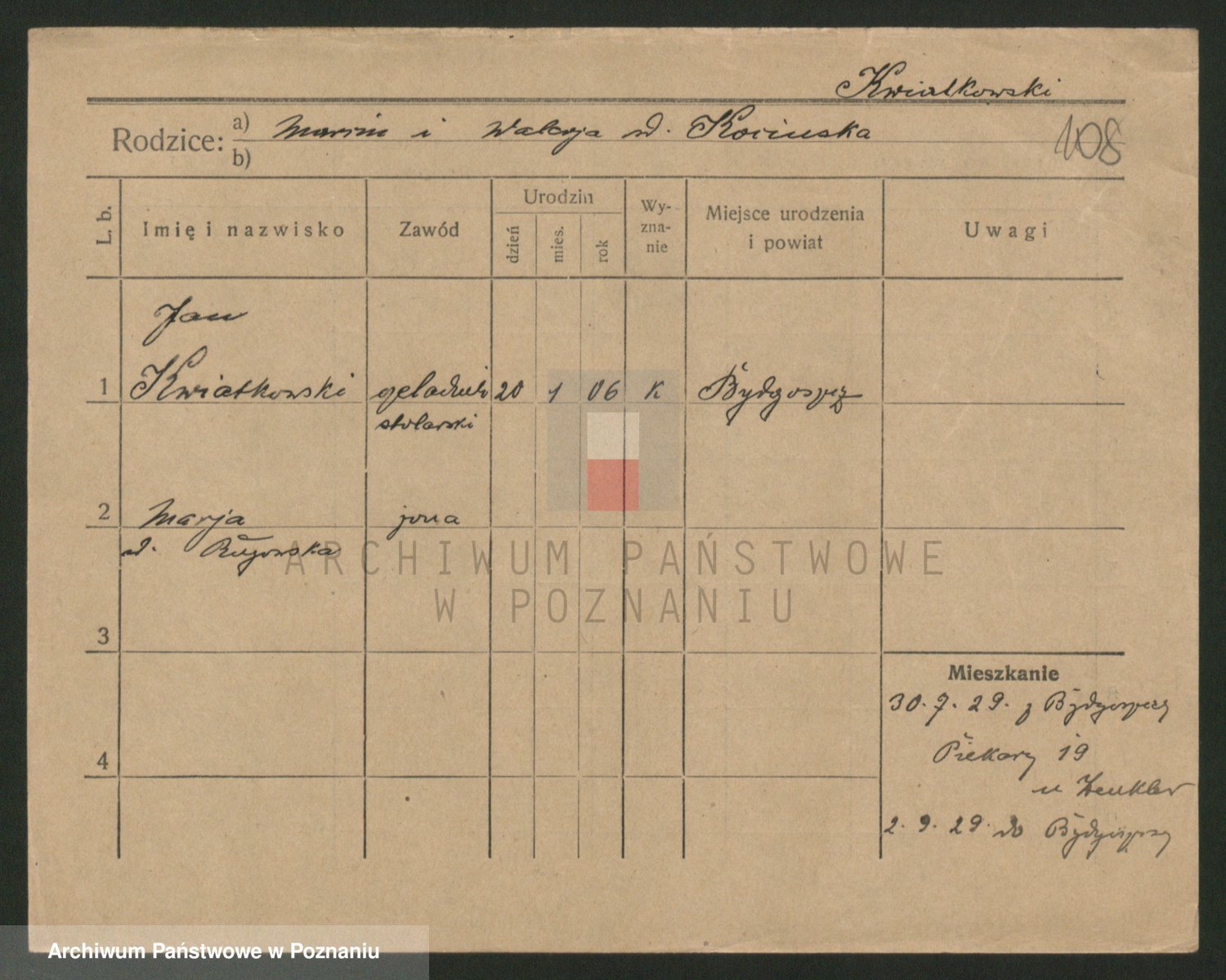 Kwiatkowski z d. Dembinska, Marja