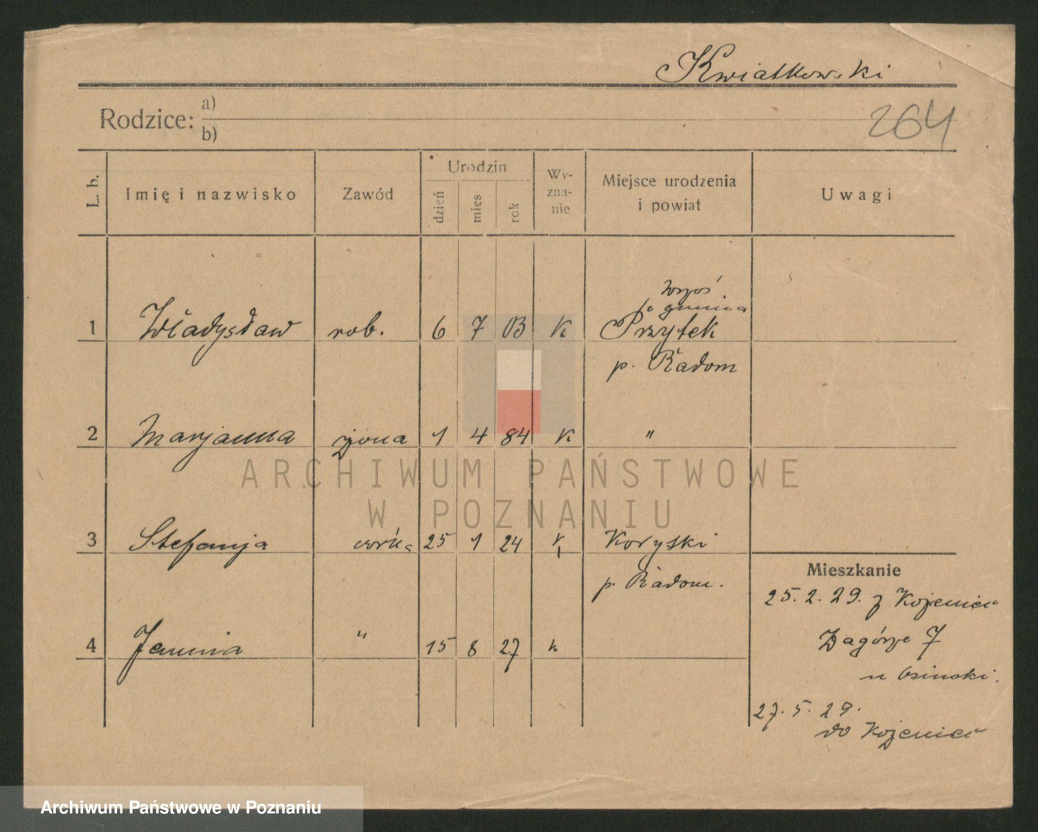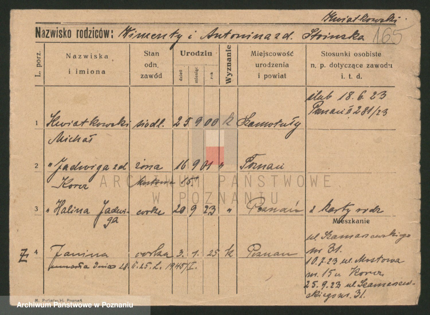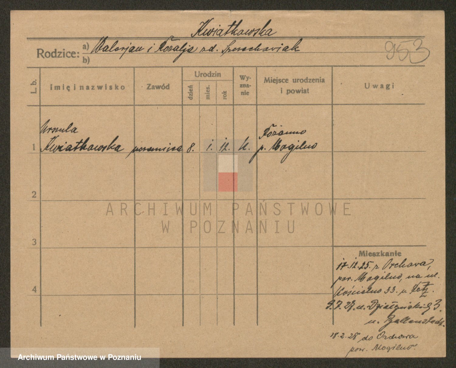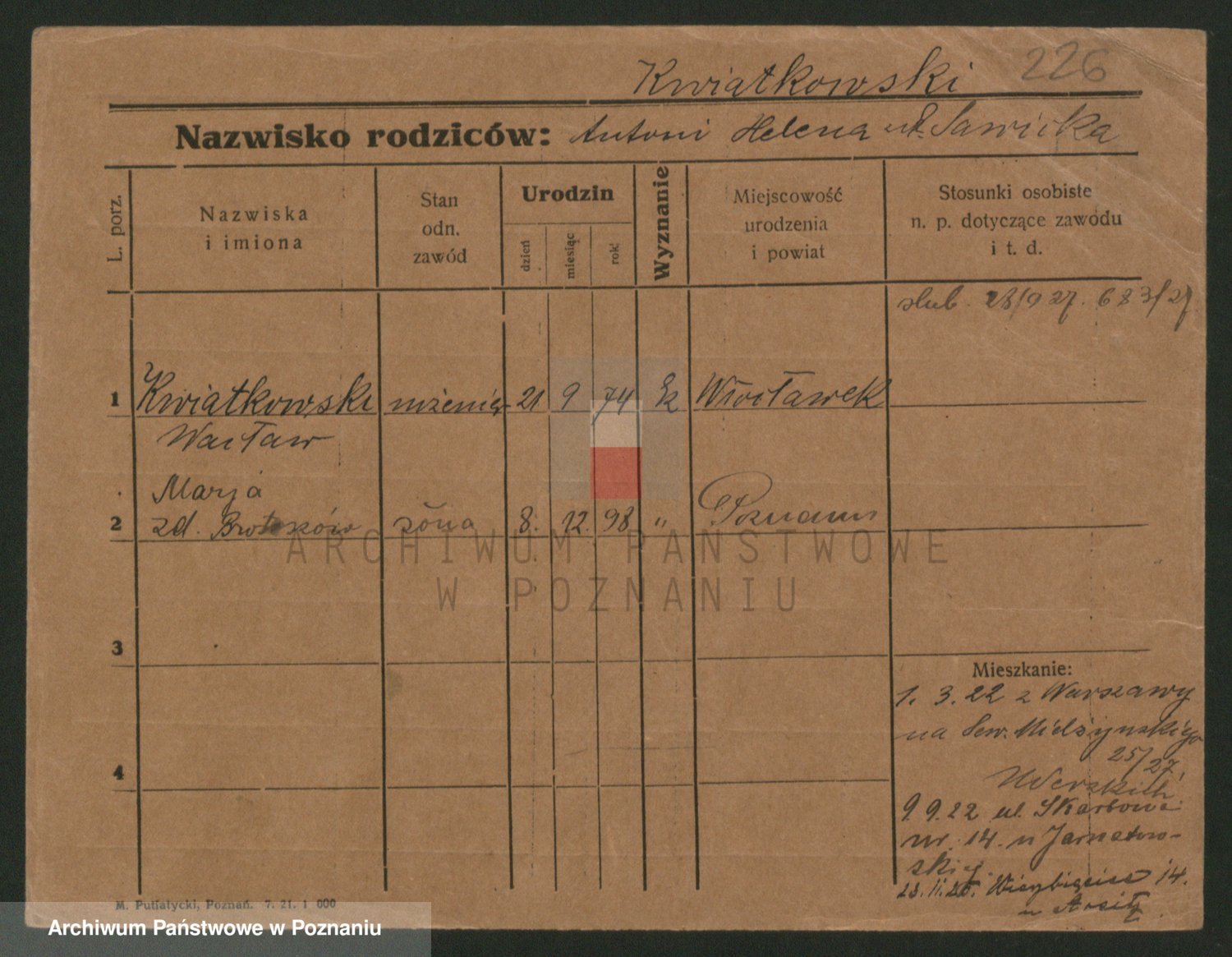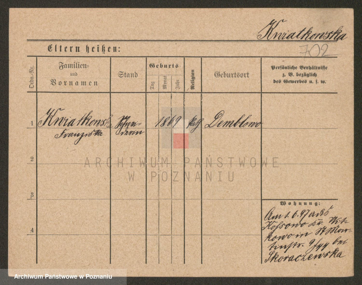 Kwiatkowski z d. Dembinska, Marja