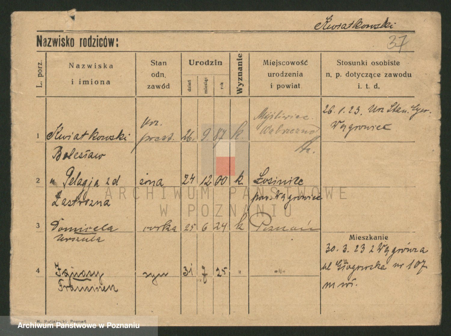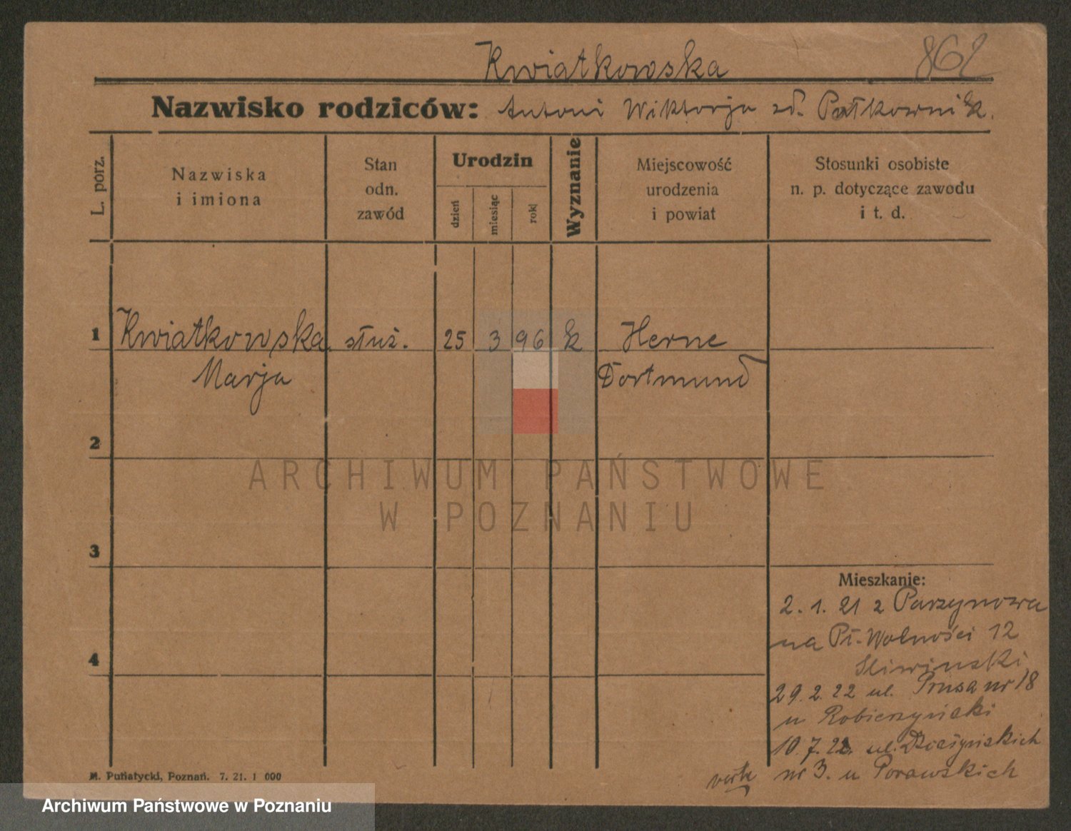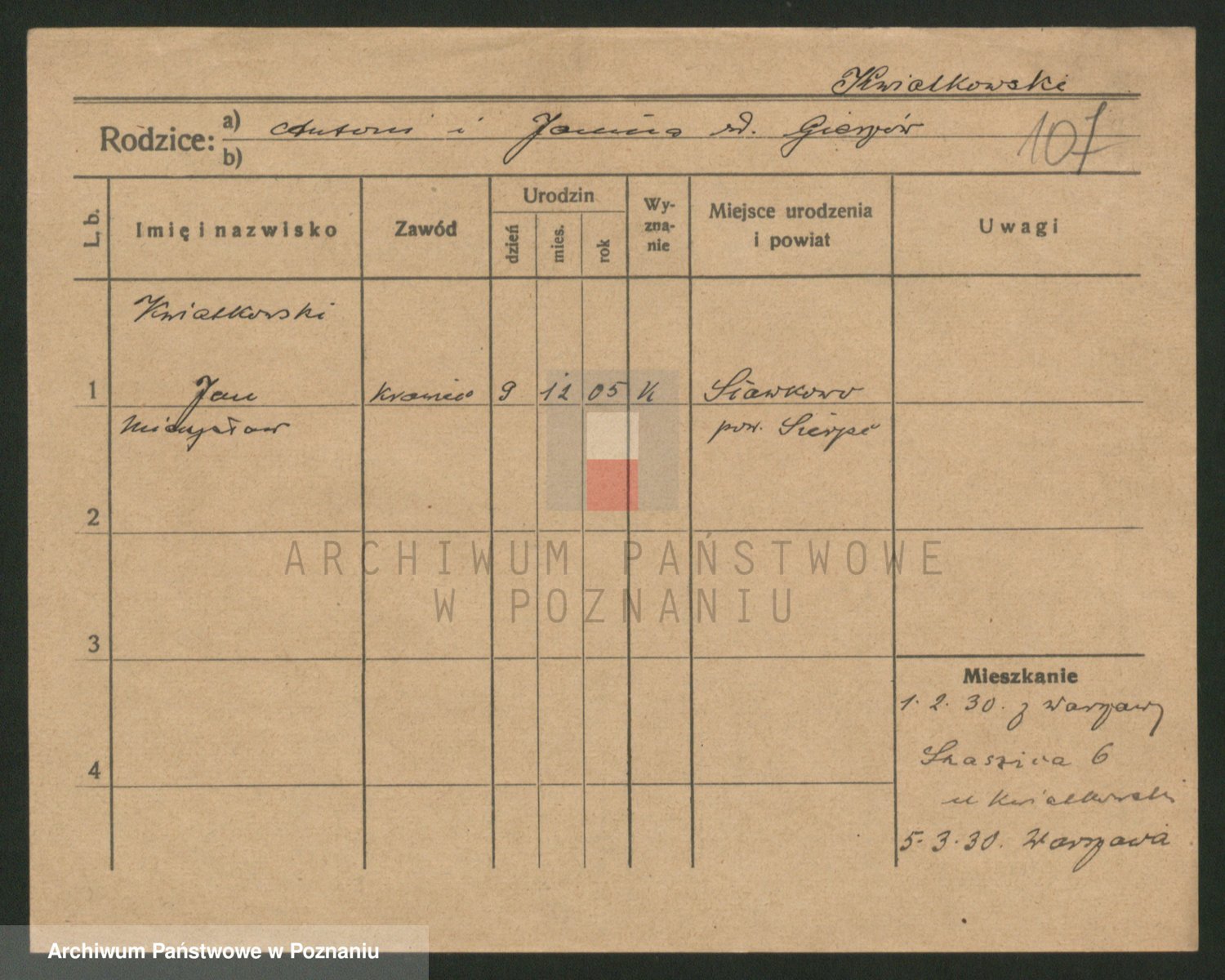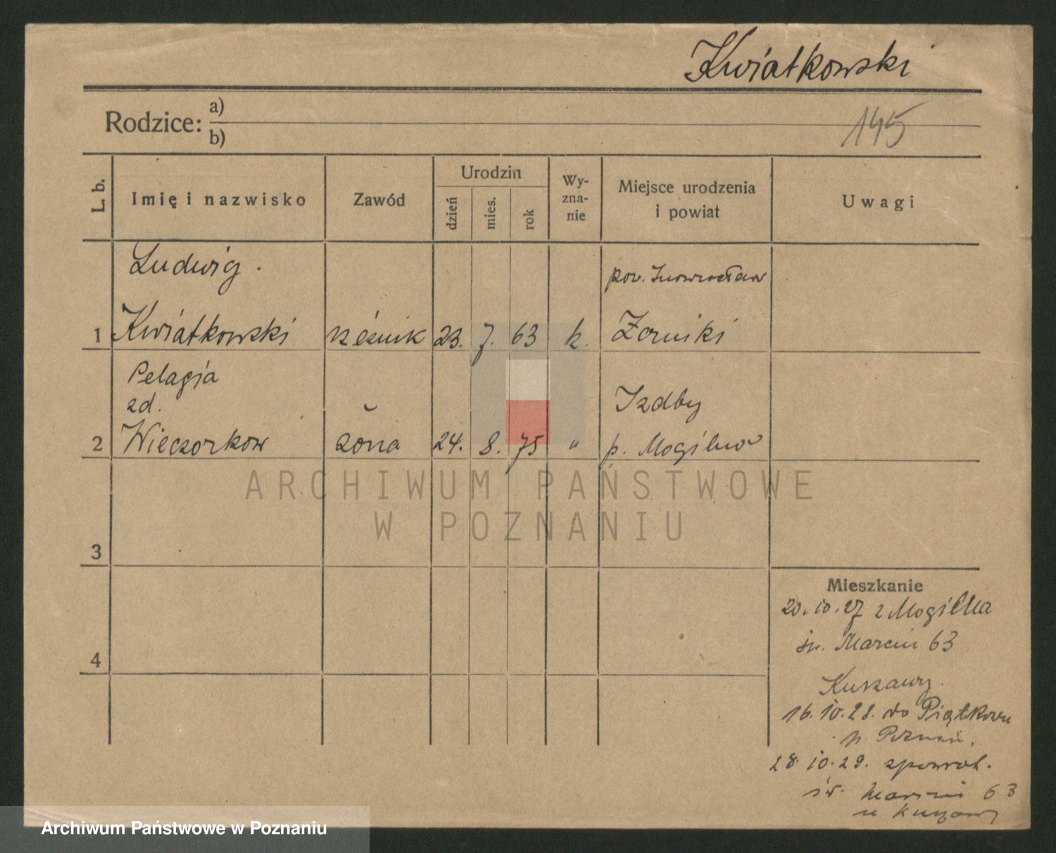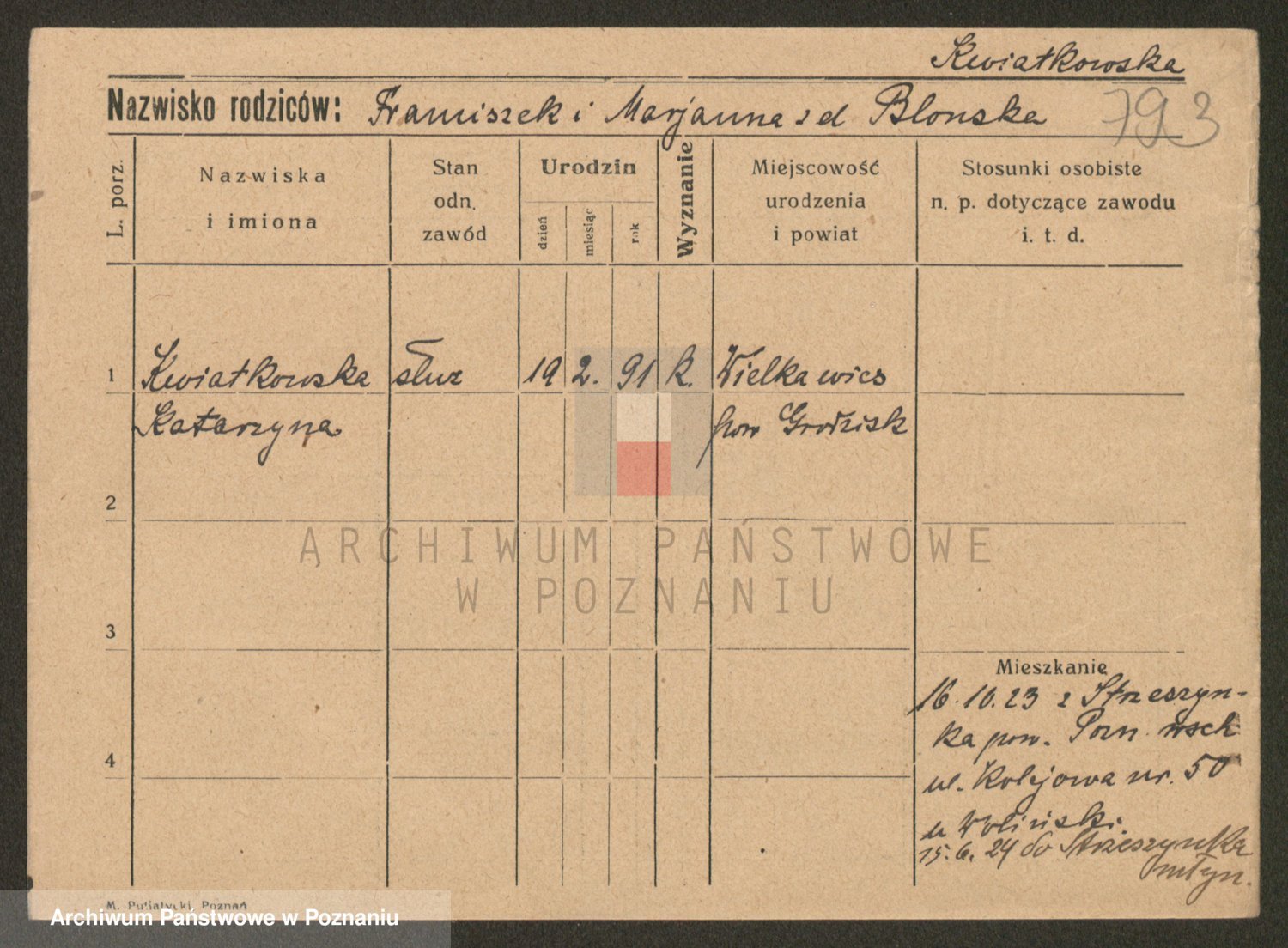 Kwiatkowski z d. Dembinska, Marja