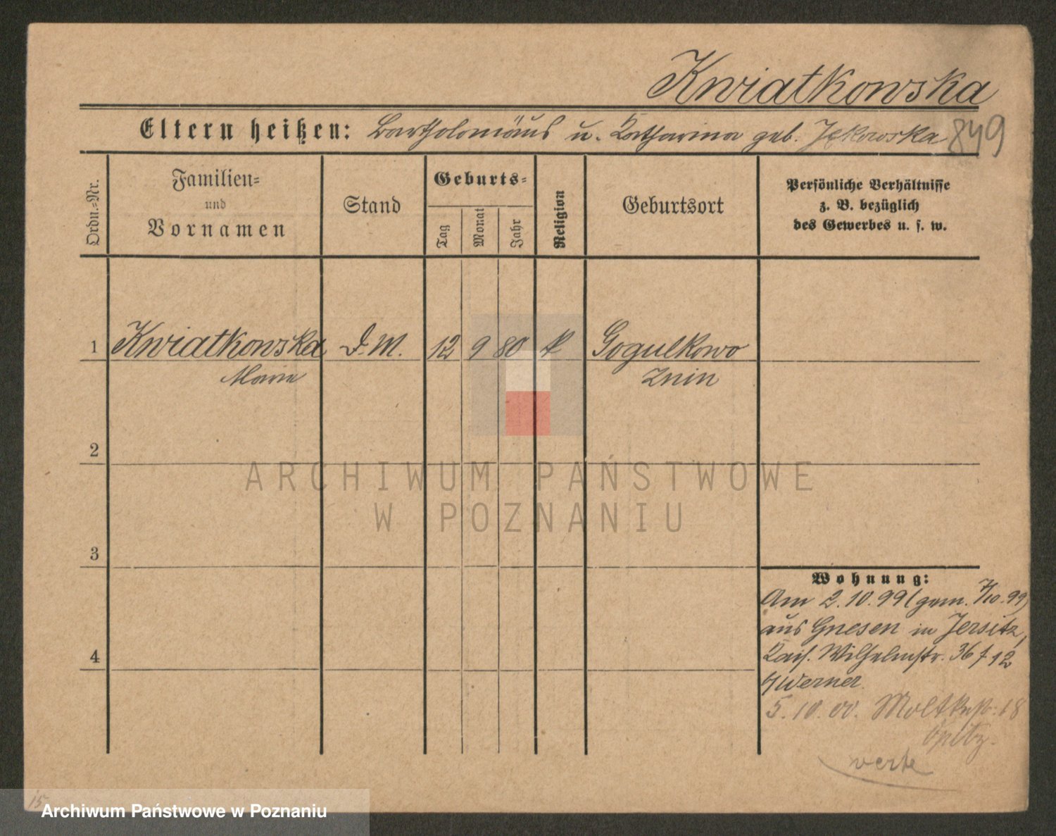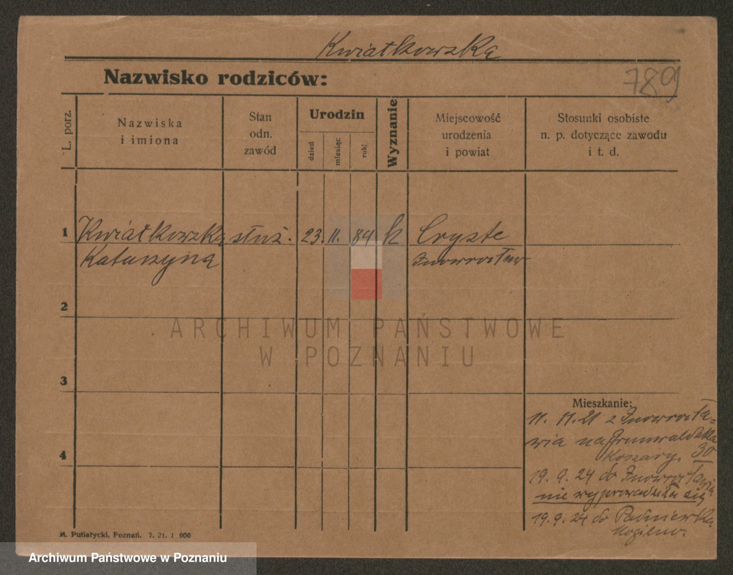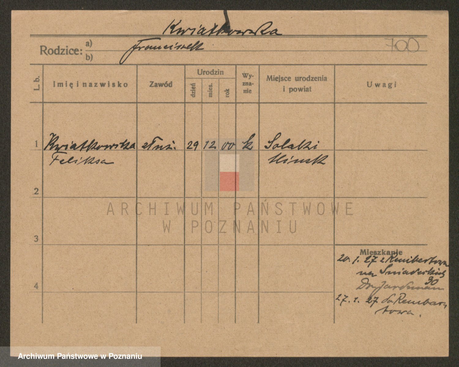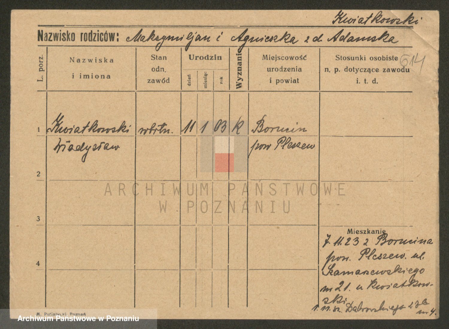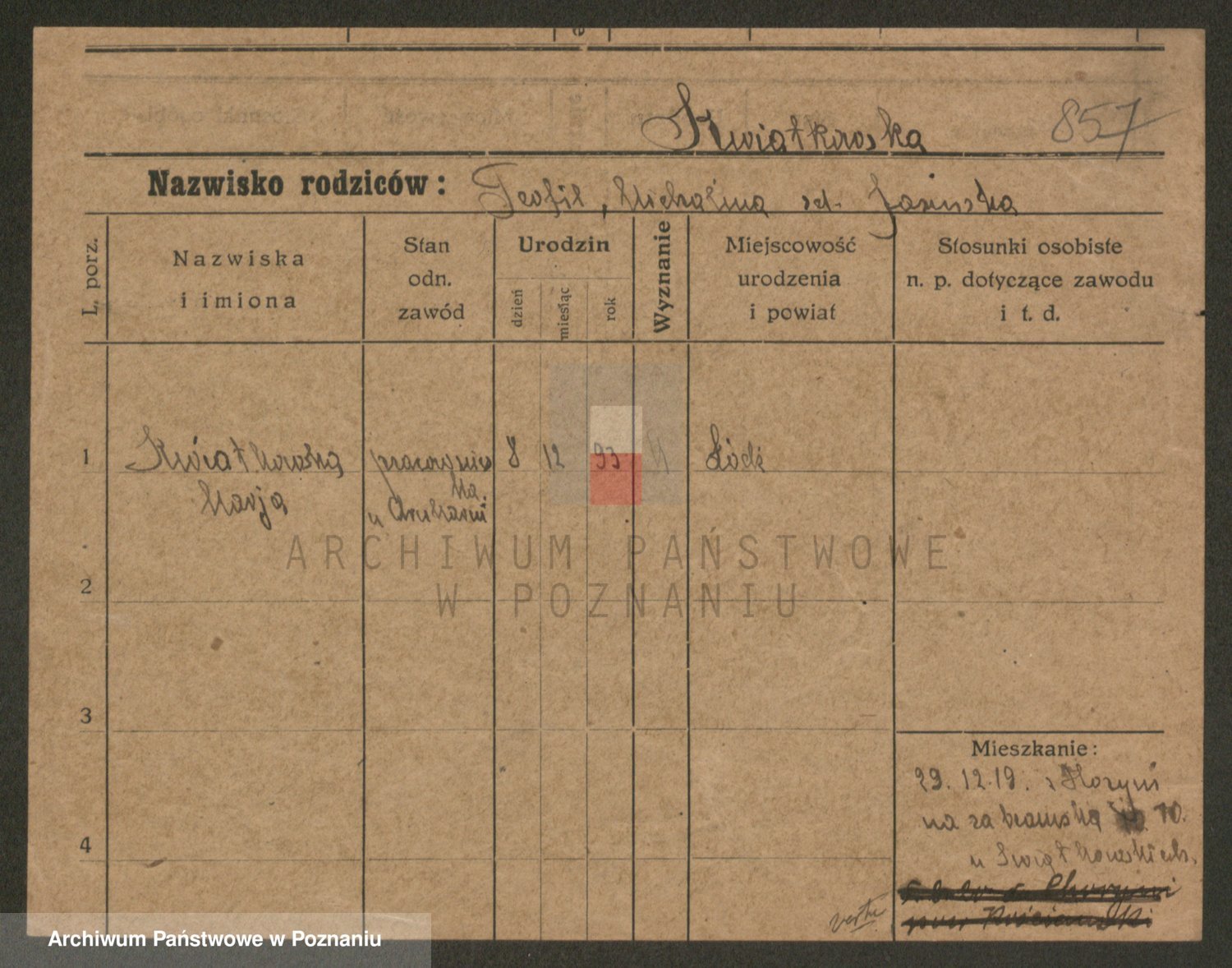 Kwiatkowski z d. Dembinska, Marja
