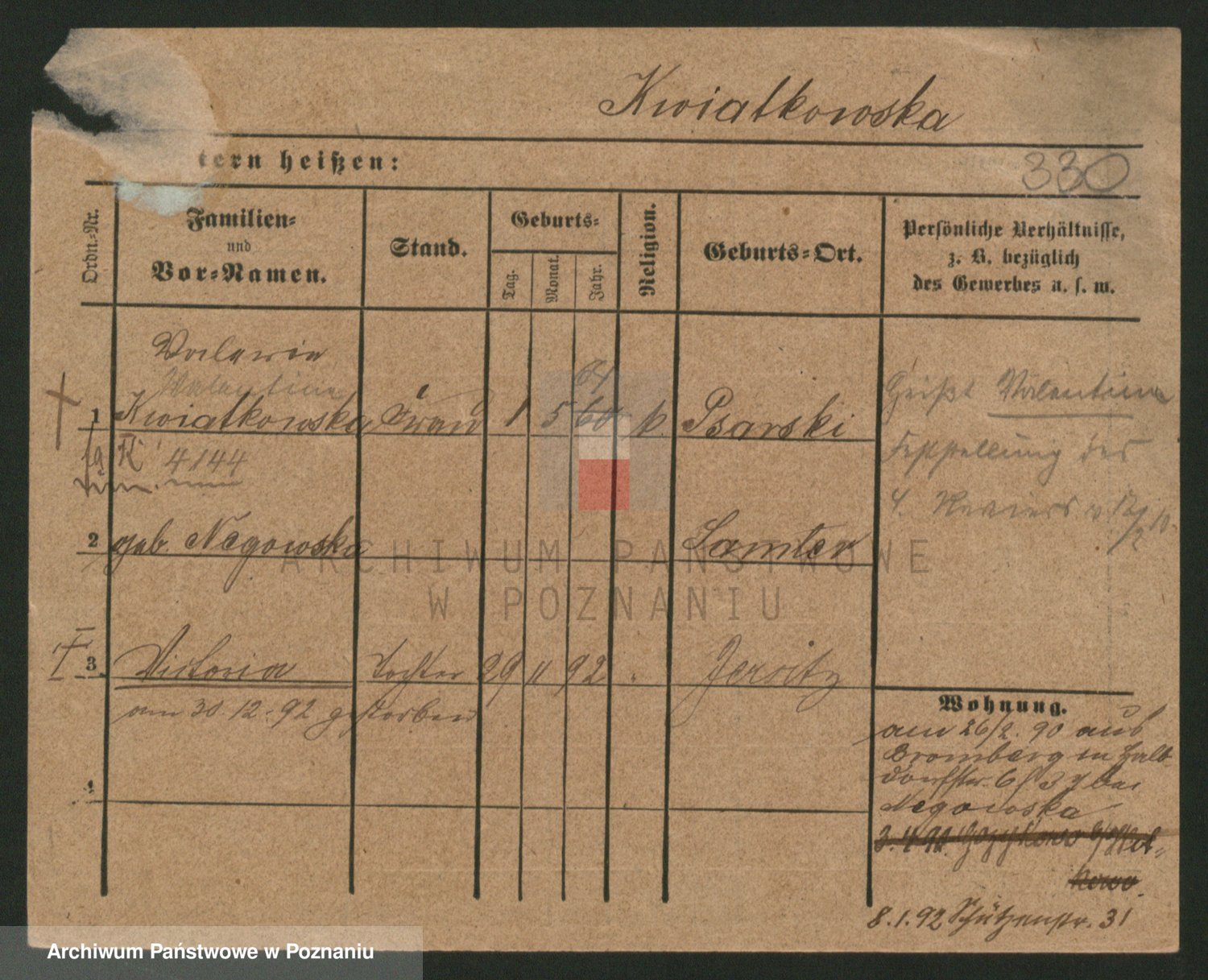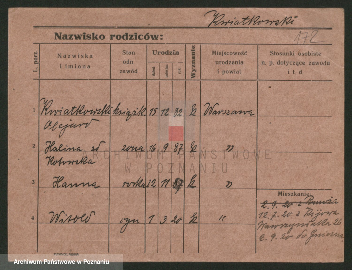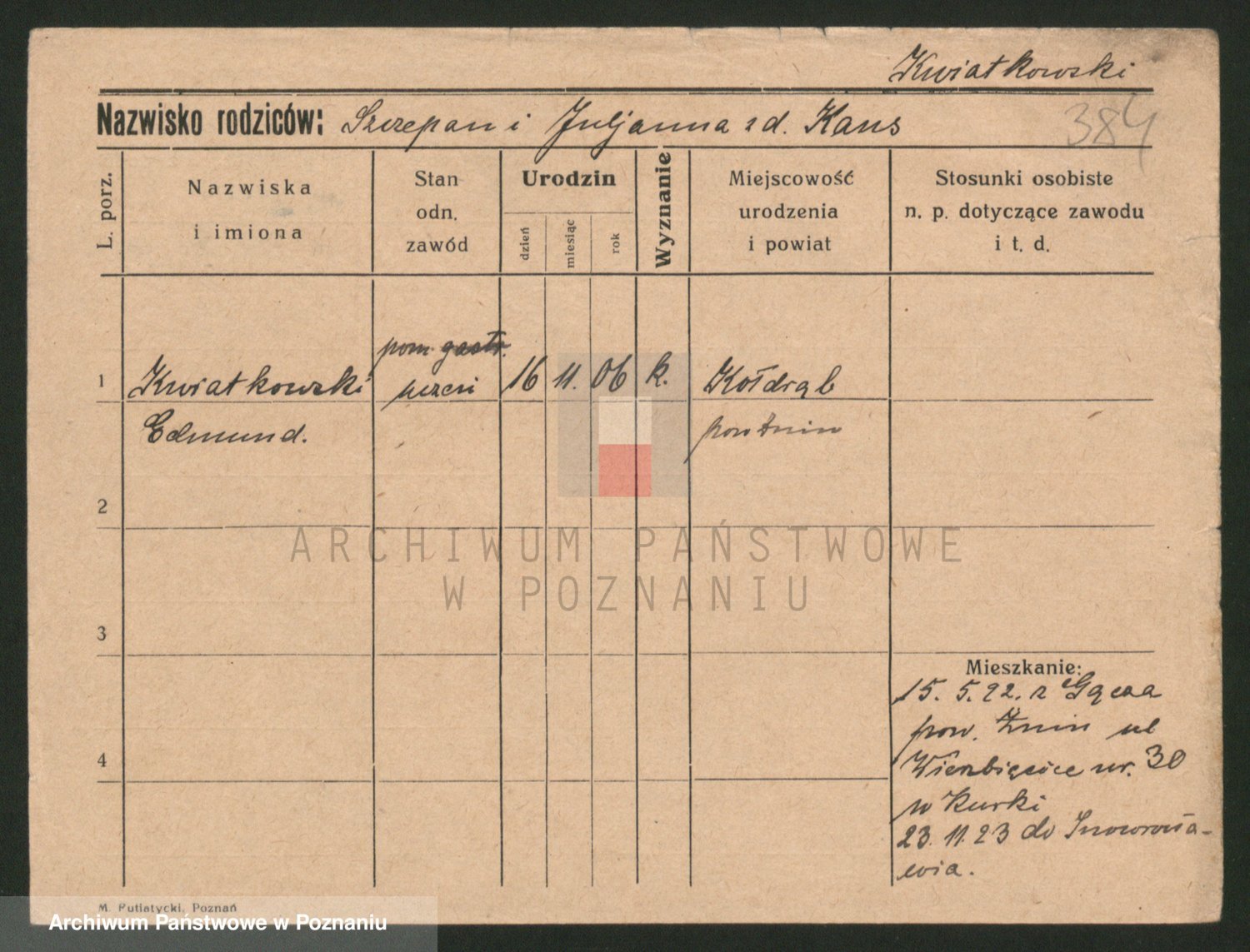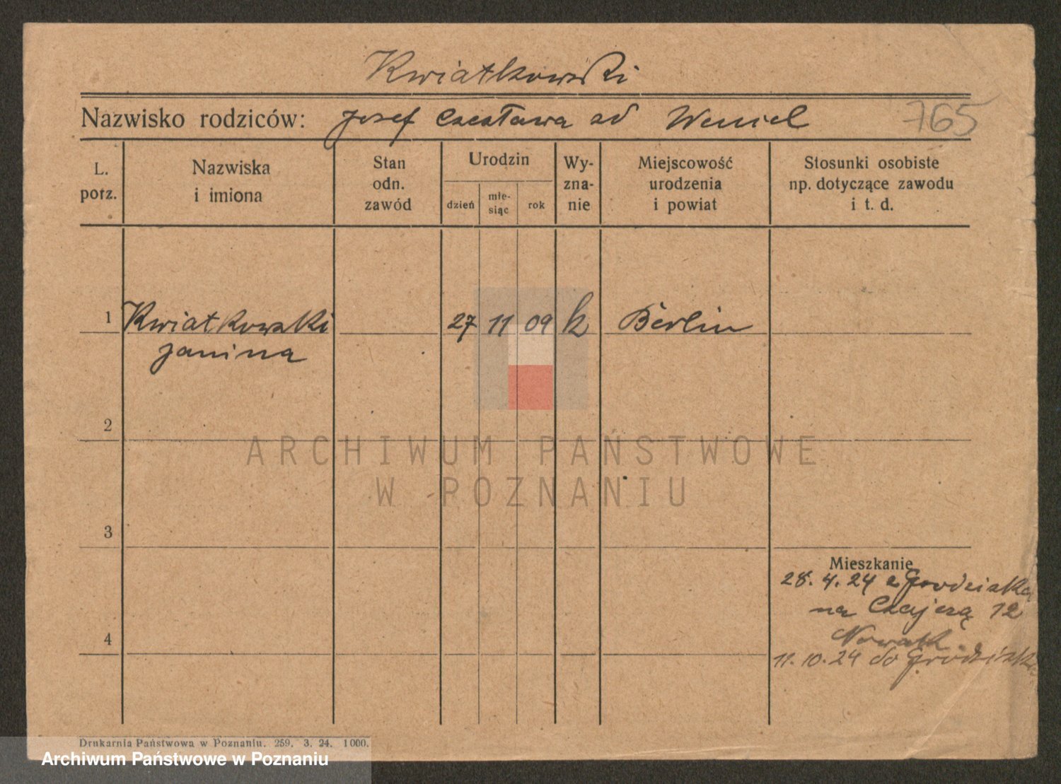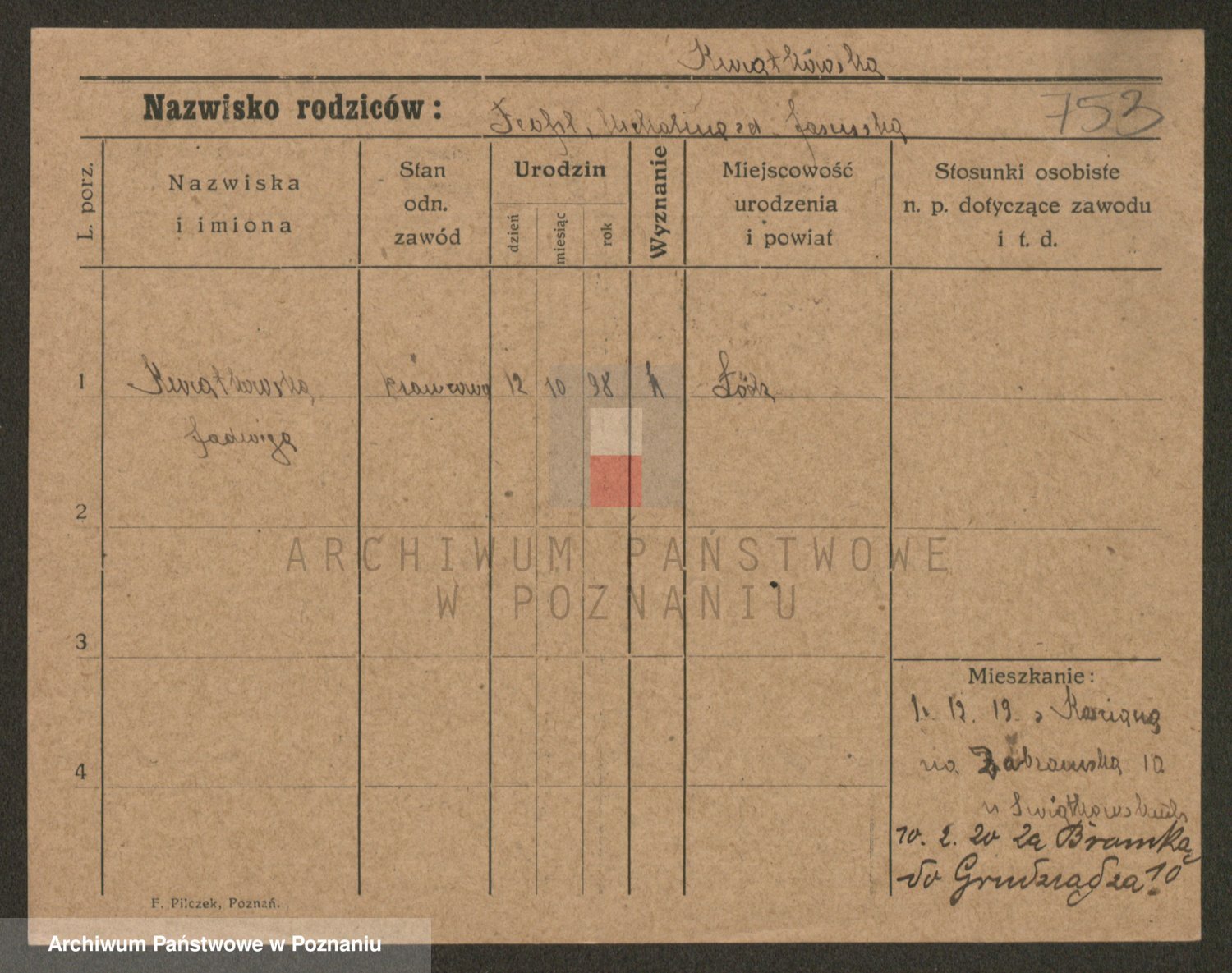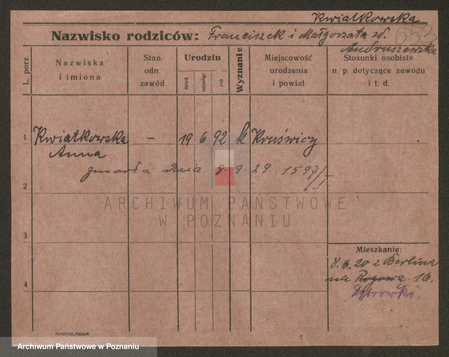 Kwiatkowski z d. Dembinska, Marja