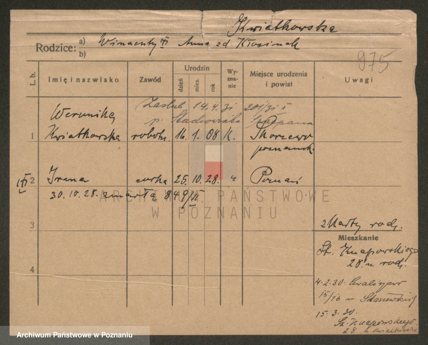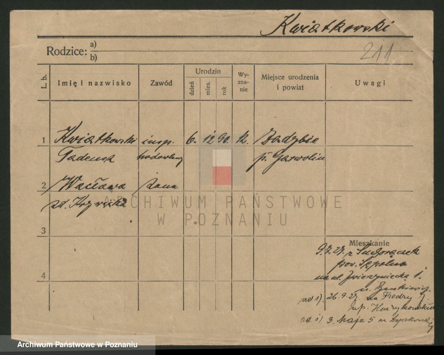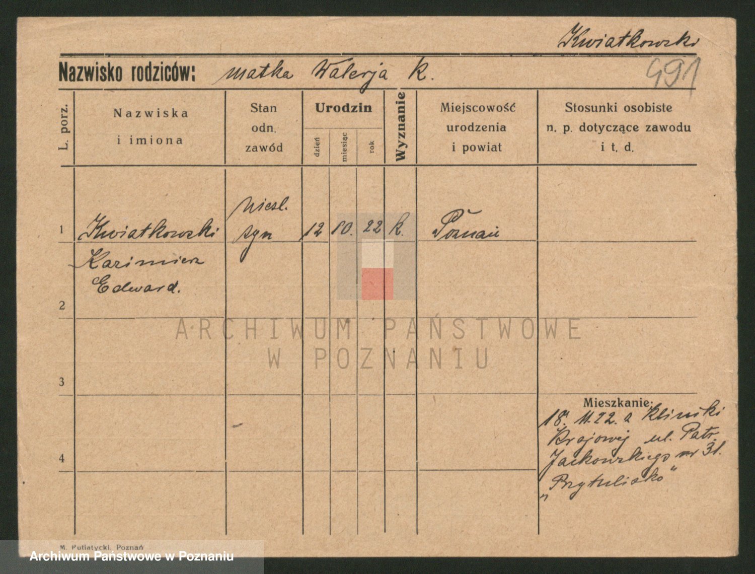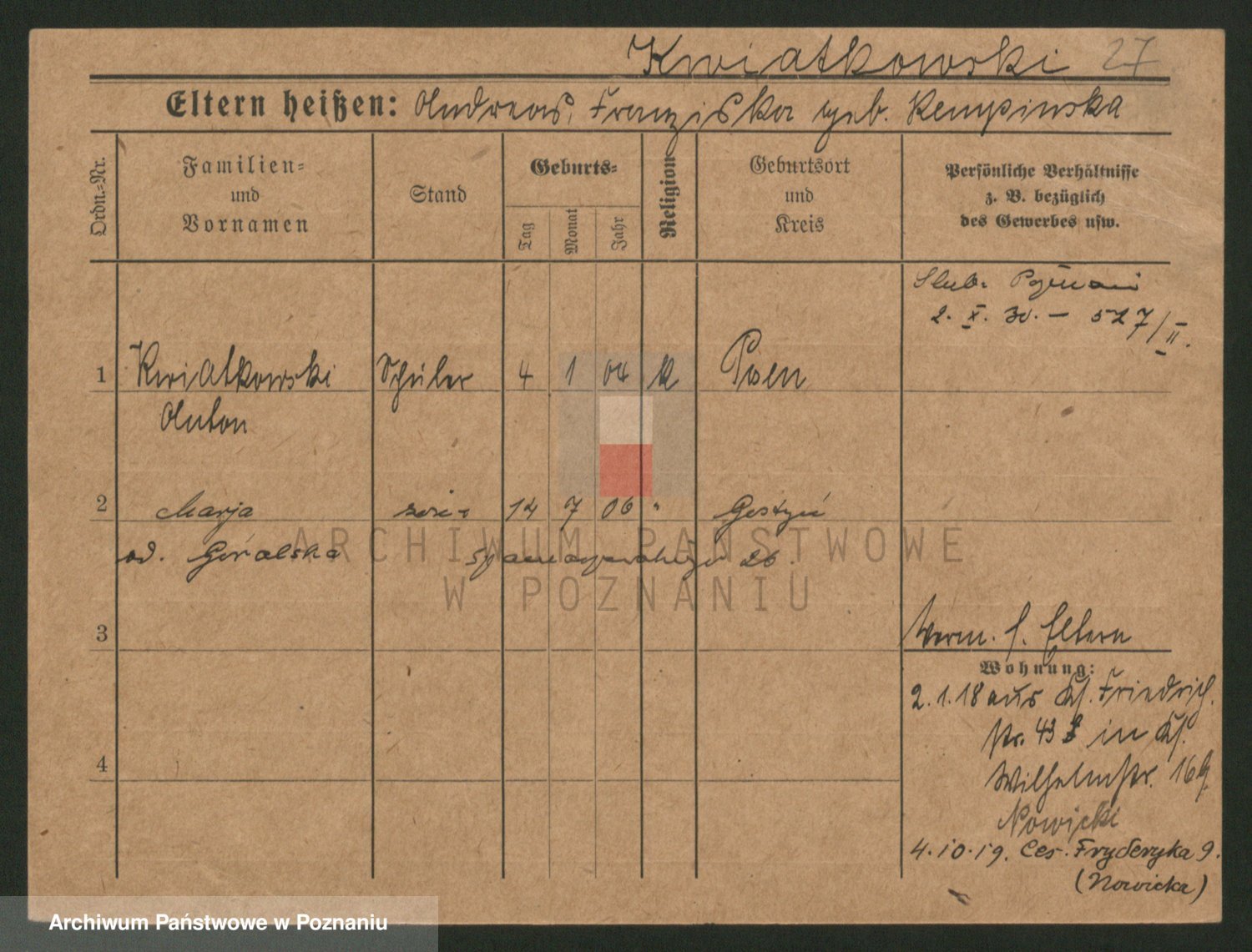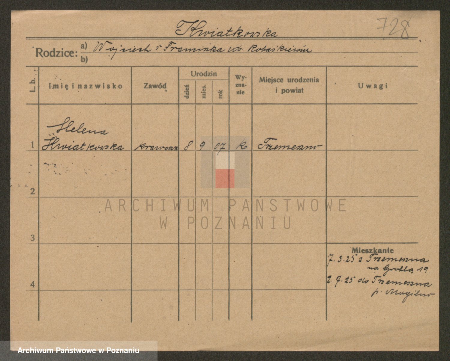 Kwiatkowski z d. Dembinska, Marja