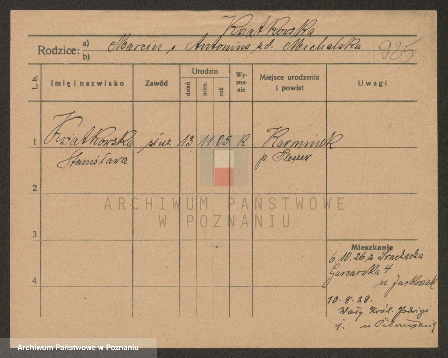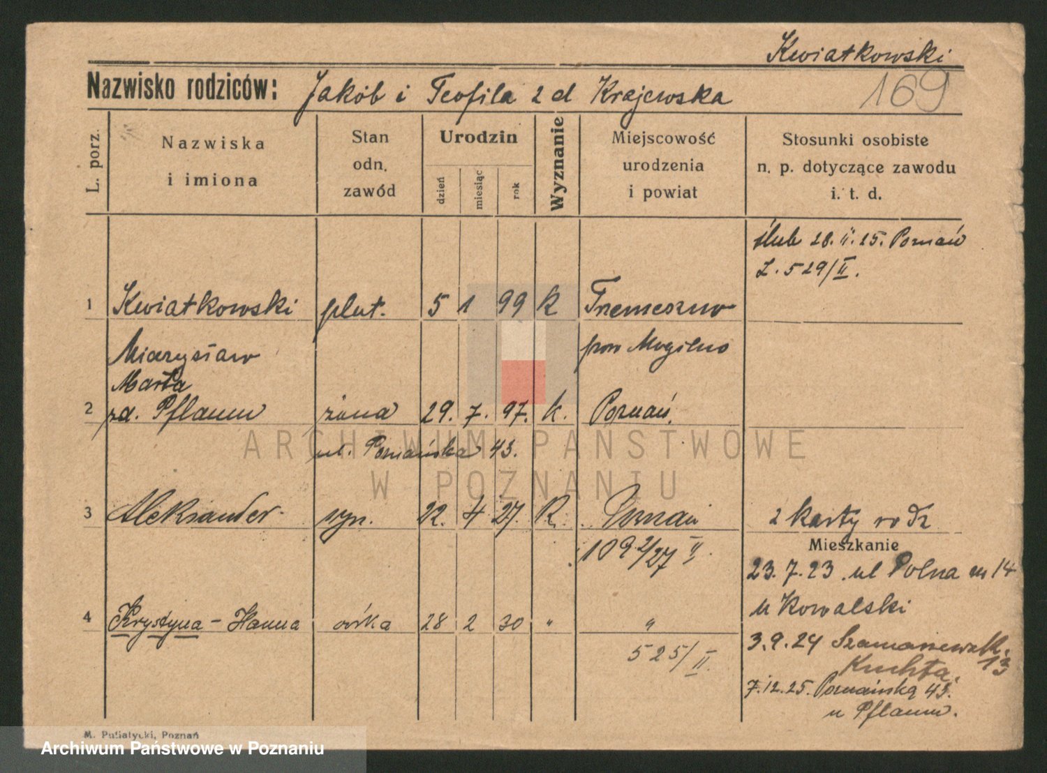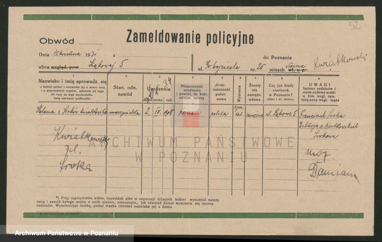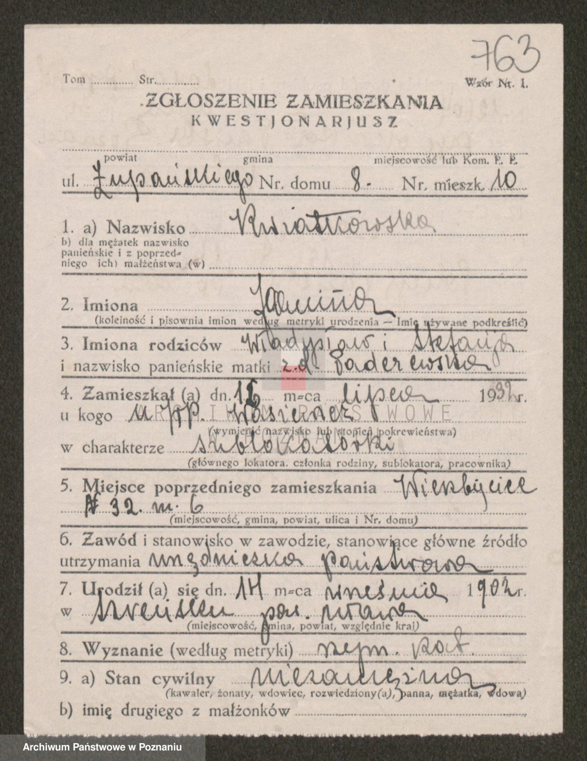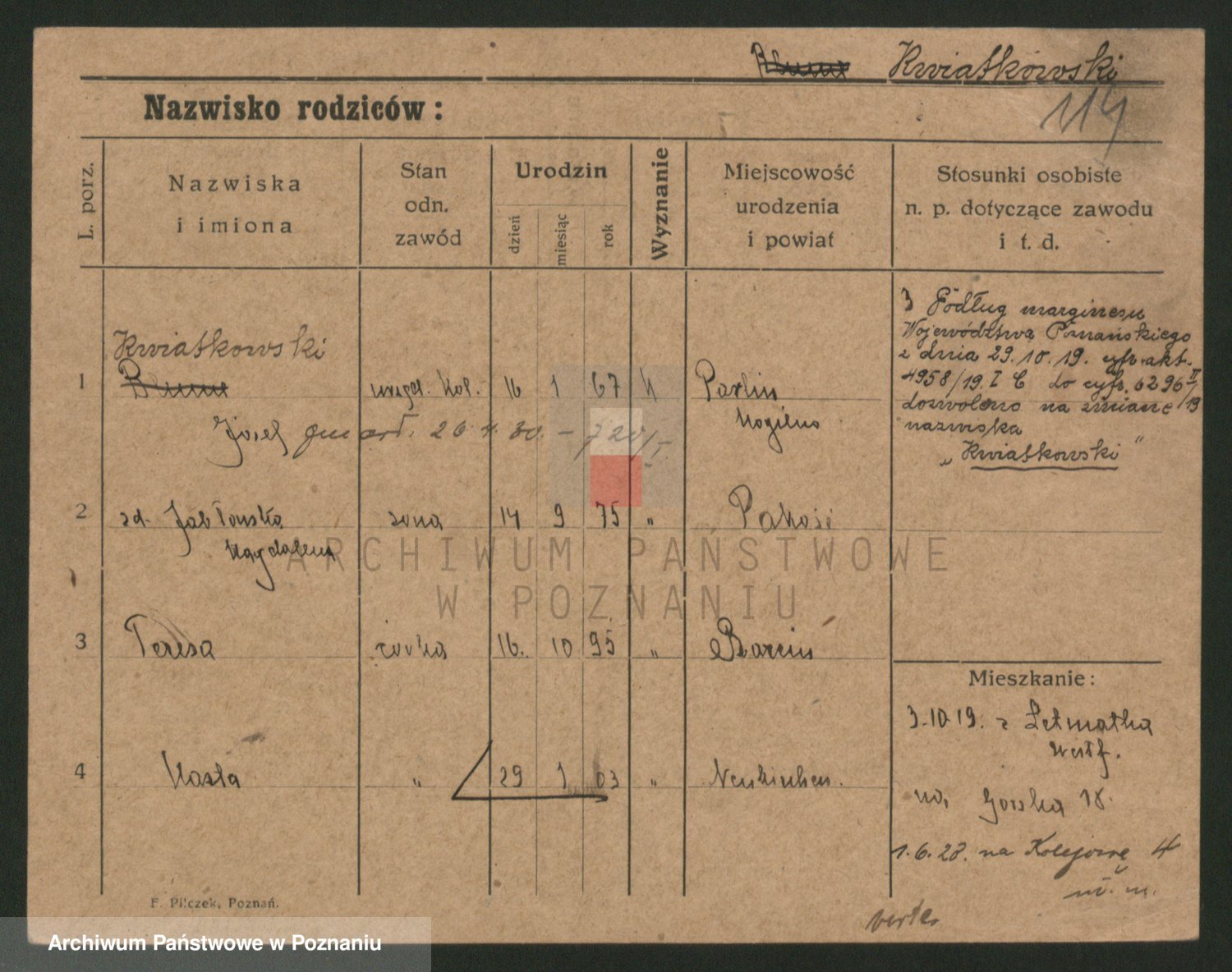 Kwiatkowski z d. Dembinska, Marja