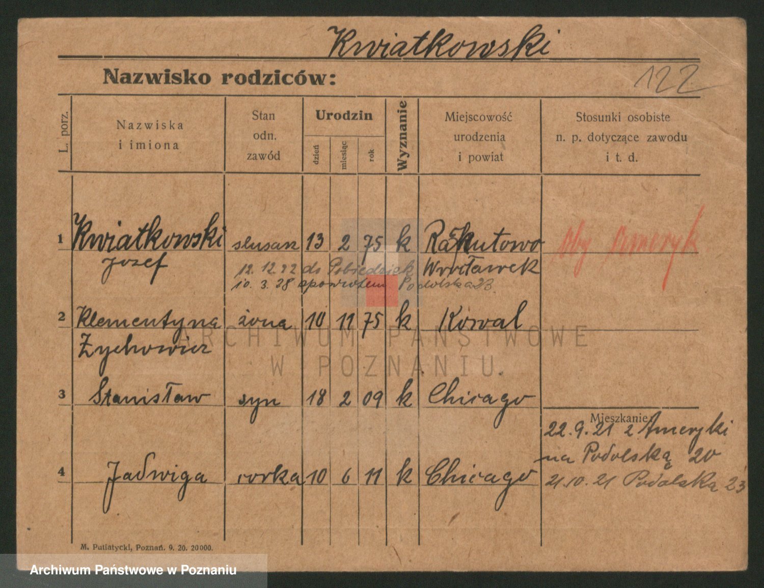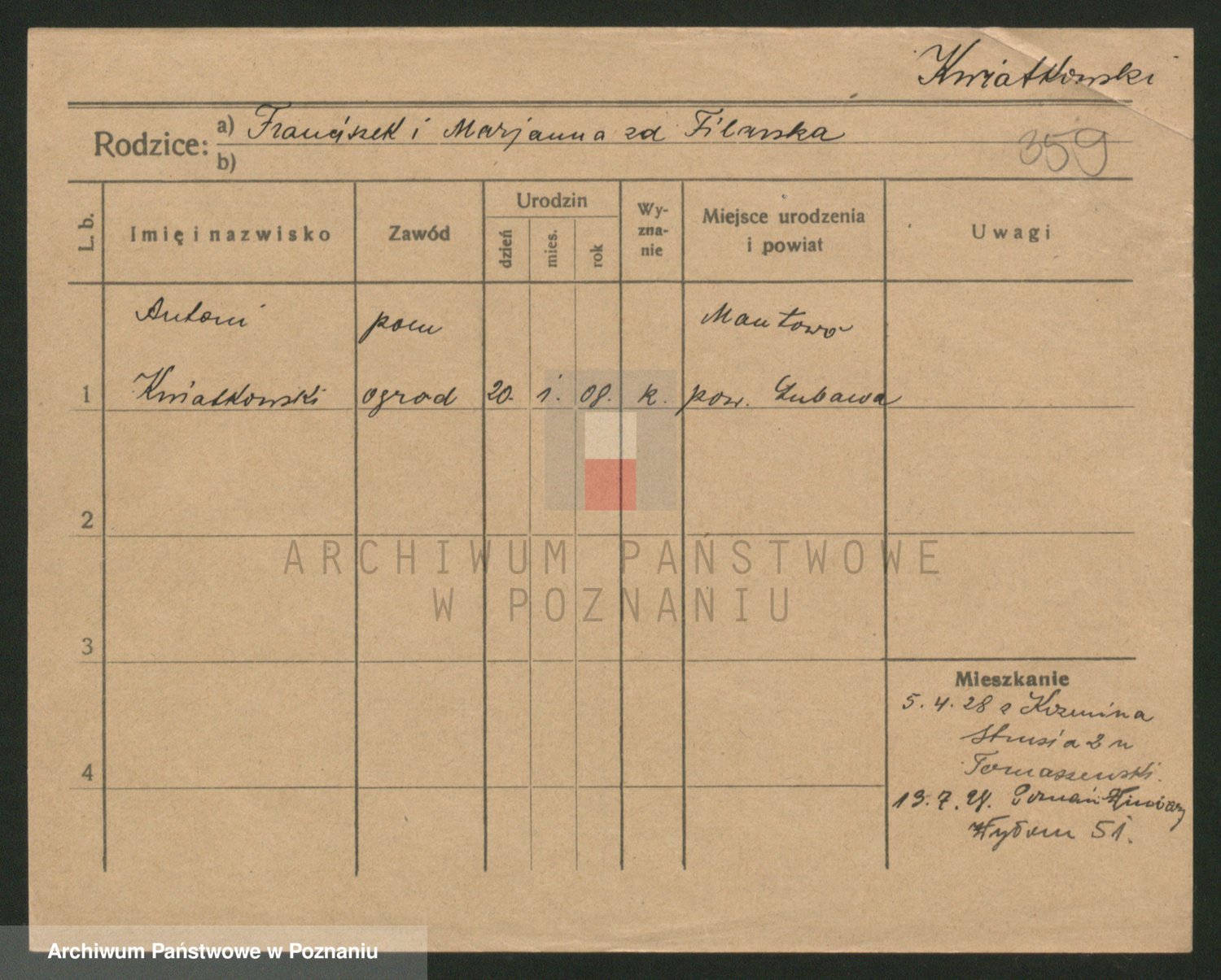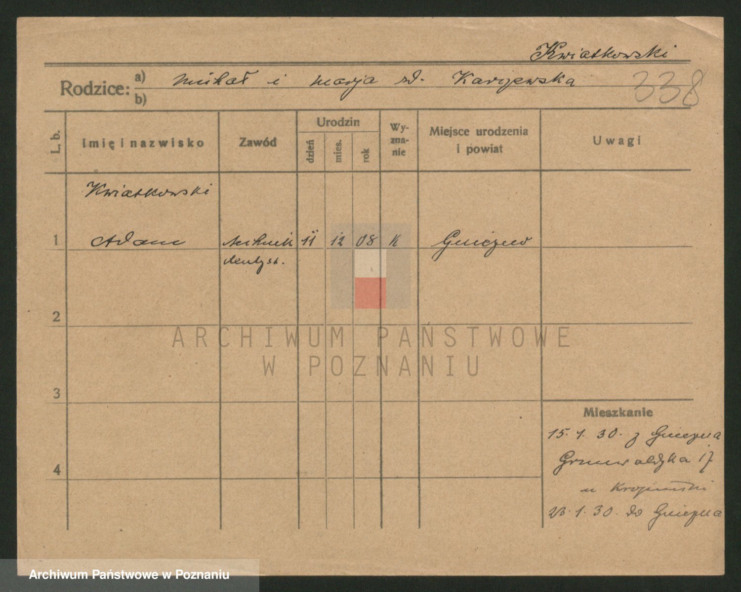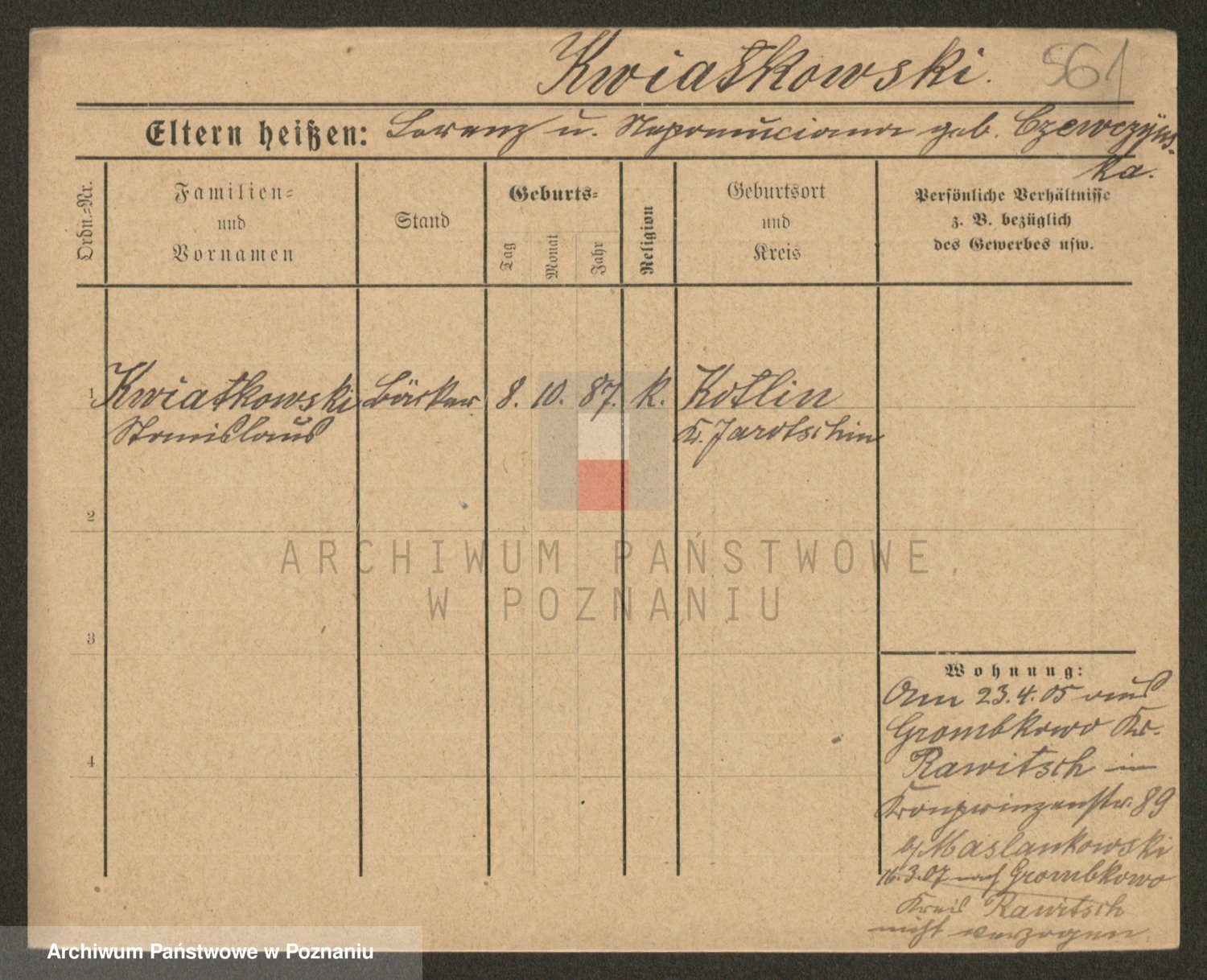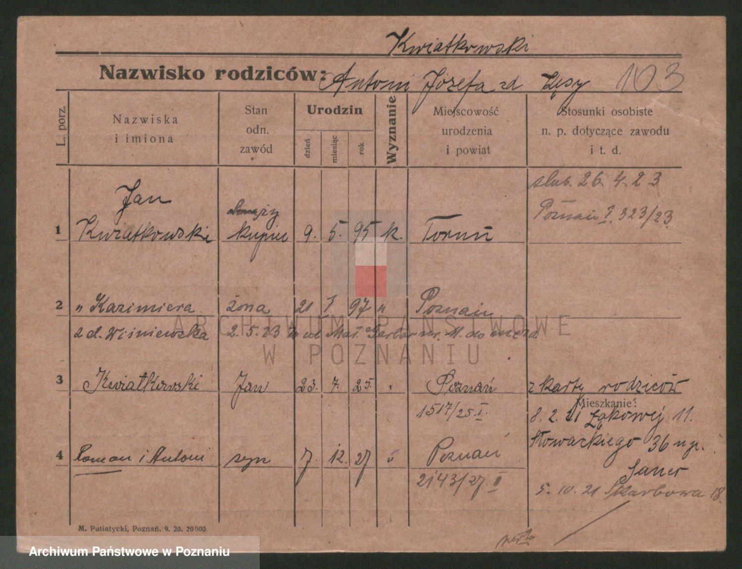 Kwiatkowski z d. Dembinska, Marja