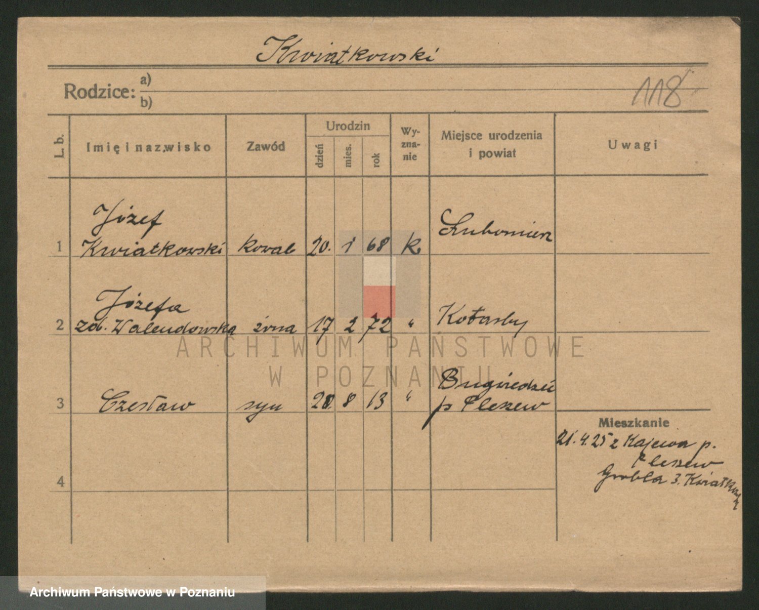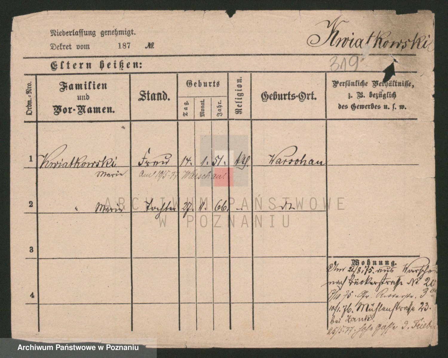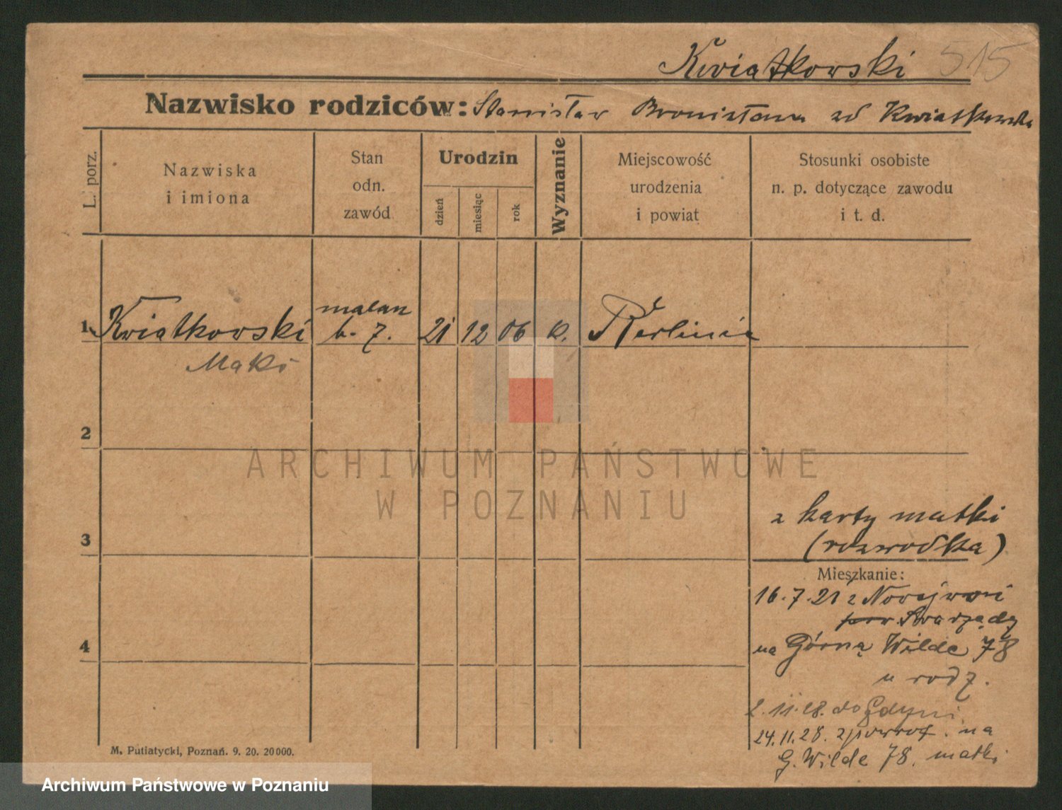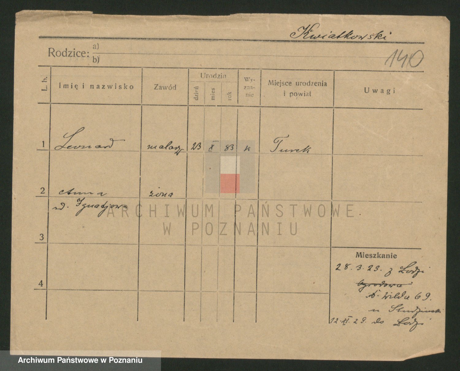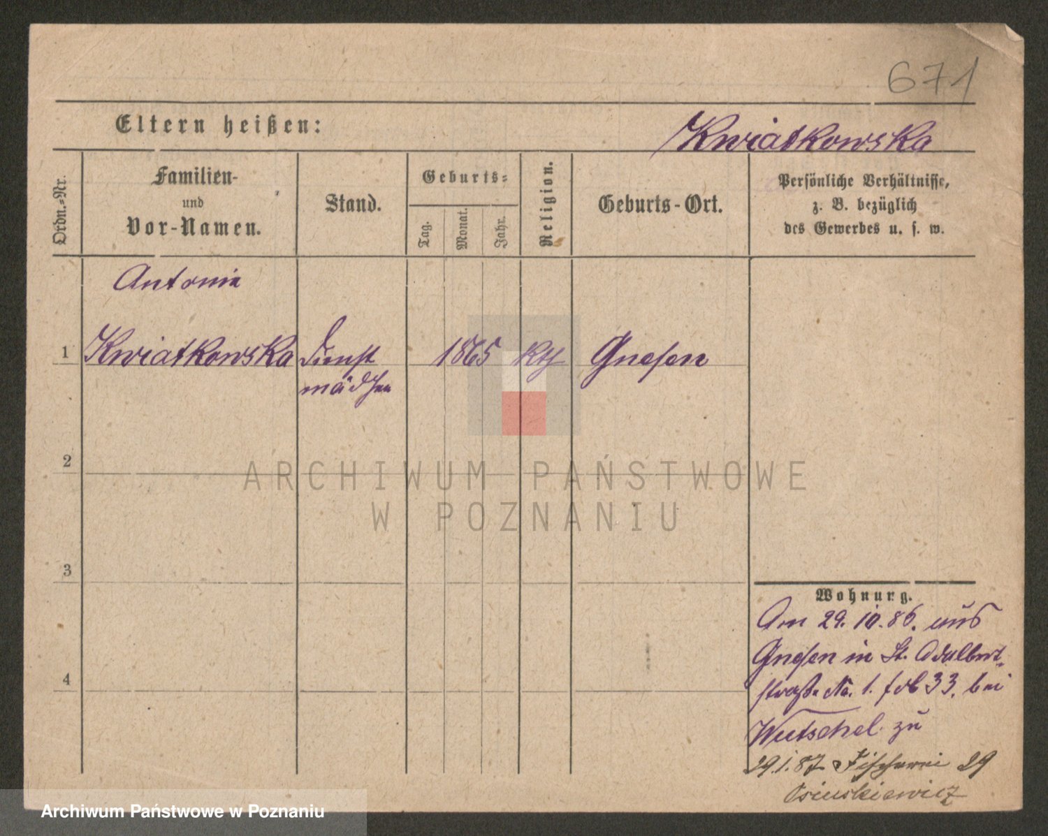 Kwiatkowski z d. Dembinska, Marja