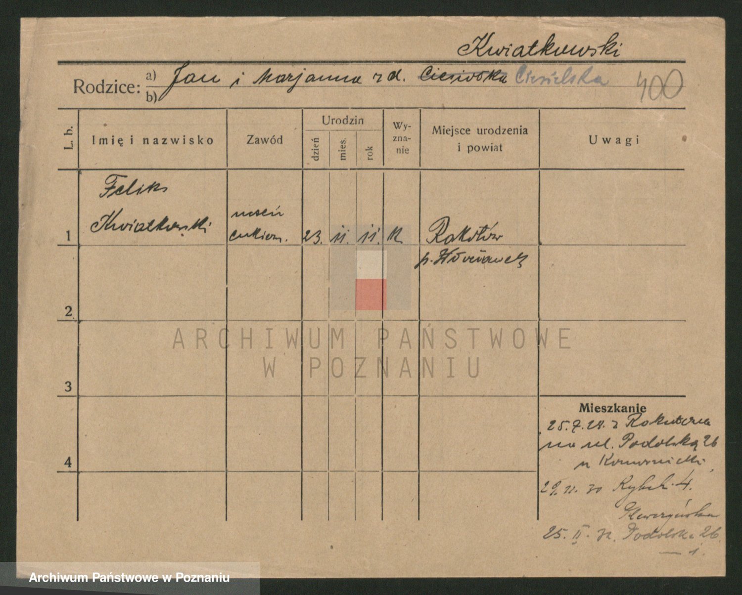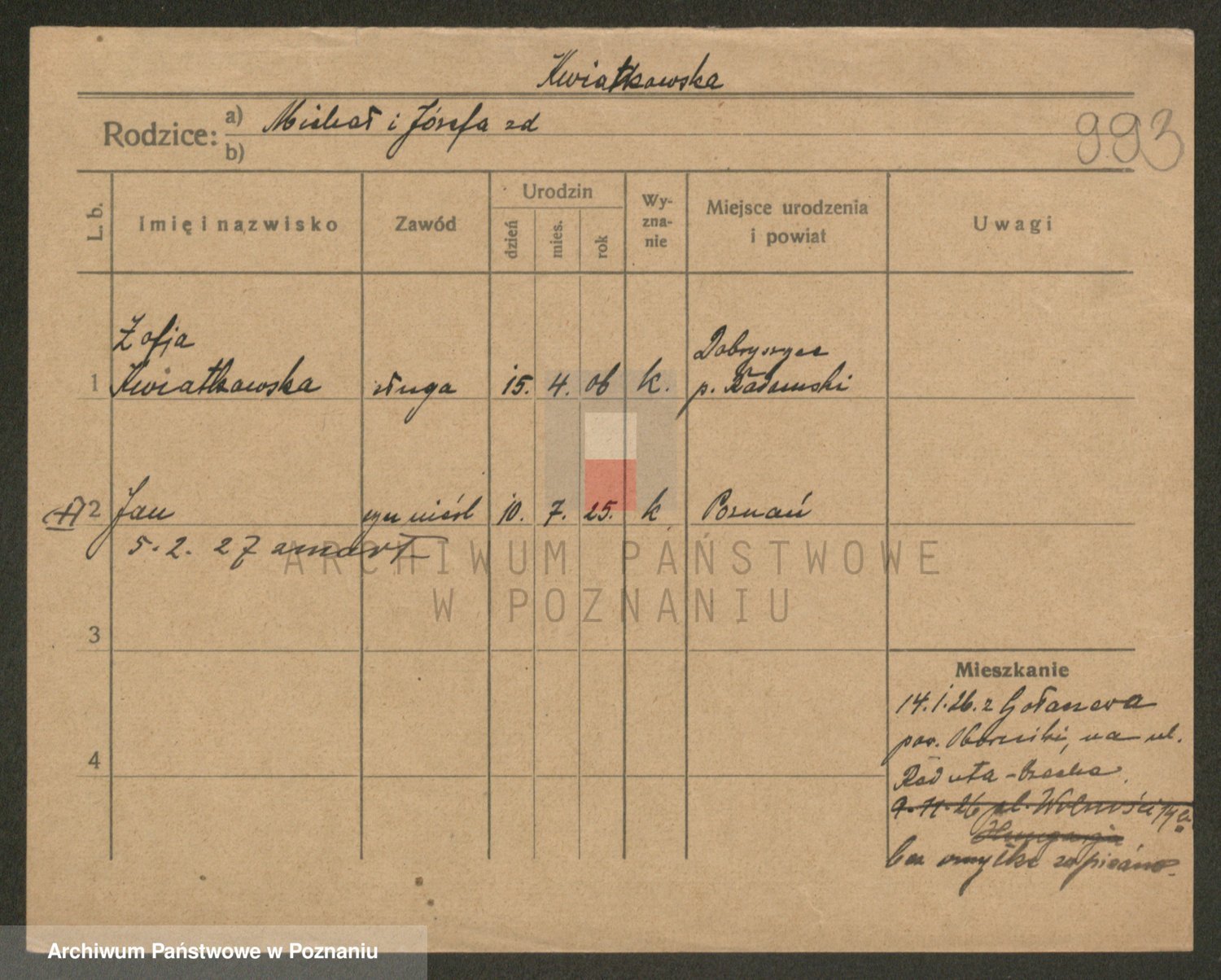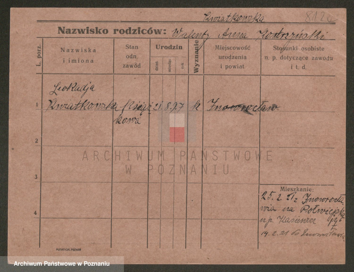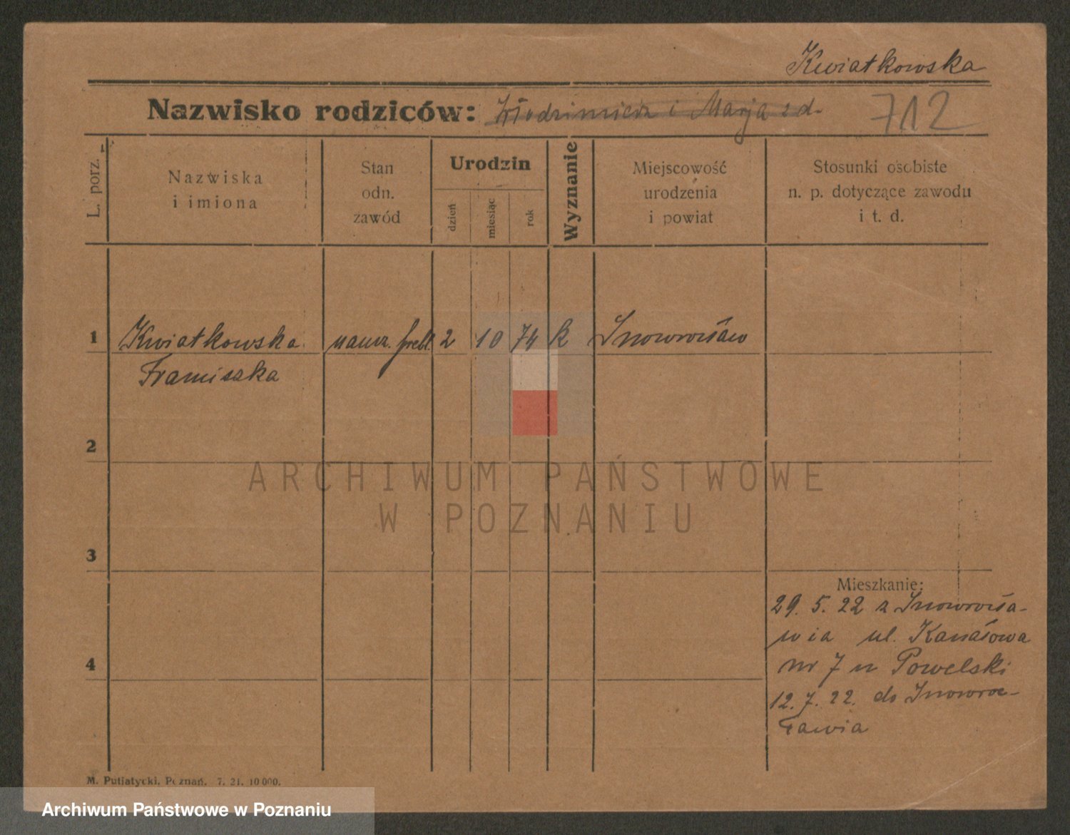 Kwiatkowski z d. Cymanowska, Zofja