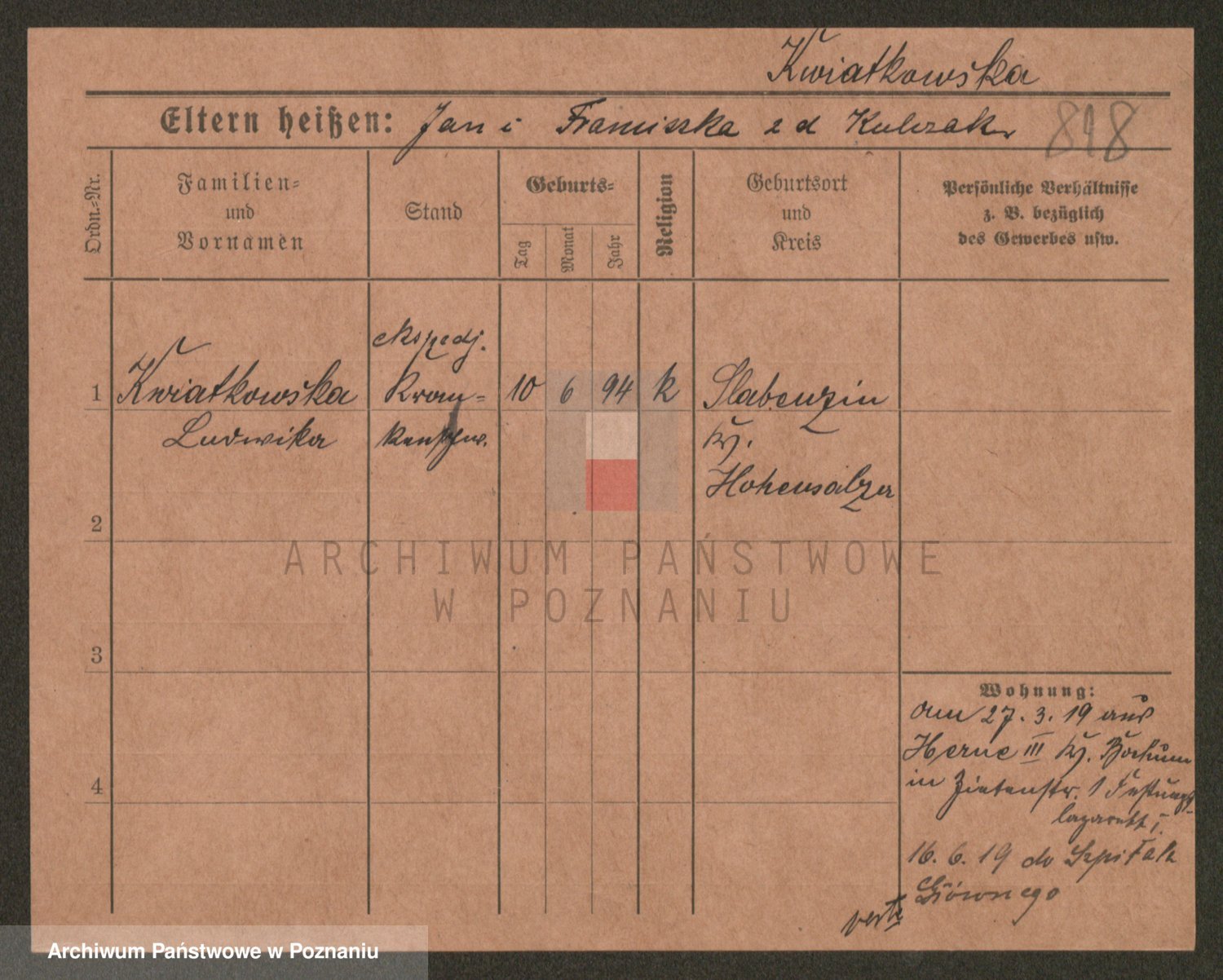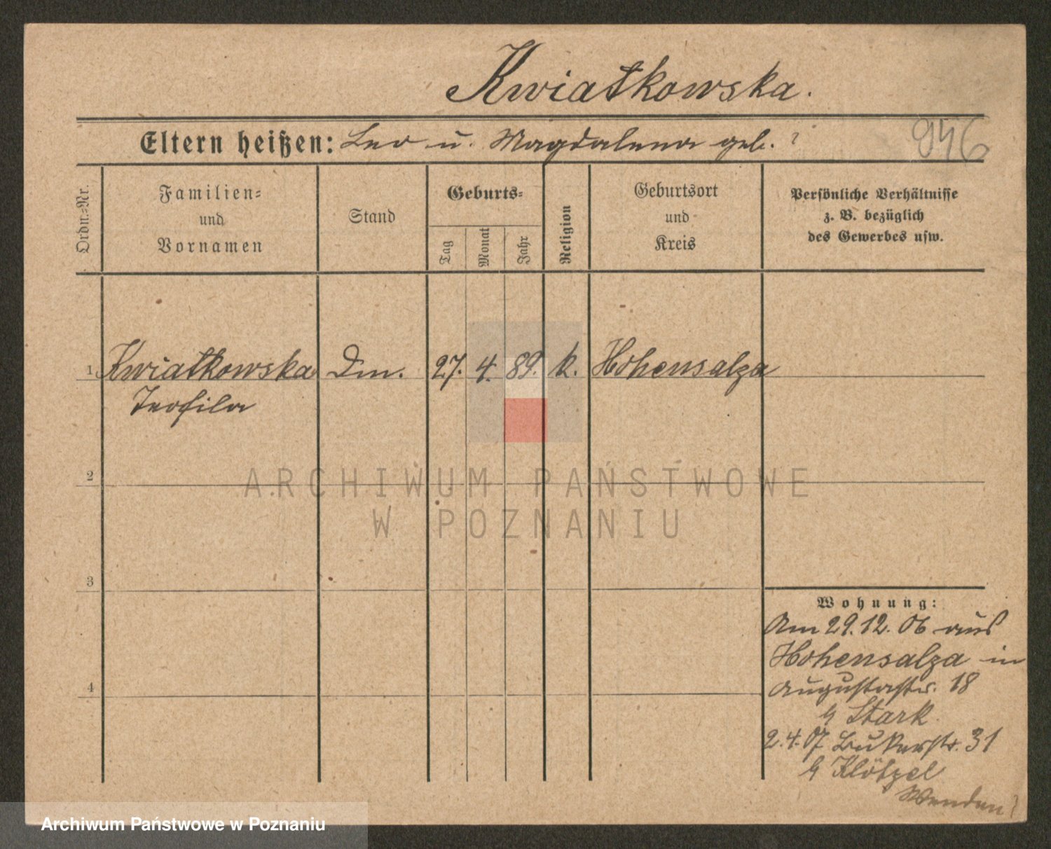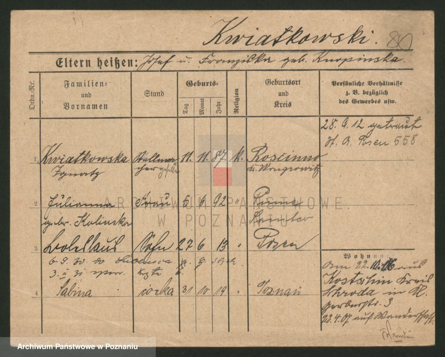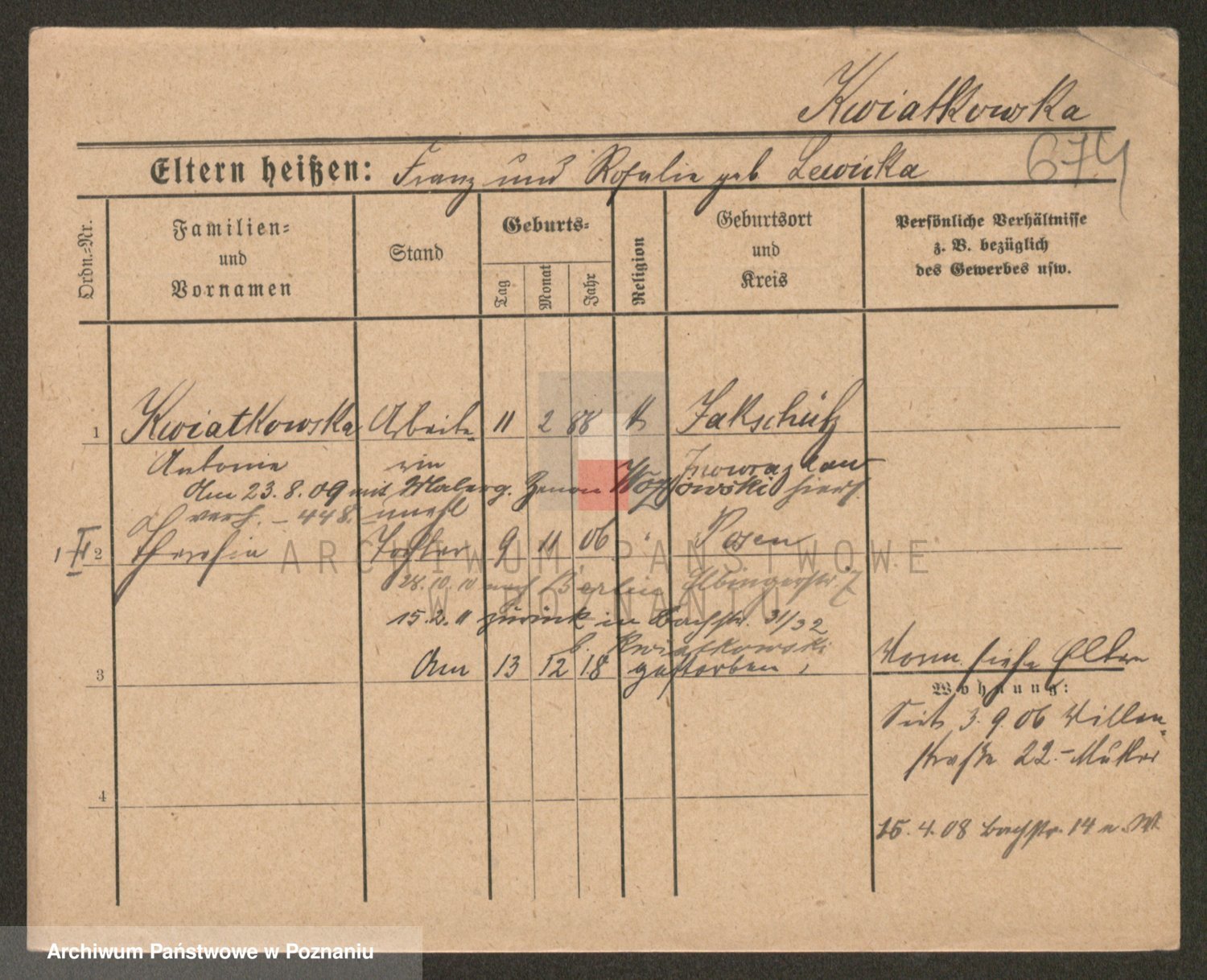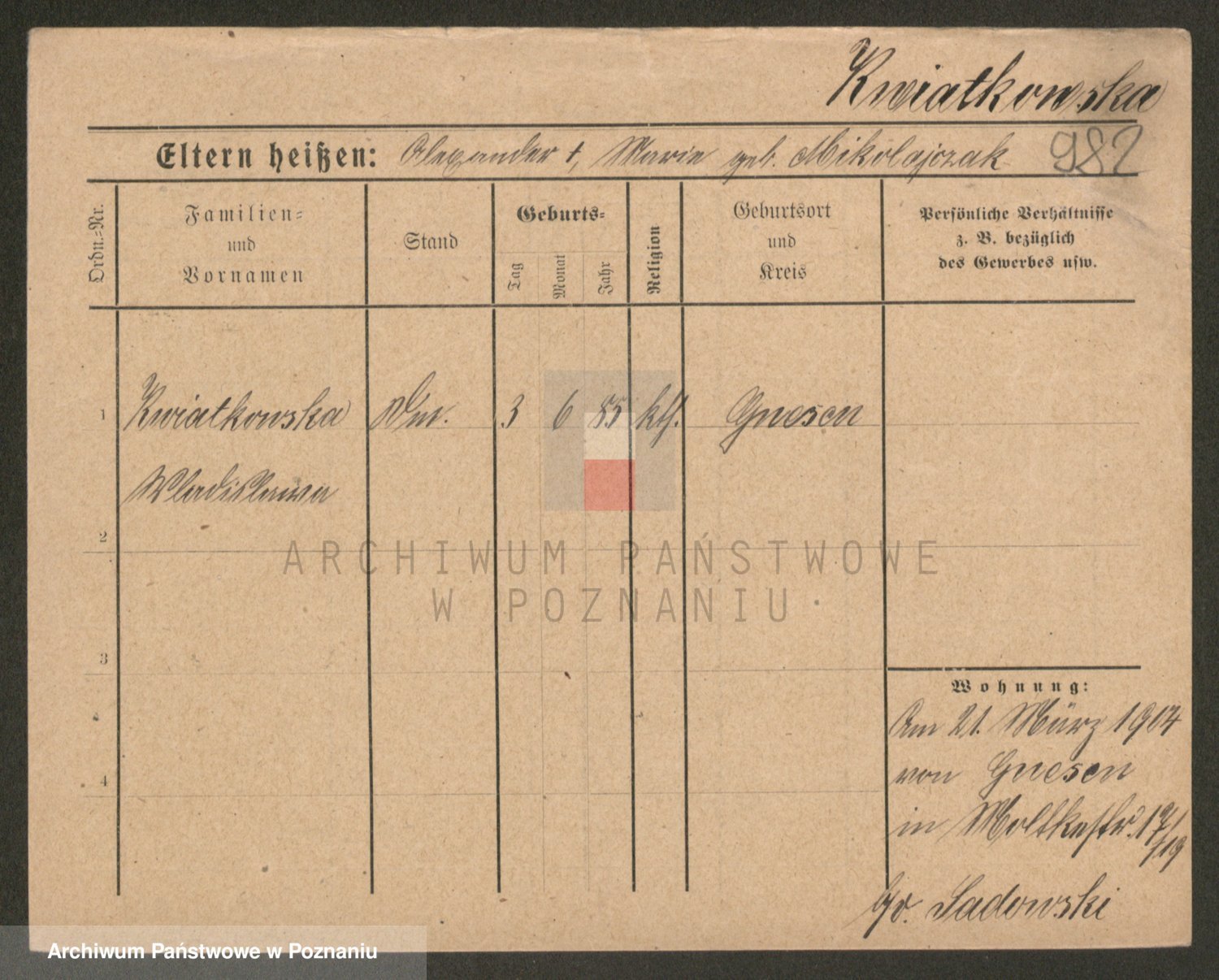 Kwiatkowski z d. Kuczynska, Sofie