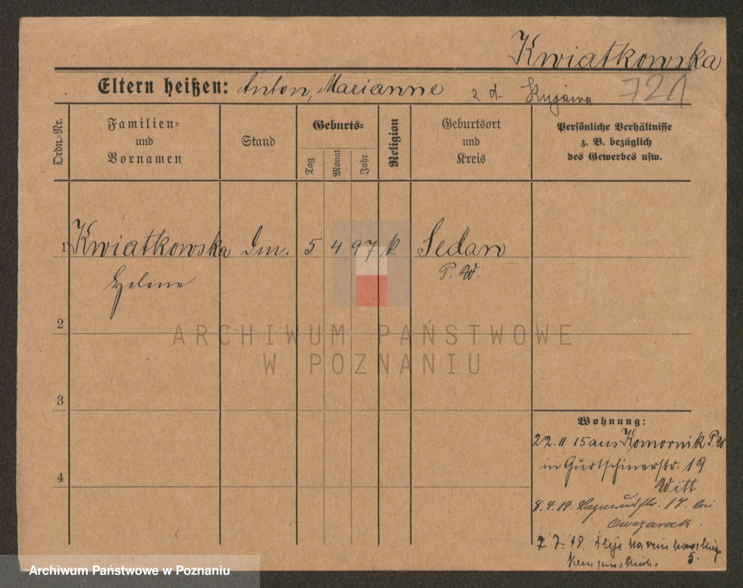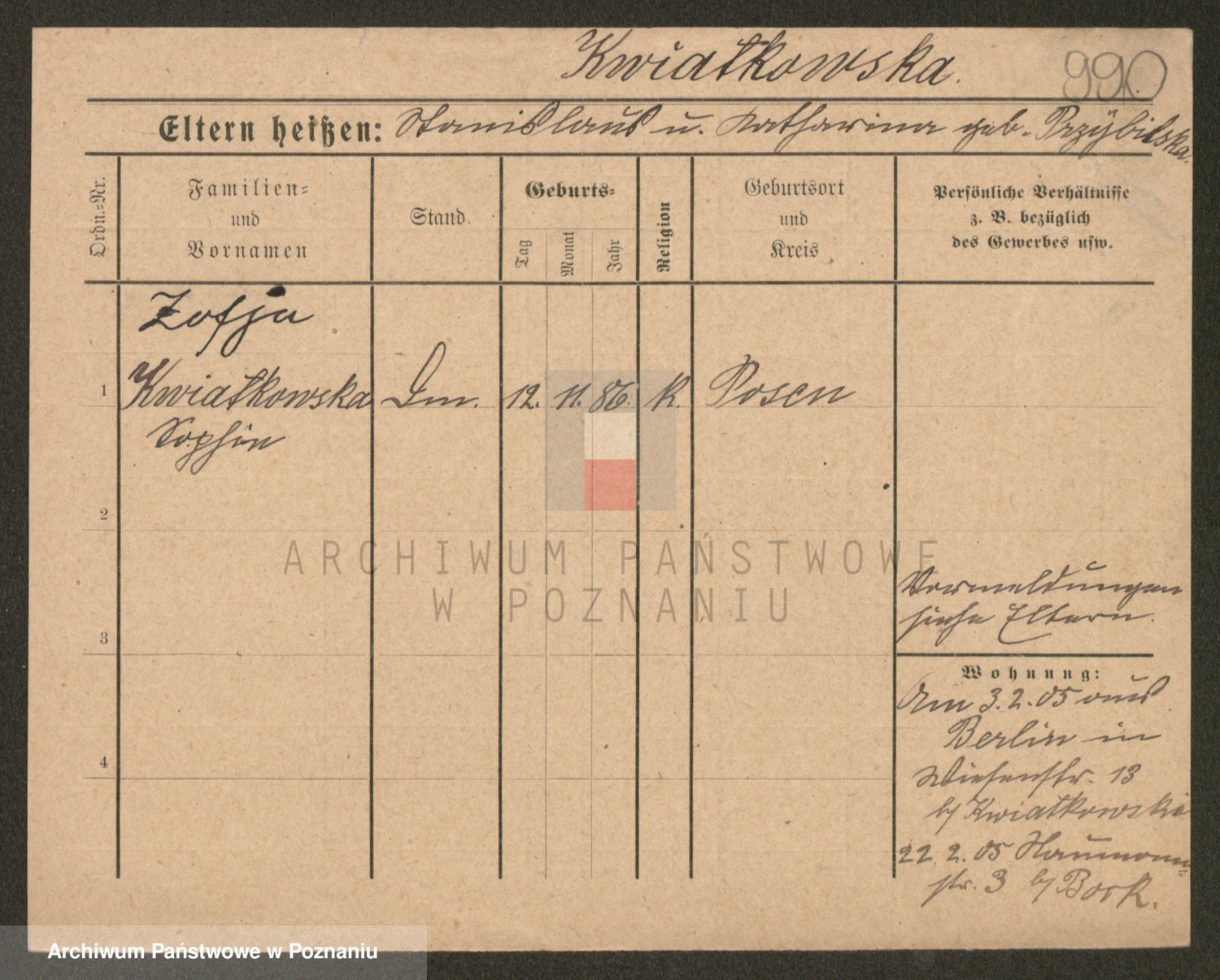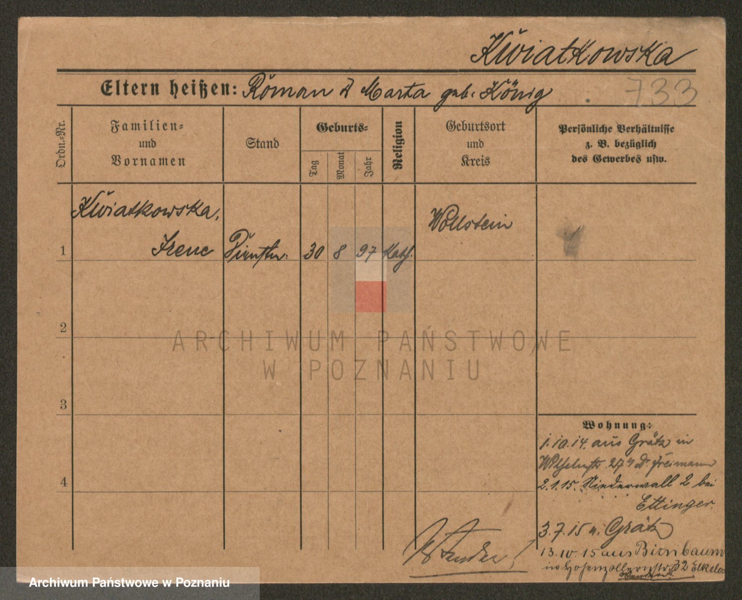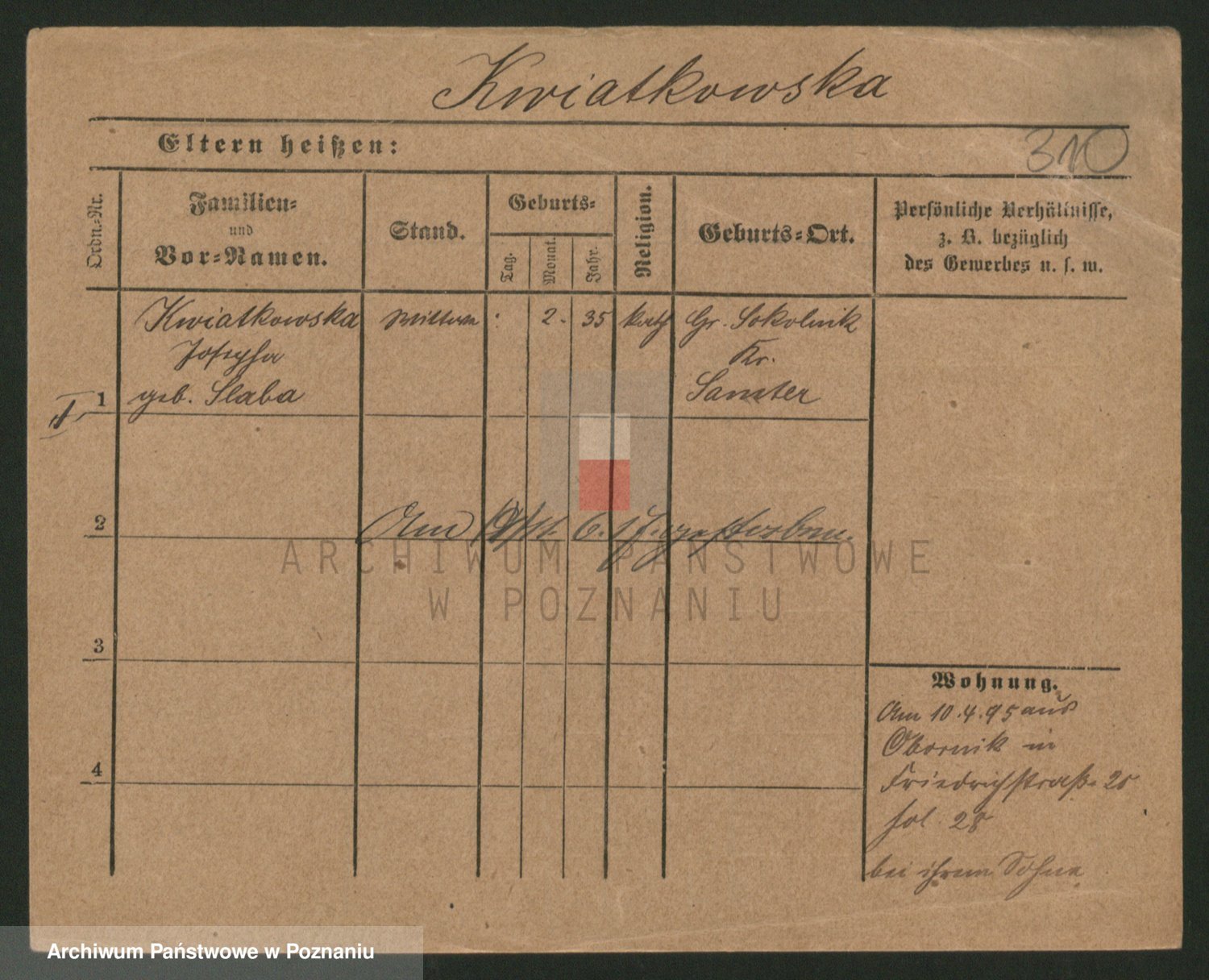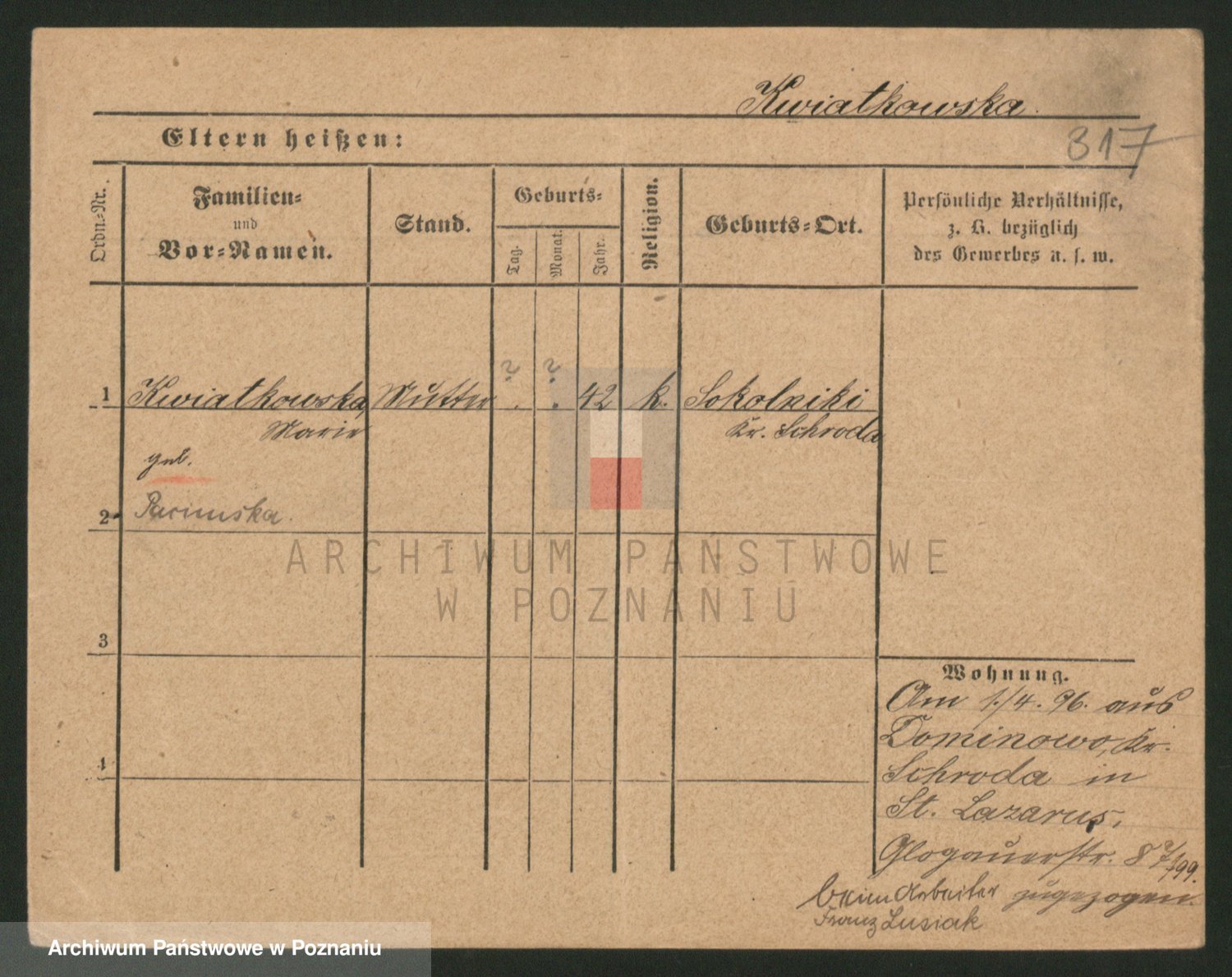 Kwiatkowski z d. Kuczynska, Sofie
