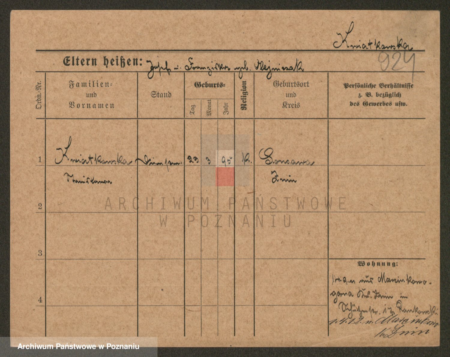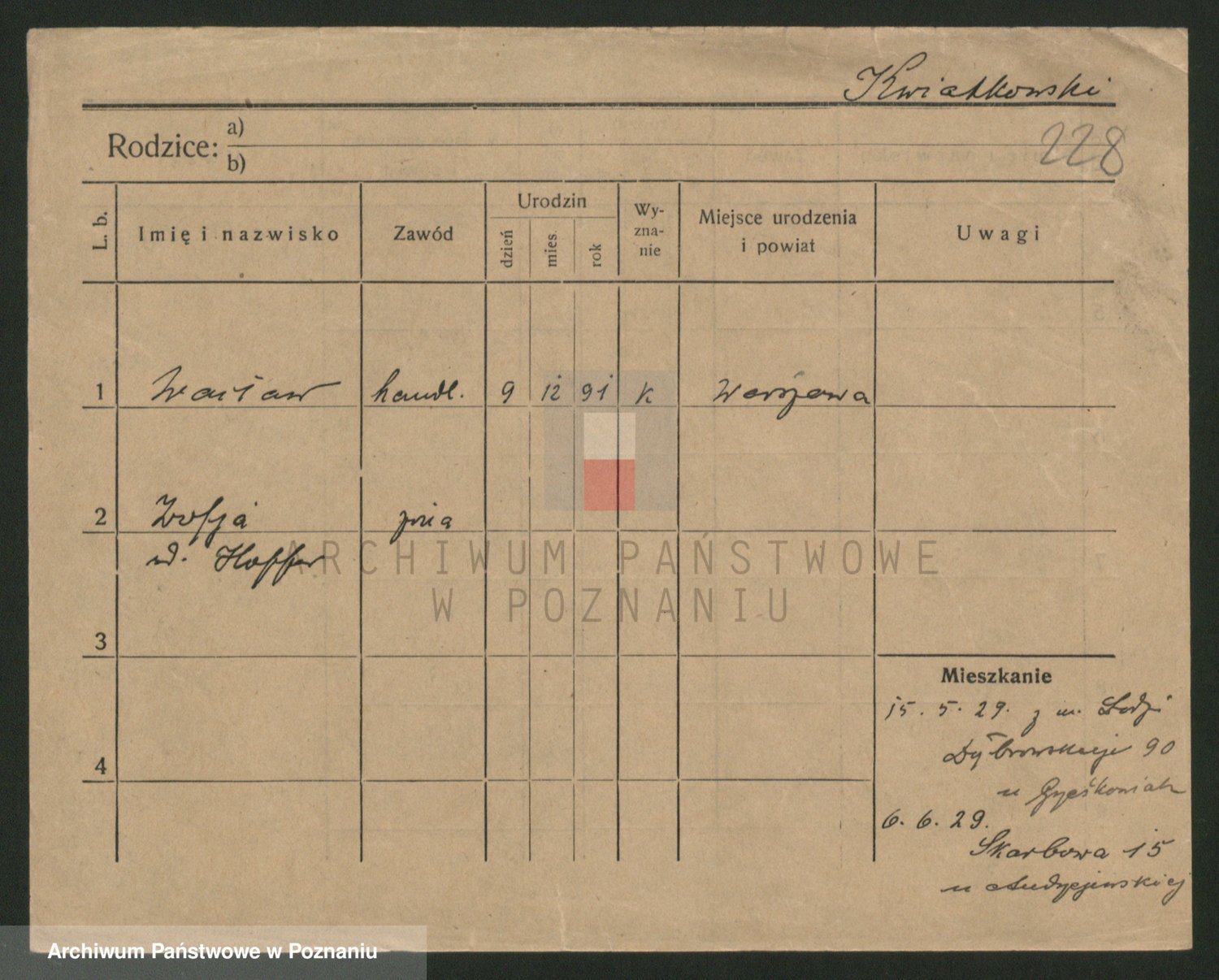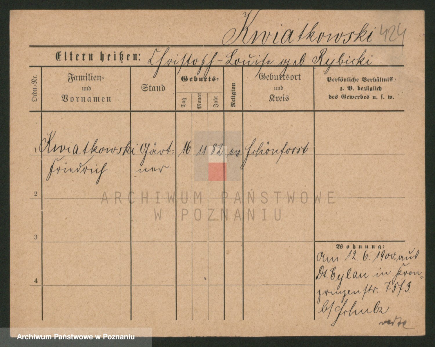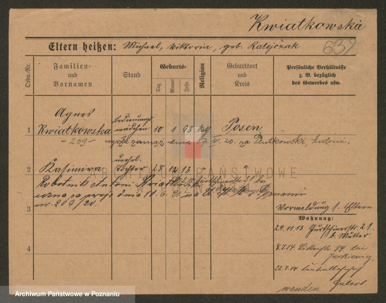 Kwiatkowski z d. Kuczynska, Sofie