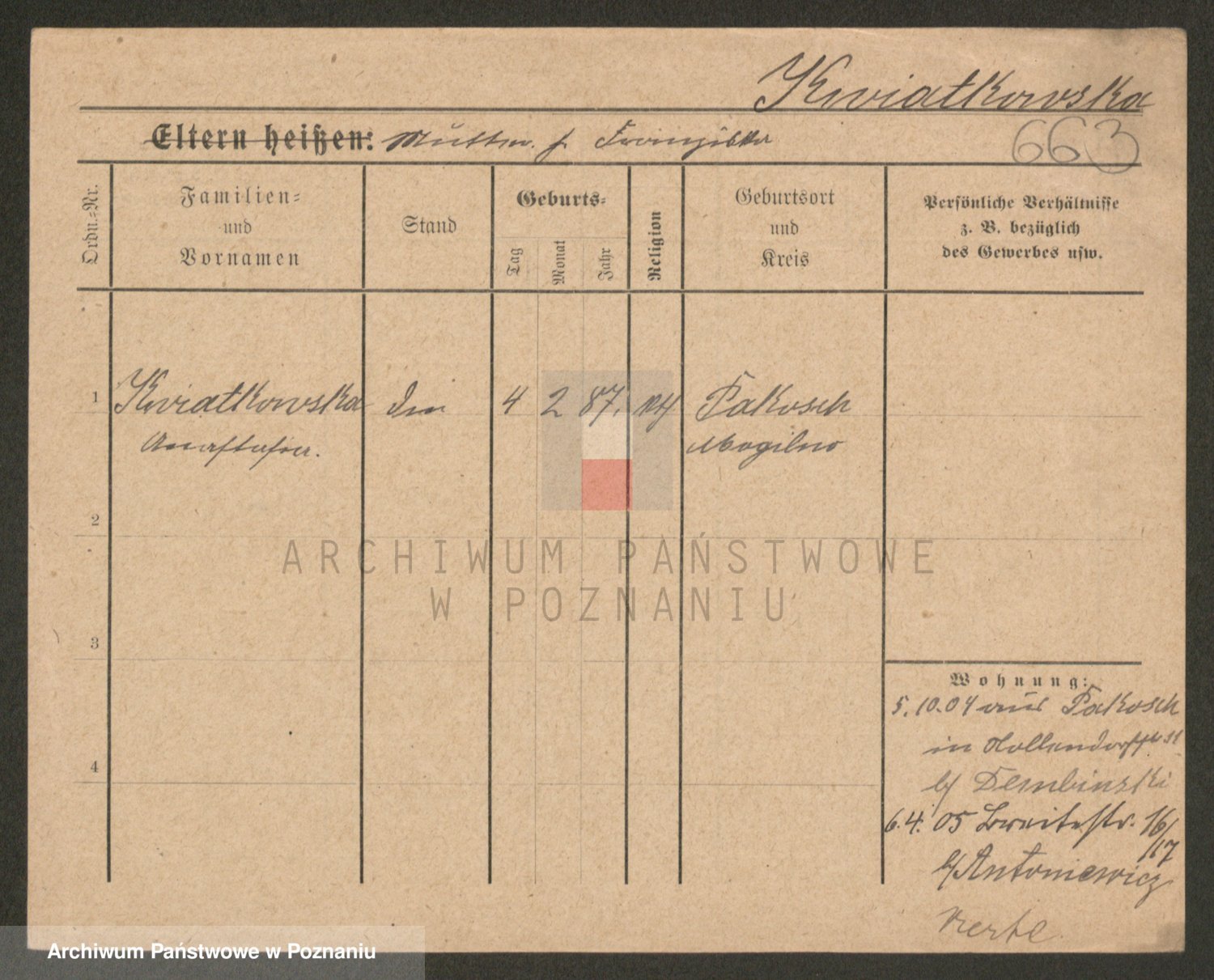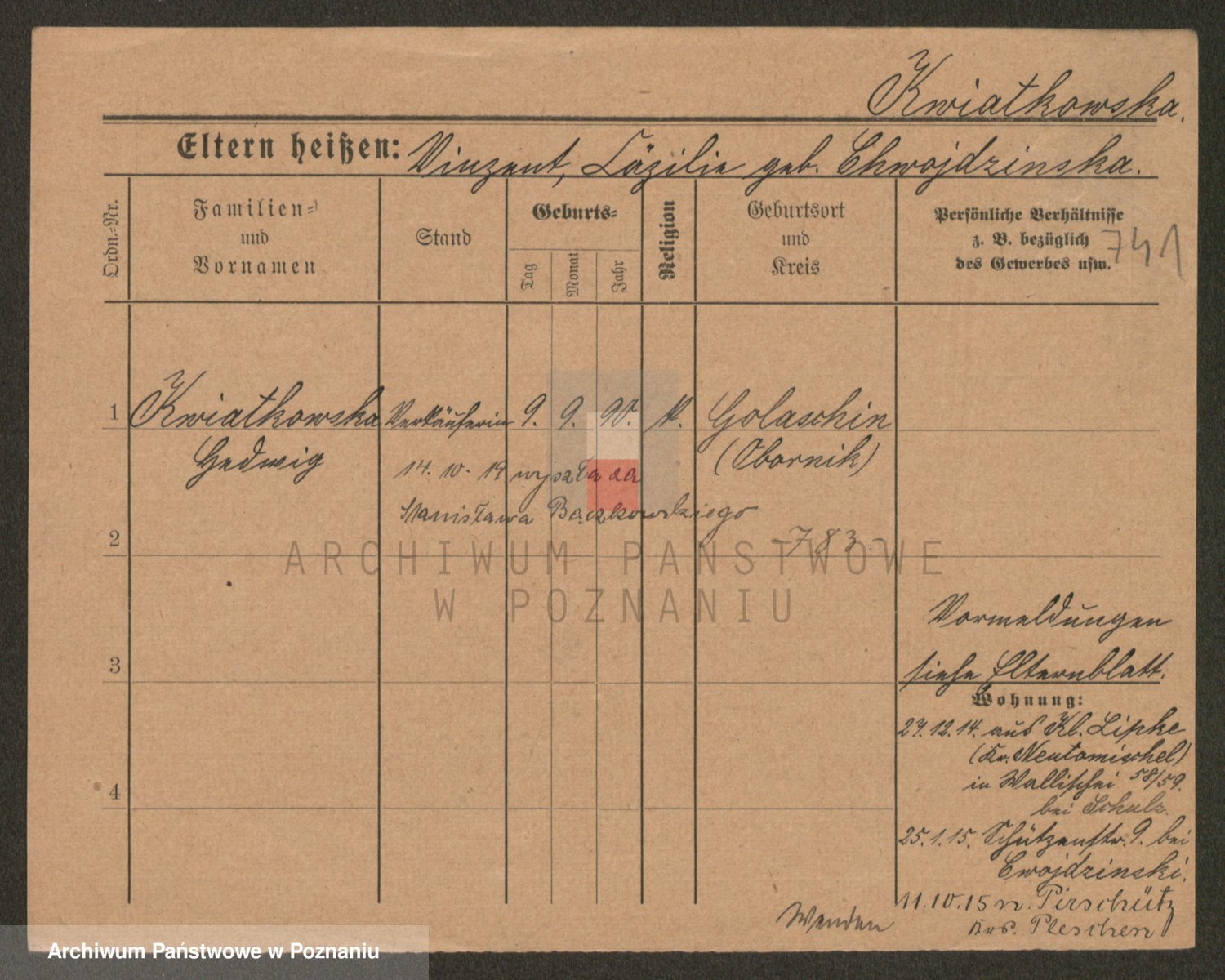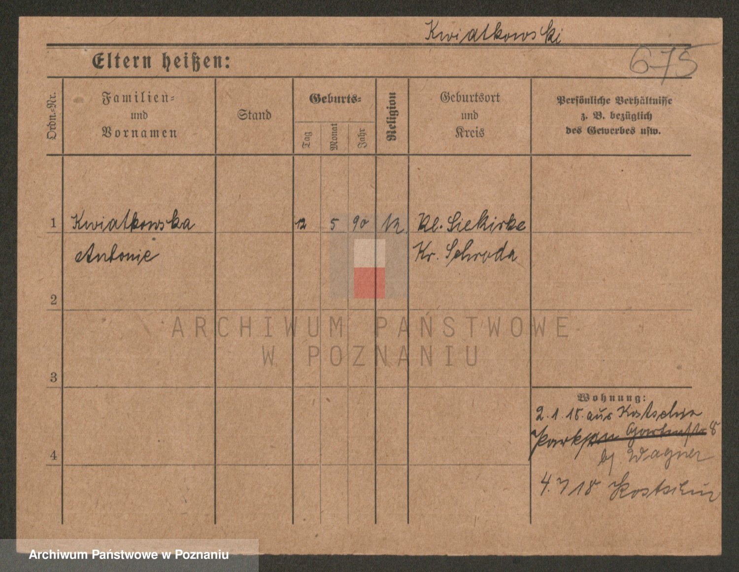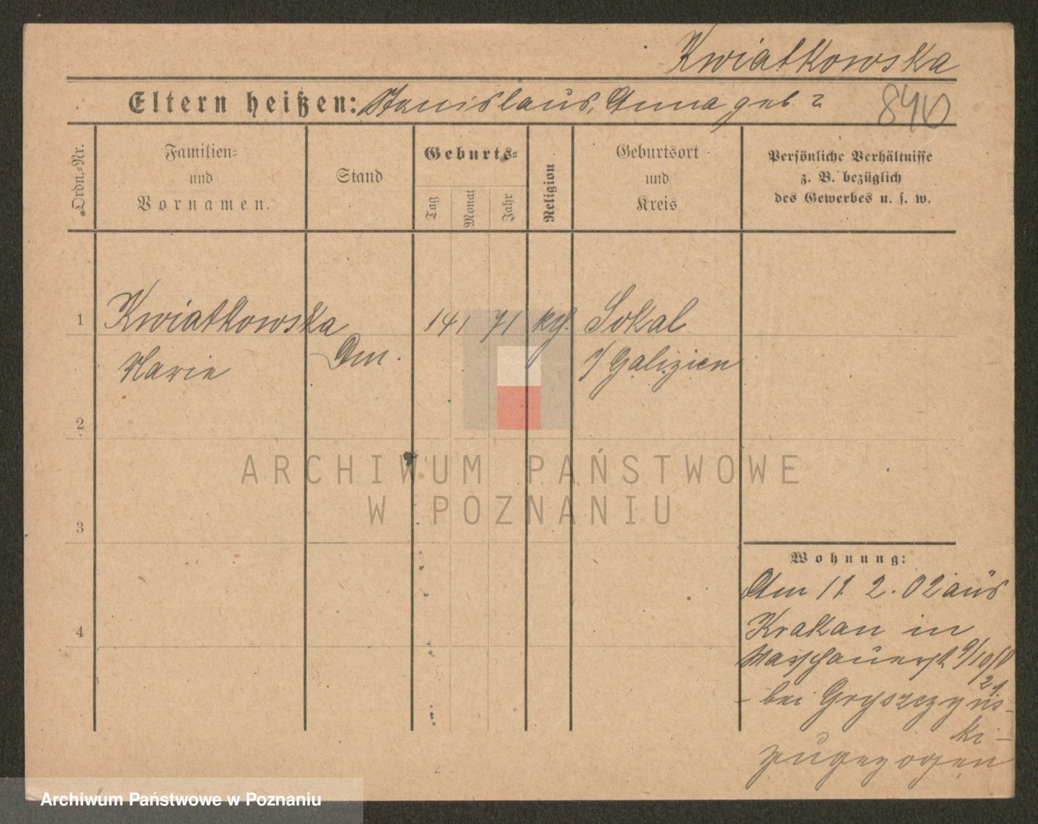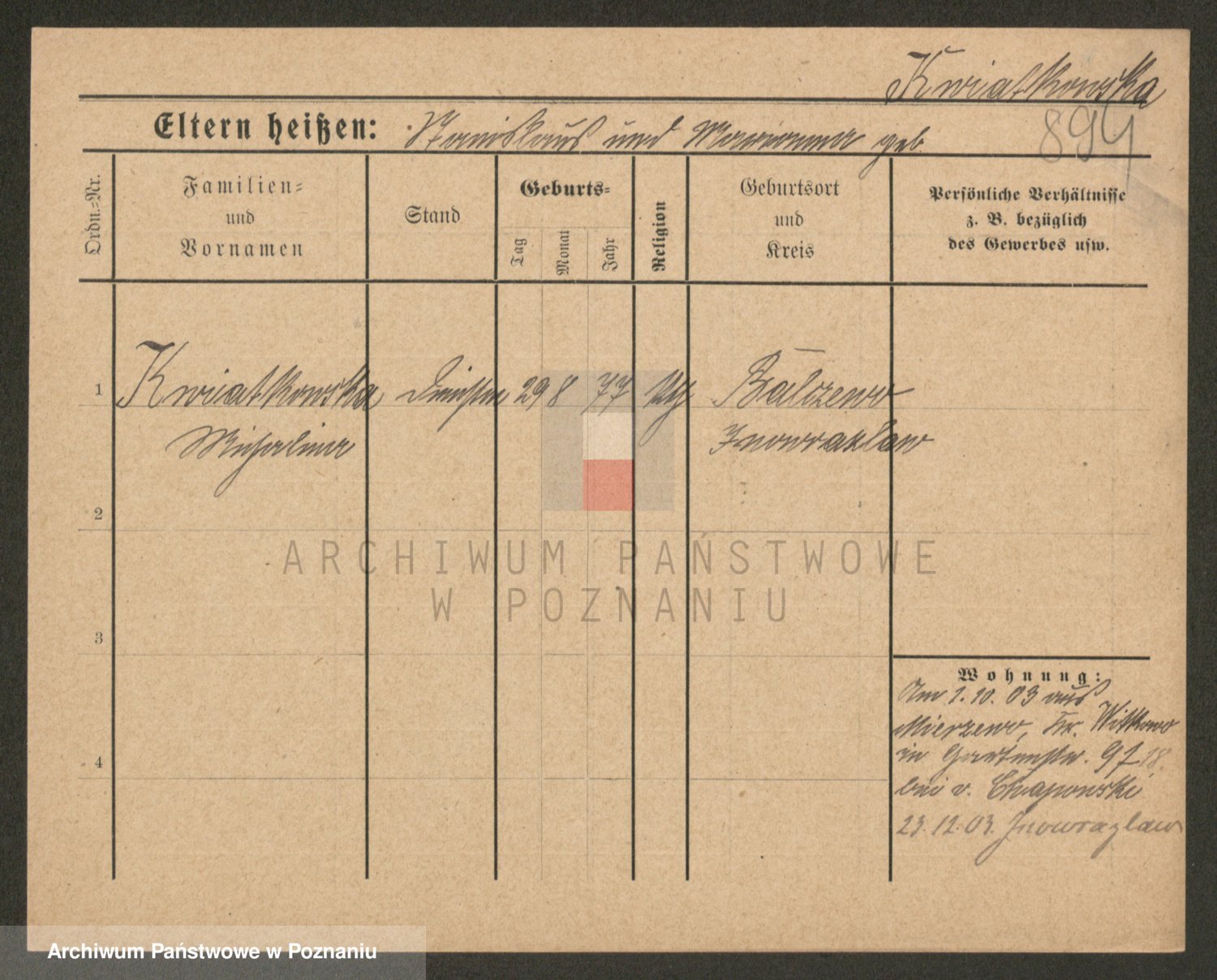 Kwiatkowski z d. Kuczynska, Sofie
