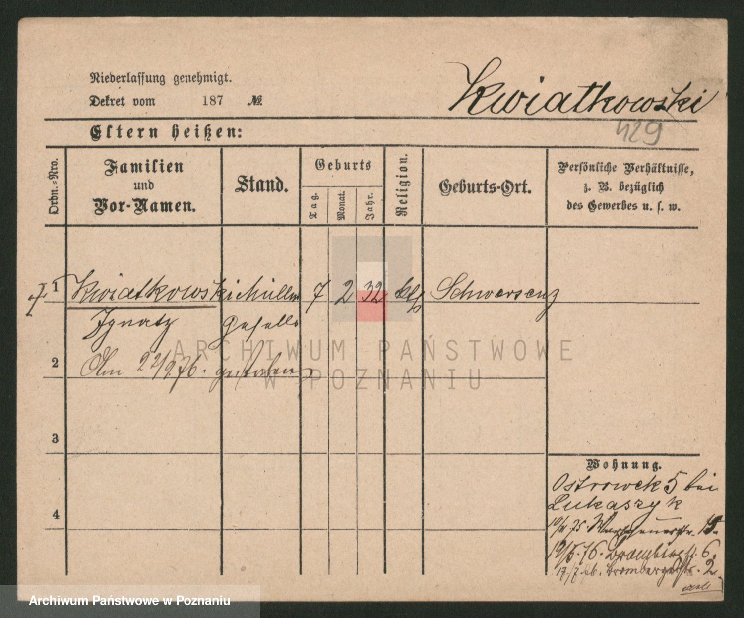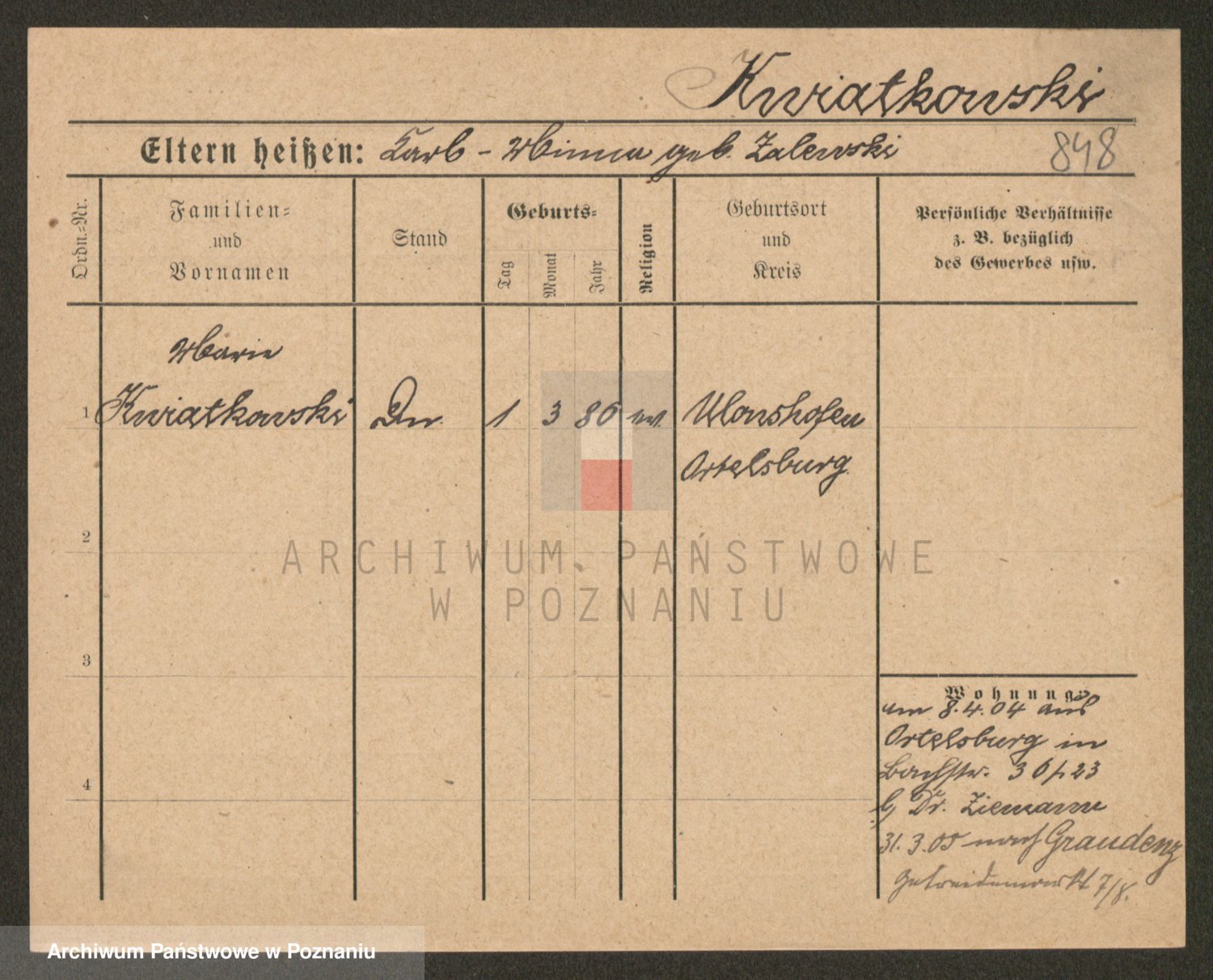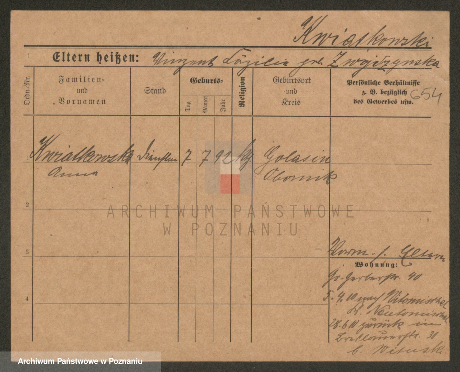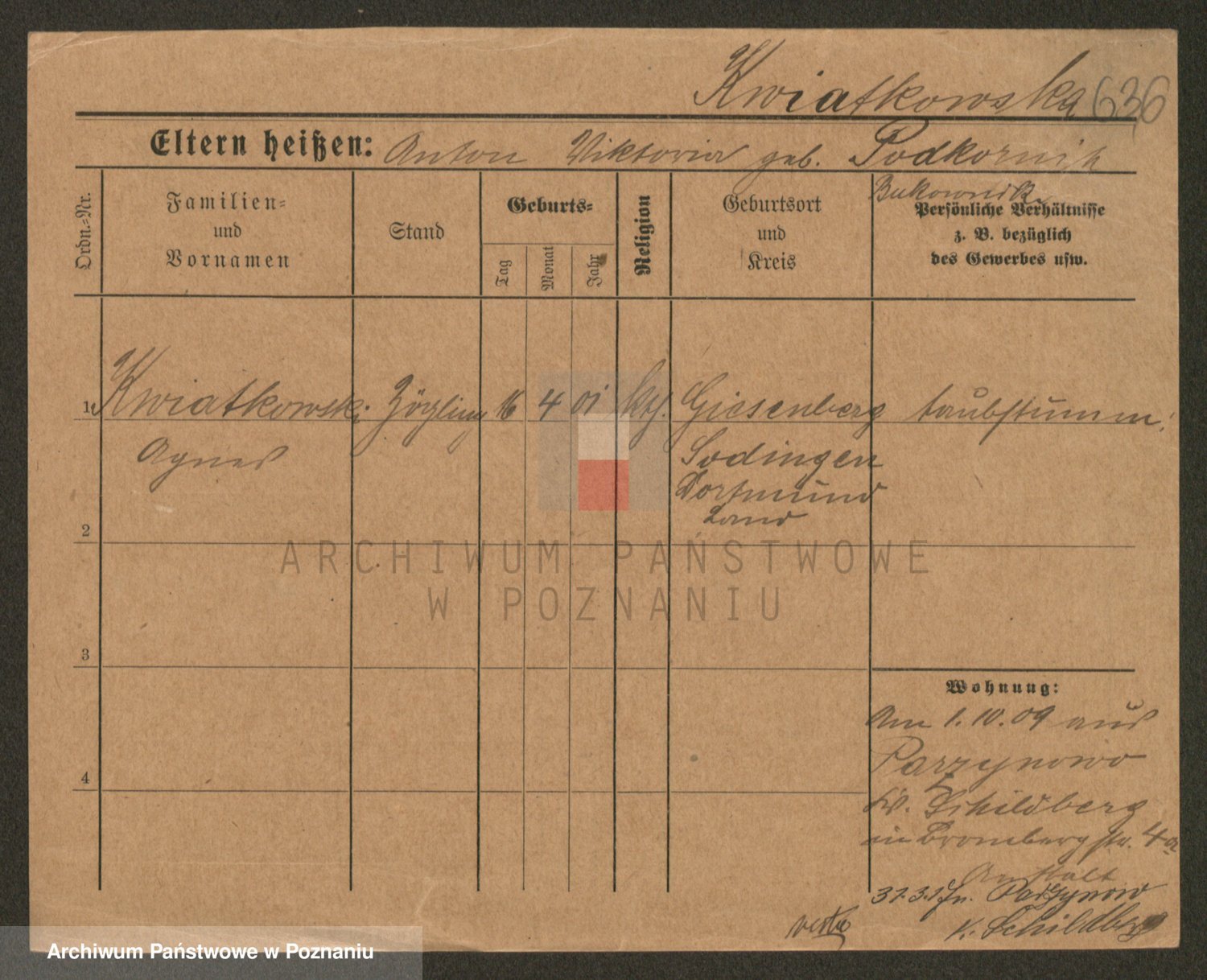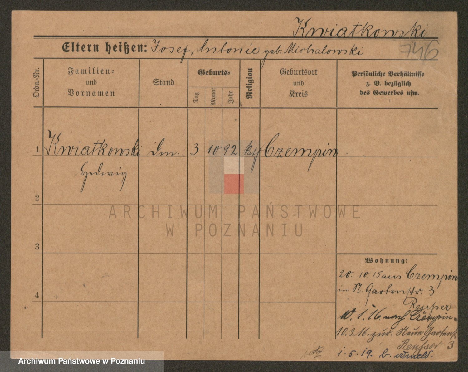 Kwiatkowski z d. Kuczynska, Sofie