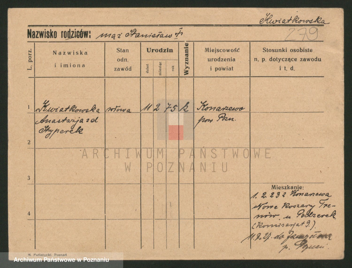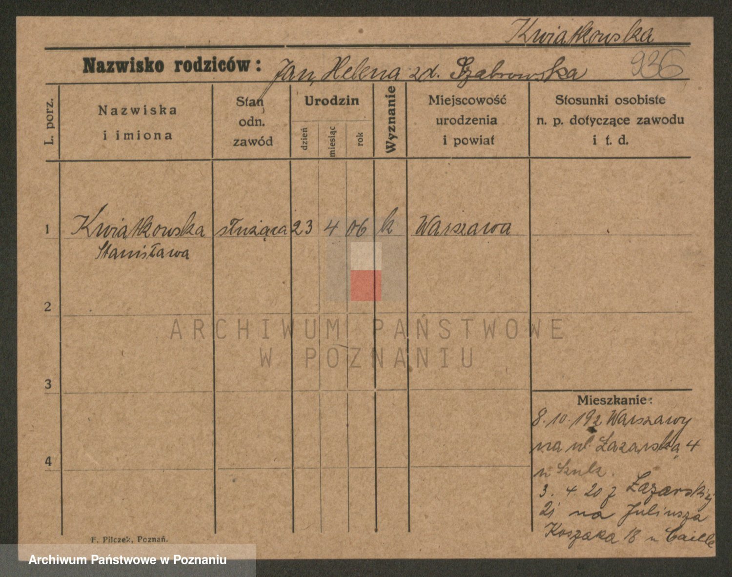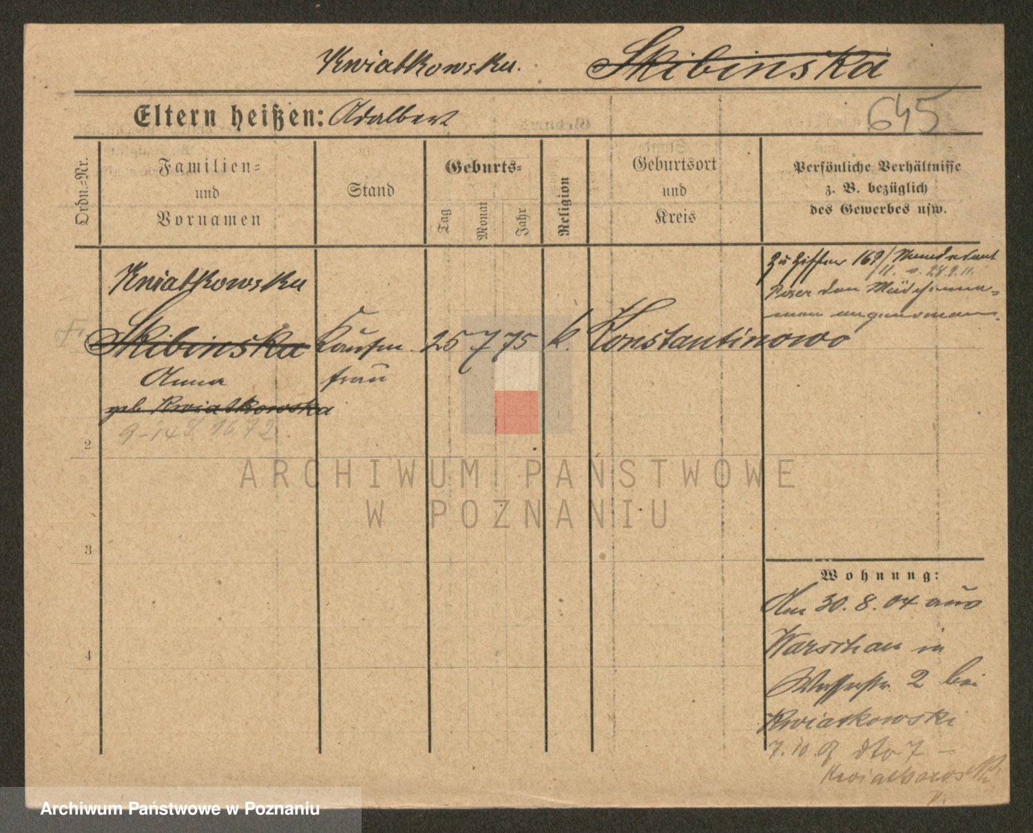 Kwiatkowski z d. Szewczyńska, Konstancja