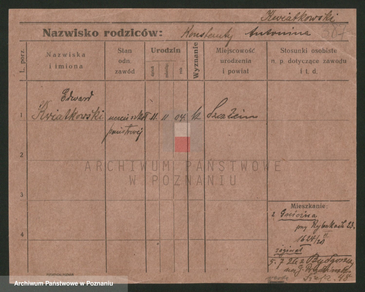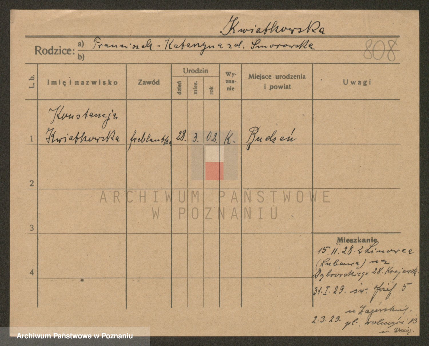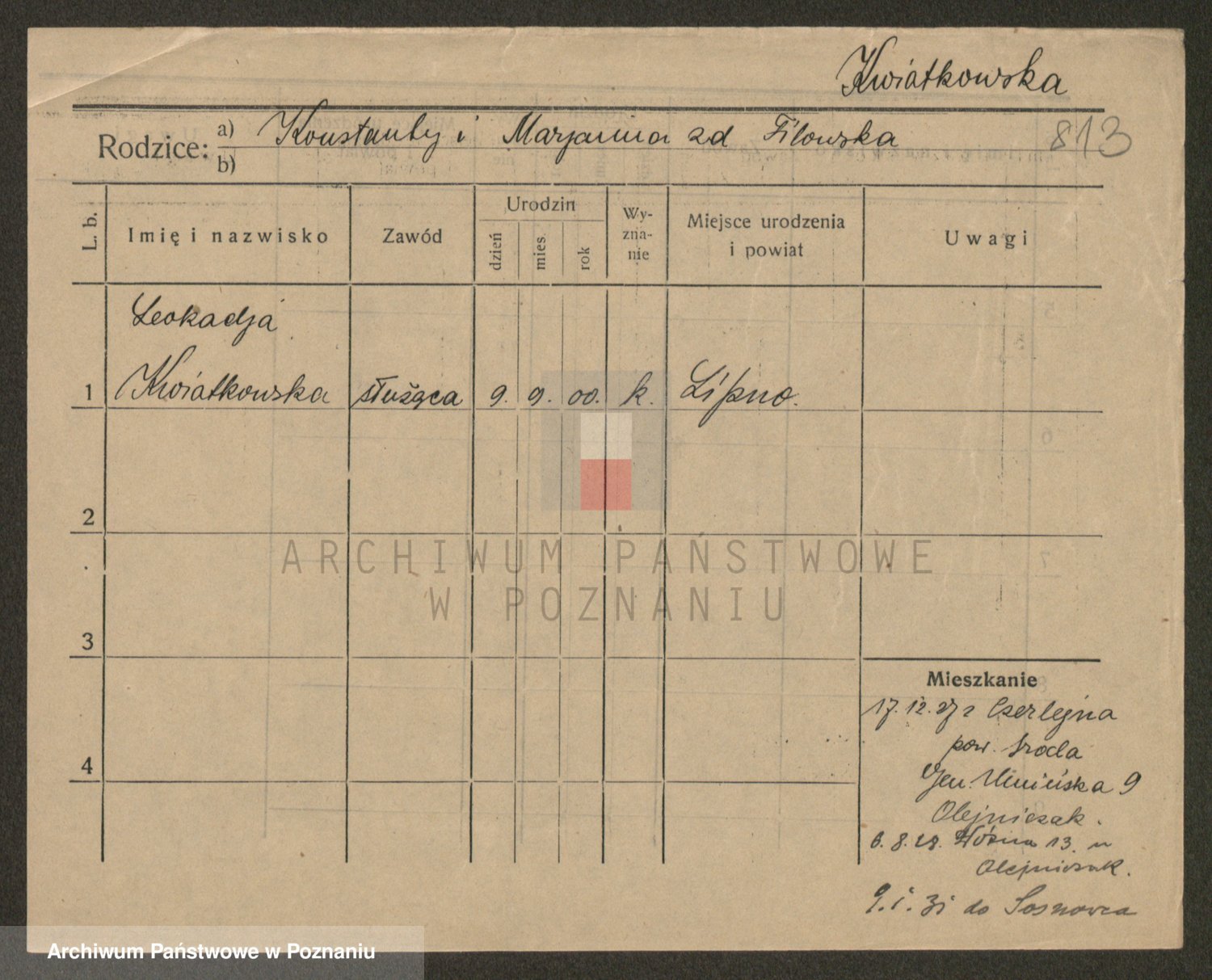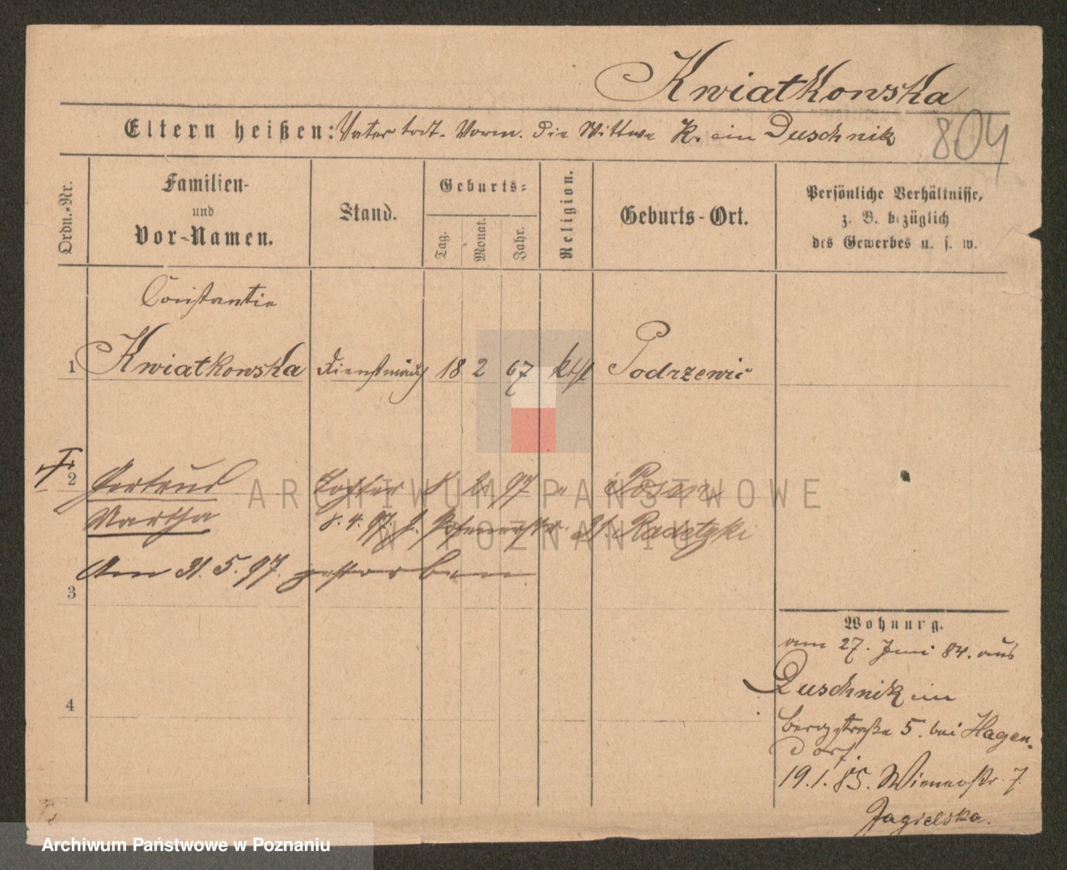 Kwiatkowski z d. Szewczyńska, Konstancja