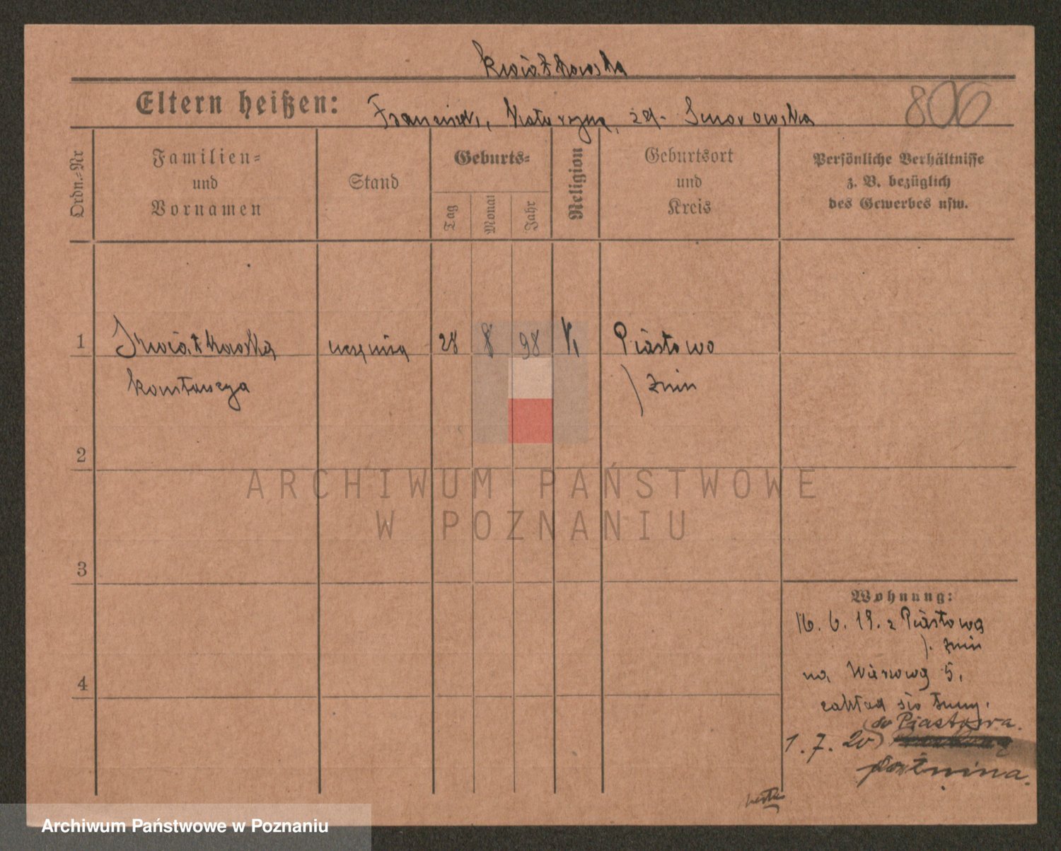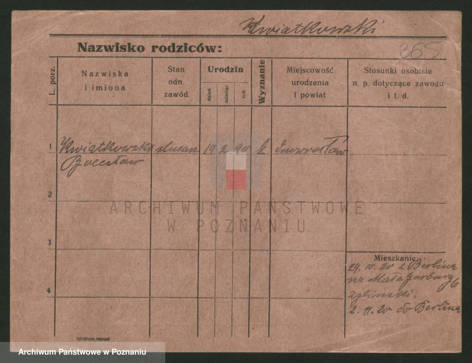 Kwiatkowski z d. Beryt, Bronisława