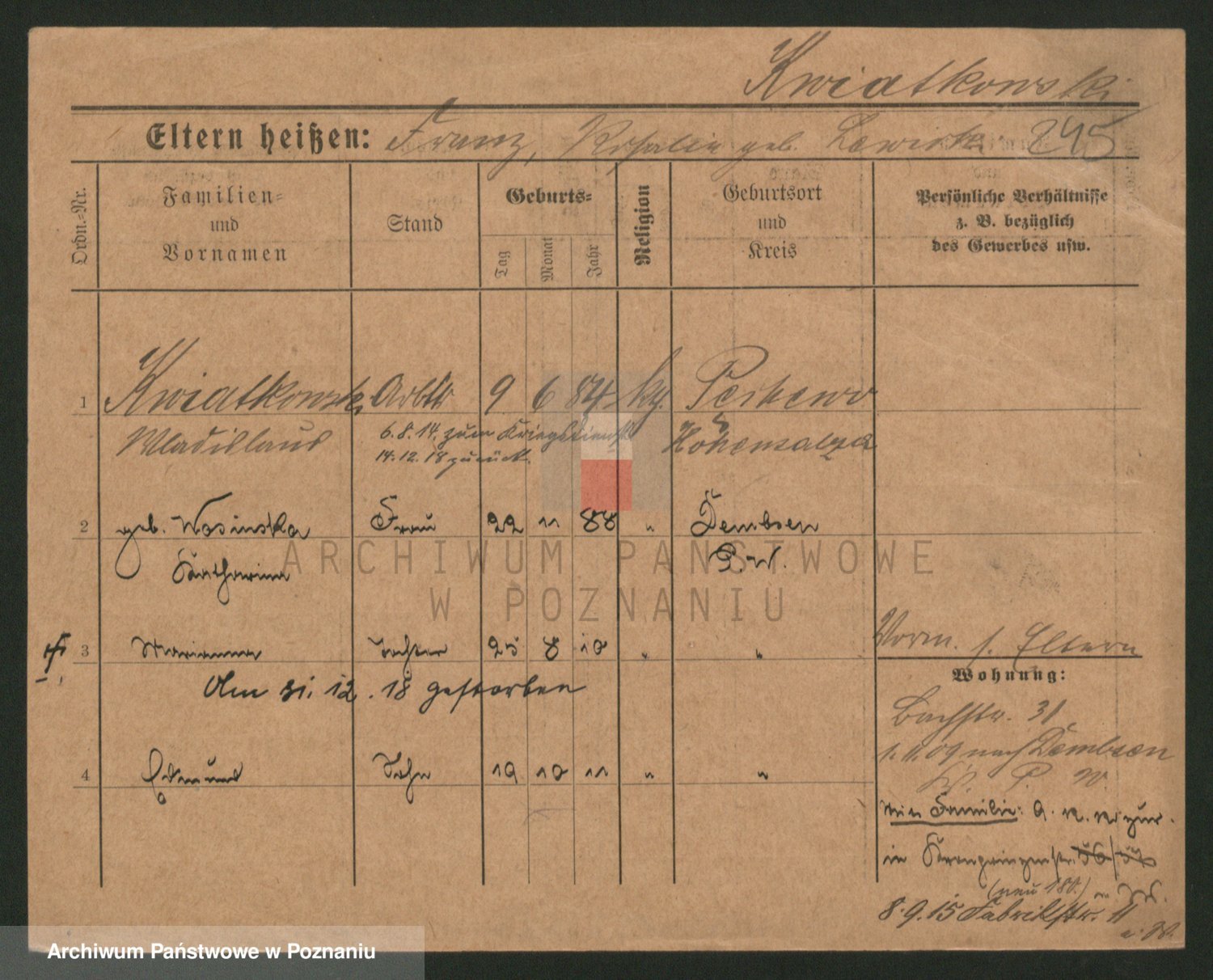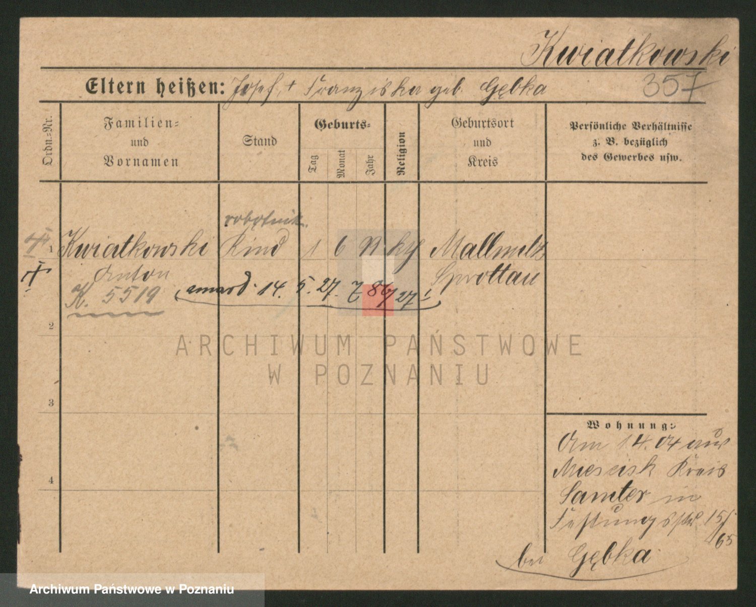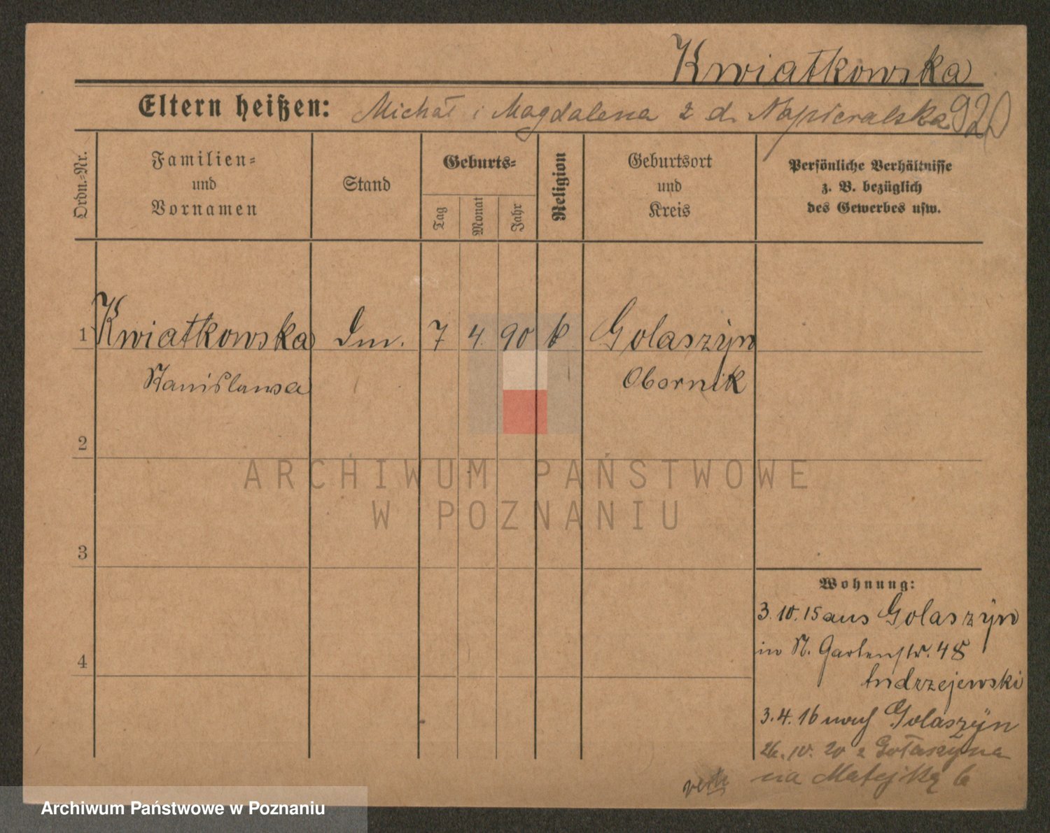 Kwiatkowski z d. Malicka, Margarethe