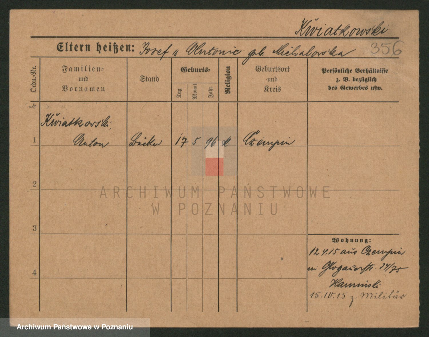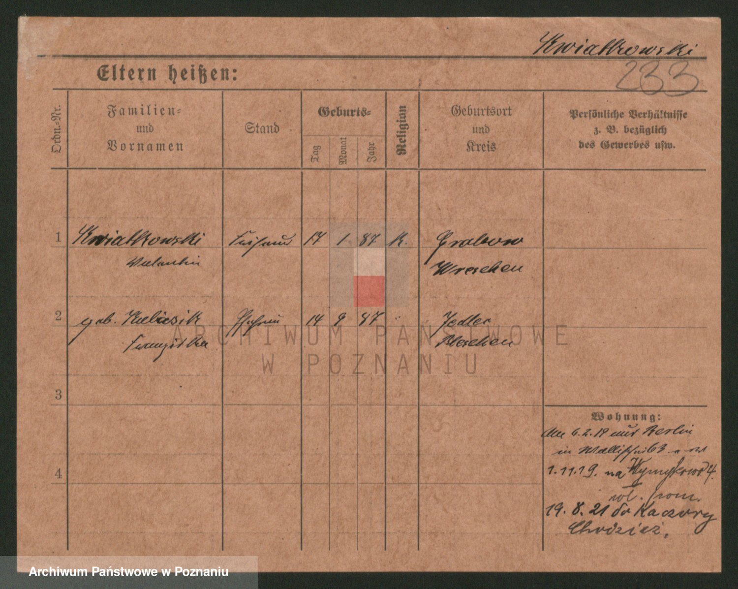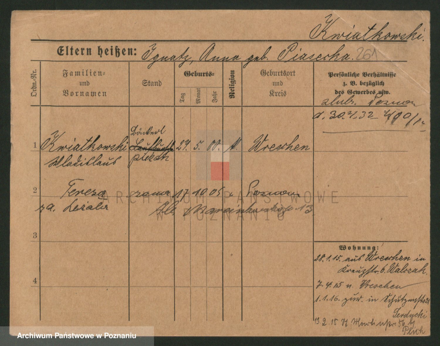 Kwiatkowski z d. Malicka, Margarethe