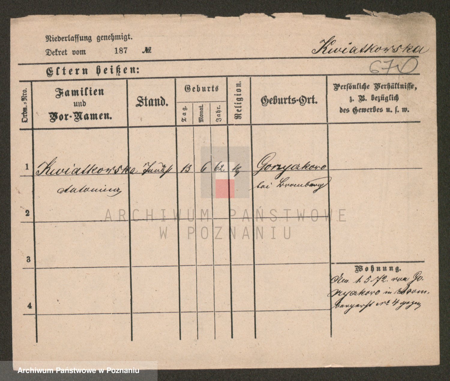 Kwiatkowski z d. Gąsiorowska, Wiktorja
