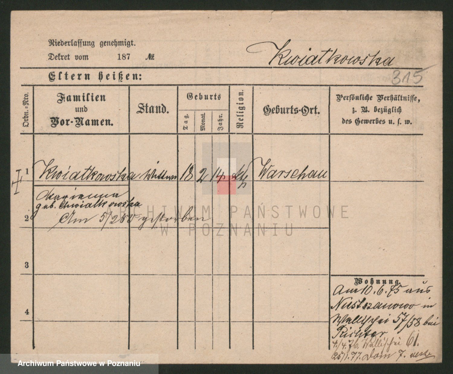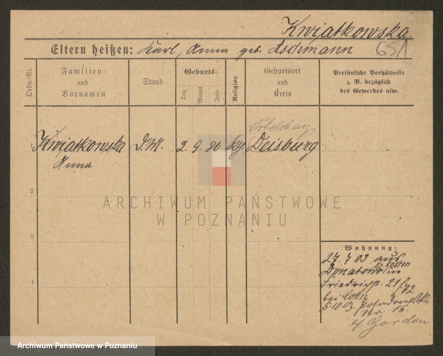 Kwiatkowski z d. Kempinska, Franziska