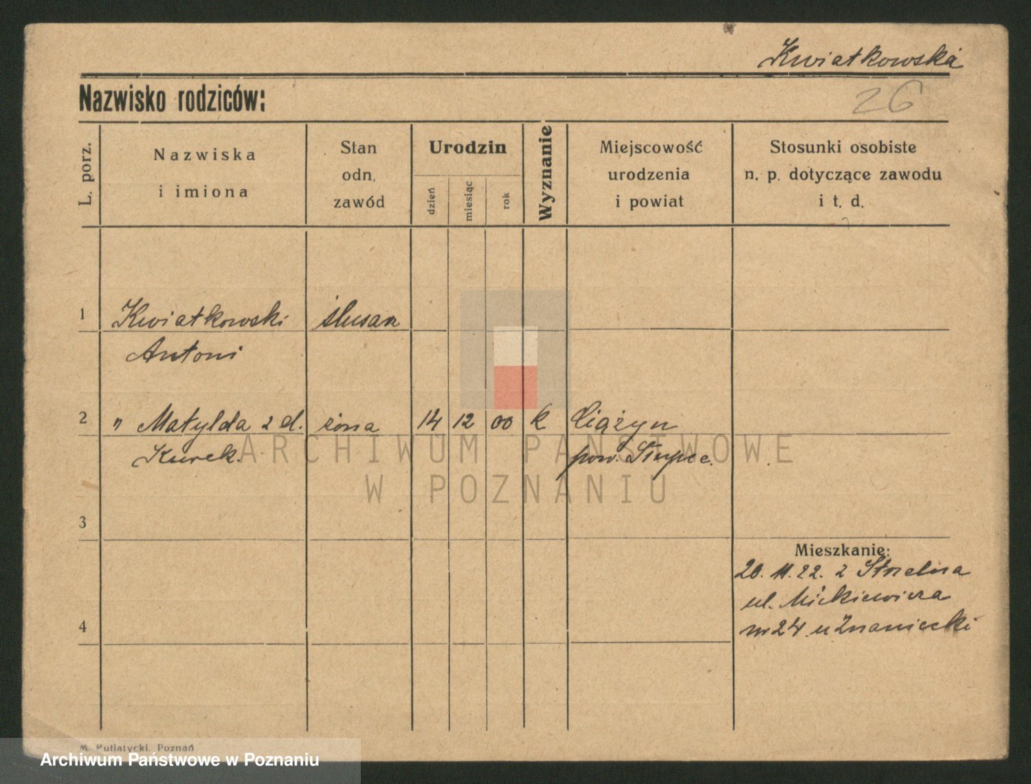 Kwiatkowski z d. Kurek, Matylda