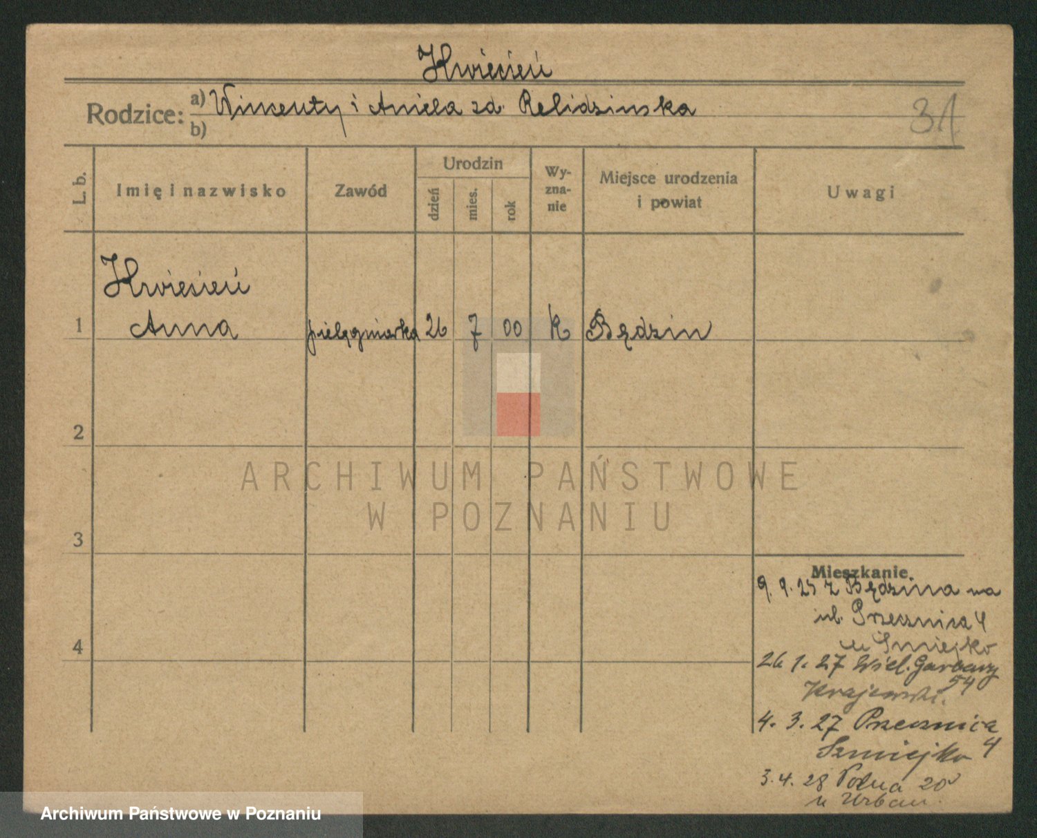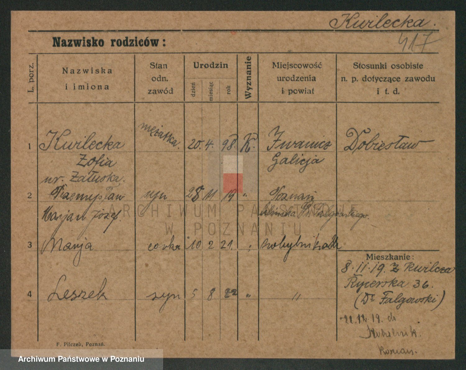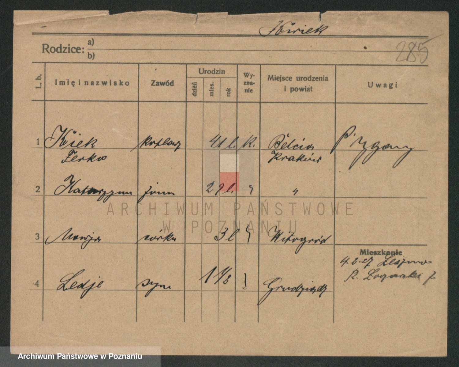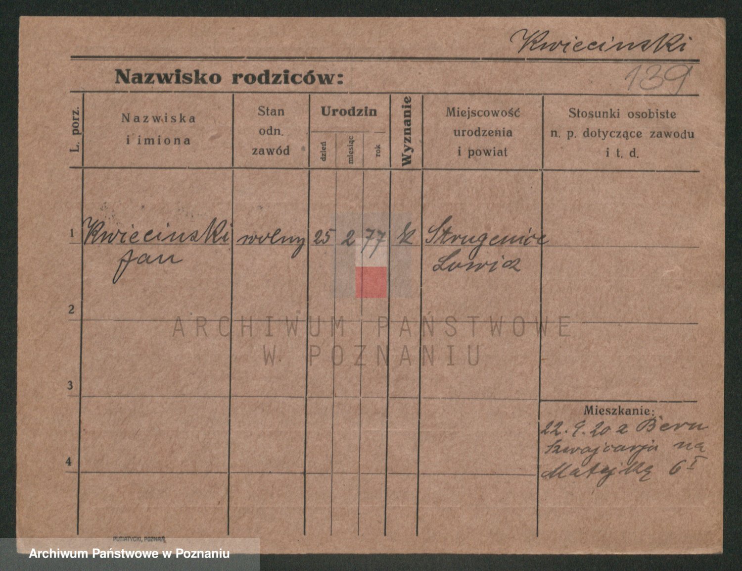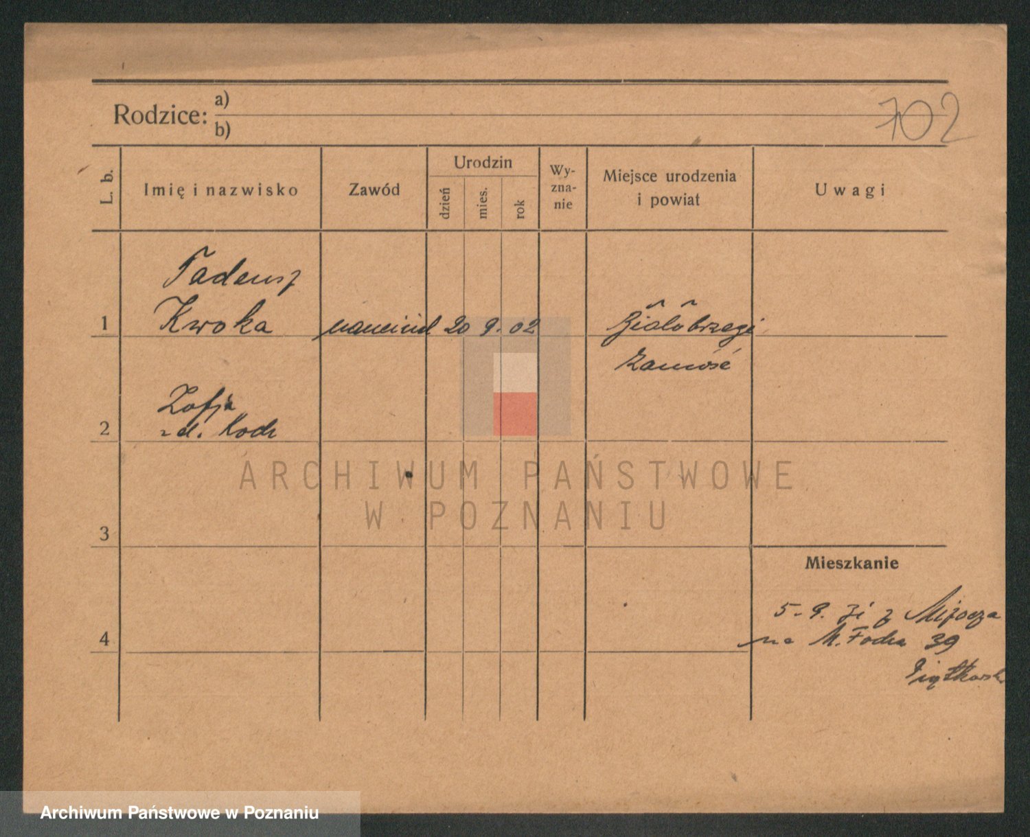 Podgląd karty osobowej dostępny jest po kliknięciu na nazwisko lub ikonkę karty. Można dokonywać powiększenia (ikony na górze) lub przechodzić między kolejnymi skanami (strzałki po bokach).