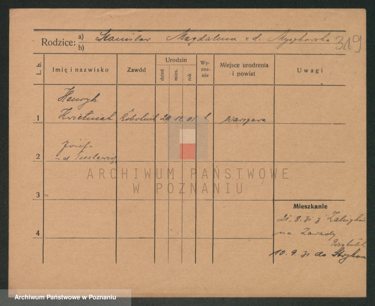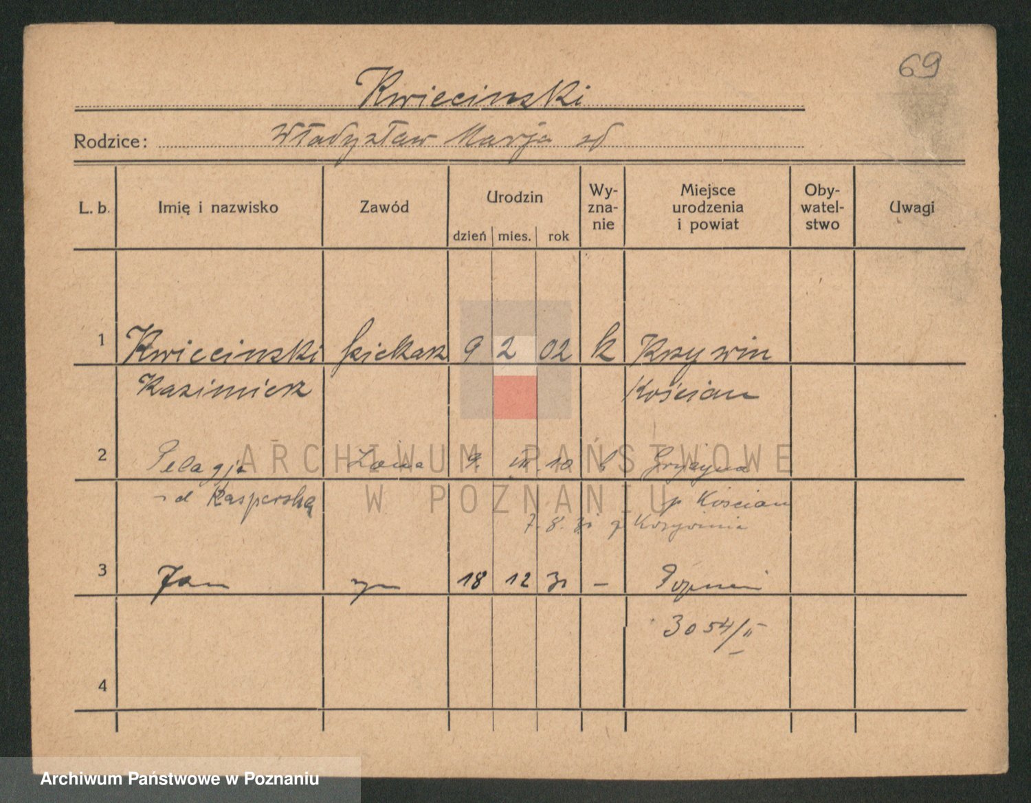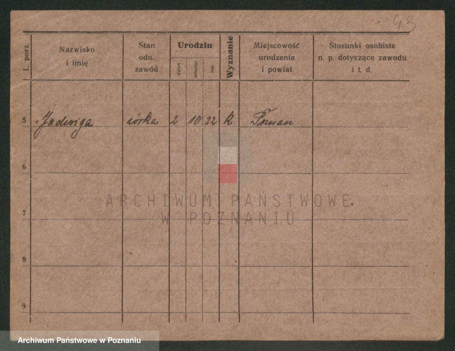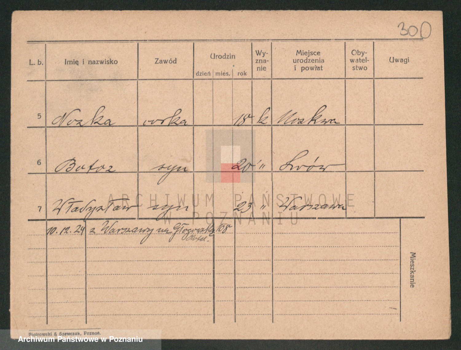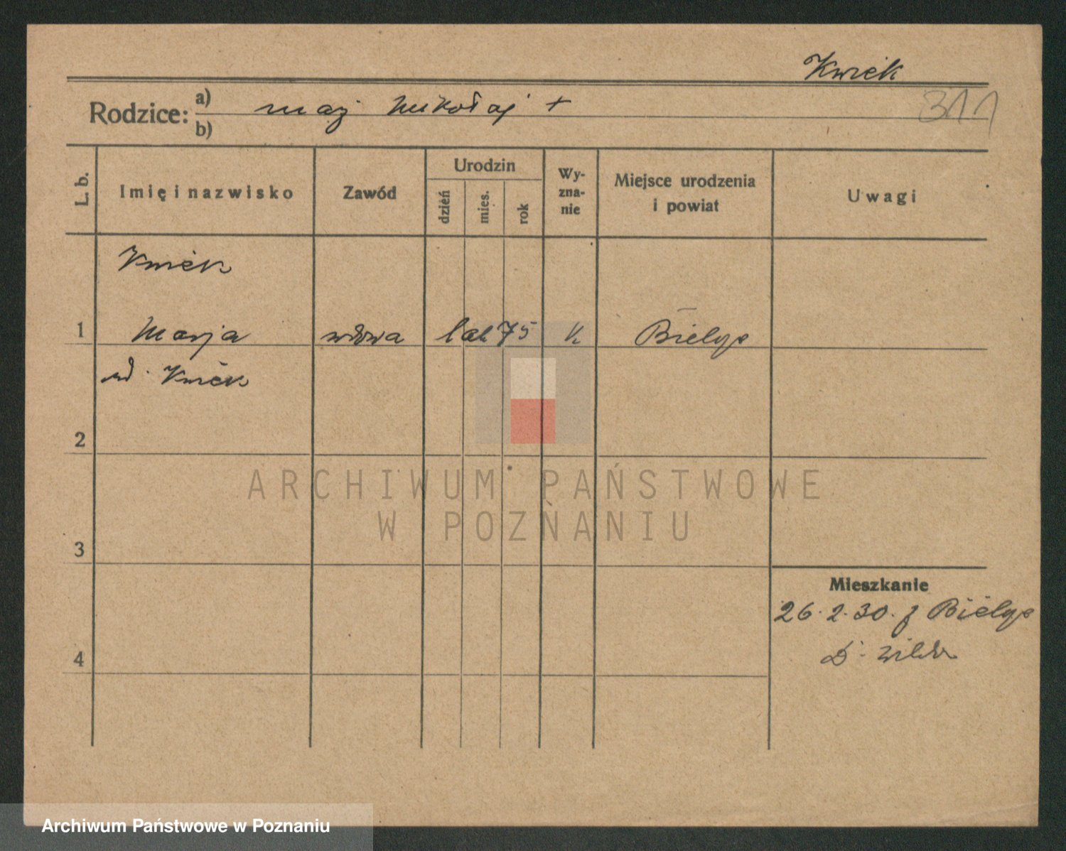 Podgląd karty osobowej dostępny jest po kliknięciu na nazwisko lub ikonkę karty. Można dokonywać powiększenia (ikony na górze) lub przechodzić między kolejnymi skanami (strzałki po bokach).