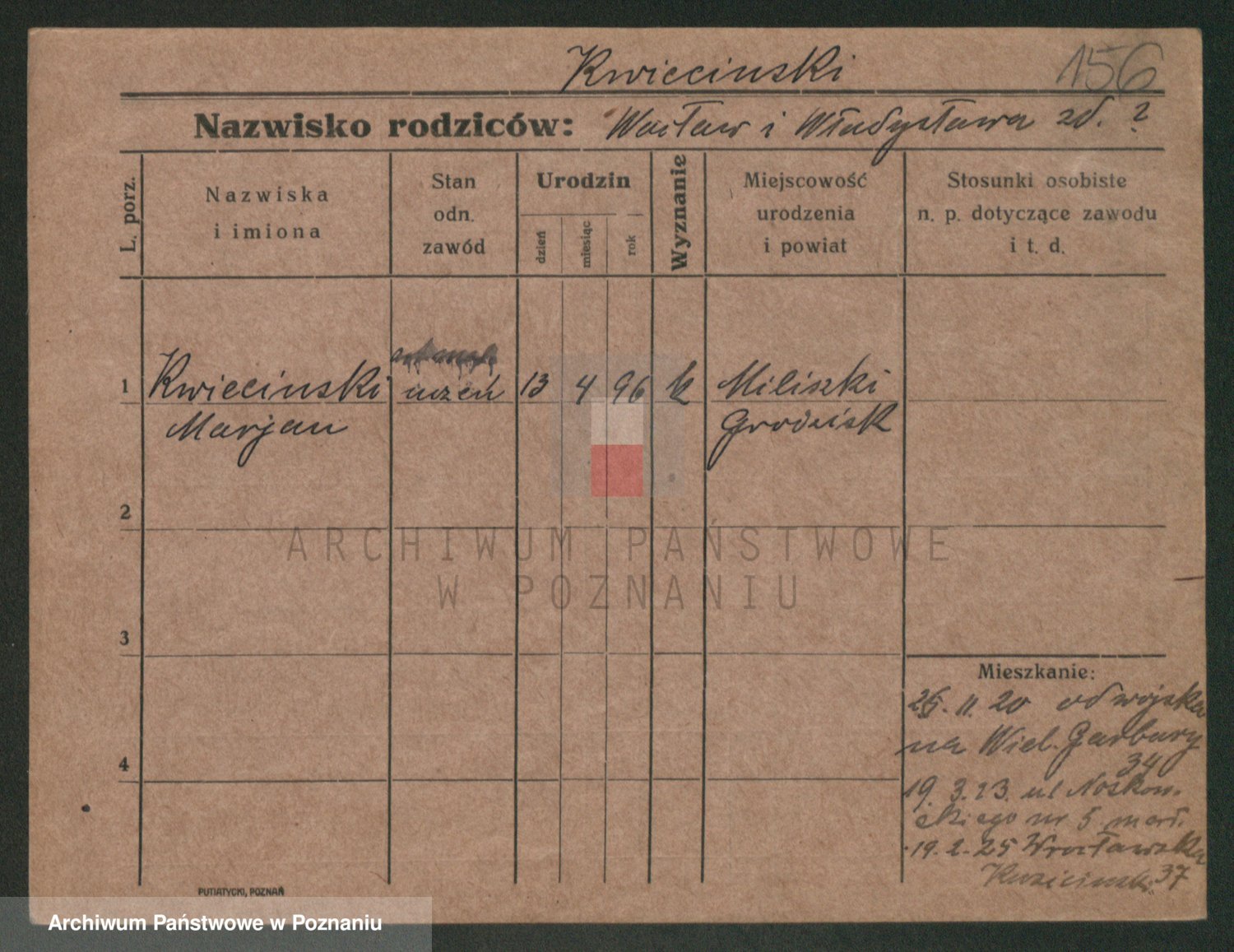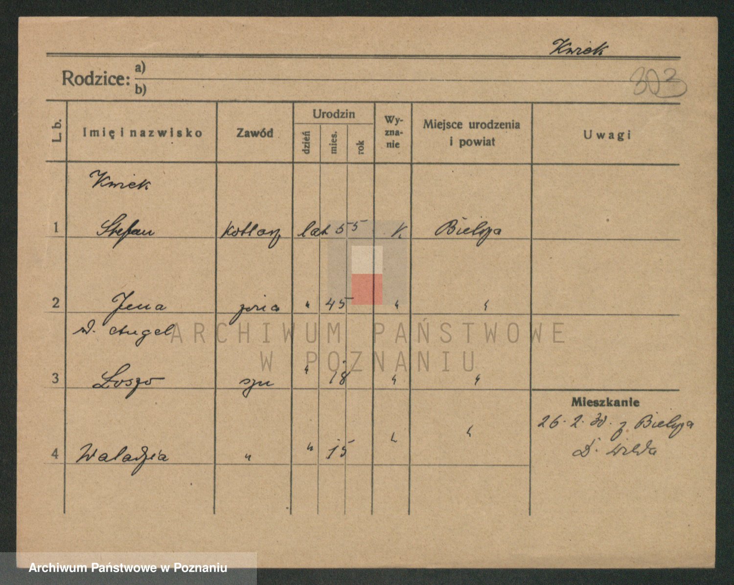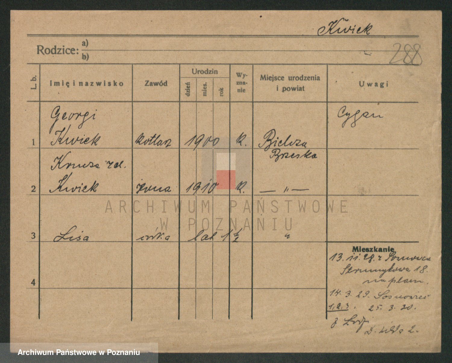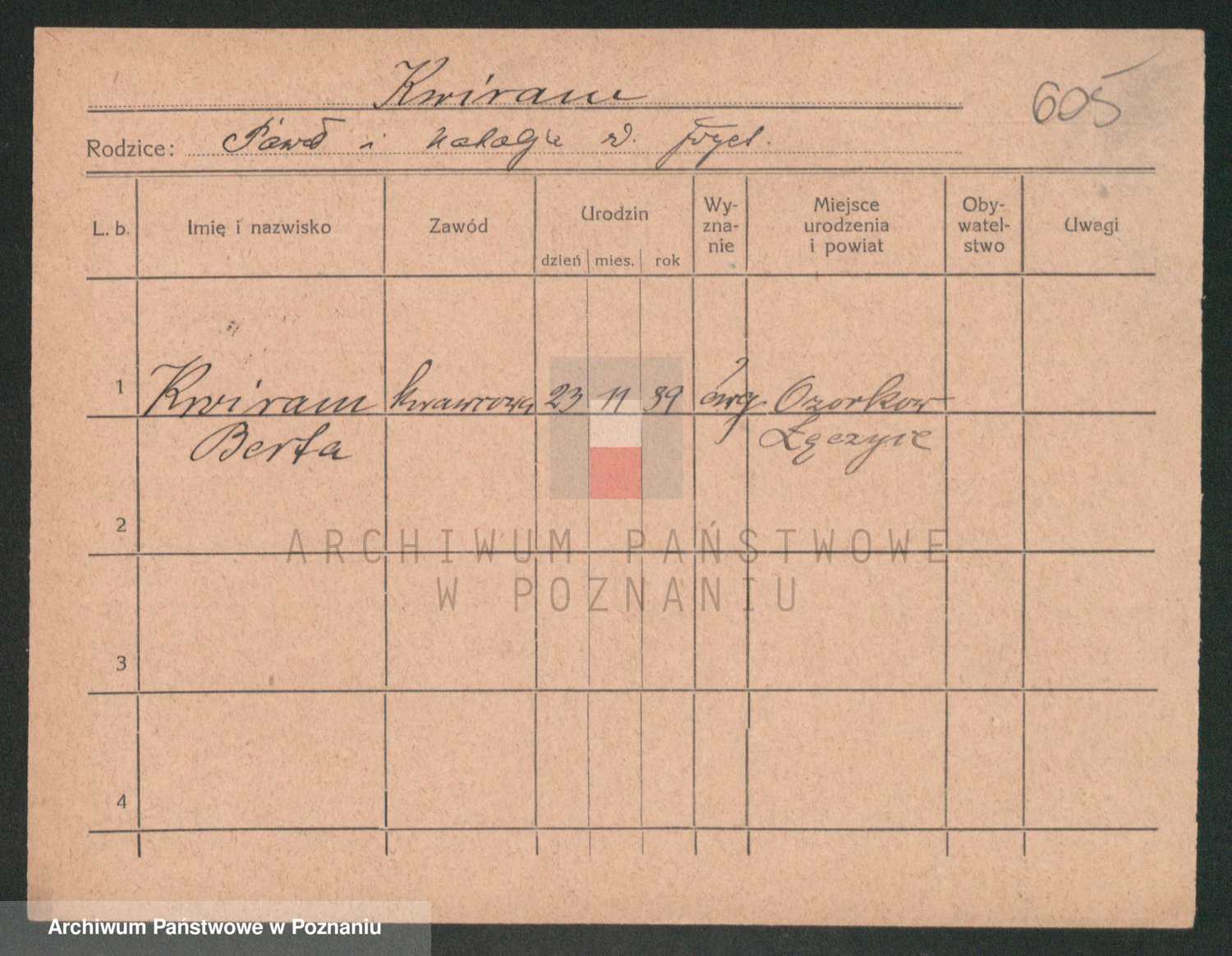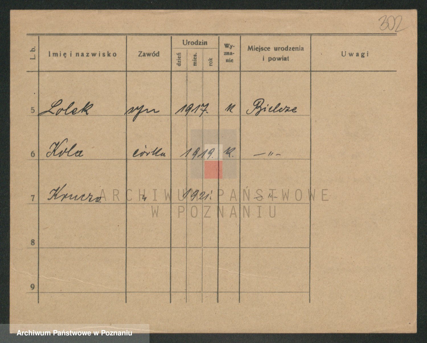 Podgląd karty osobowej dostępny jest po kliknięciu na nazwisko lub ikonkę karty. Można dokonywać powiększenia (ikony na górze) lub przechodzić między kolejnymi skanami (strzałki po bokach).