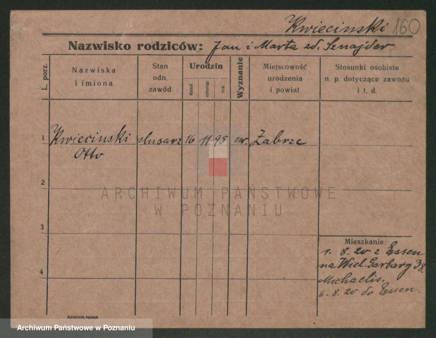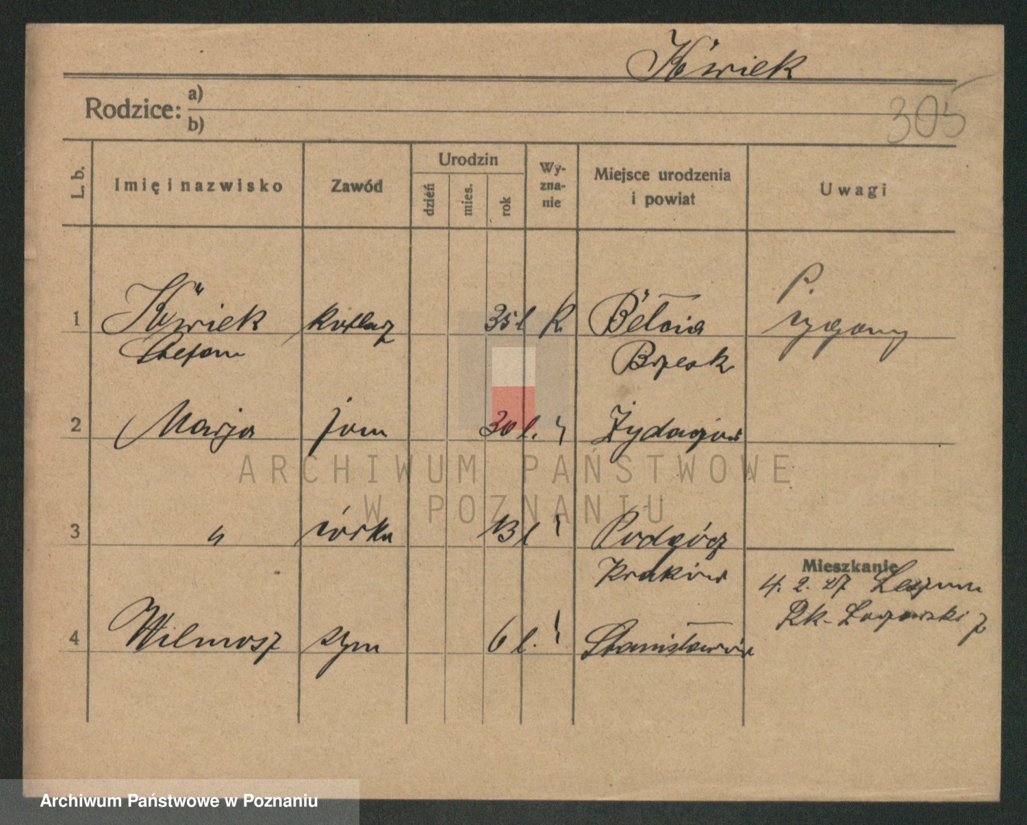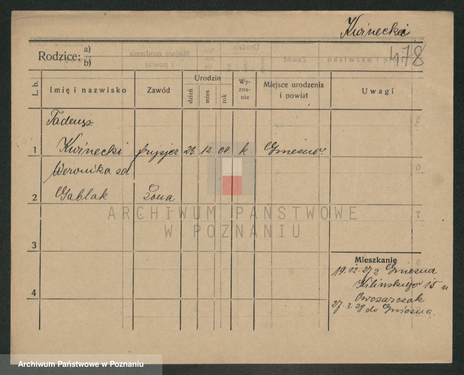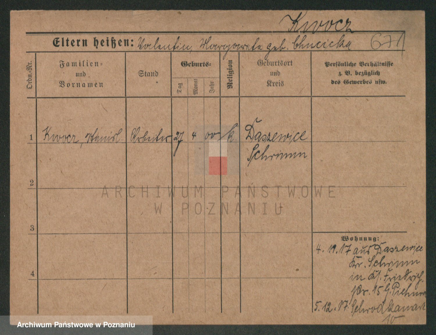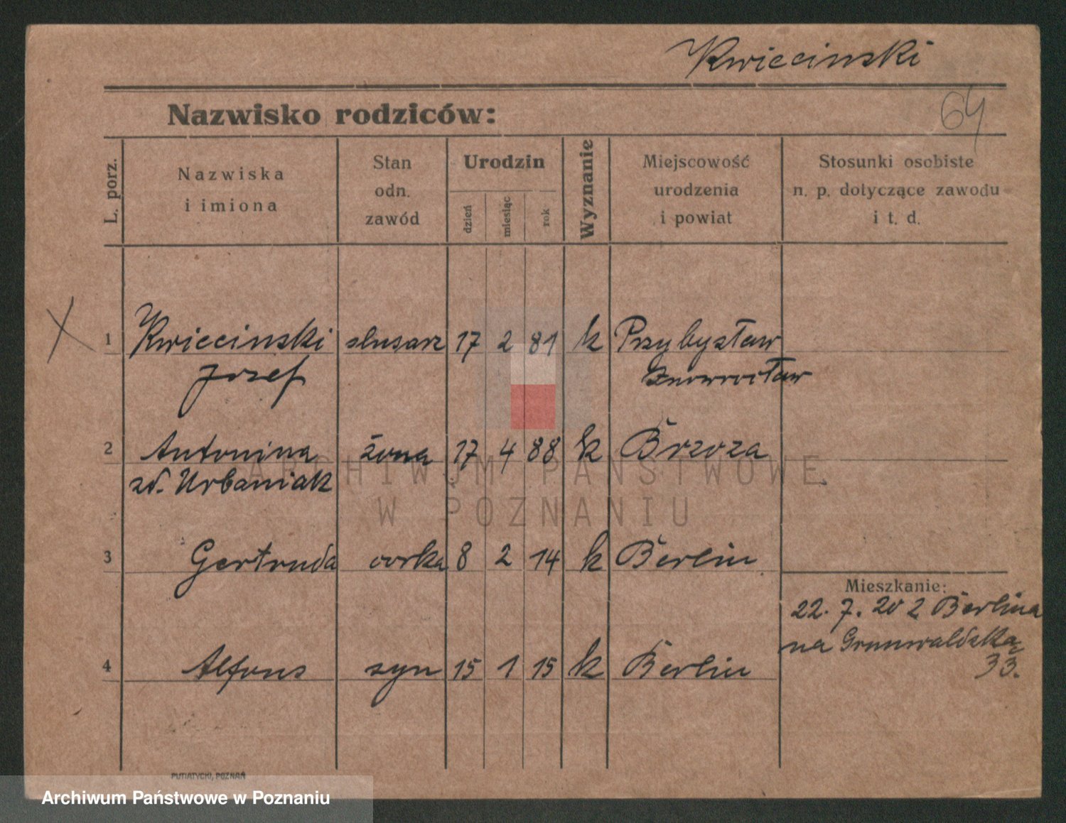 Podgląd karty osobowej dostępny jest po kliknięciu na nazwisko lub ikonkę karty. Można dokonywać powiększenia (ikony na górze) lub przechodzić między kolejnymi skanami (strzałki po bokach).