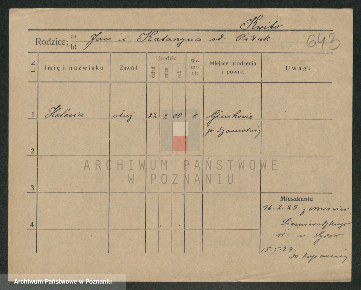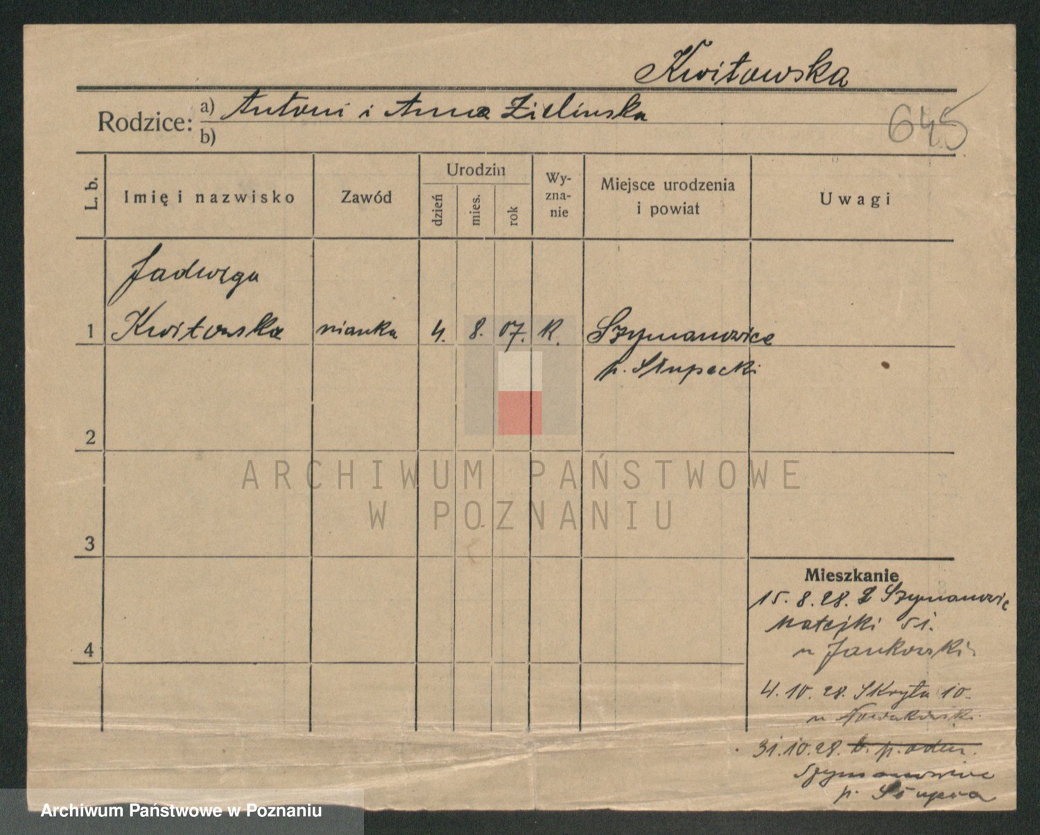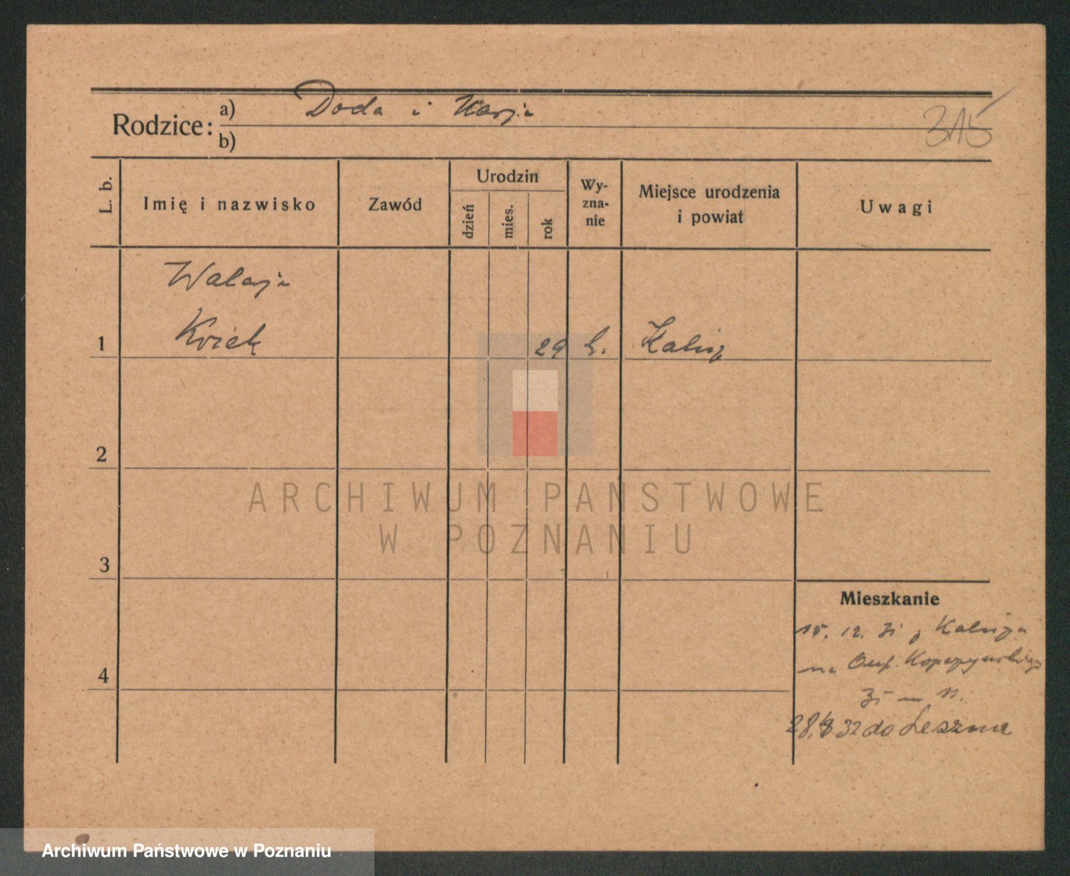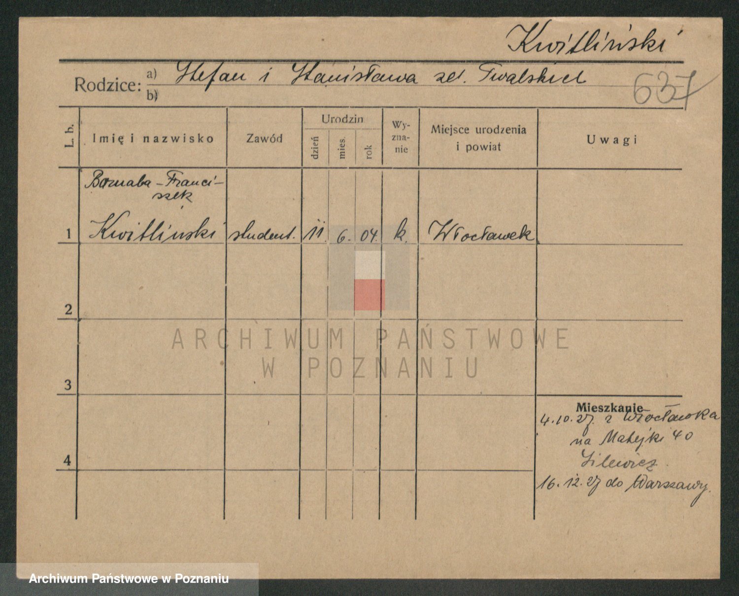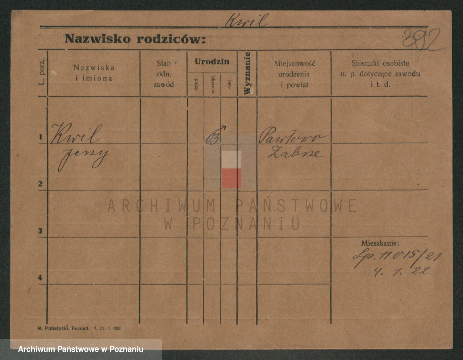 Podgląd karty osobowej dostępny jest po kliknięciu na nazwisko lub ikonkę karty. Można dokonywać powiększenia (ikony na górze) lub przechodzić między kolejnymi skanami (strzałki po bokach).