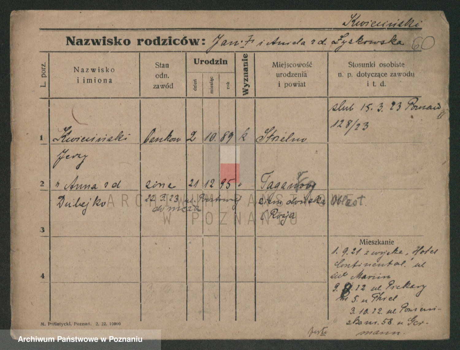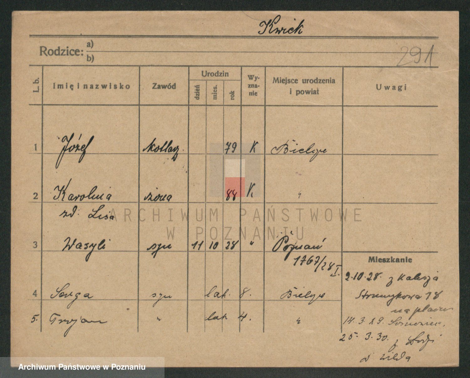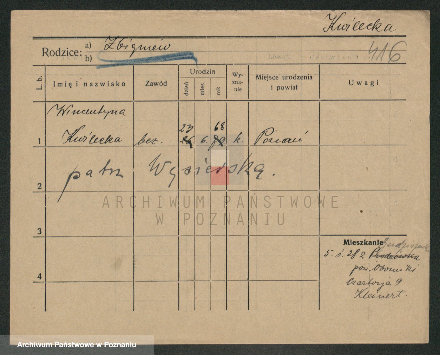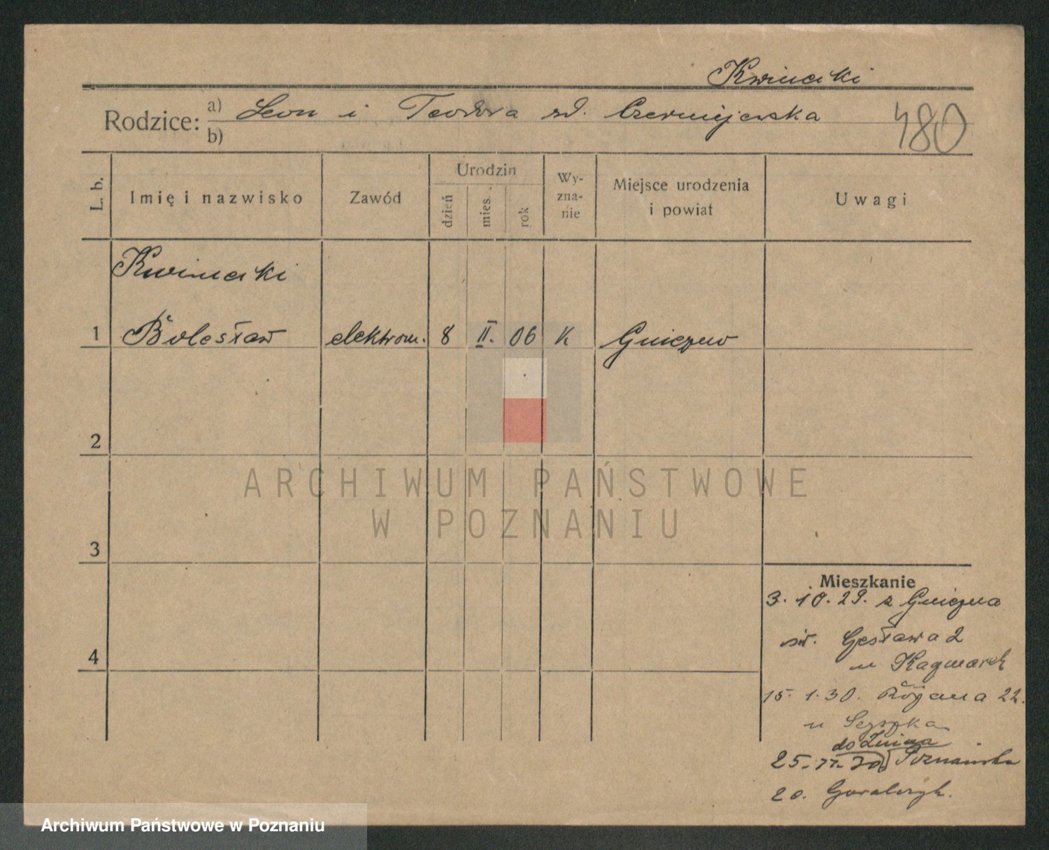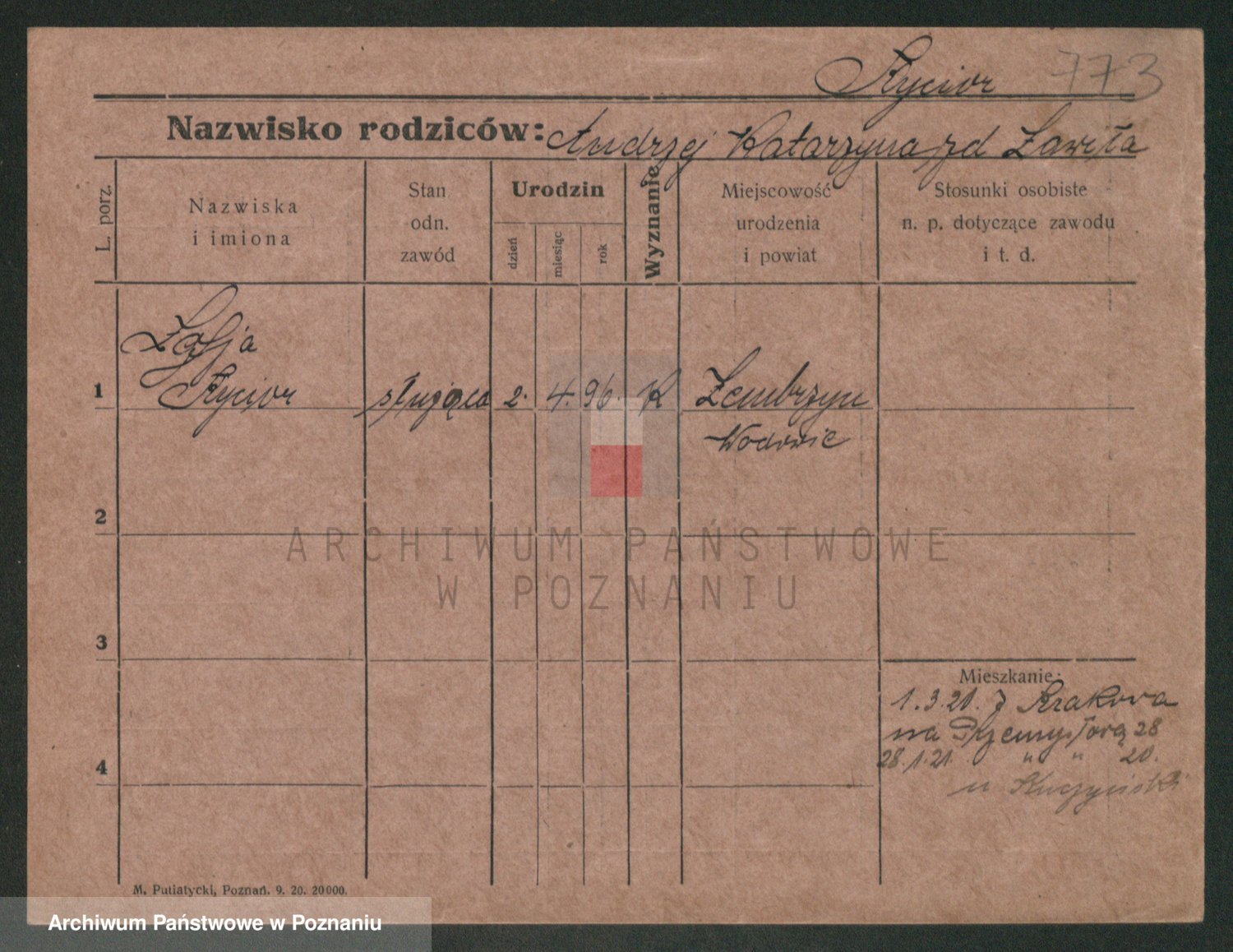 Podgląd karty osobowej dostępny jest po kliknięciu na nazwisko lub ikonkę karty. Można dokonywać powiększenia (ikony na górze) lub przechodzić między kolejnymi skanami (strzałki po bokach).