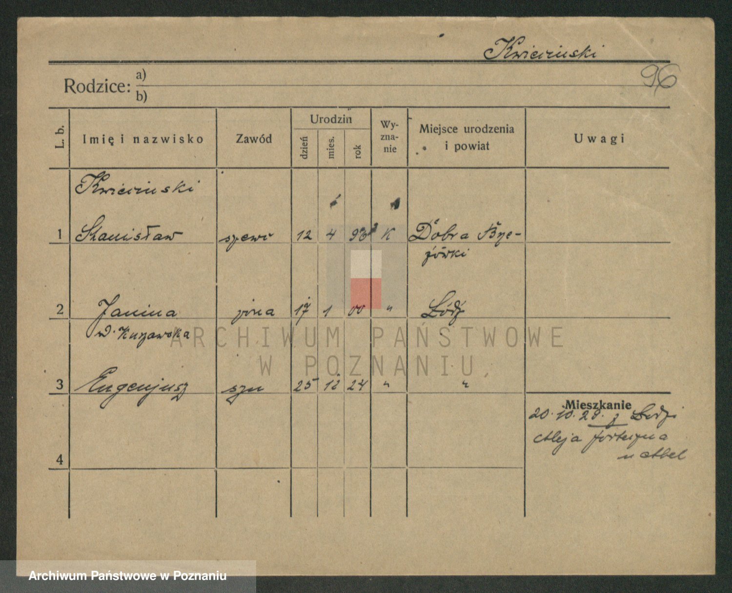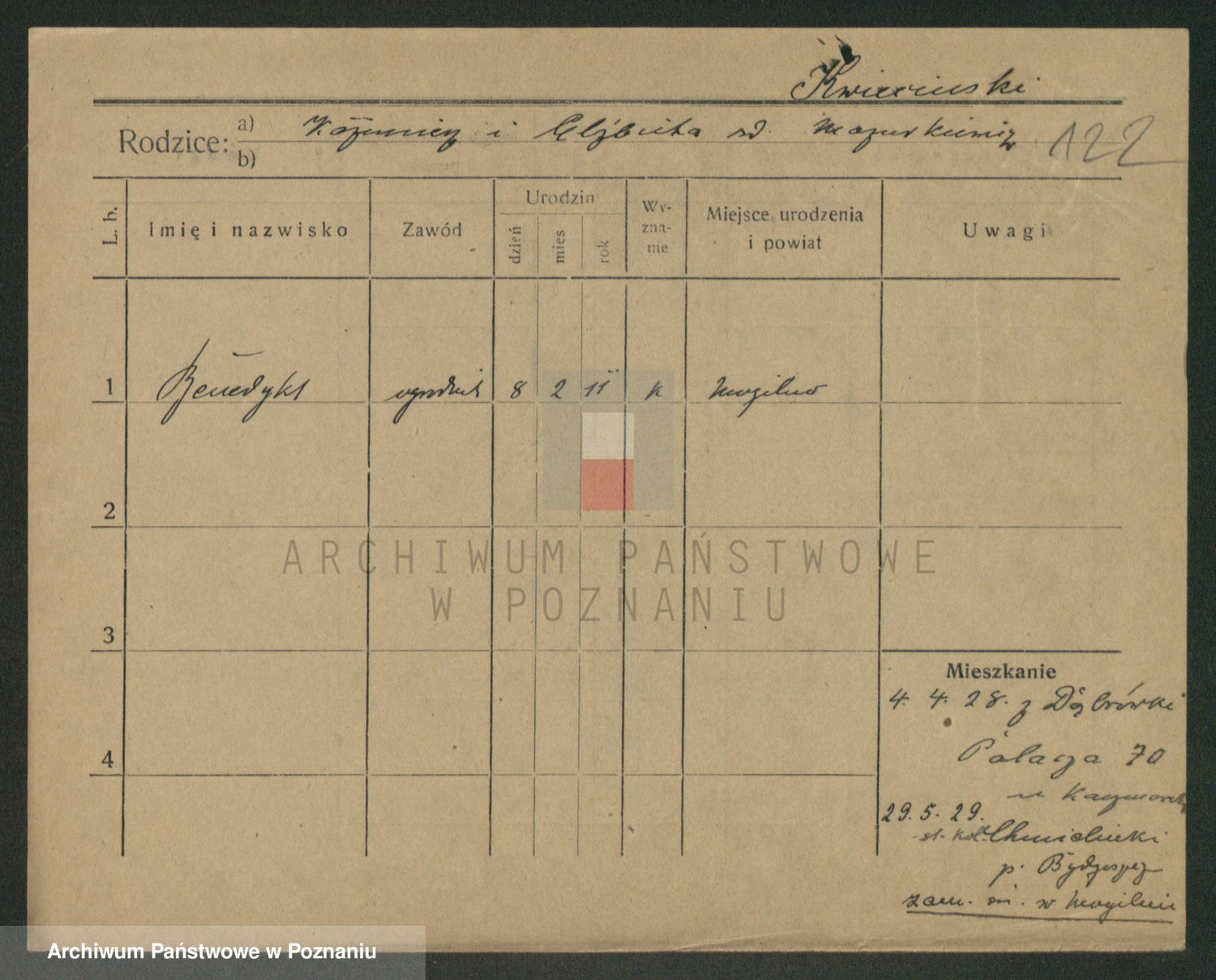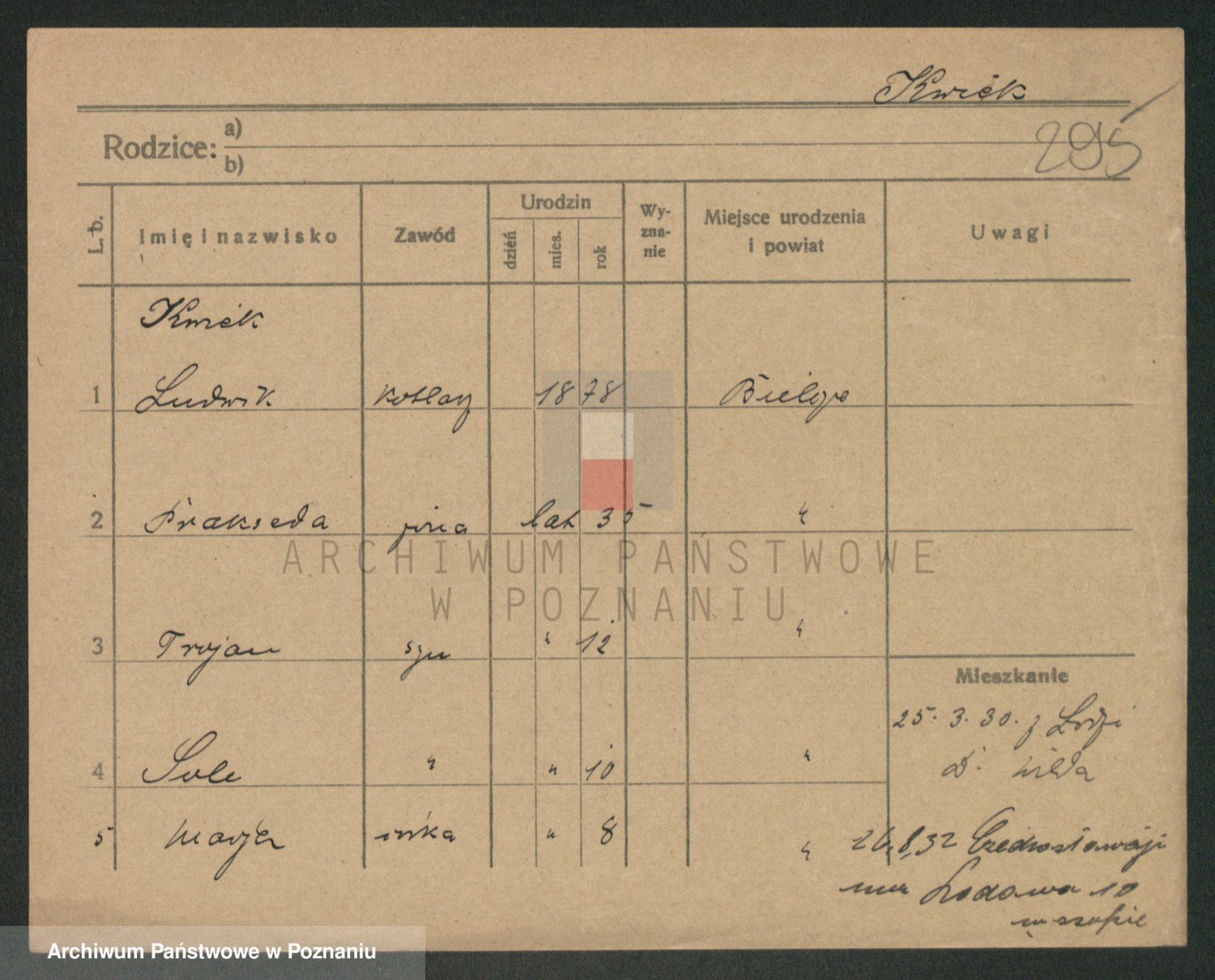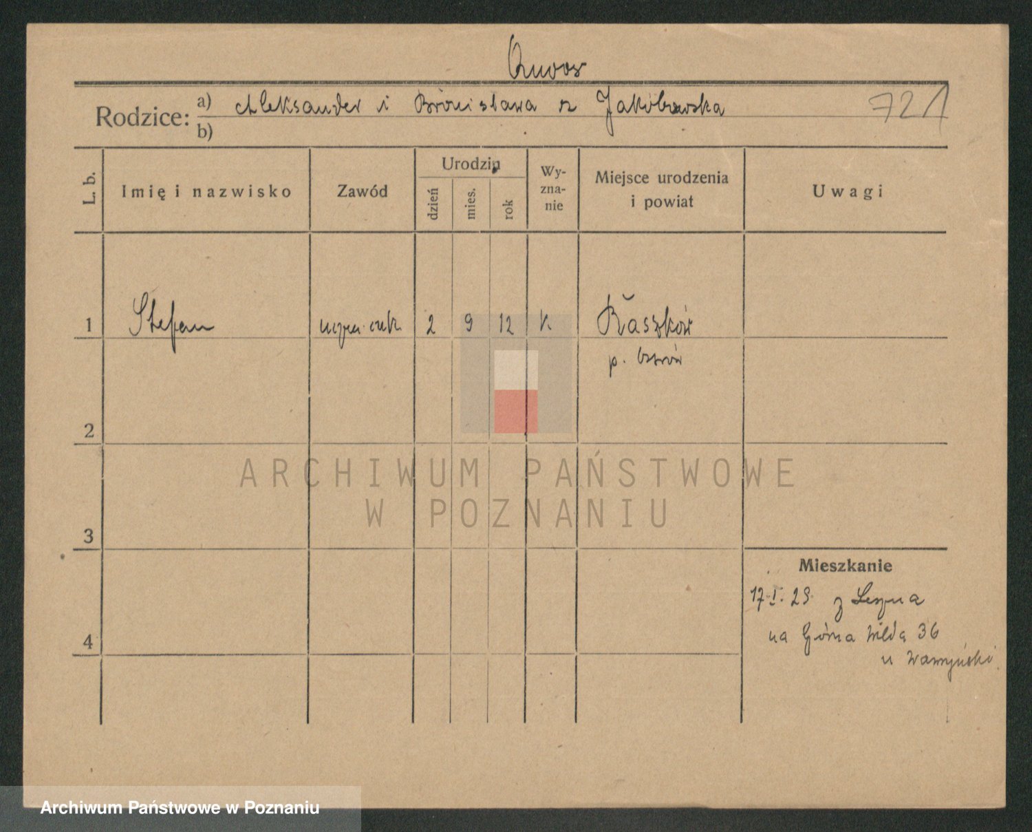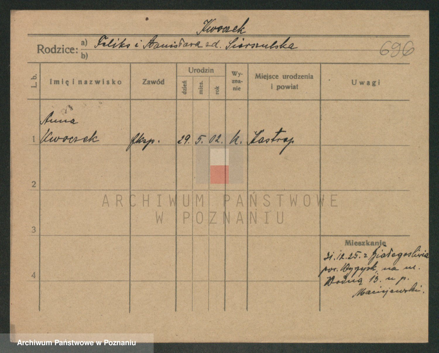 Podgląd karty osobowej dostępny jest po kliknięciu na nazwisko lub ikonkę karty. Można dokonywać powiększenia (ikony na górze) lub przechodzić między kolejnymi skanami (strzałki po bokach).