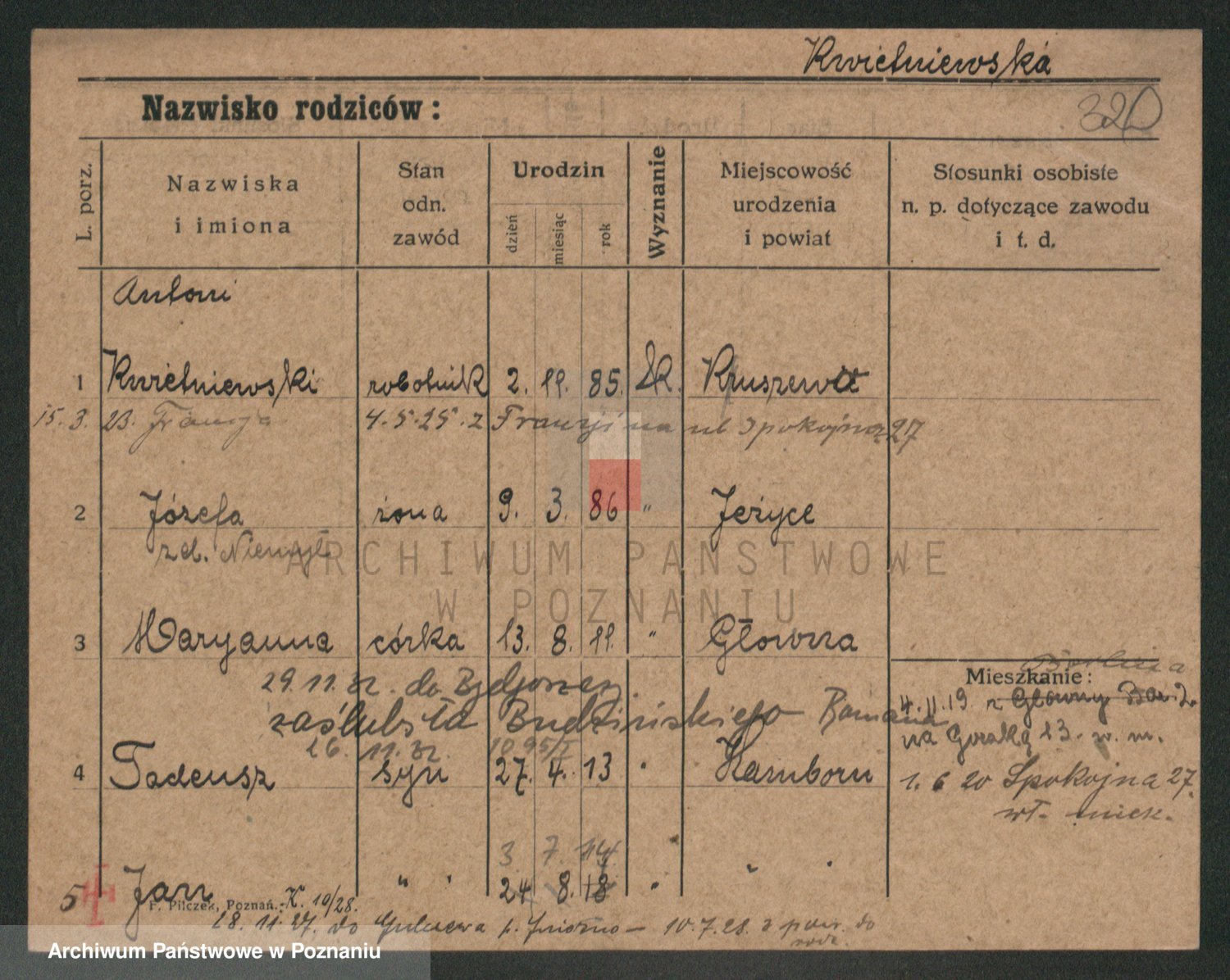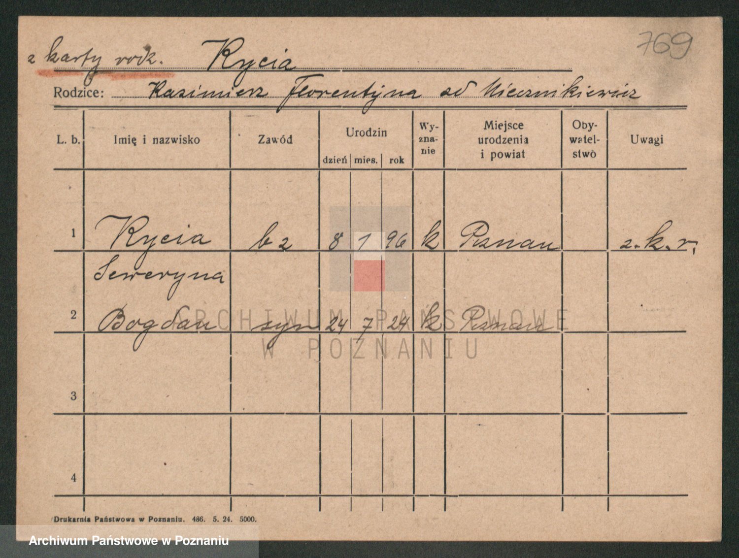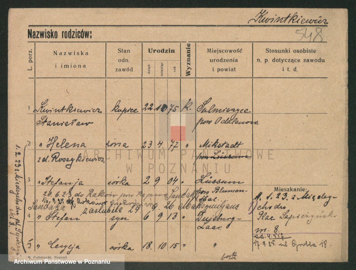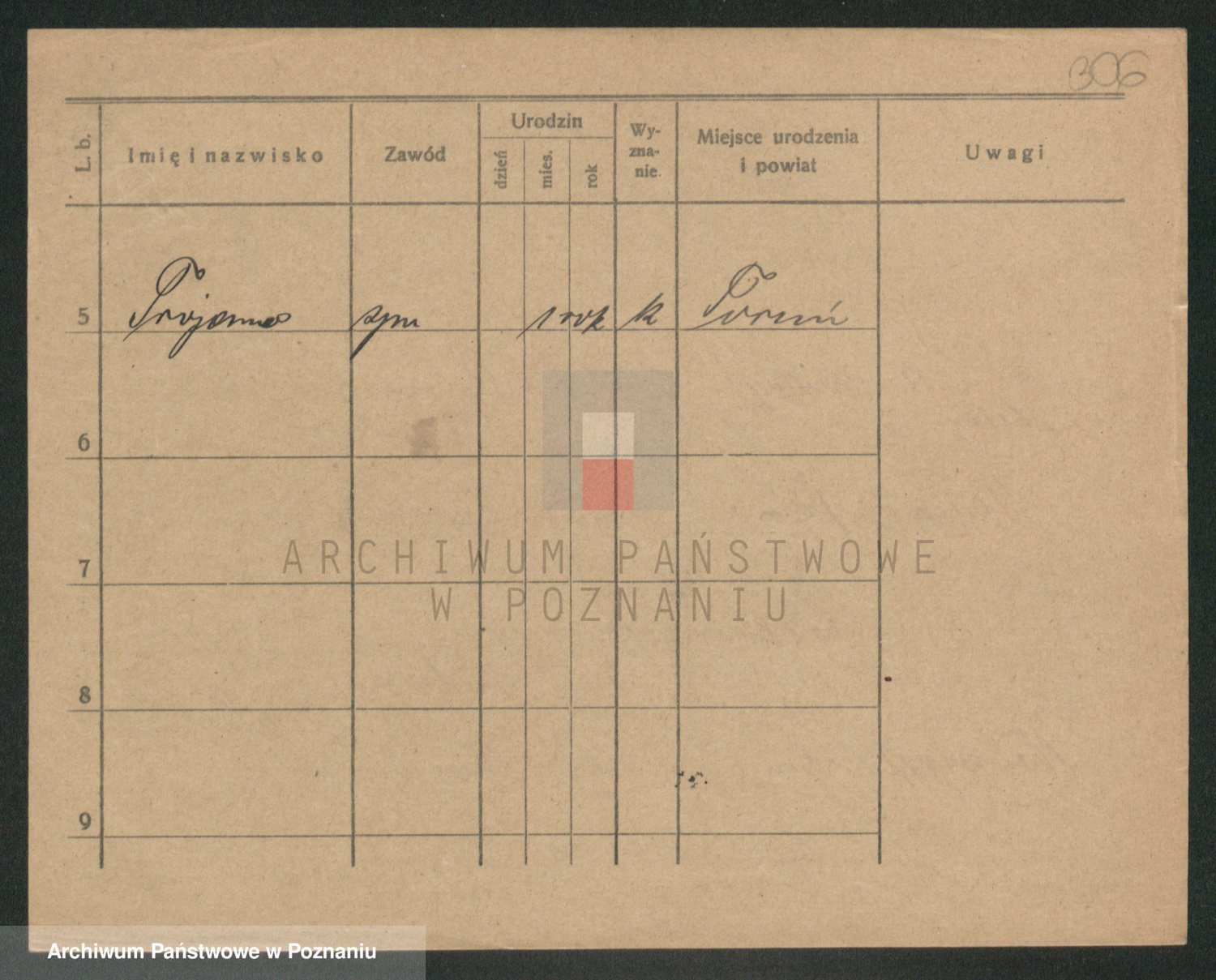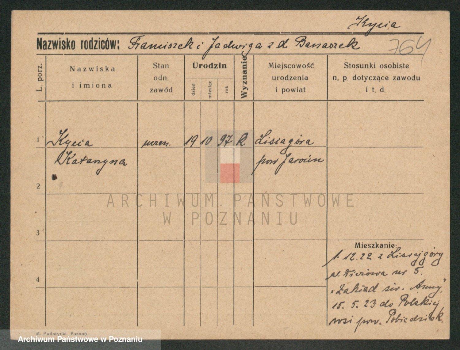Podgląd karty osobowej dostępny jest po kliknięciu na nazwisko lub ikonkę karty. Można dokonywać powiększenia (ikony na górze) lub przechodzić między kolejnymi skanami (strzałki po bokach).