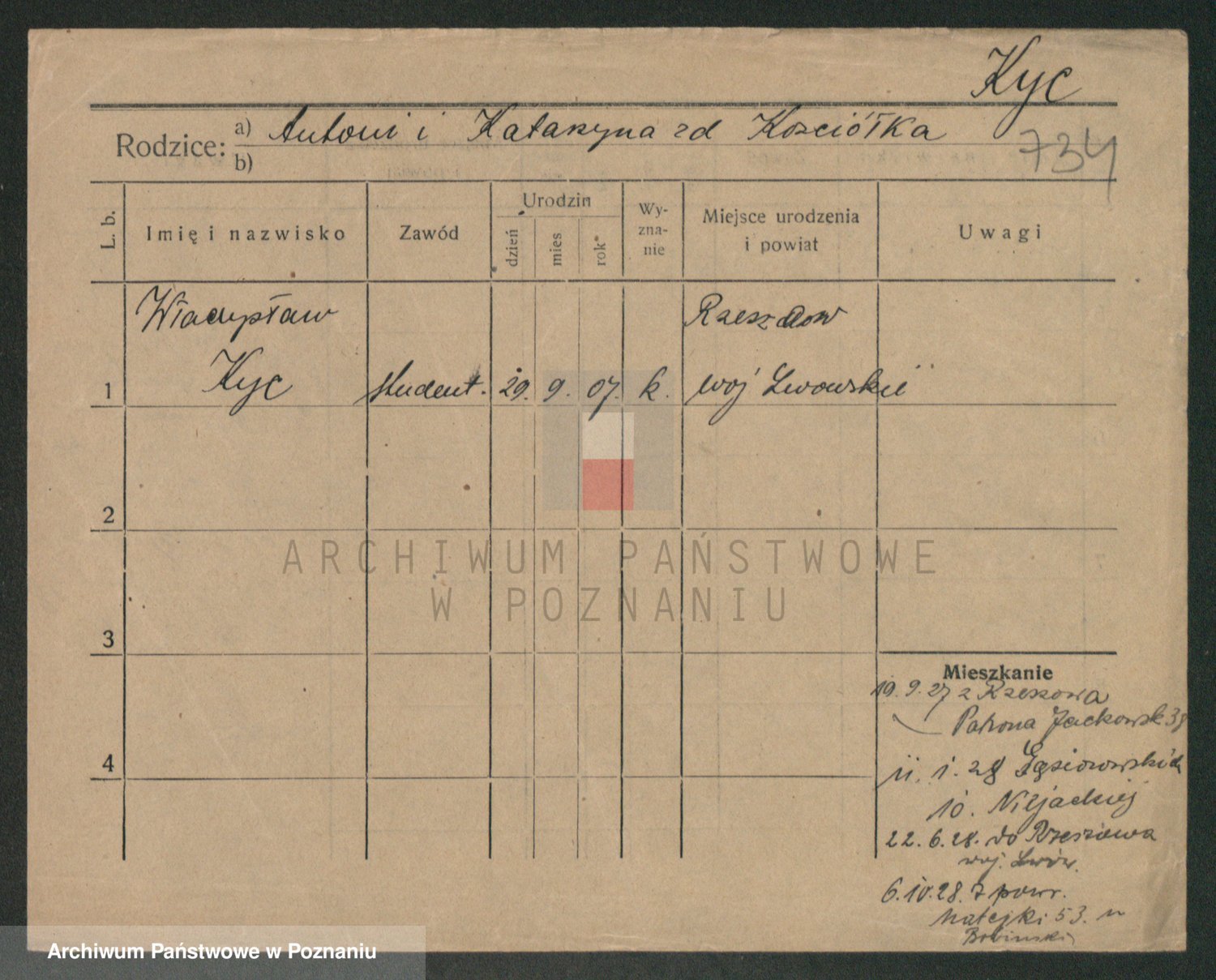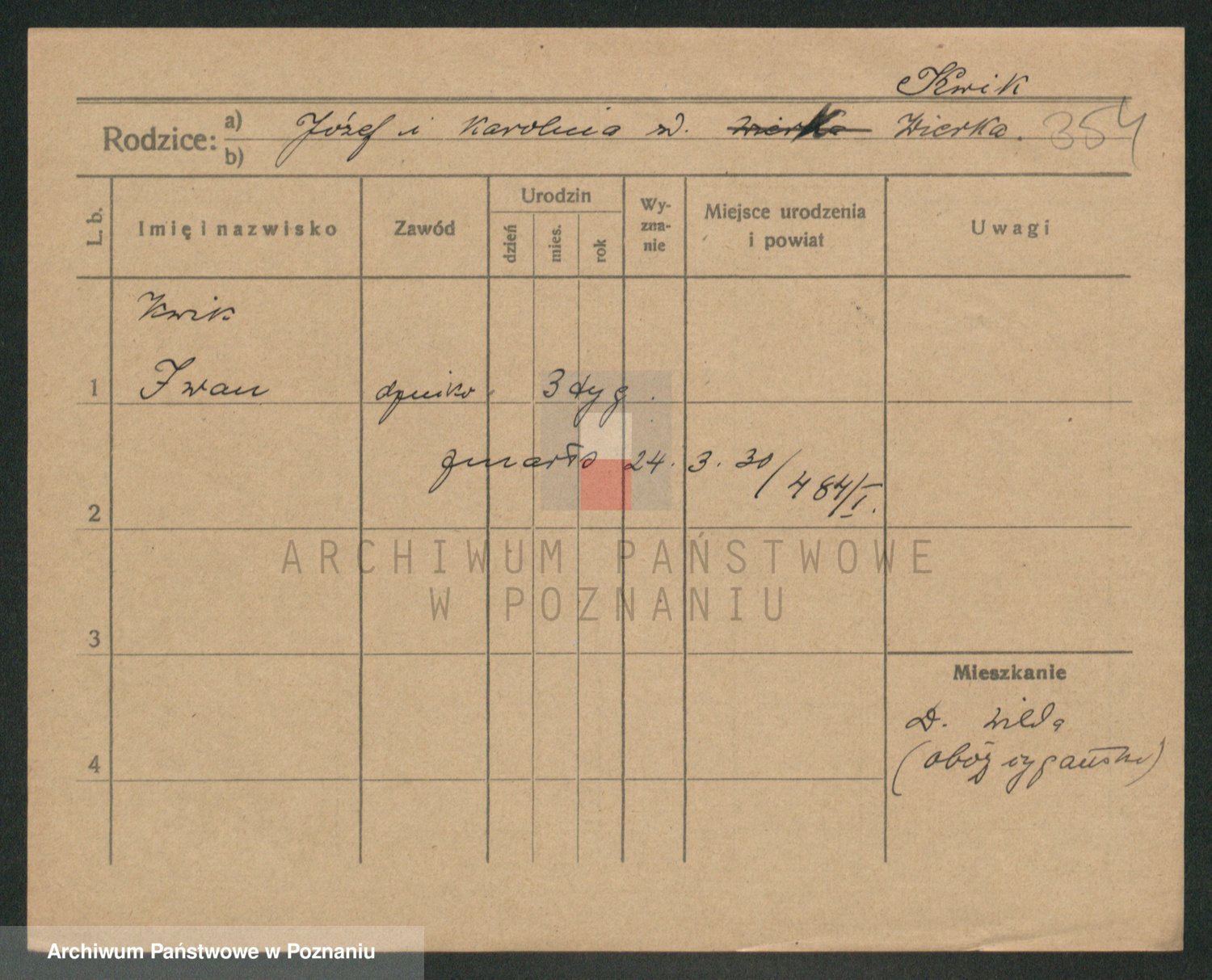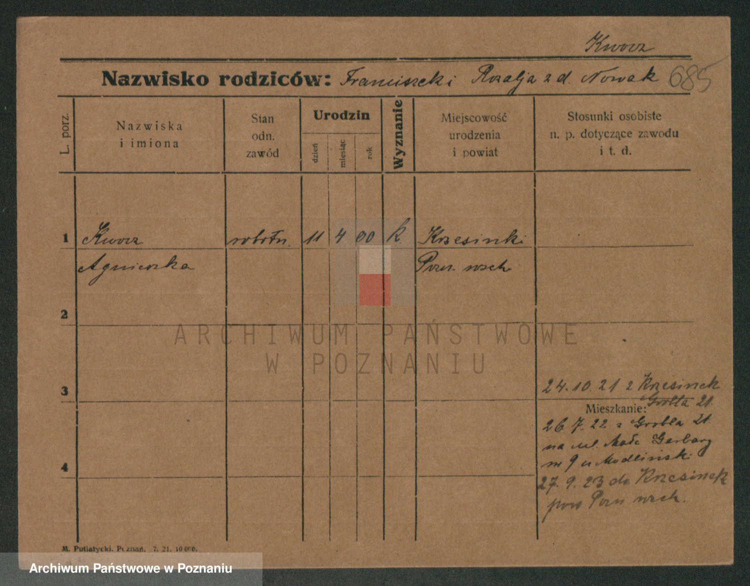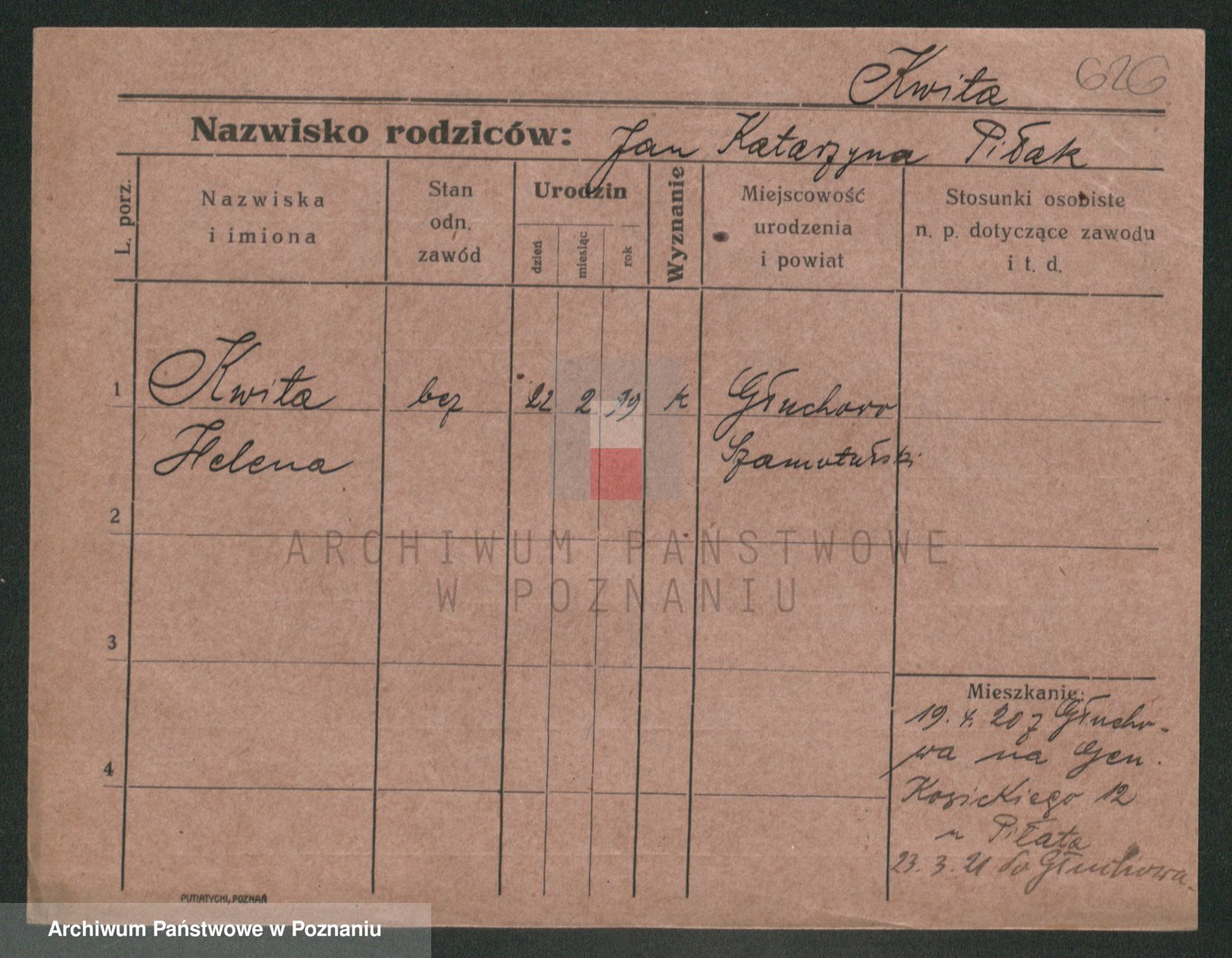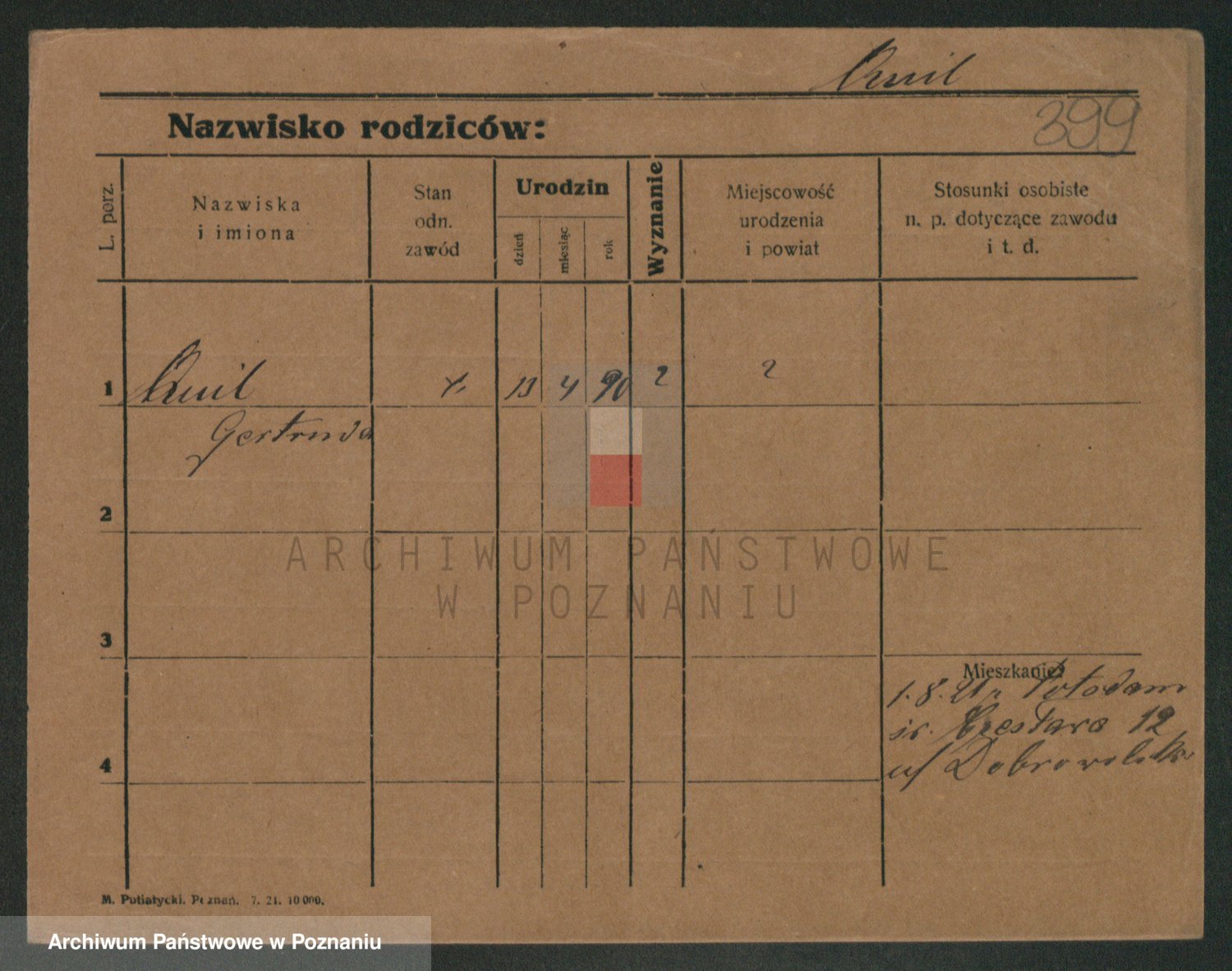 Podgląd karty osobowej dostępny jest po kliknięciu na nazwisko lub ikonkę karty. Można dokonywać powiększenia (ikony na górze) lub przechodzić między kolejnymi skanami (strzałki po bokach).