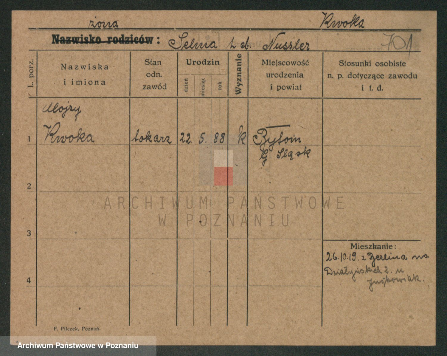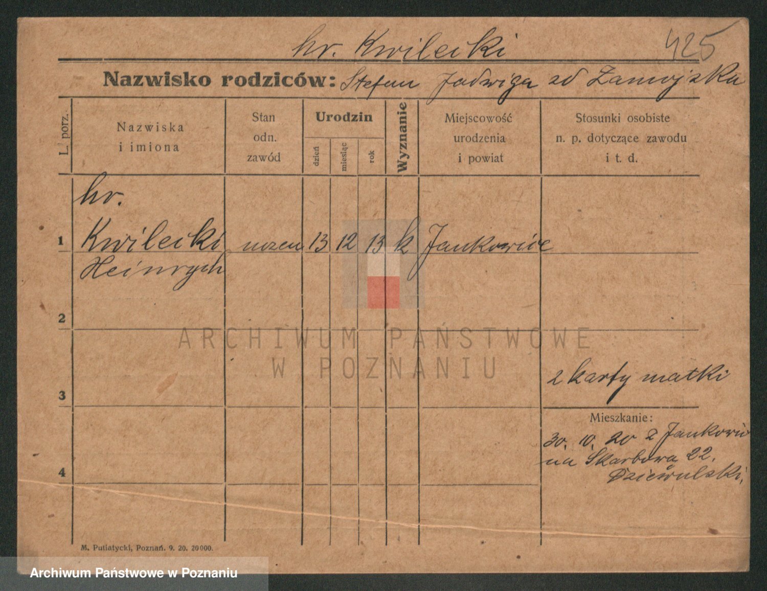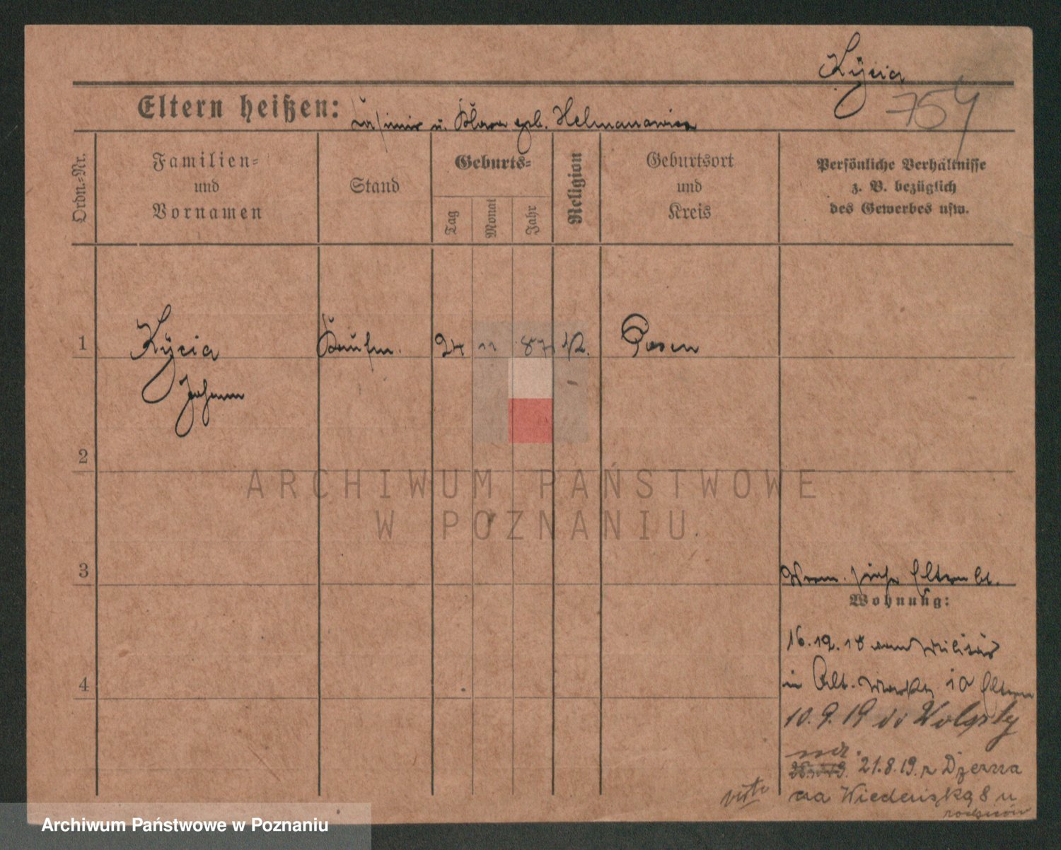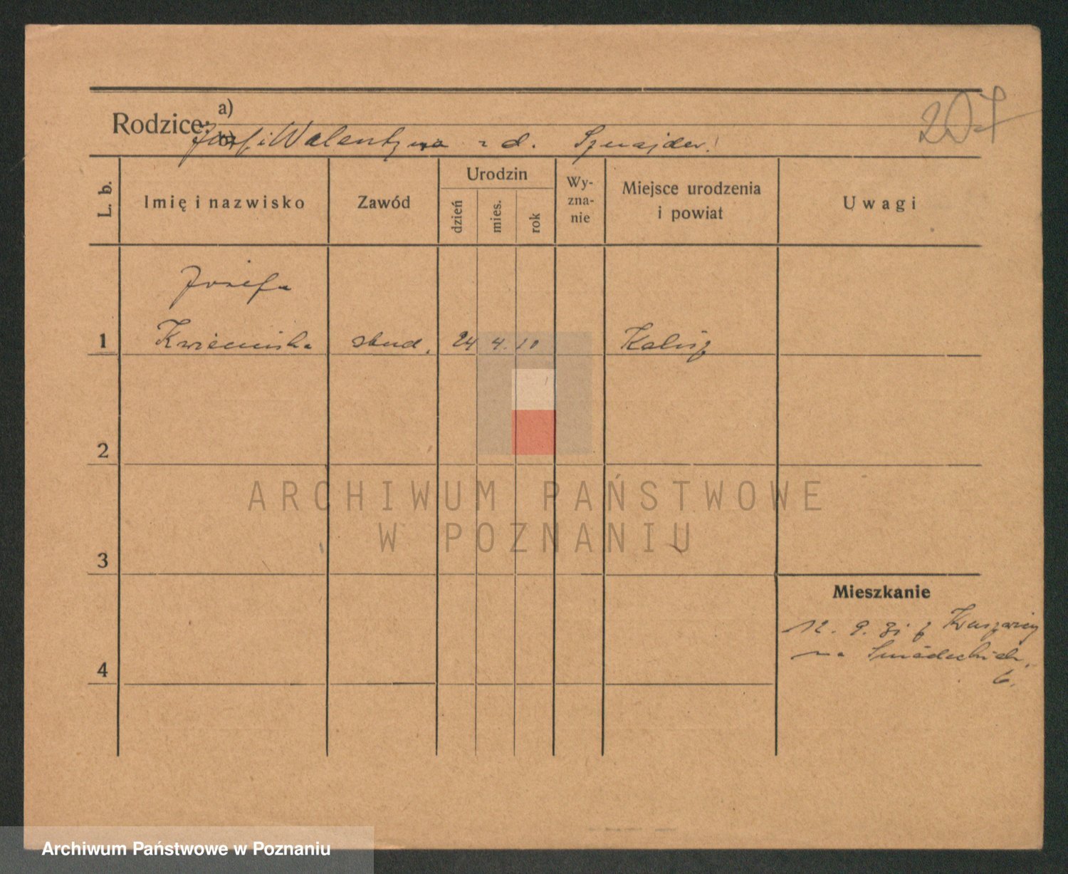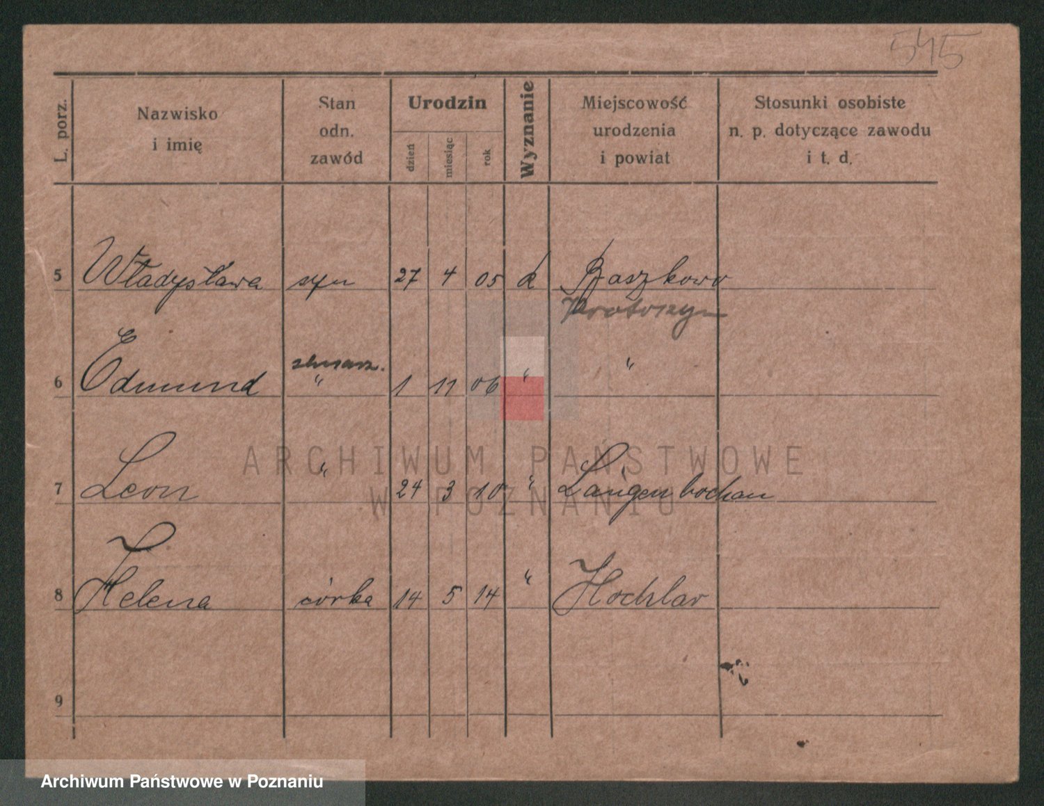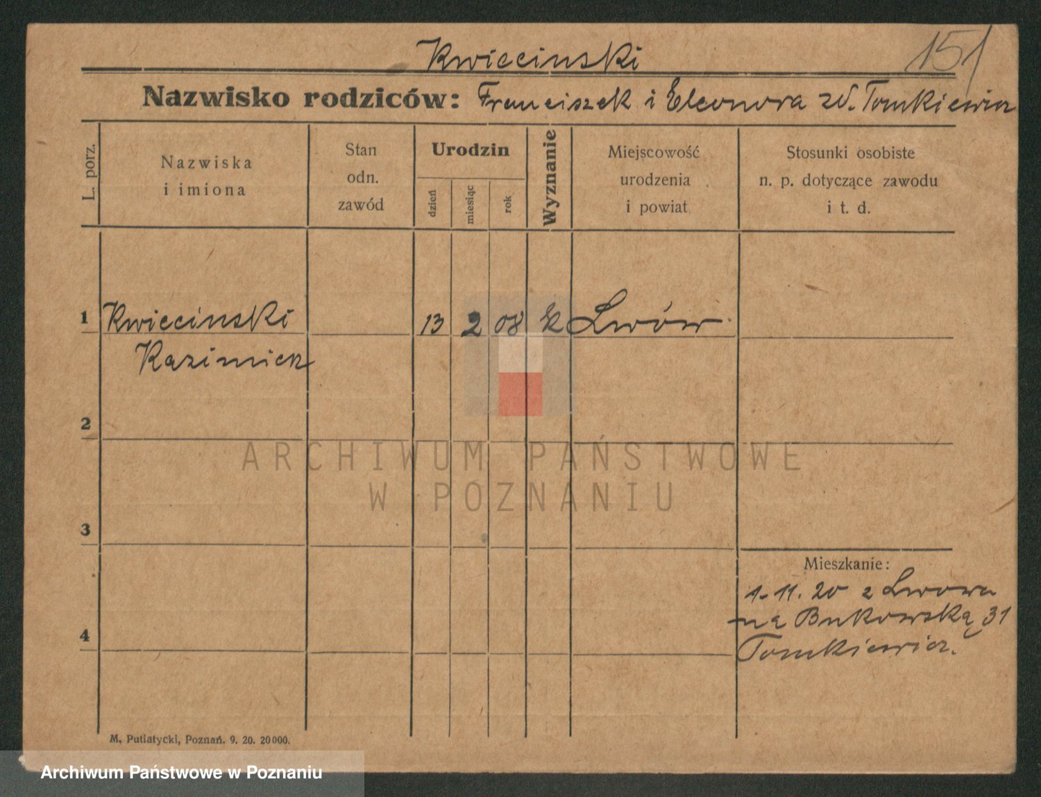 Podgląd karty osobowej dostępny jest po kliknięciu na nazwisko lub ikonkę karty. Można dokonywać powiększenia (ikony na górze) lub przechodzić między kolejnymi skanami (strzałki po bokach).