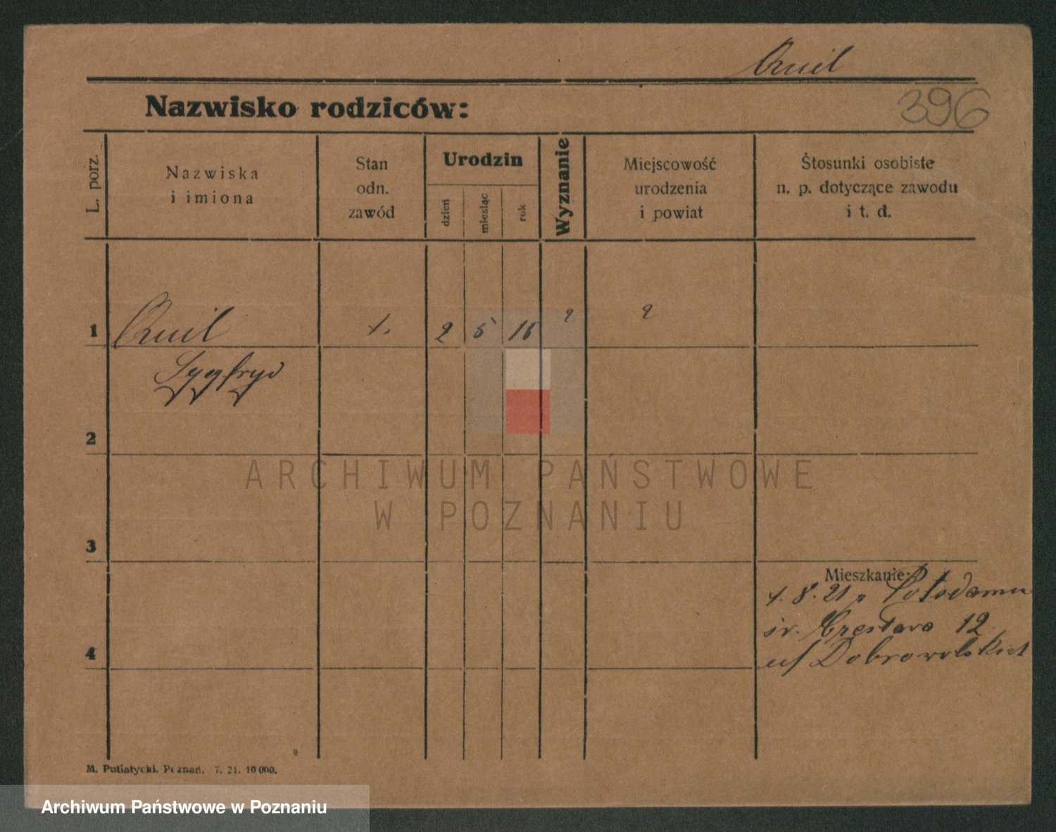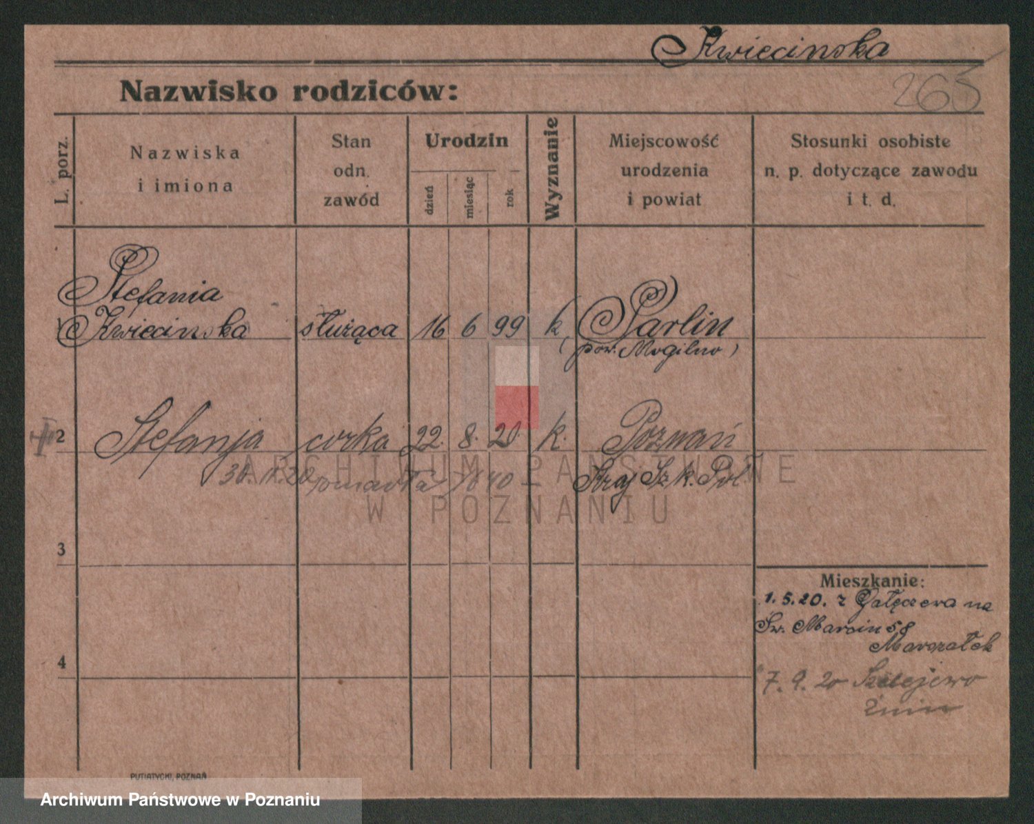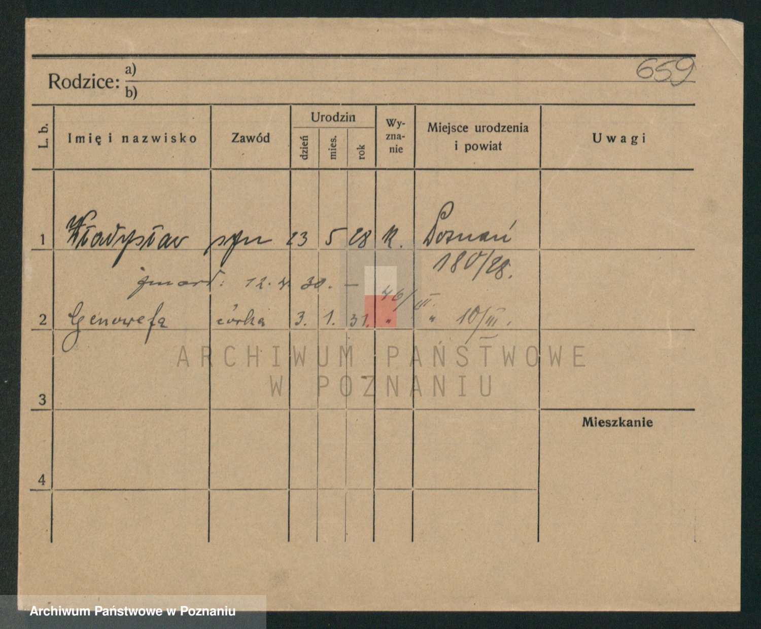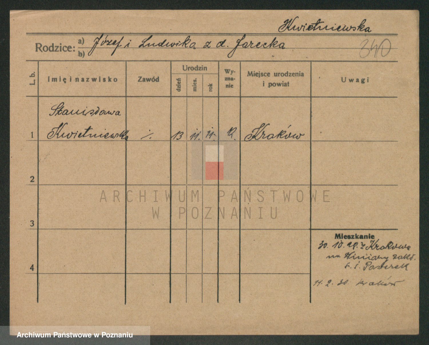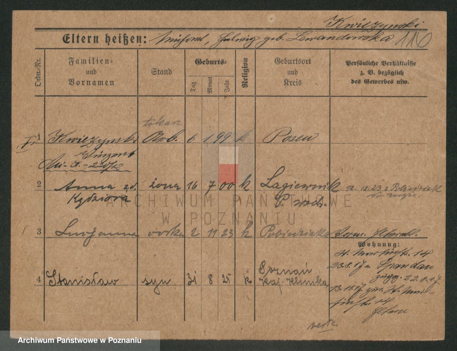 Podgląd karty osobowej dostępny jest po kliknięciu na nazwisko lub ikonkę karty. Można dokonywać powiększenia (ikony na górze) lub przechodzić między kolejnymi skanami (strzałki po bokach).