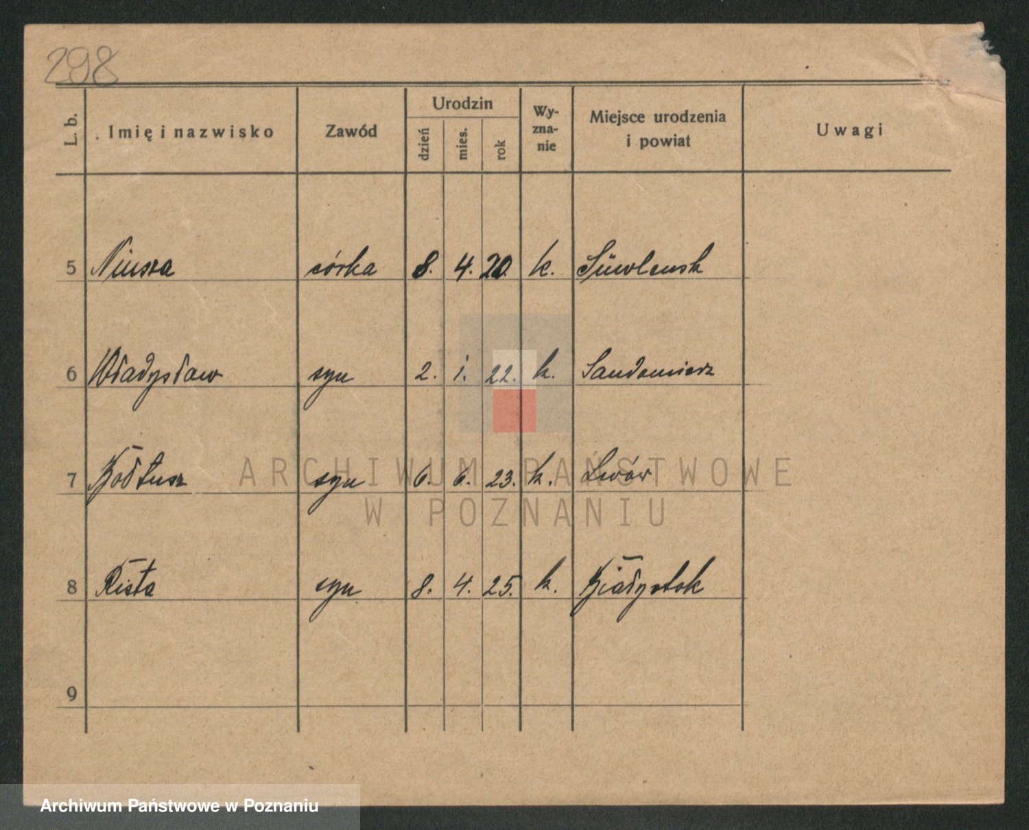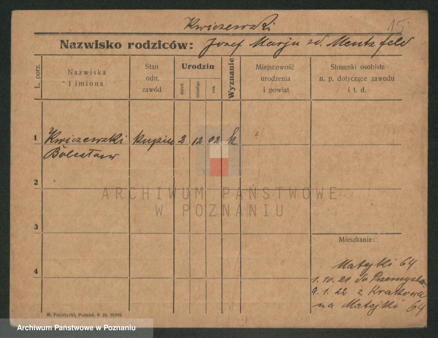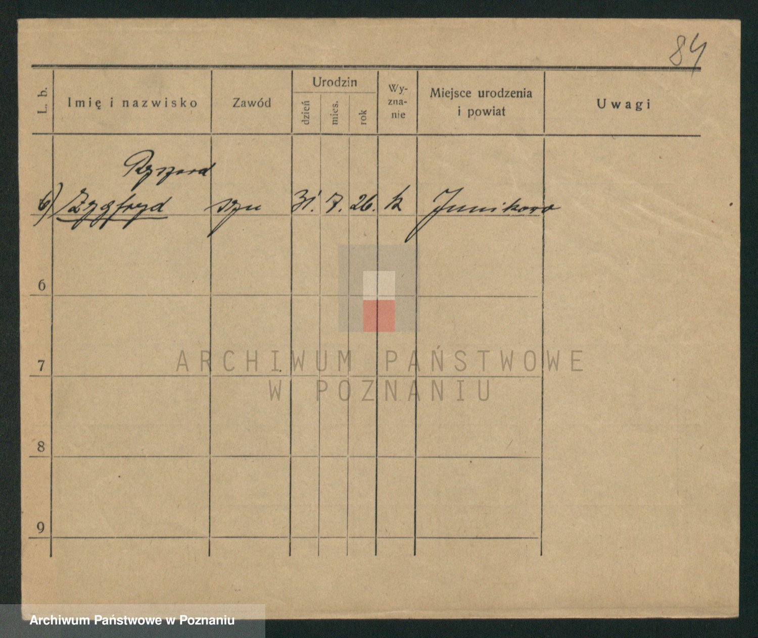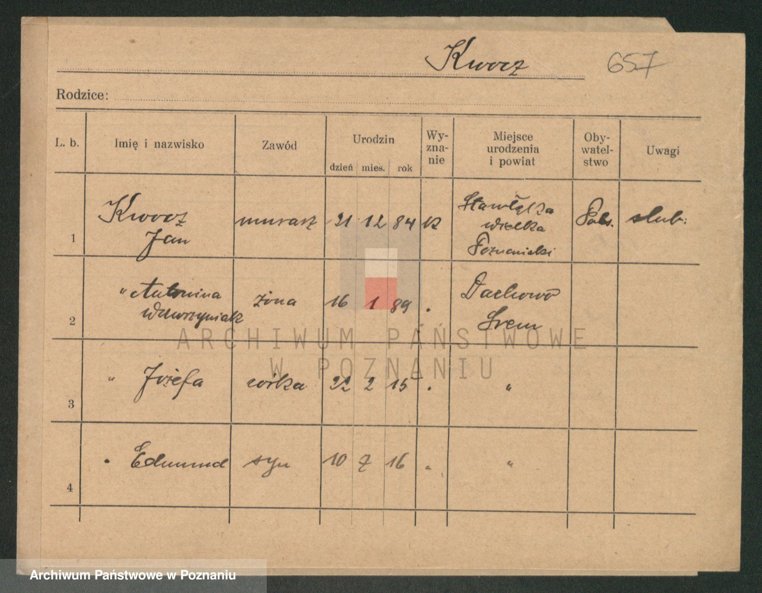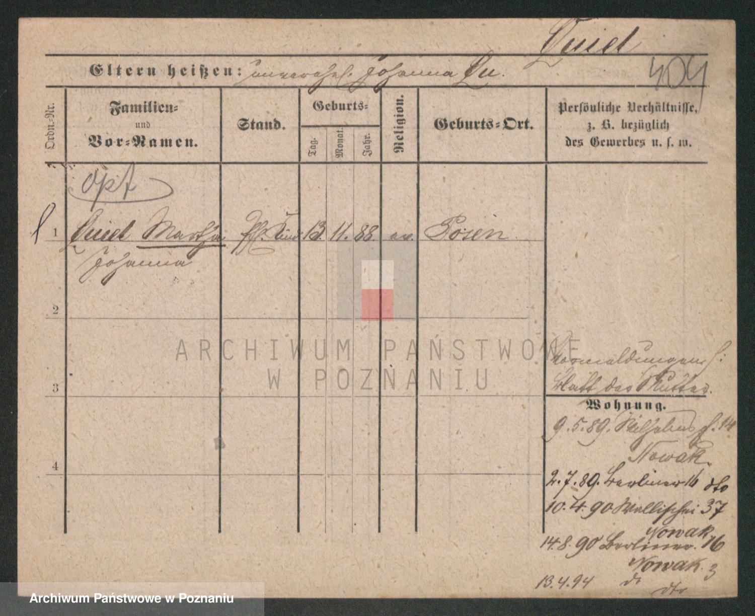 Podgląd karty osobowej dostępny jest po kliknięciu na nazwisko lub ikonkę karty. Można dokonywać powiększenia (ikony na górze) lub przechodzić między kolejnymi skanami (strzałki po bokach).