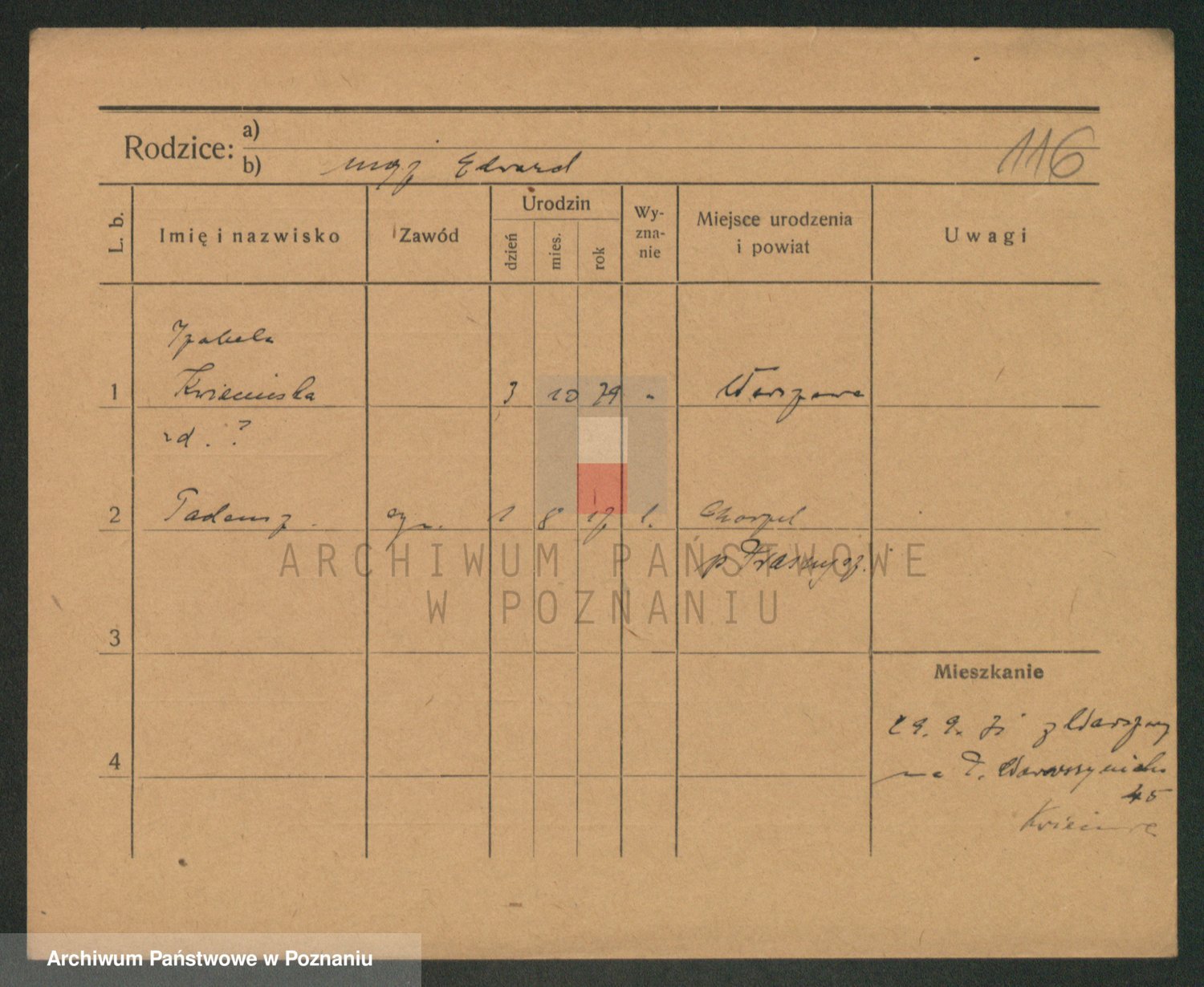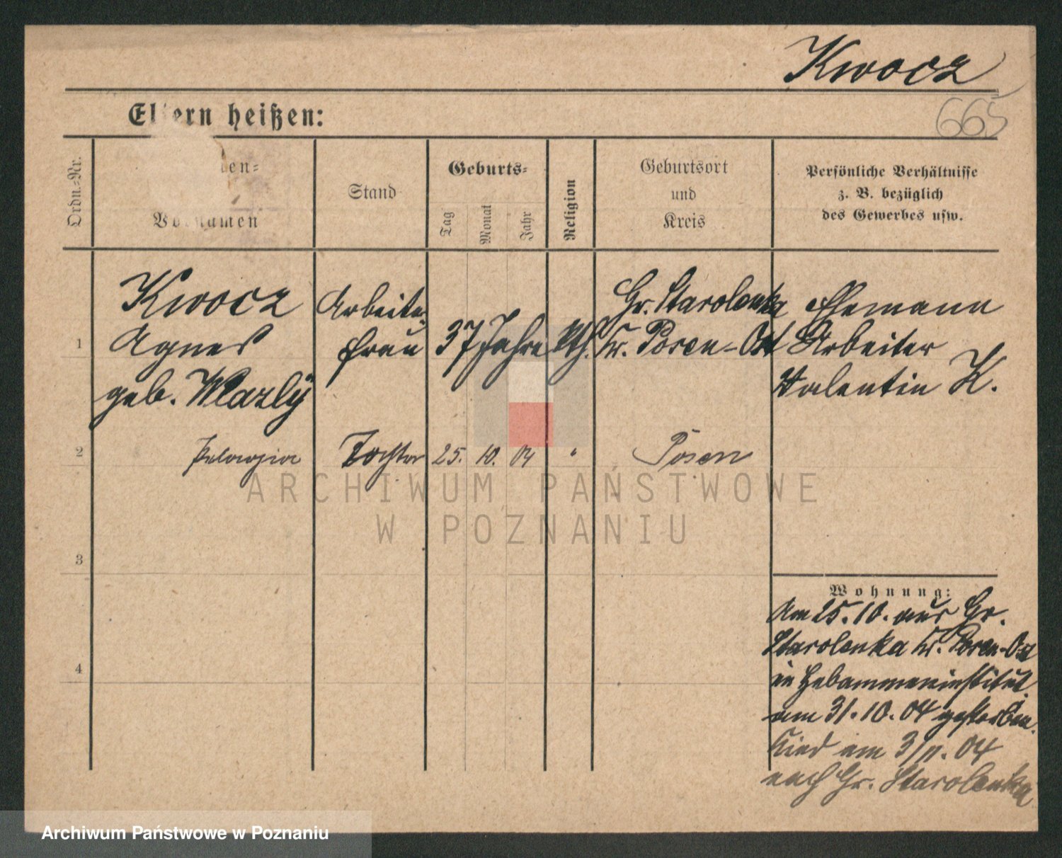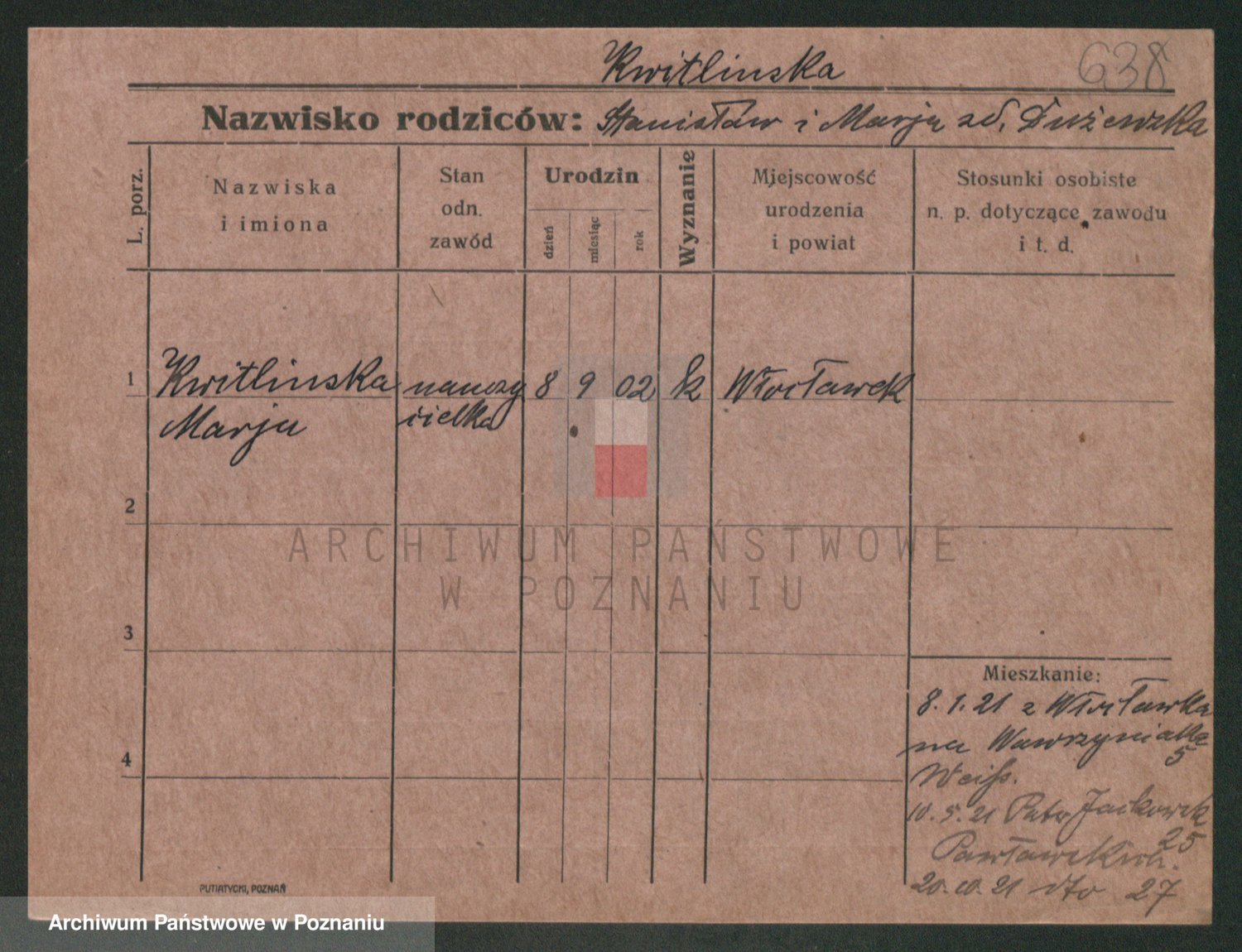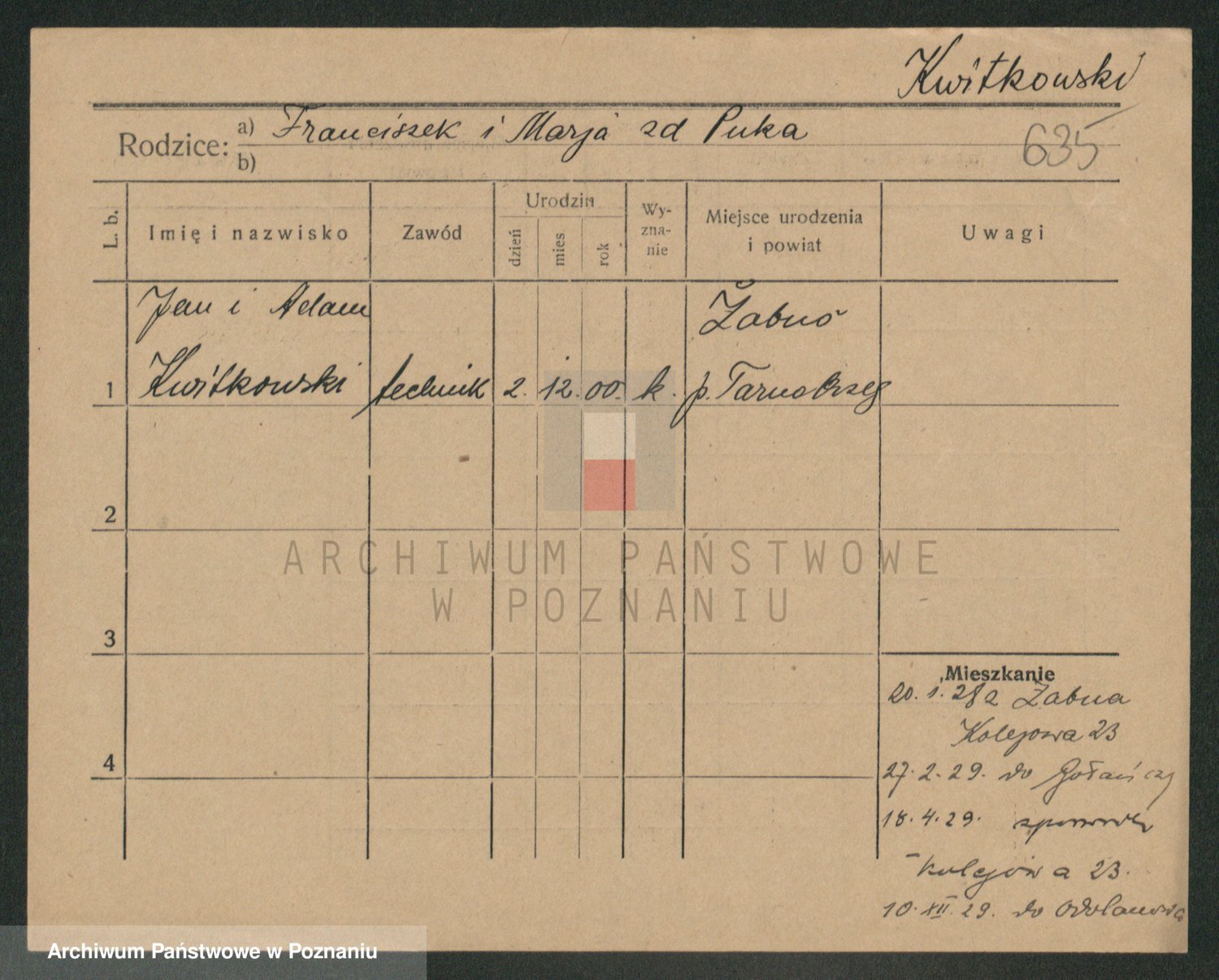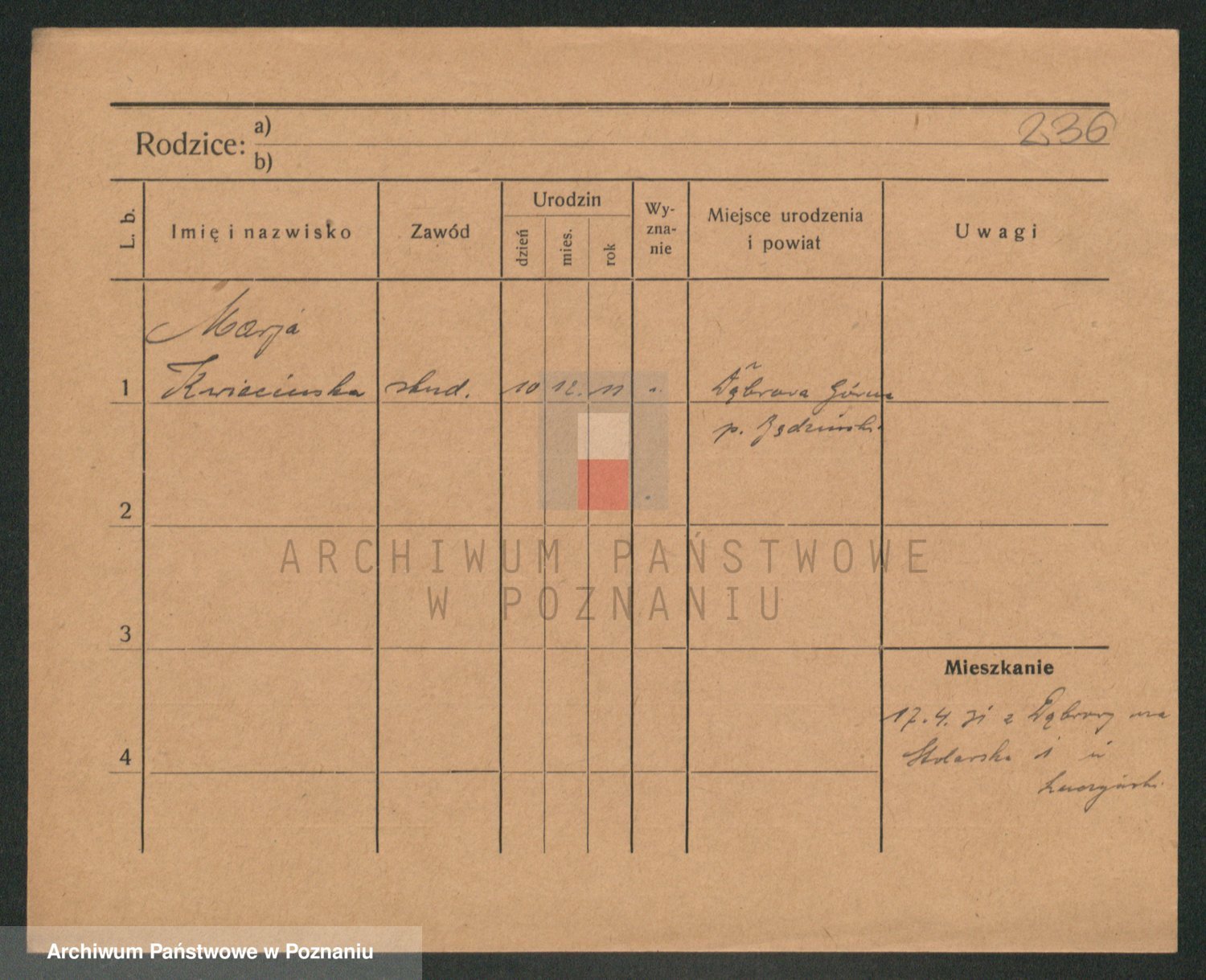 Podgląd karty osobowej dostępny jest po kliknięciu na nazwisko lub ikonkę karty. Można dokonywać powiększenia (ikony na górze) lub przechodzić między kolejnymi skanami (strzałki po bokach).