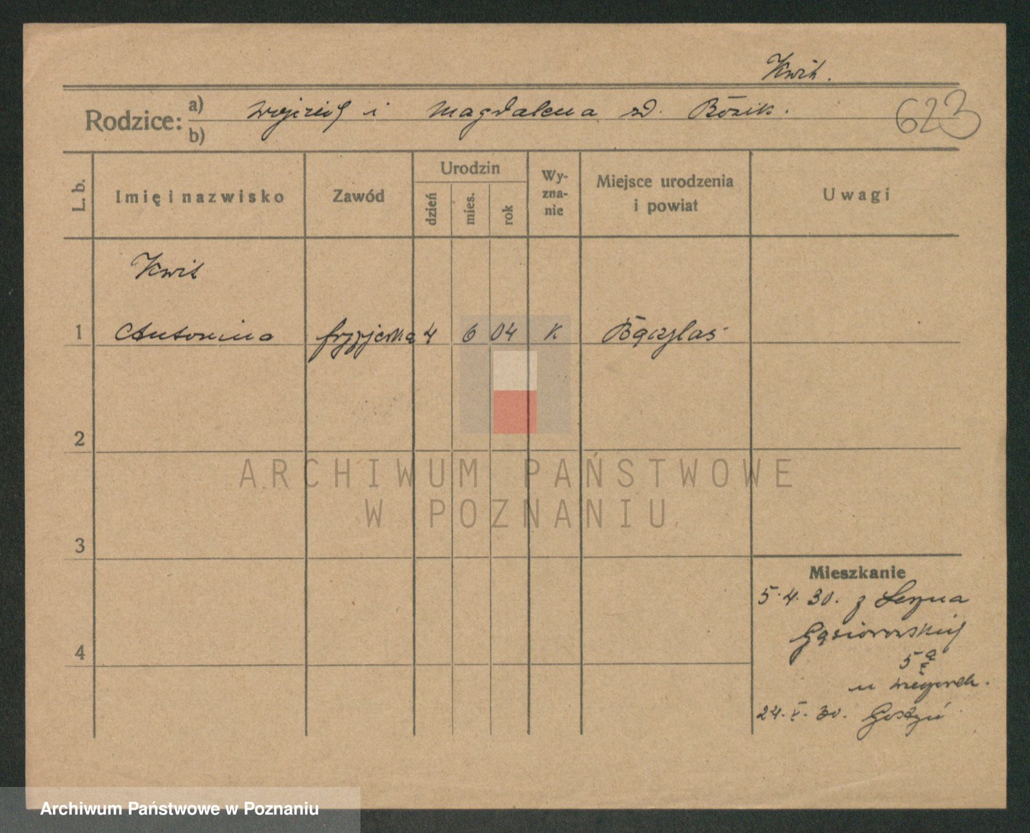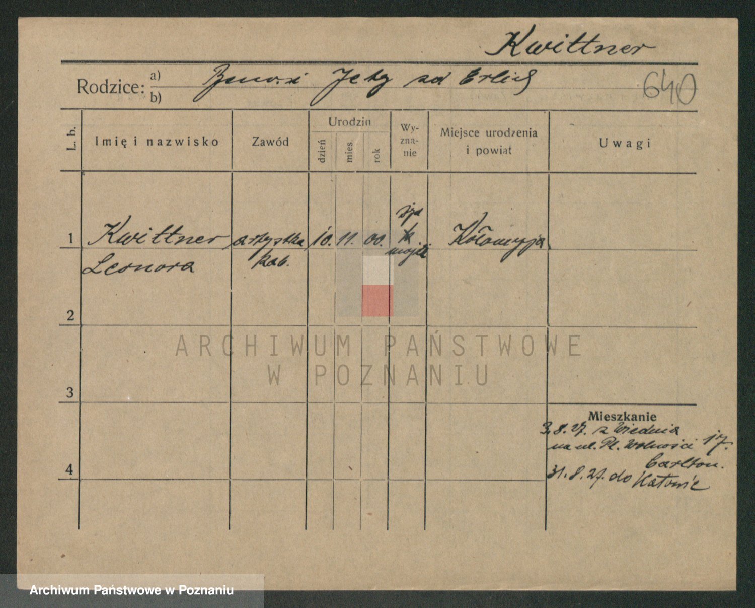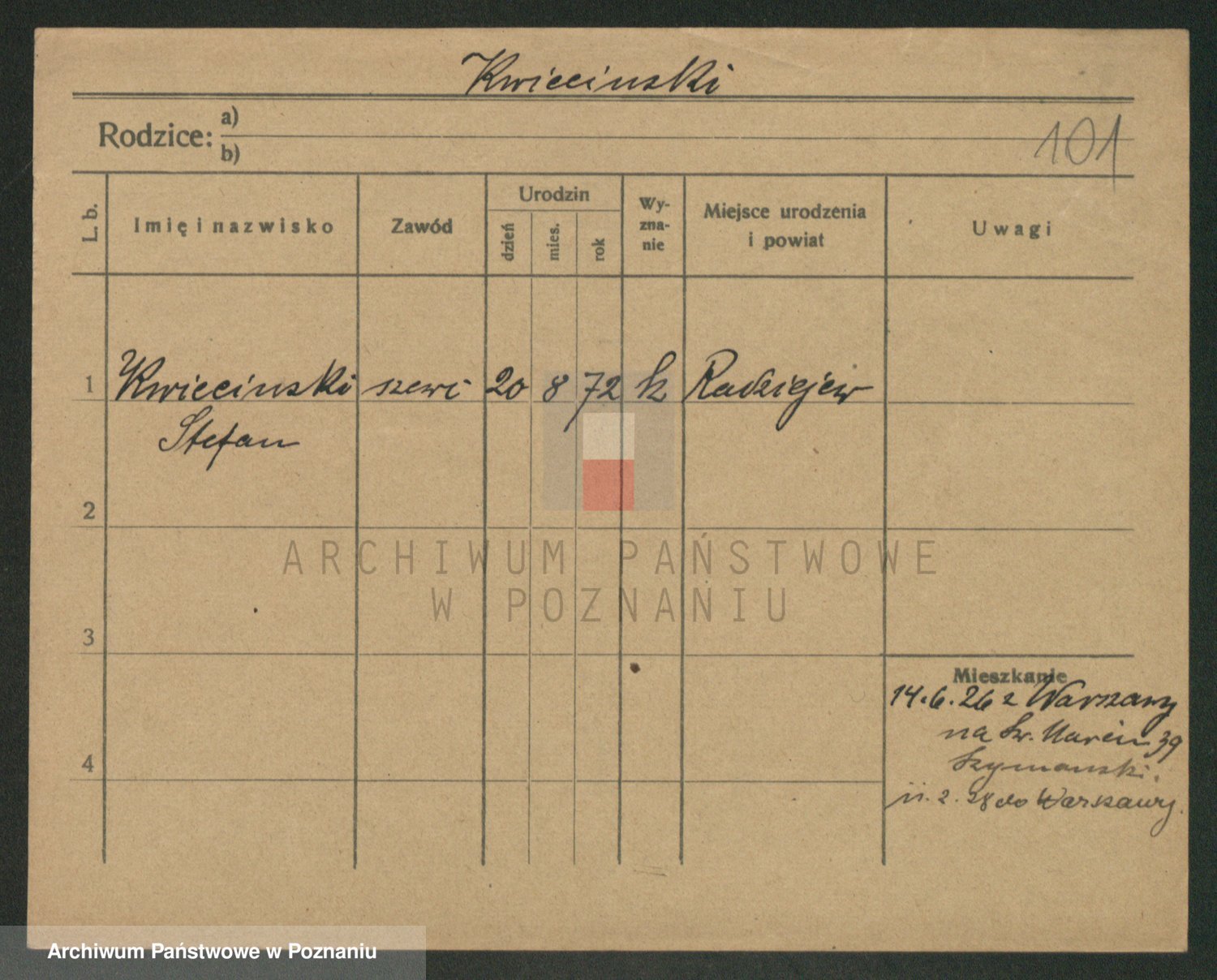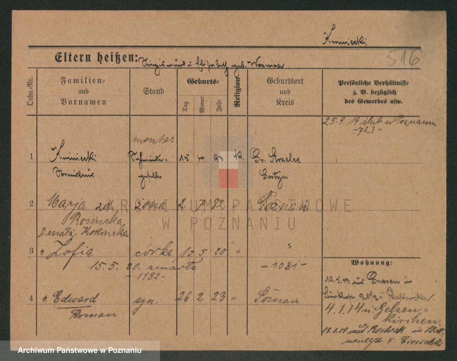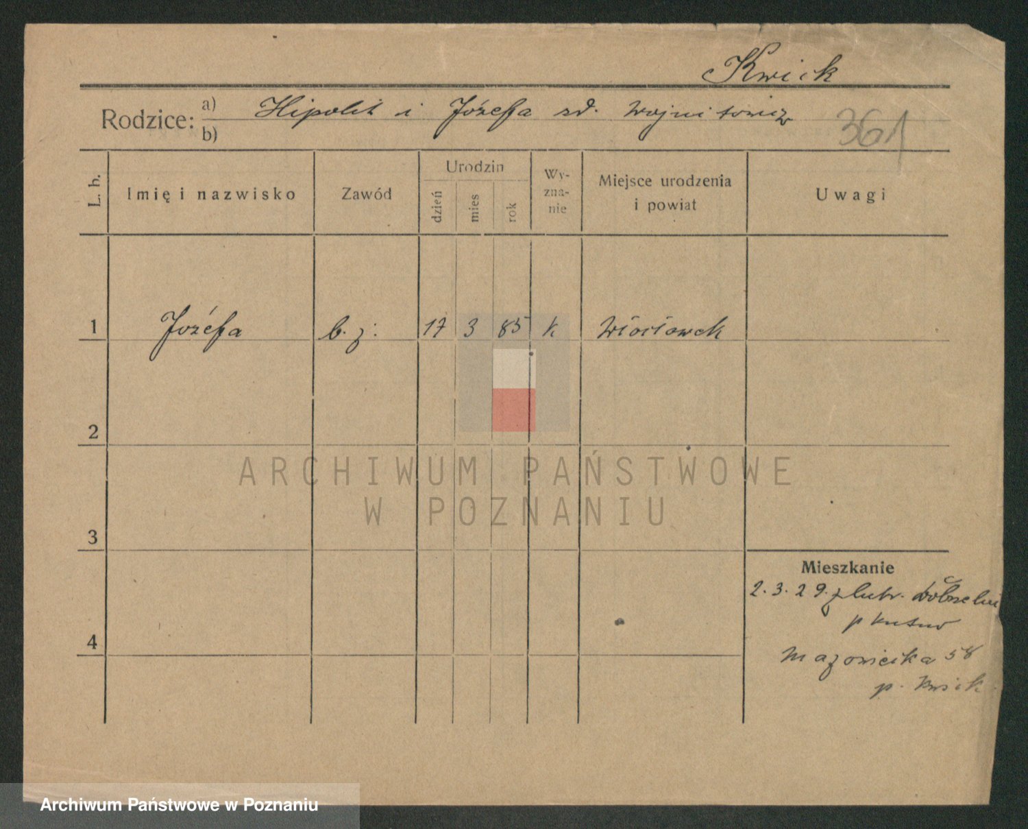 Podgląd karty osobowej dostępny jest po kliknięciu na nazwisko lub ikonkę karty. Można dokonywać powiększenia (ikony na górze) lub przechodzić między kolejnymi skanami (strzałki po bokach).