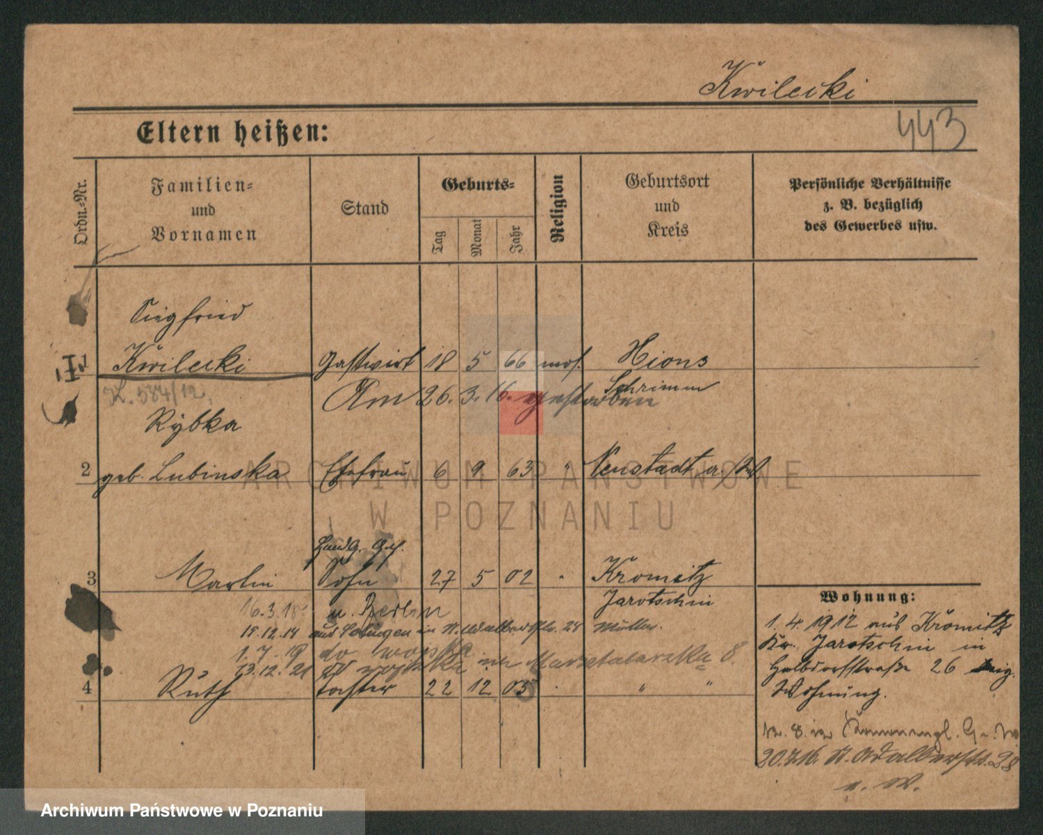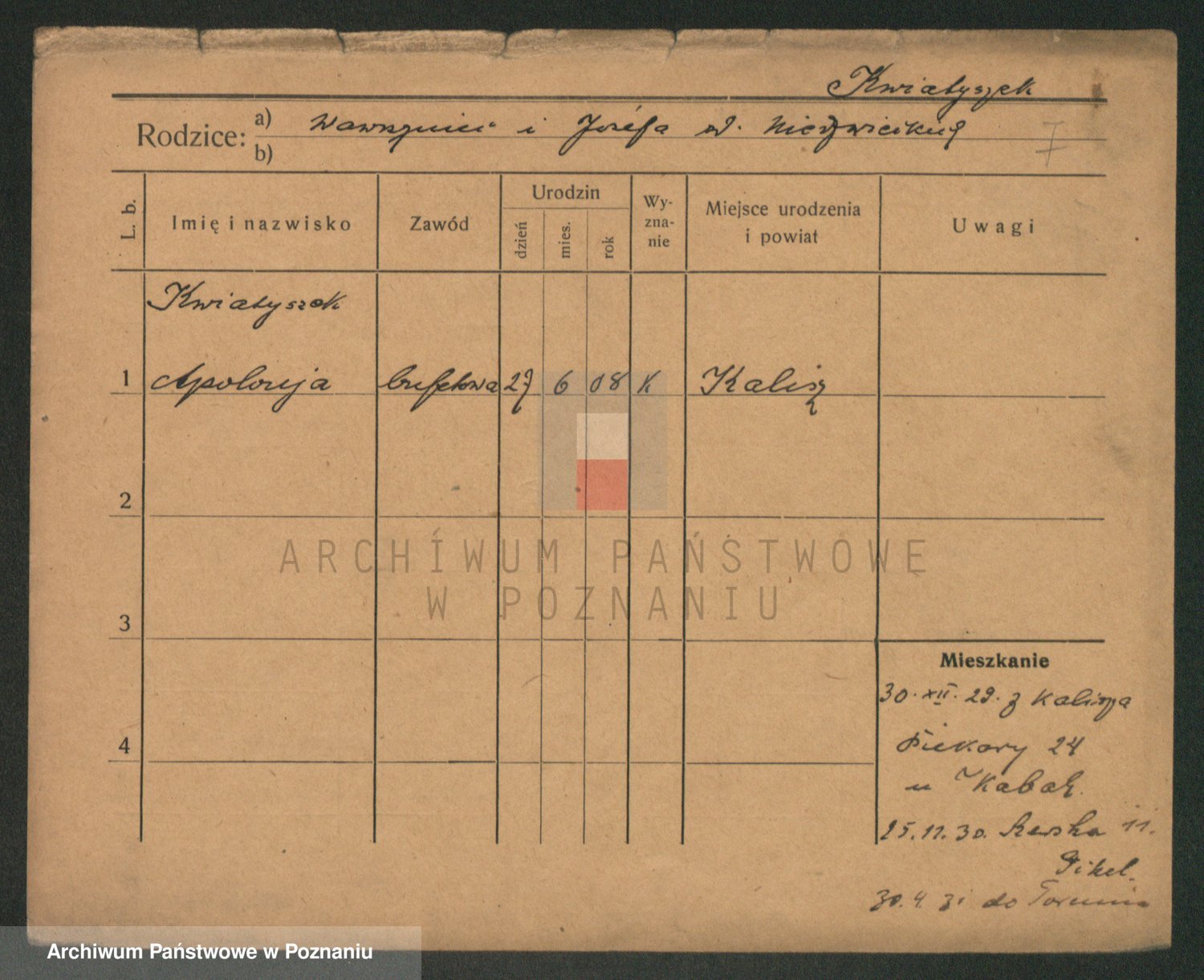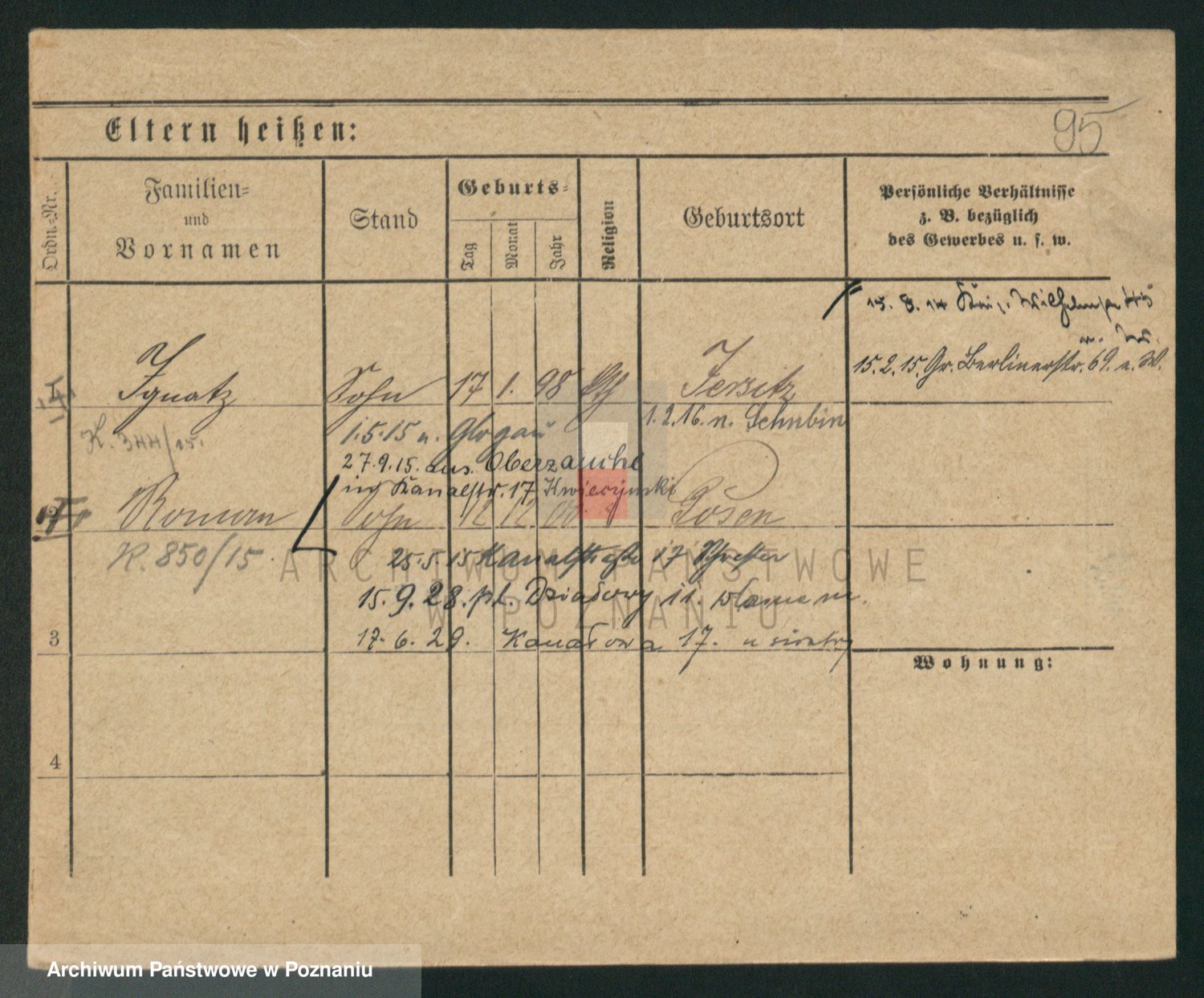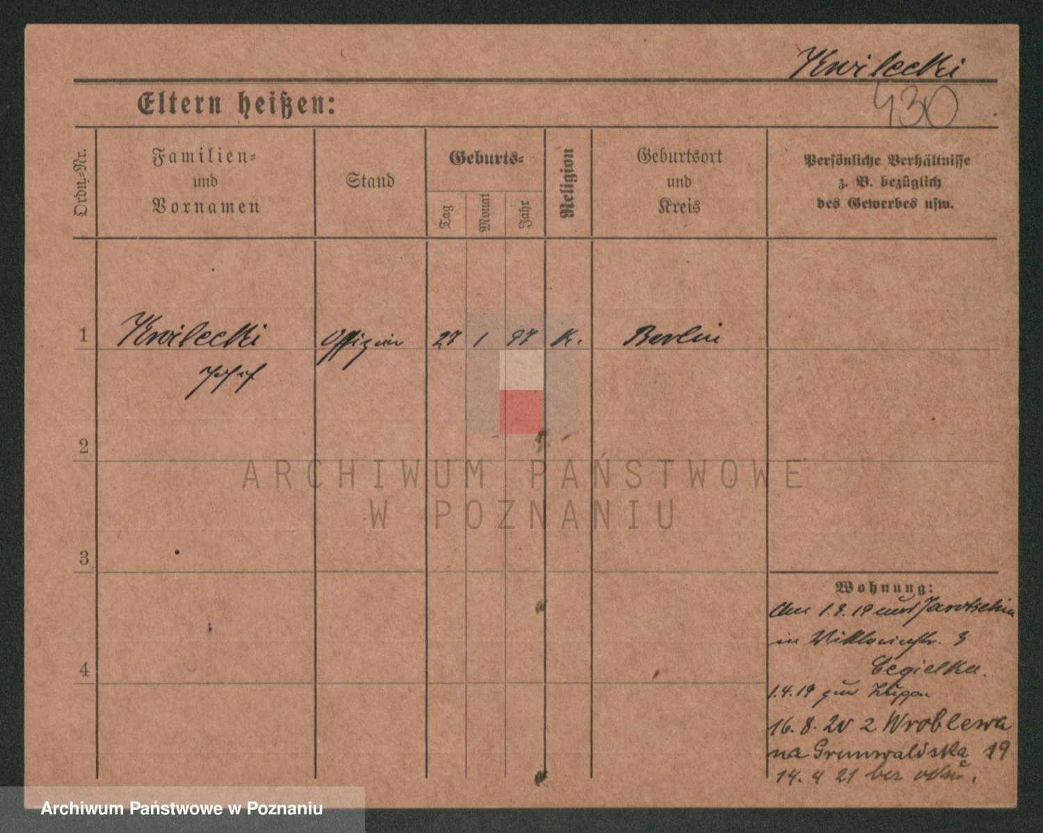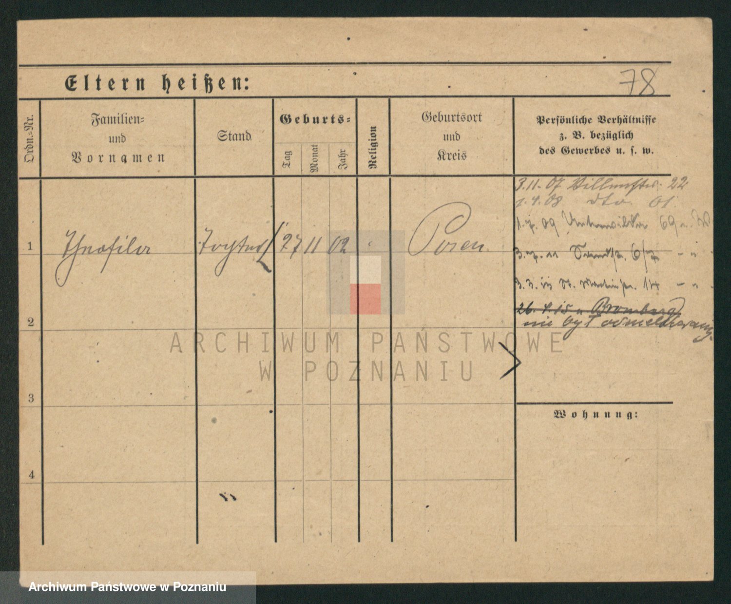 Podgląd karty osobowej dostępny jest po kliknięciu na nazwisko lub ikonkę karty. Można dokonywać powiększenia (ikony na górze) lub przechodzić między kolejnymi skanami (strzałki po bokach).
