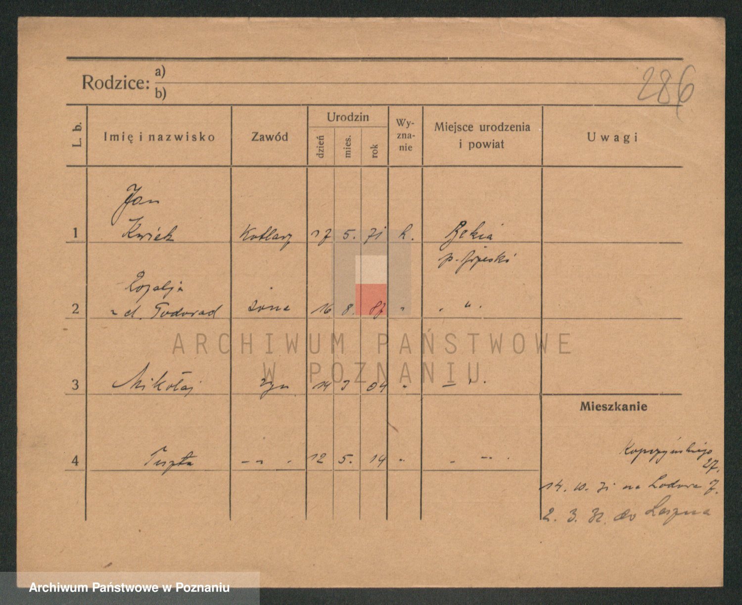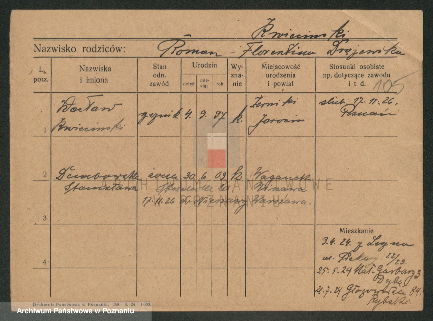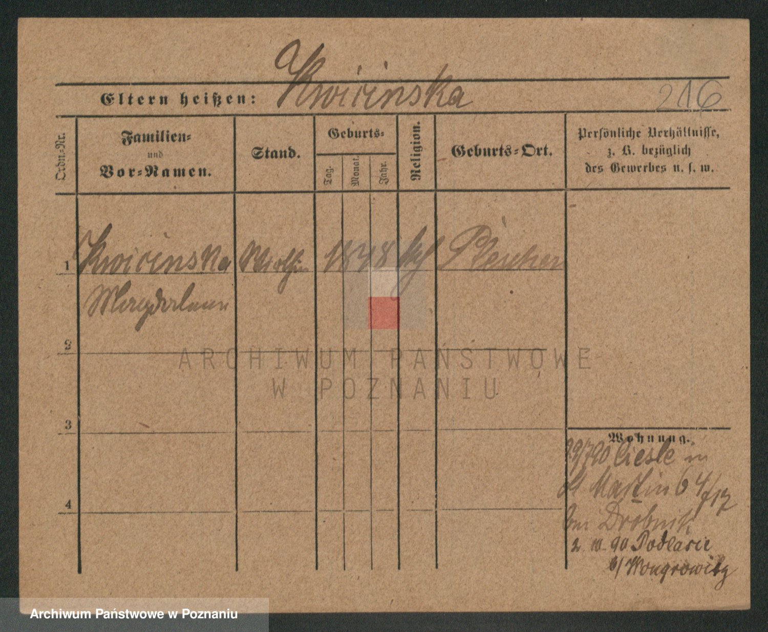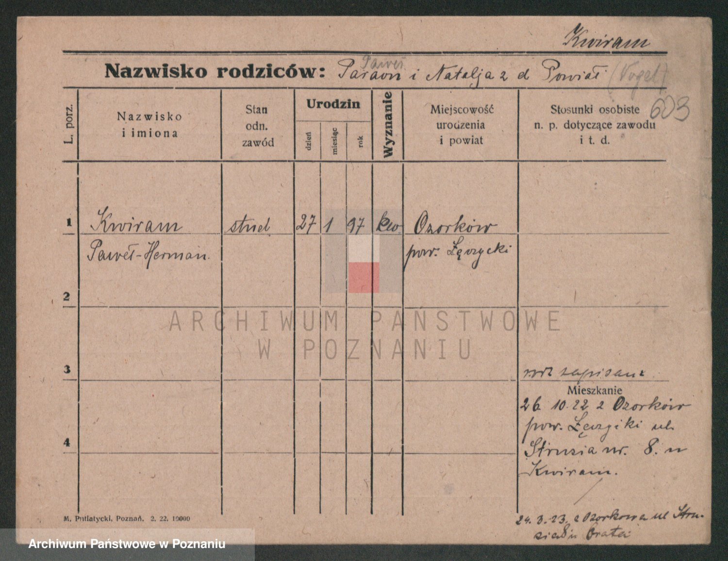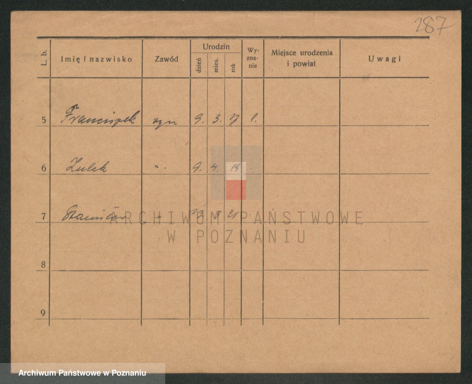 Podgląd karty osobowej dostępny jest po kliknięciu na nazwisko lub ikonkę karty. Można dokonywać powiększenia (ikony na górze) lub przechodzić między kolejnymi skanami (strzałki po bokach).