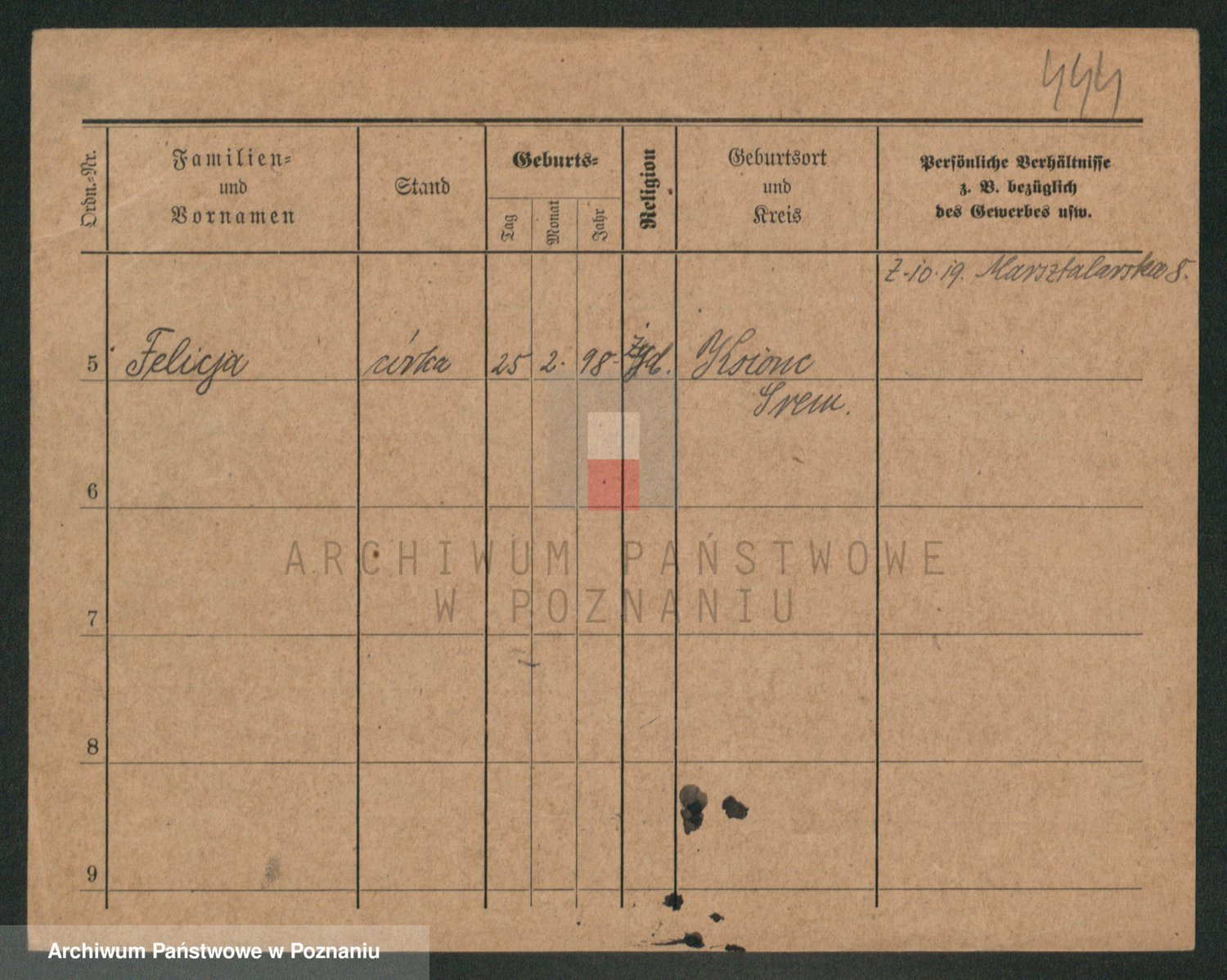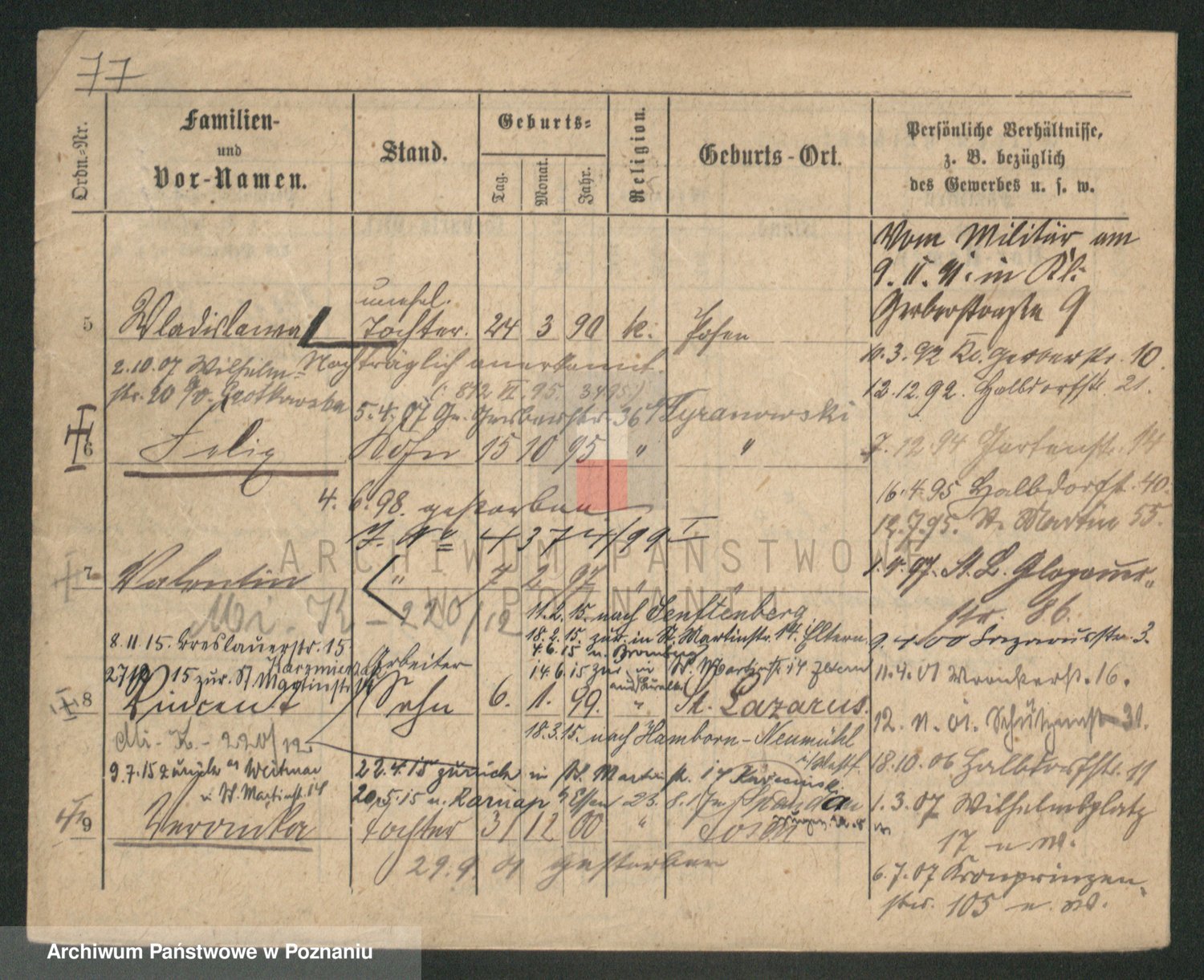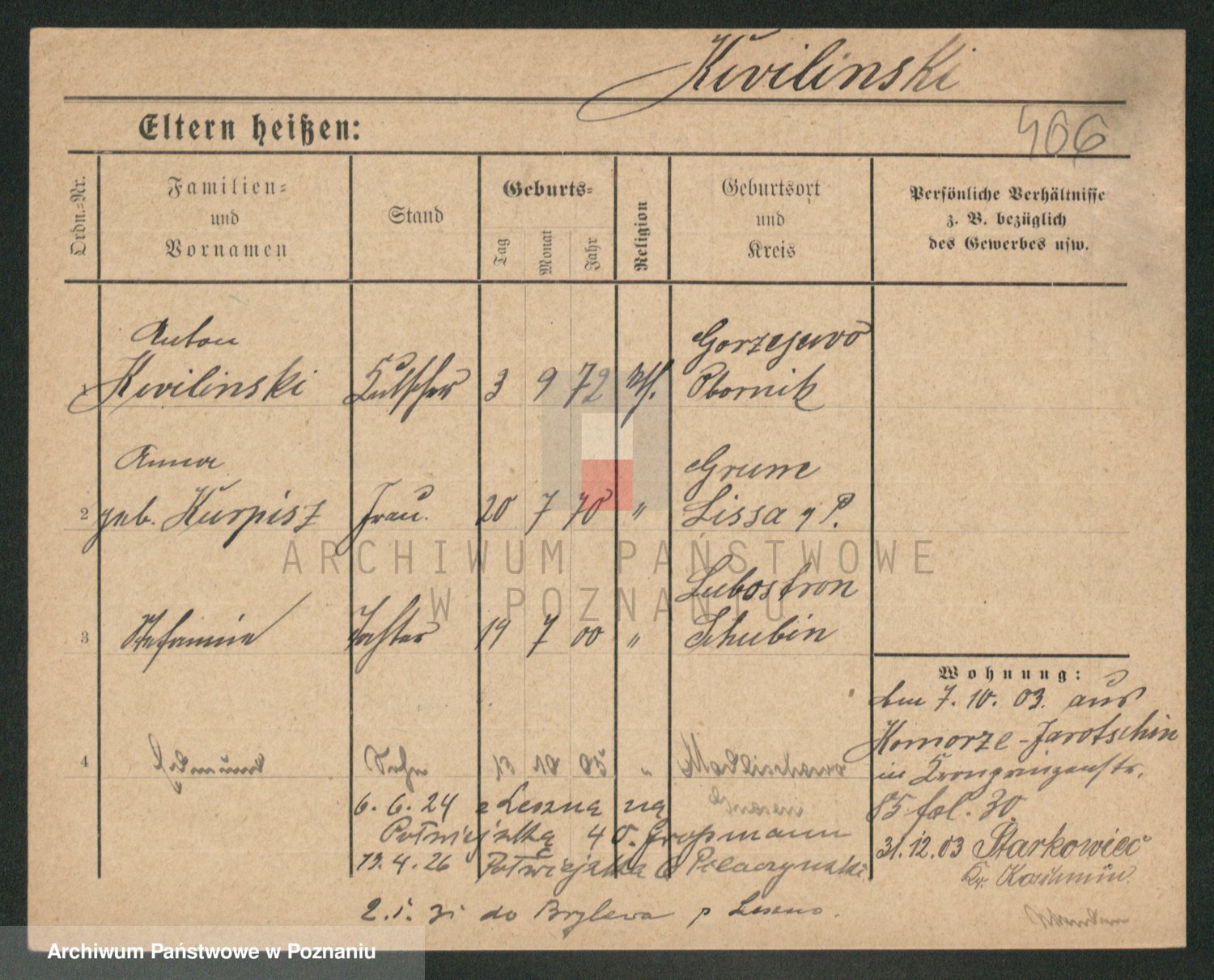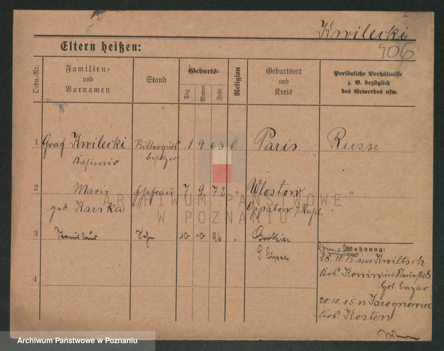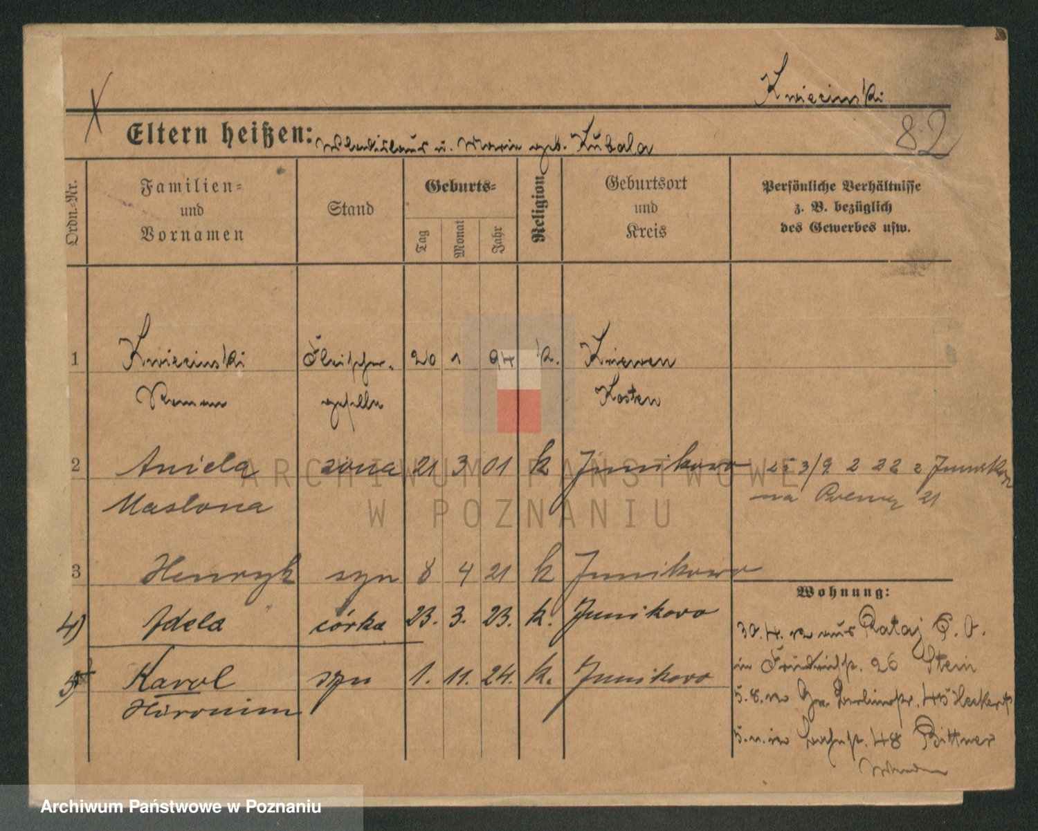 Podgląd karty osobowej dostępny jest po kliknięciu na nazwisko lub ikonkę karty. Można dokonywać powiększenia (ikony na górze) lub przechodzić między kolejnymi skanami (strzałki po bokach).