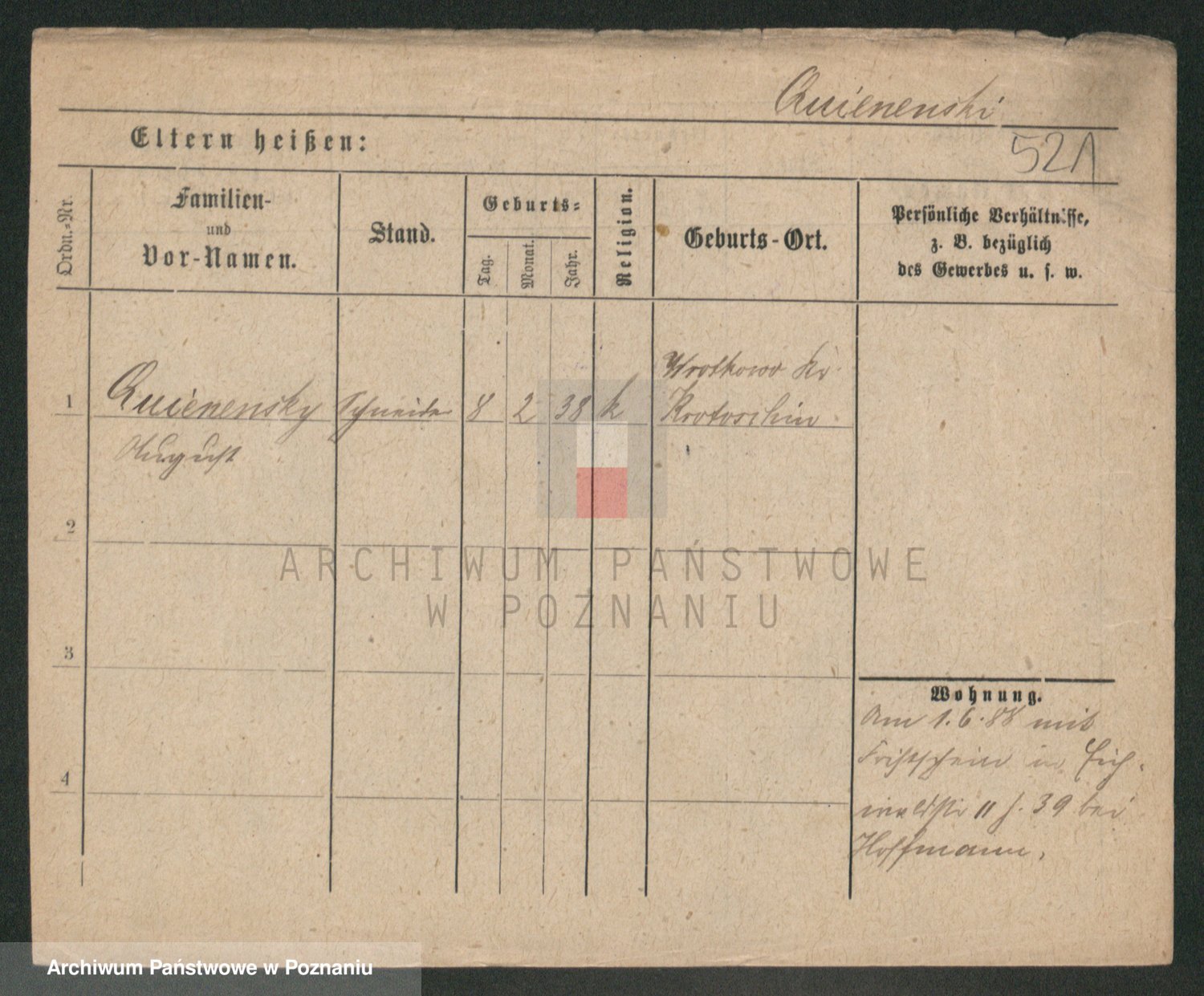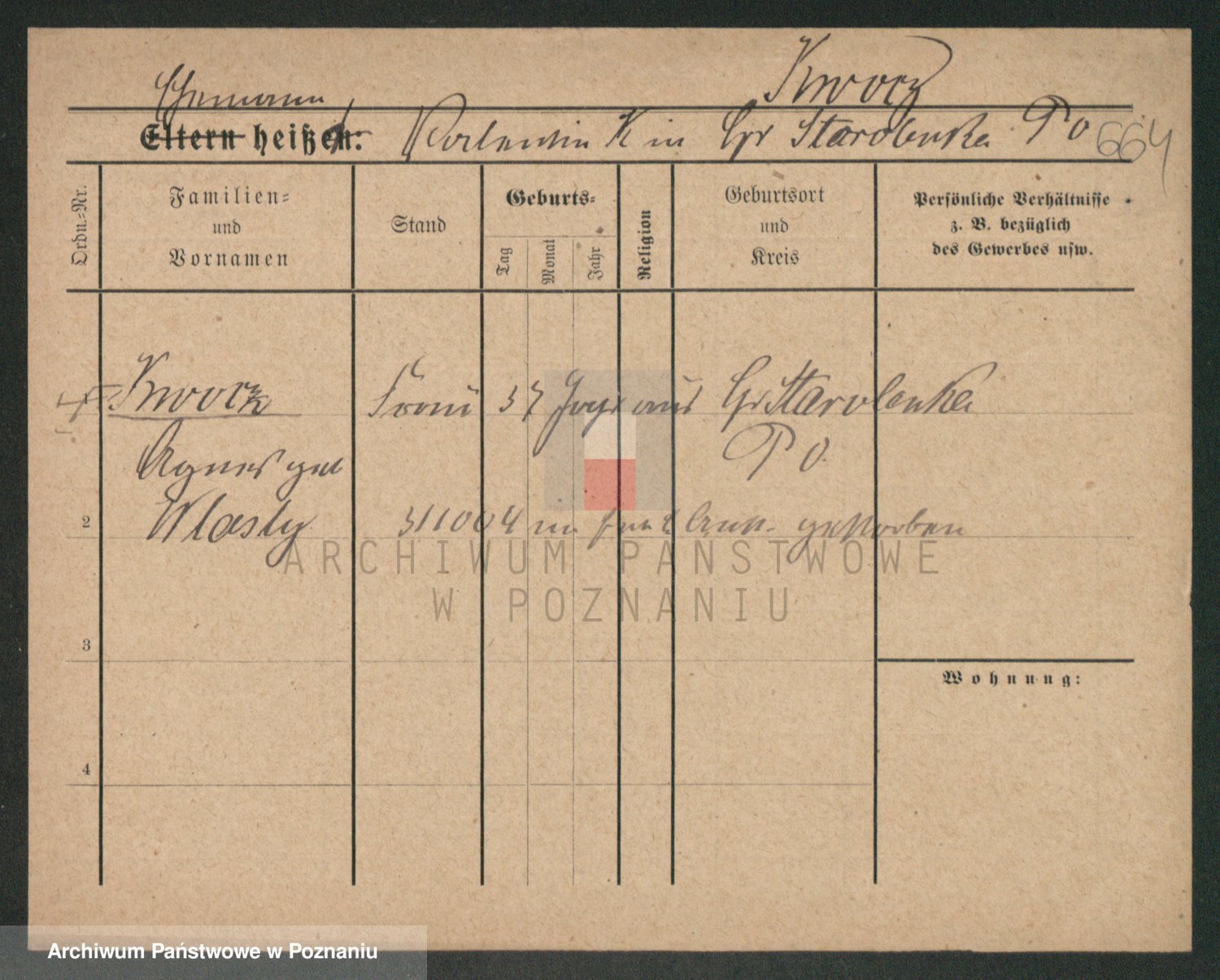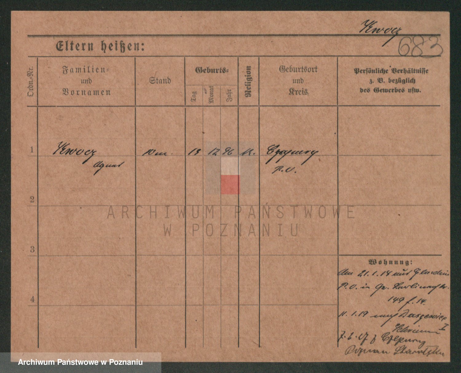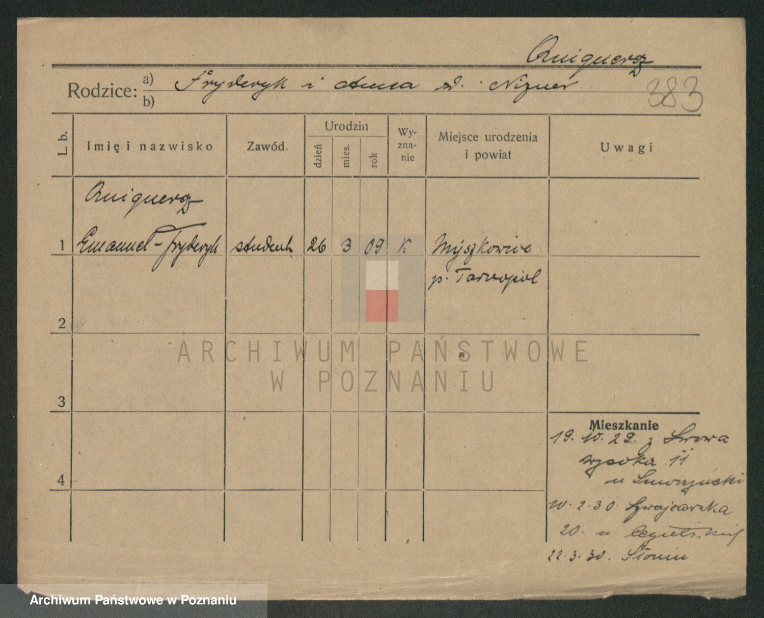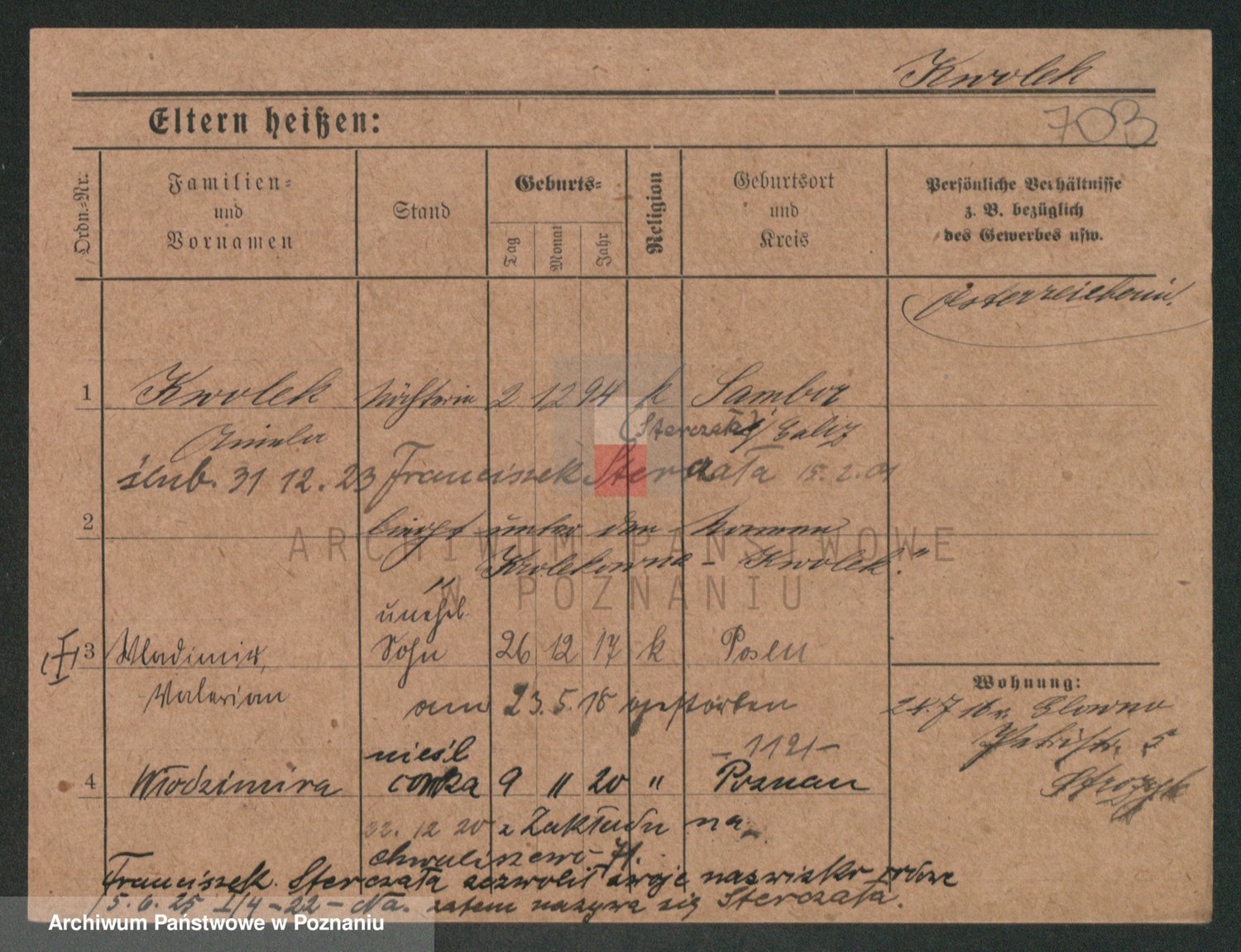 Podgląd karty osobowej dostępny jest po kliknięciu na nazwisko lub ikonkę karty. Można dokonywać powiększenia (ikony na górze) lub przechodzić między kolejnymi skanami (strzałki po bokach).