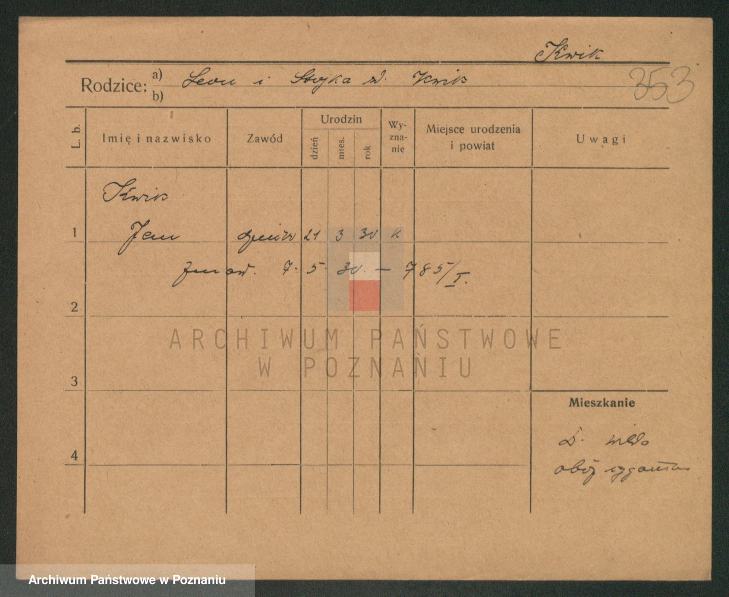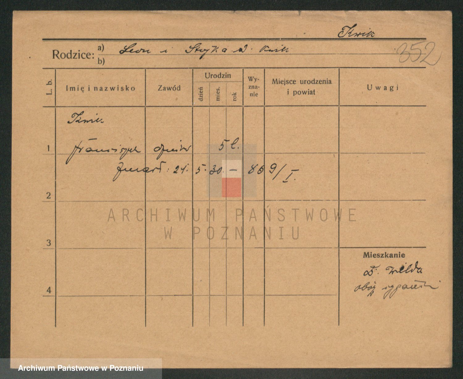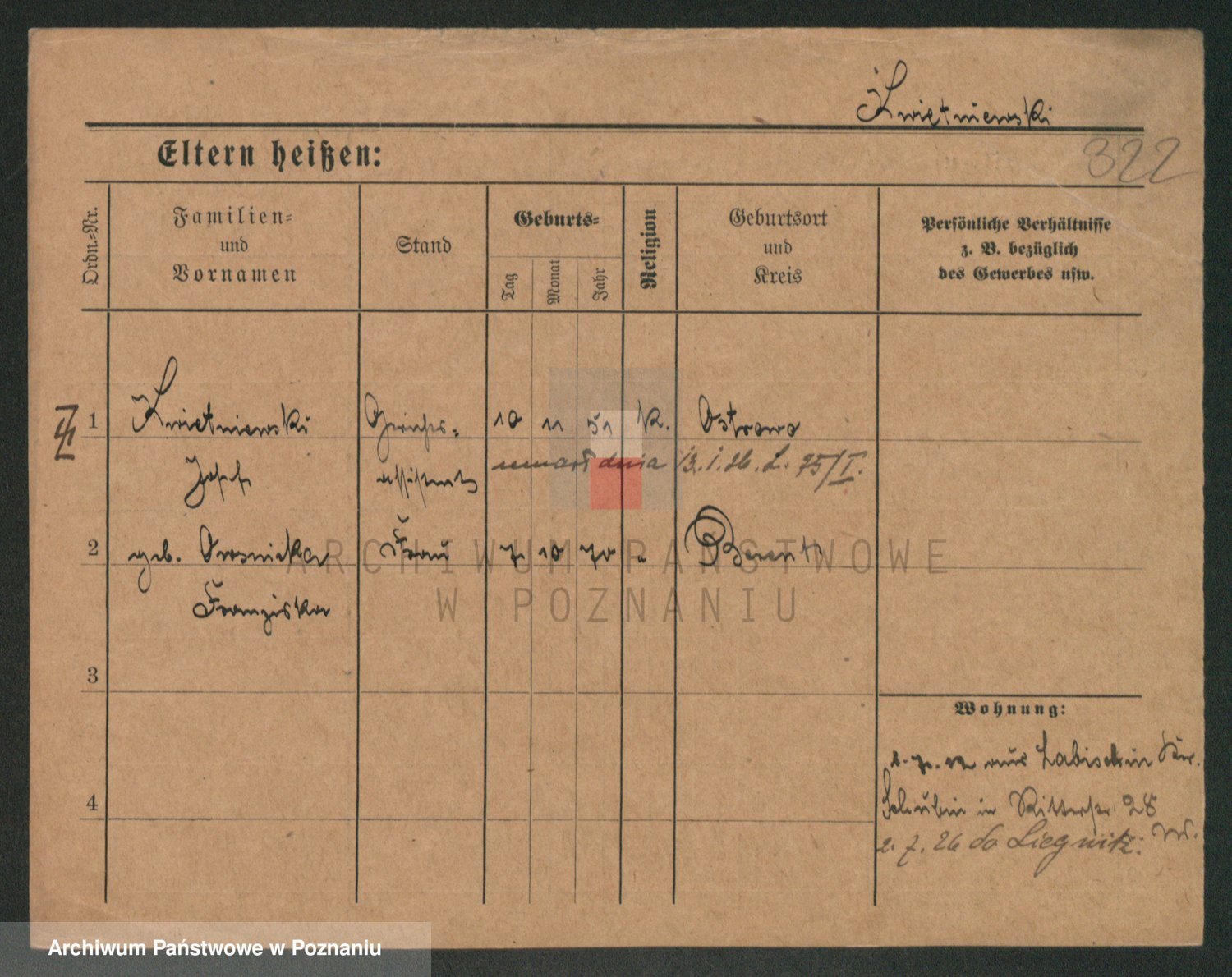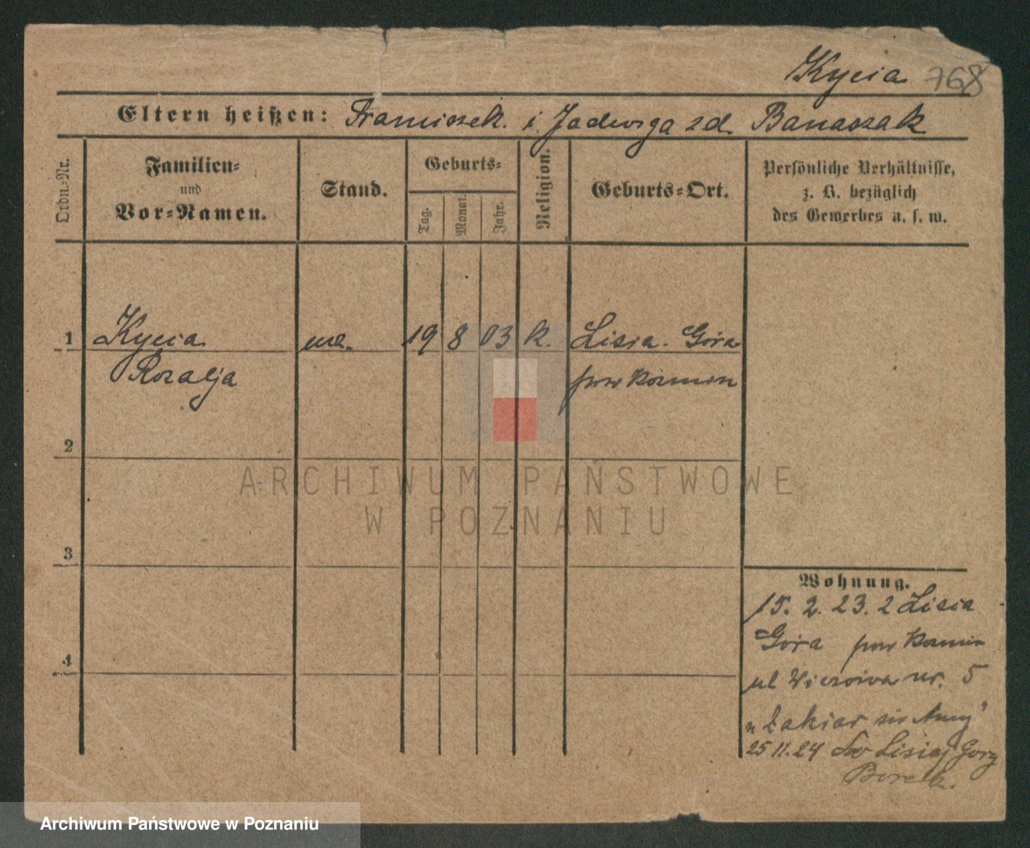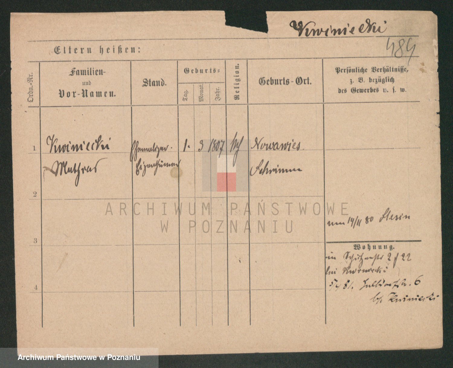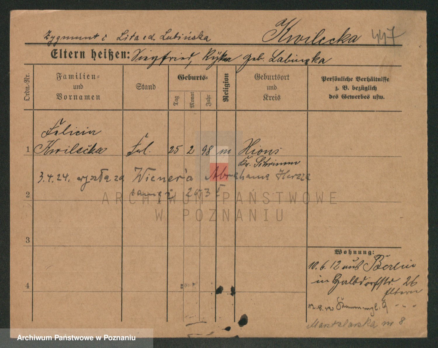 Podgląd karty osobowej dostępny jest po kliknięciu na nazwisko lub ikonkę karty. Można dokonywać powiększenia (ikony na górze) lub przechodzić między kolejnymi skanami (strzałki po bokach).