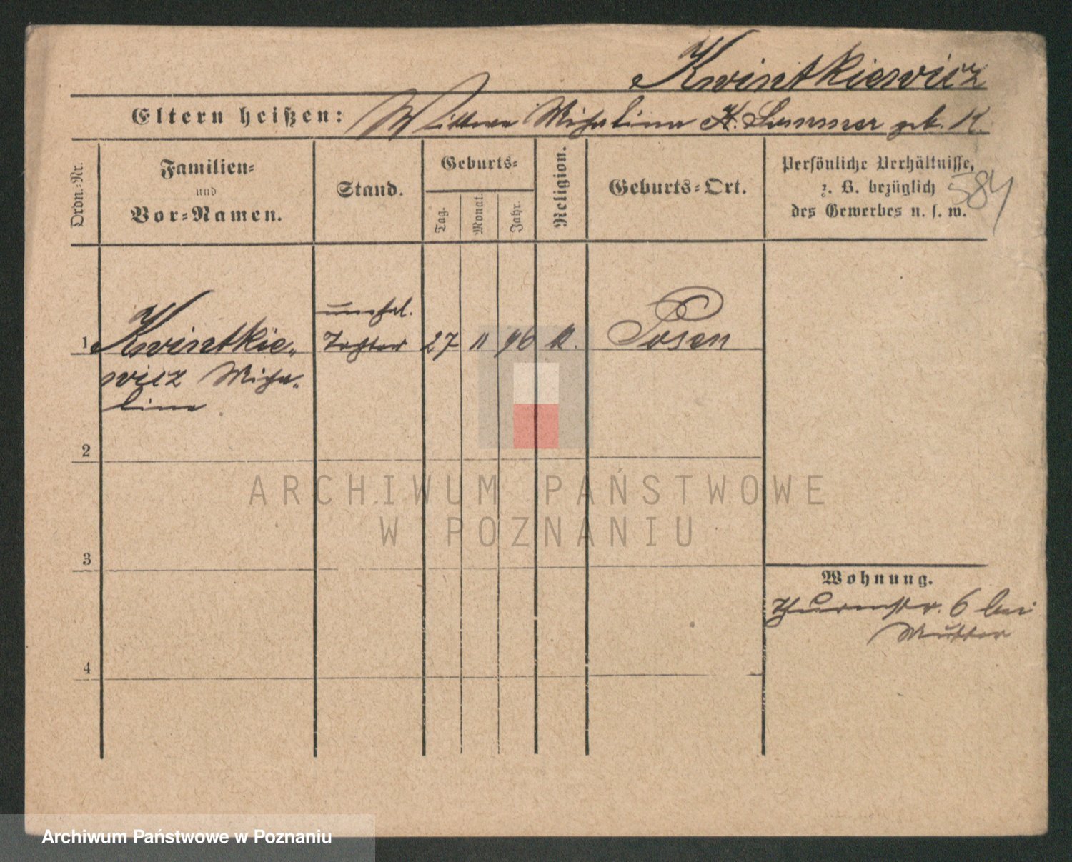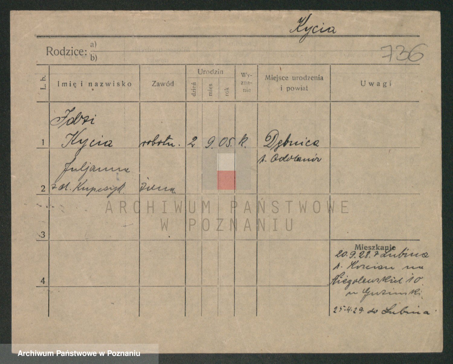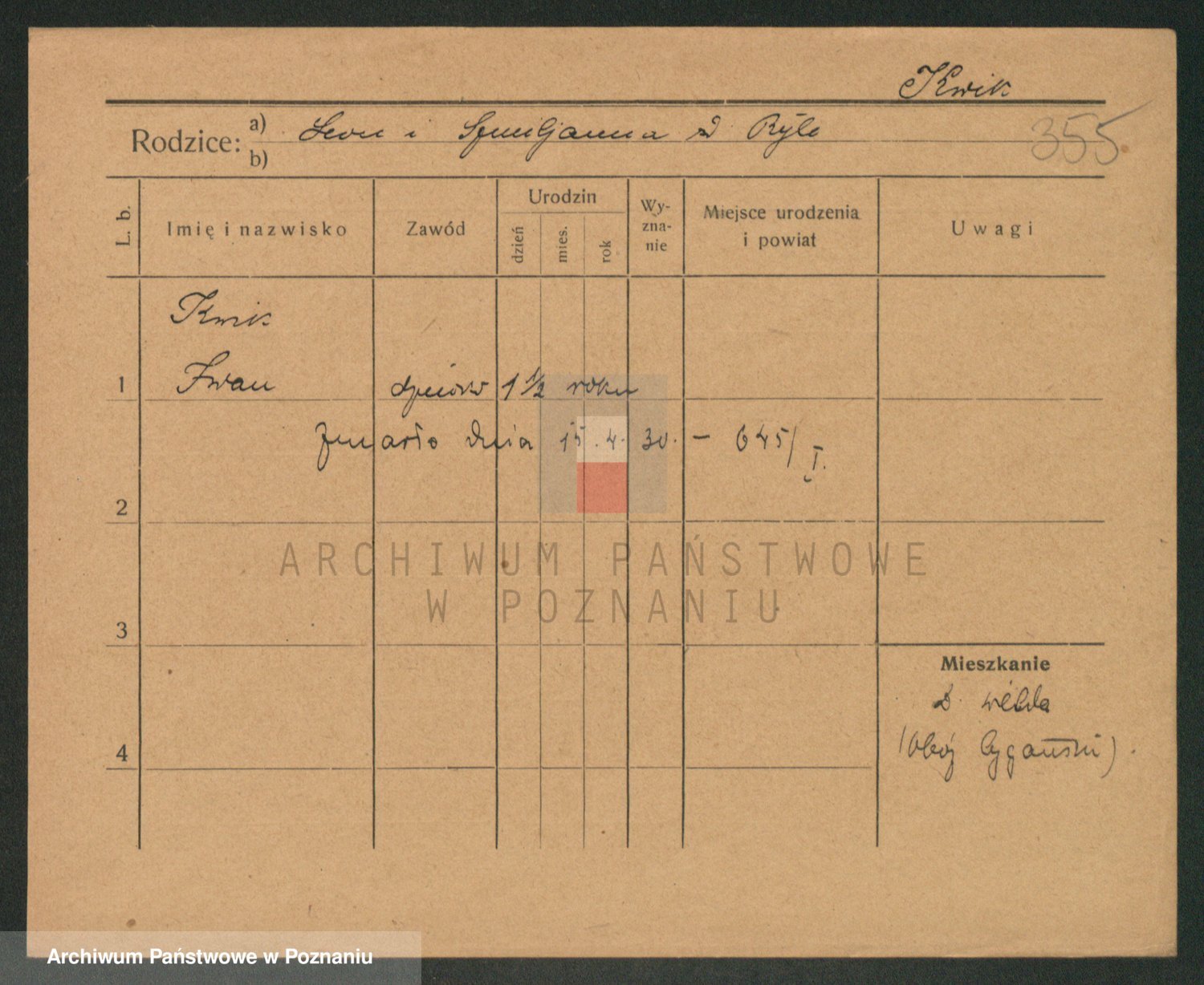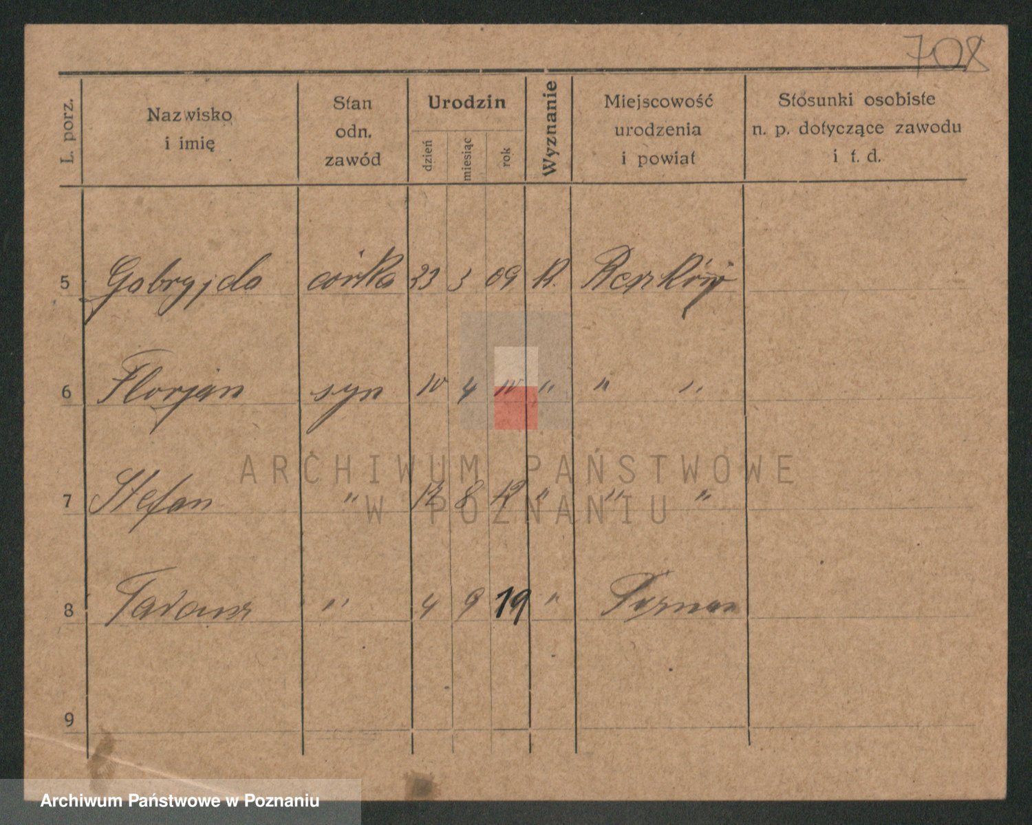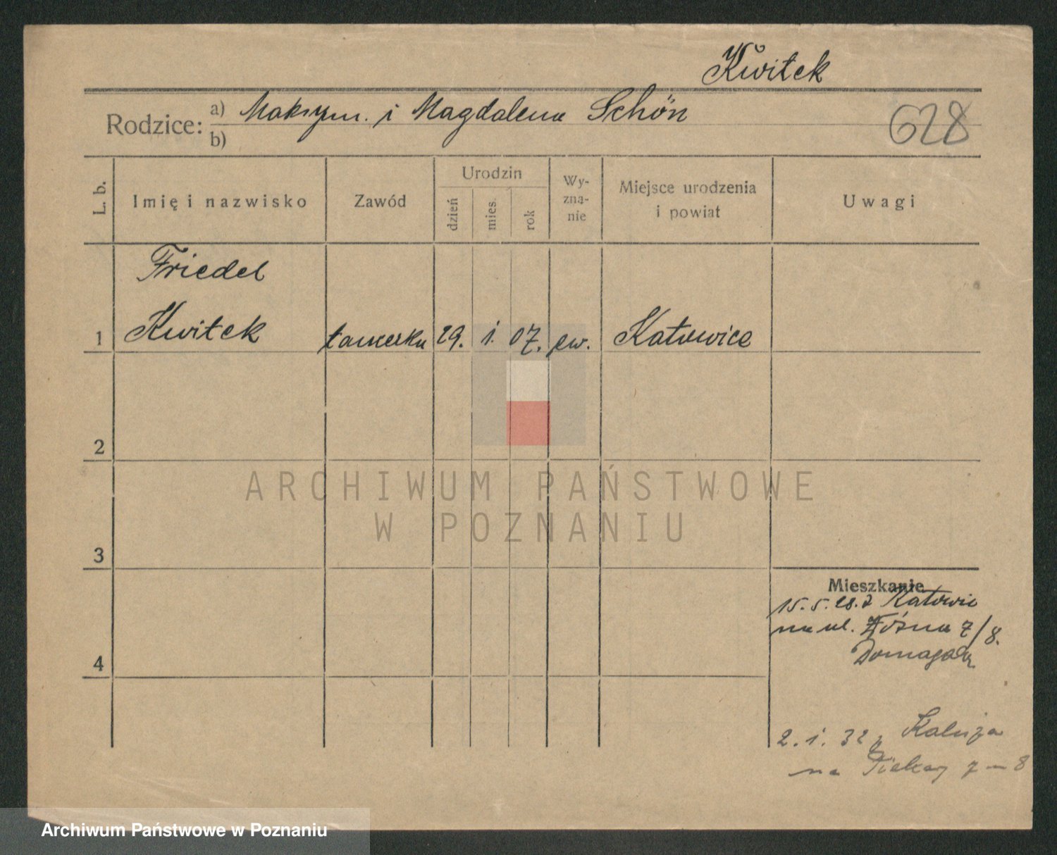Podgląd karty osobowej dostępny jest po kliknięciu na nazwisko lub ikonkę karty. Można dokonywać powiększenia (ikony na górze) lub przechodzić między kolejnymi skanami (strzałki po bokach).