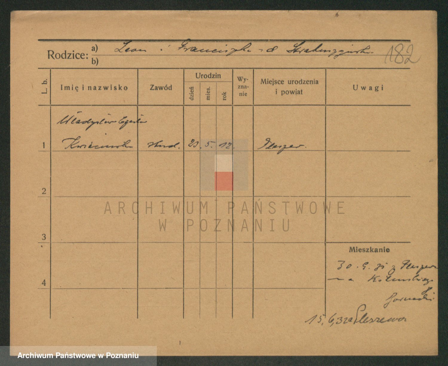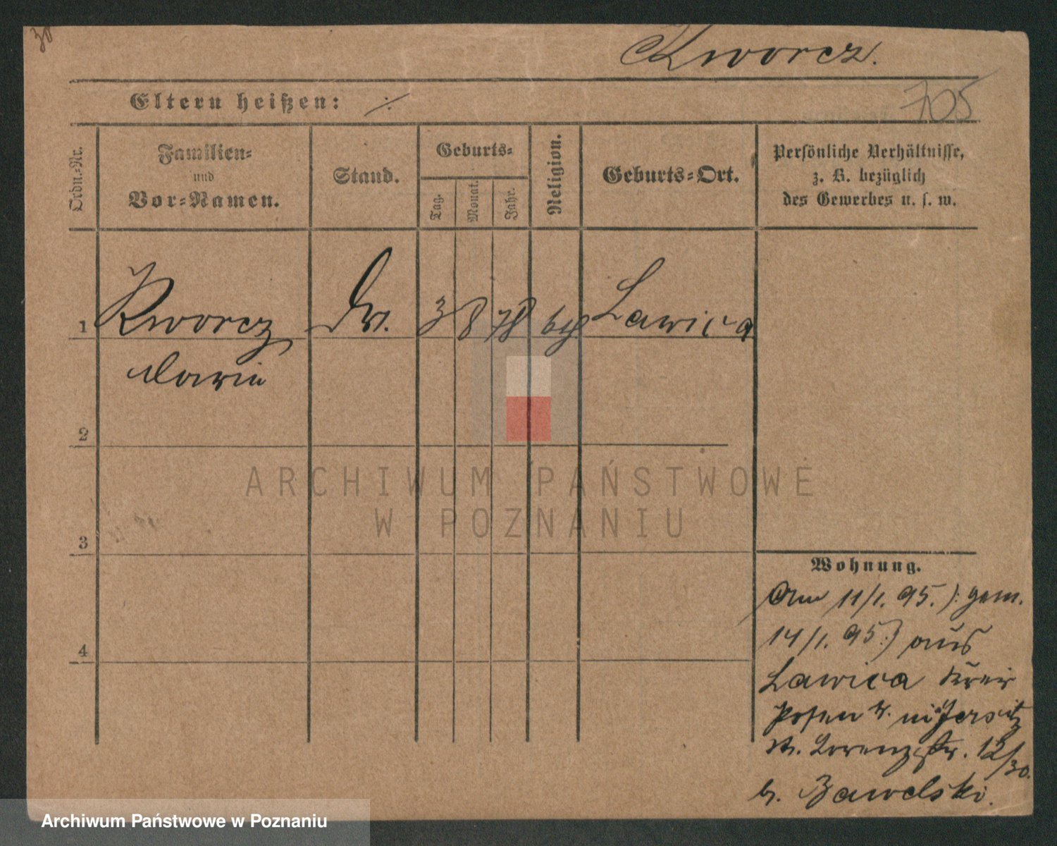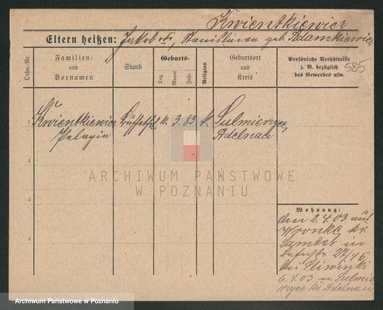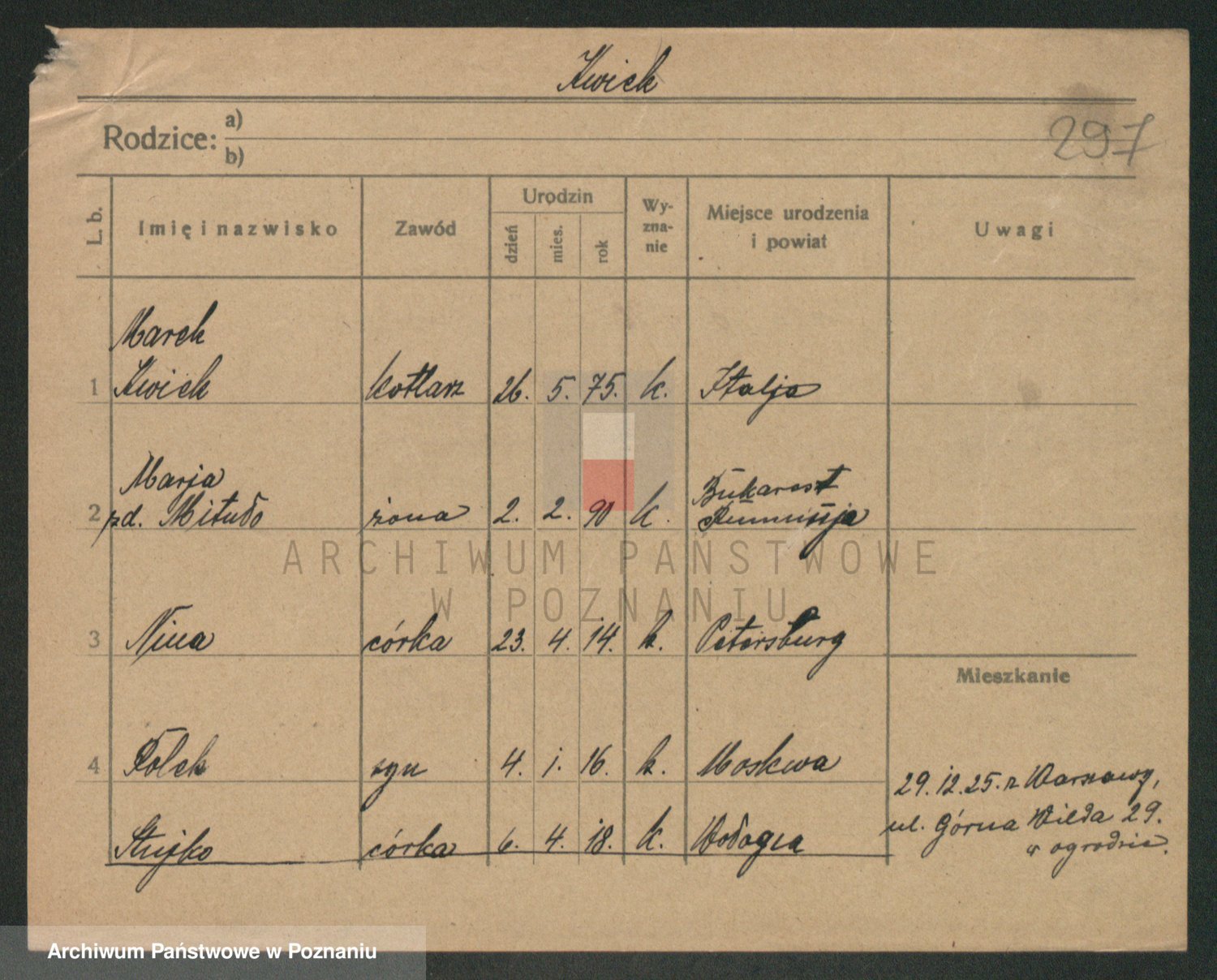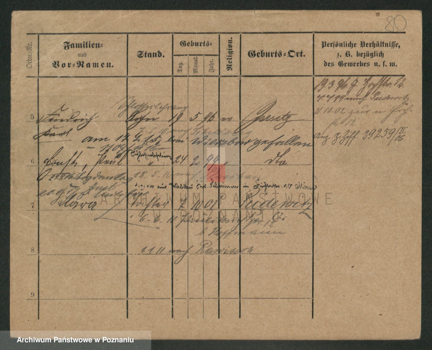 Podgląd karty osobowej dostępny jest po kliknięciu na nazwisko lub ikonkę karty. Można dokonywać powiększenia (ikony na górze) lub przechodzić między kolejnymi skanami (strzałki po bokach).