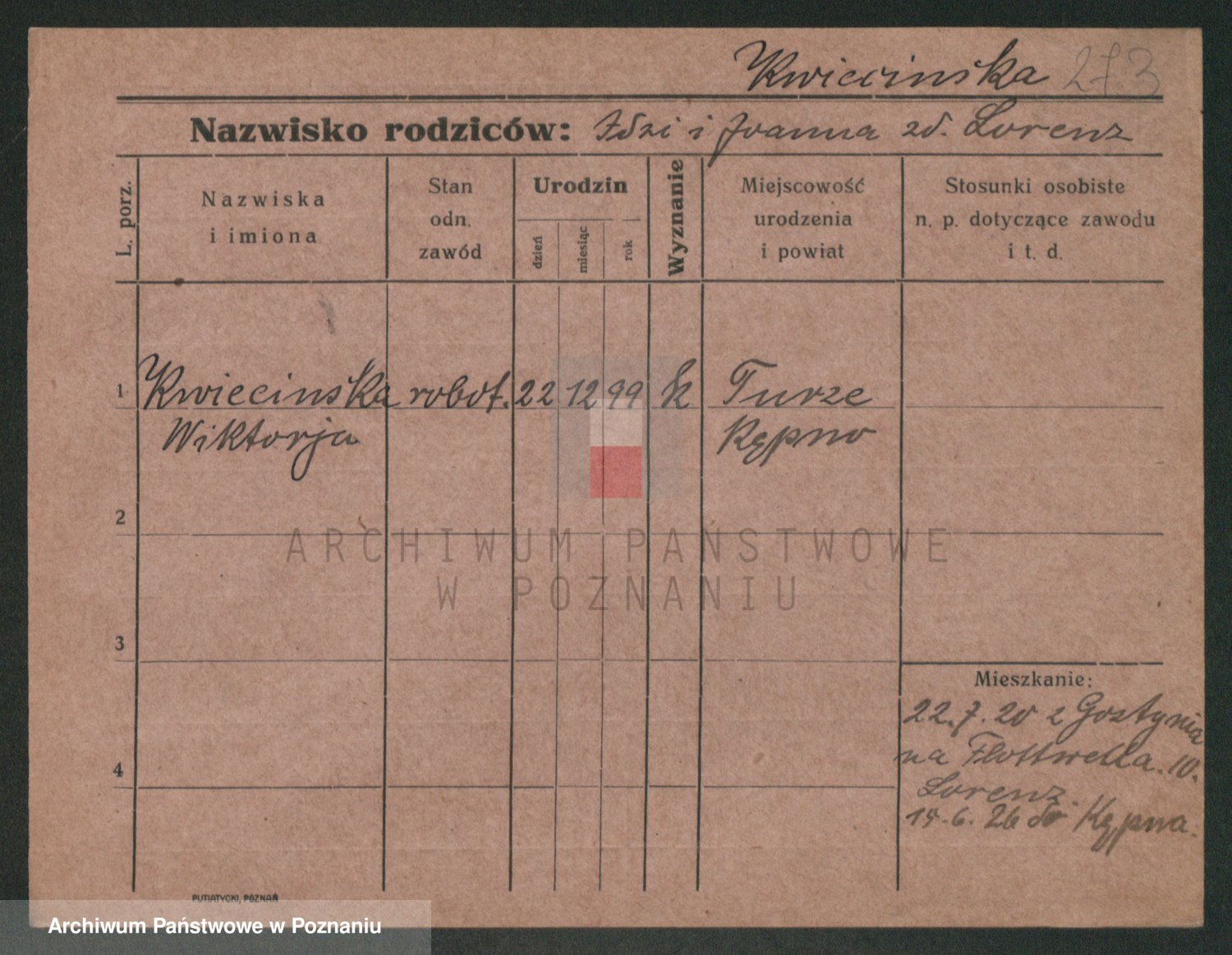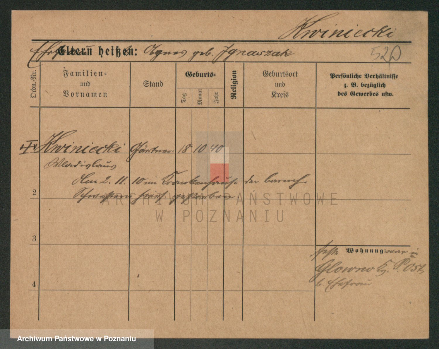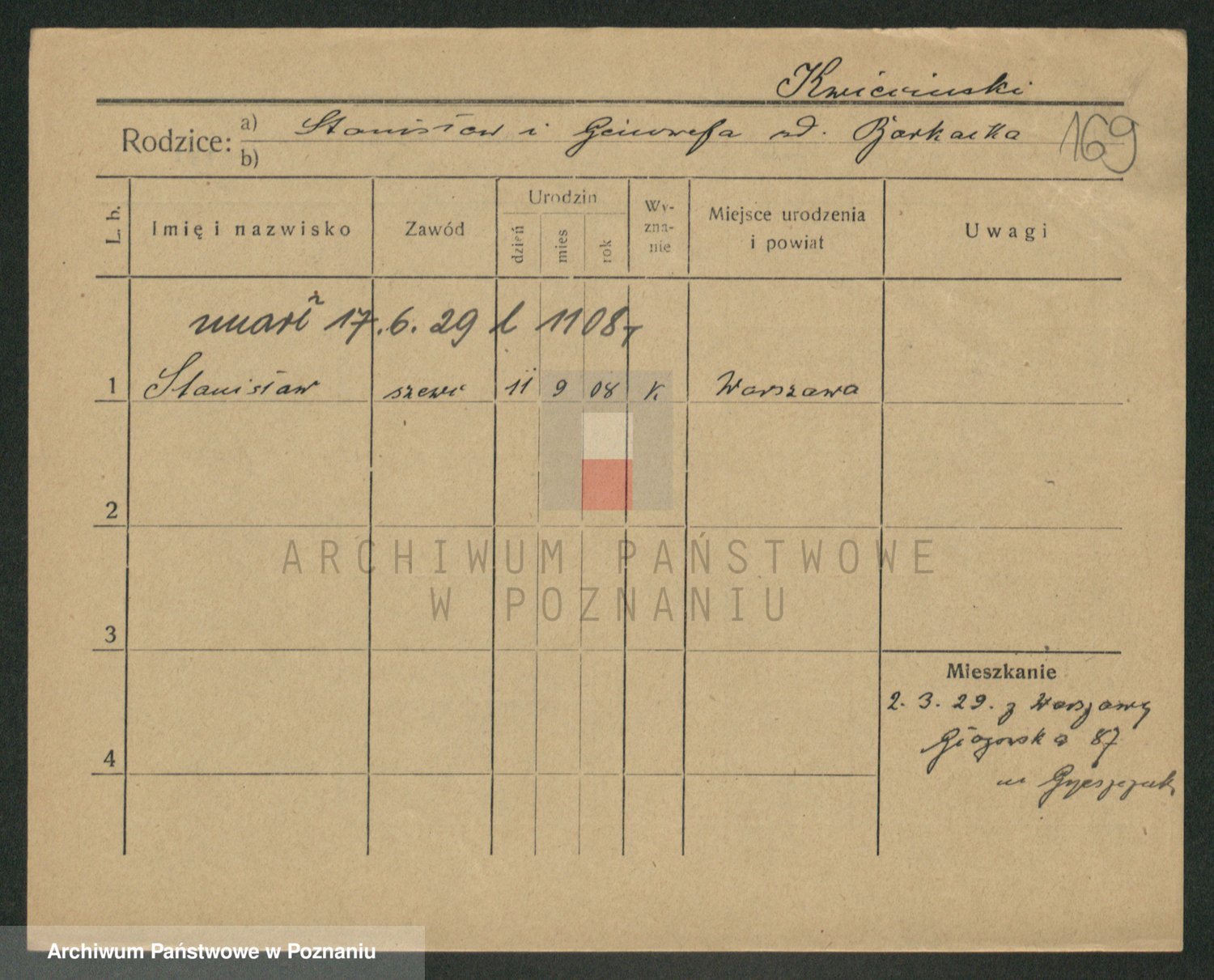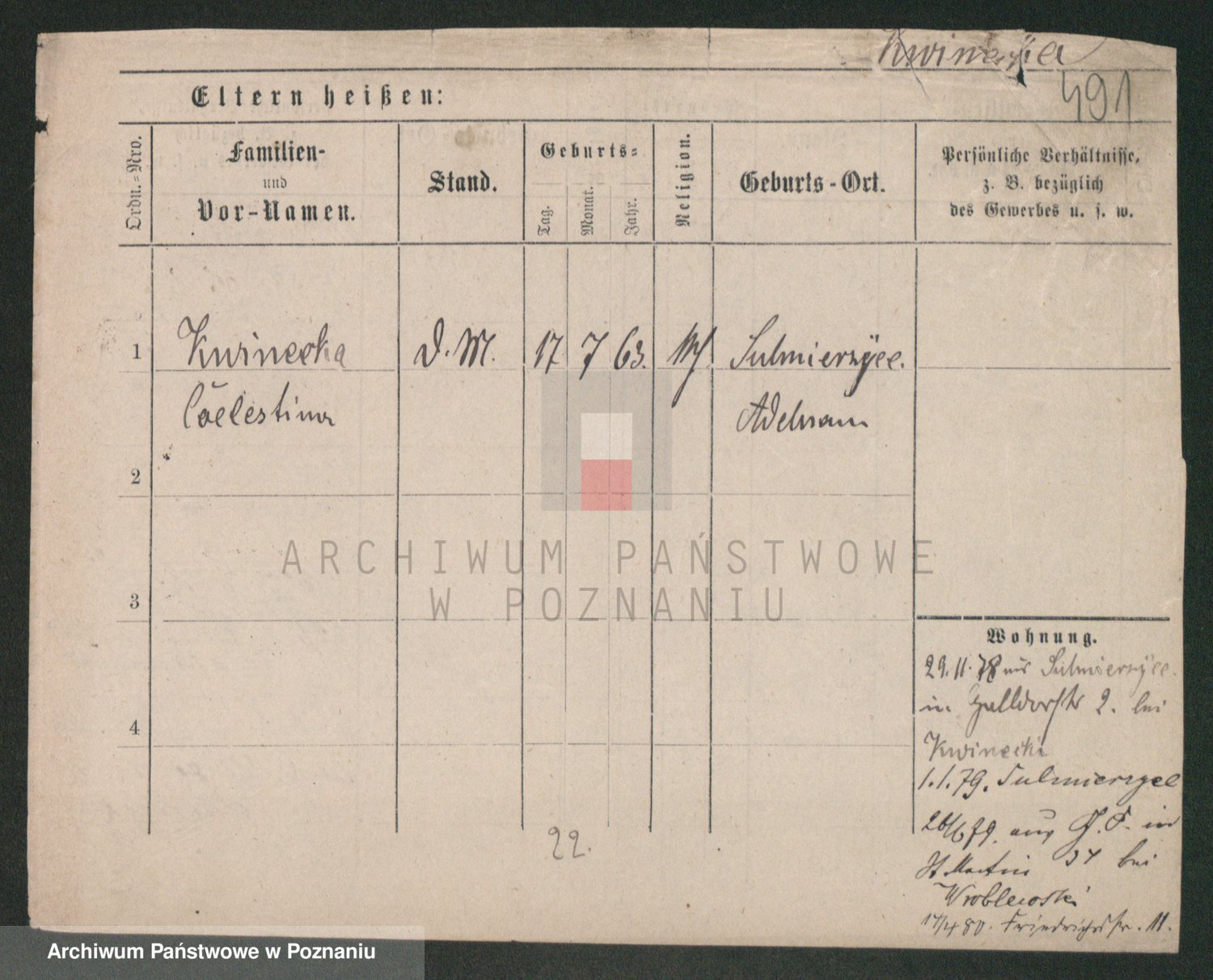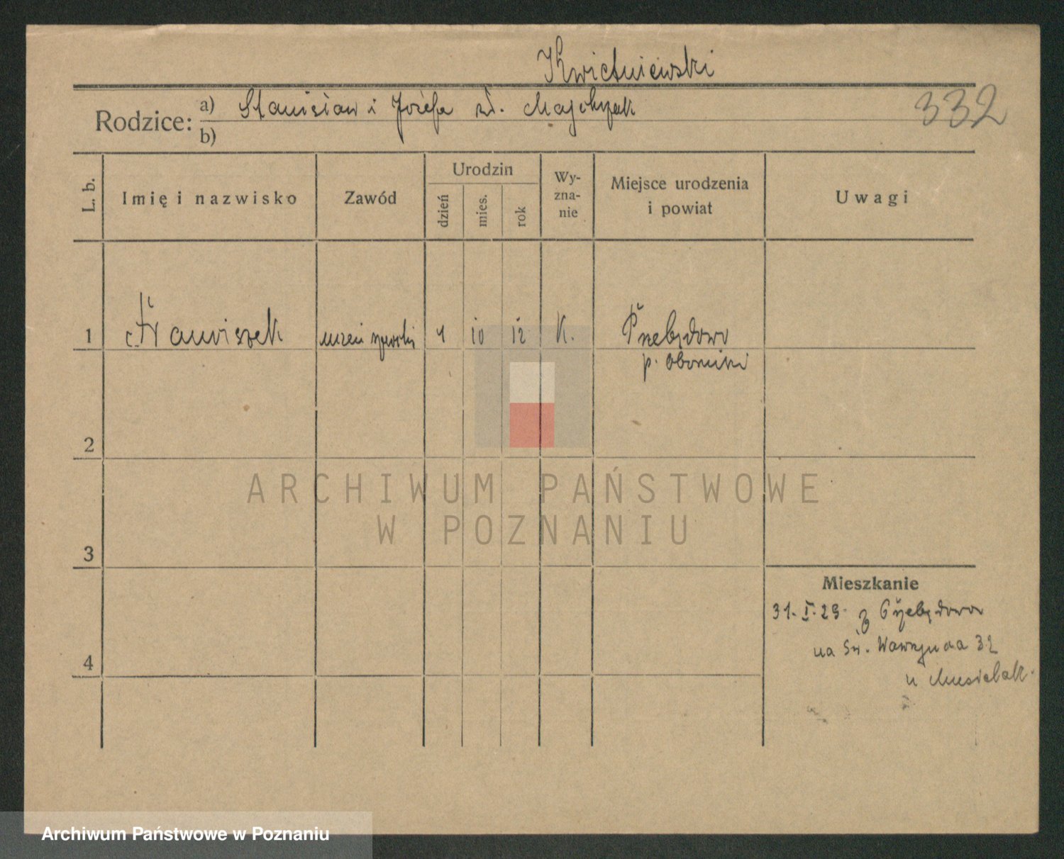 Podgląd karty osobowej dostępny jest po kliknięciu na nazwisko lub ikonkę karty. Można dokonywać powiększenia (ikony na górze) lub przechodzić między kolejnymi skanami (strzałki po bokach).