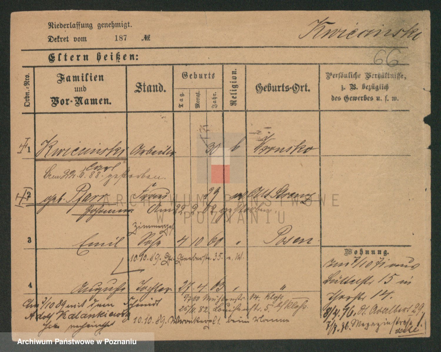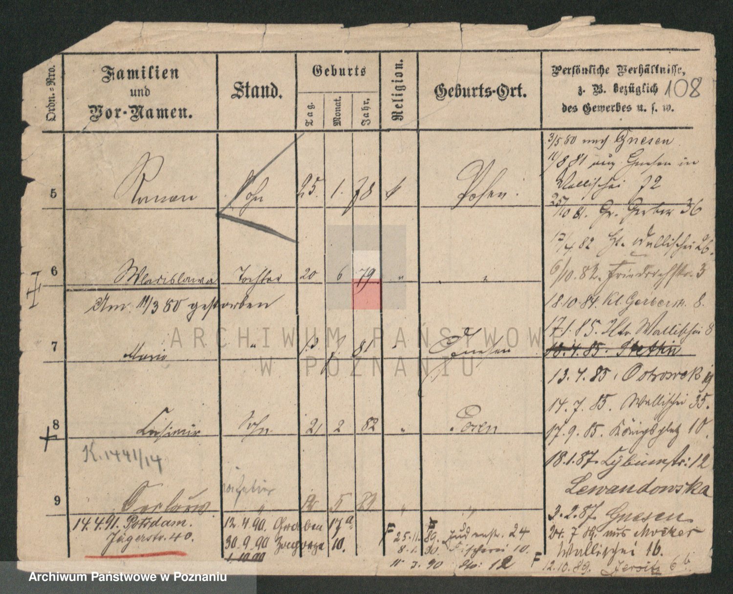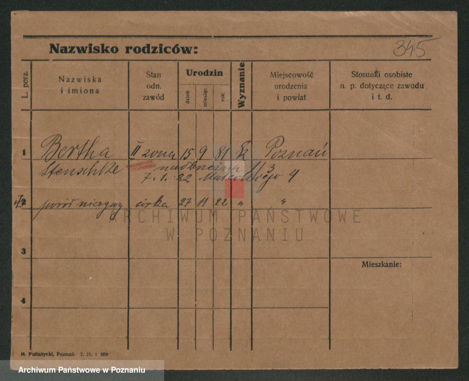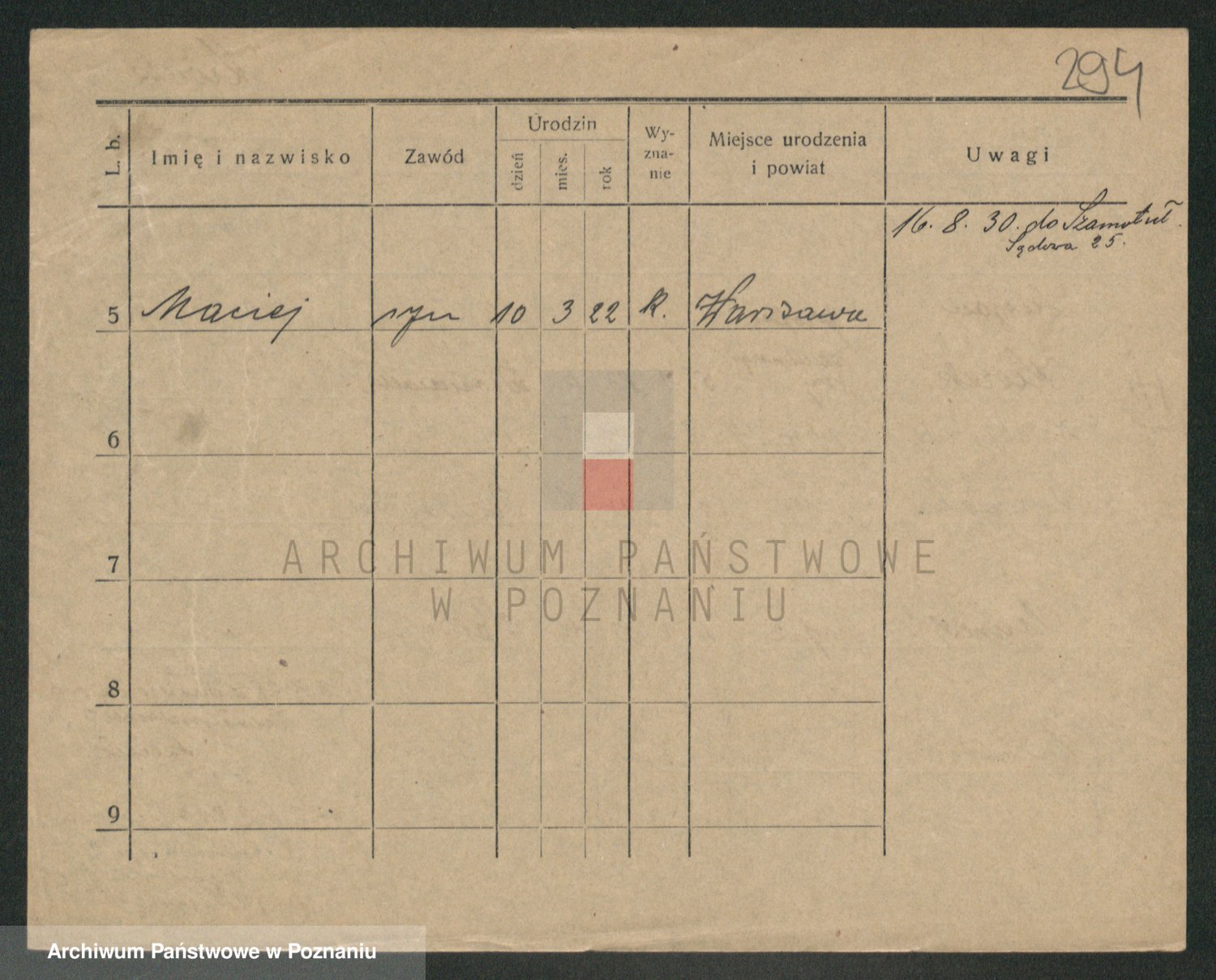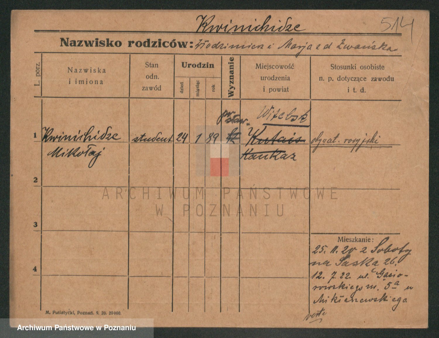 Podgląd karty osobowej dostępny jest po kliknięciu na nazwisko lub ikonkę karty. Można dokonywać powiększenia (ikony na górze) lub przechodzić między kolejnymi skanami (strzałki po bokach).