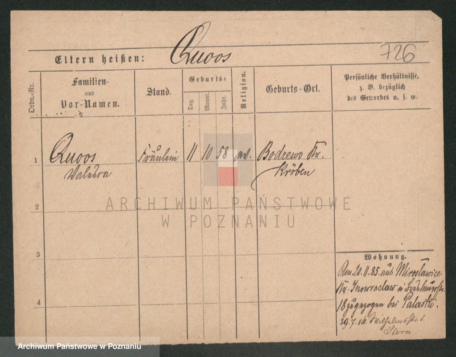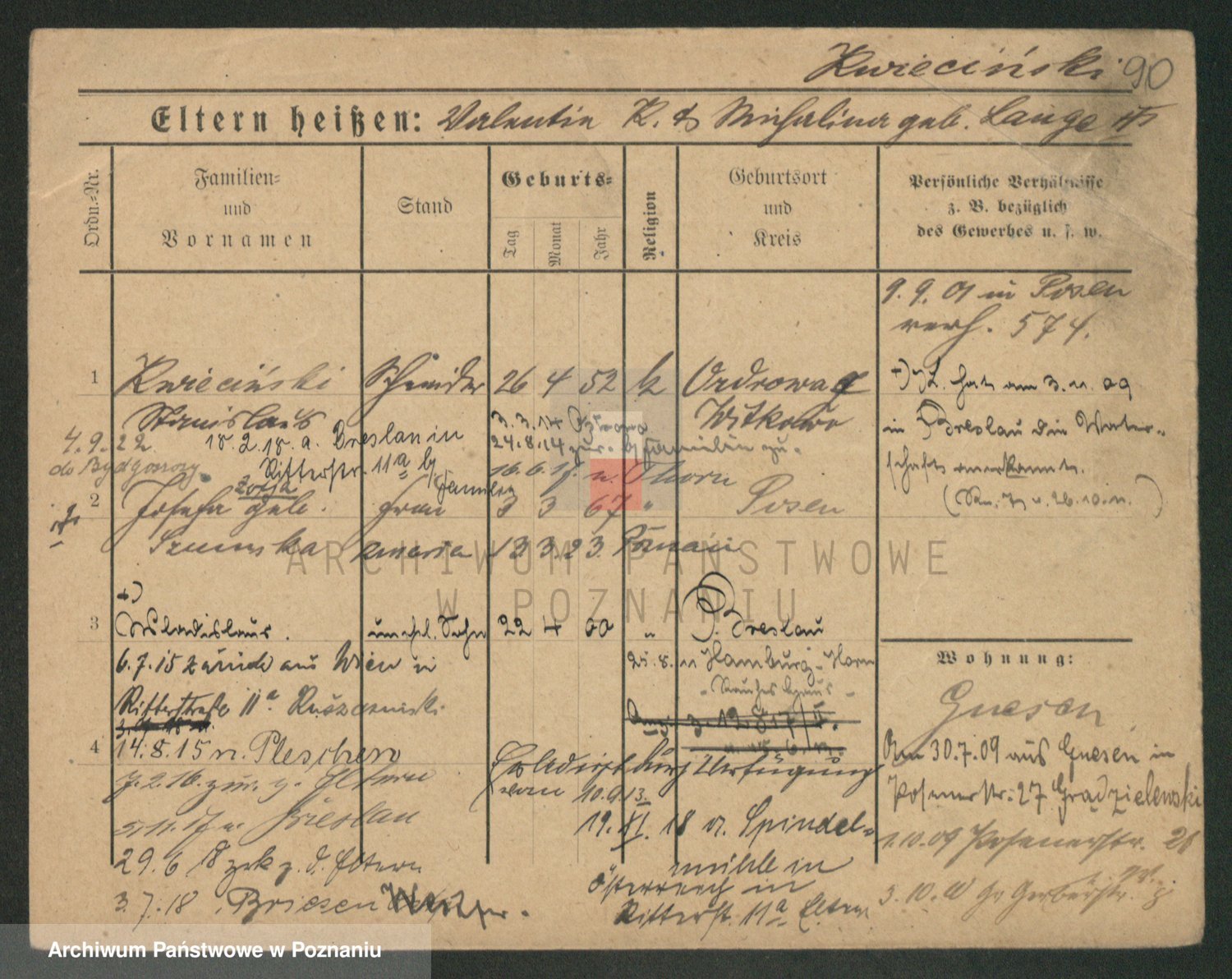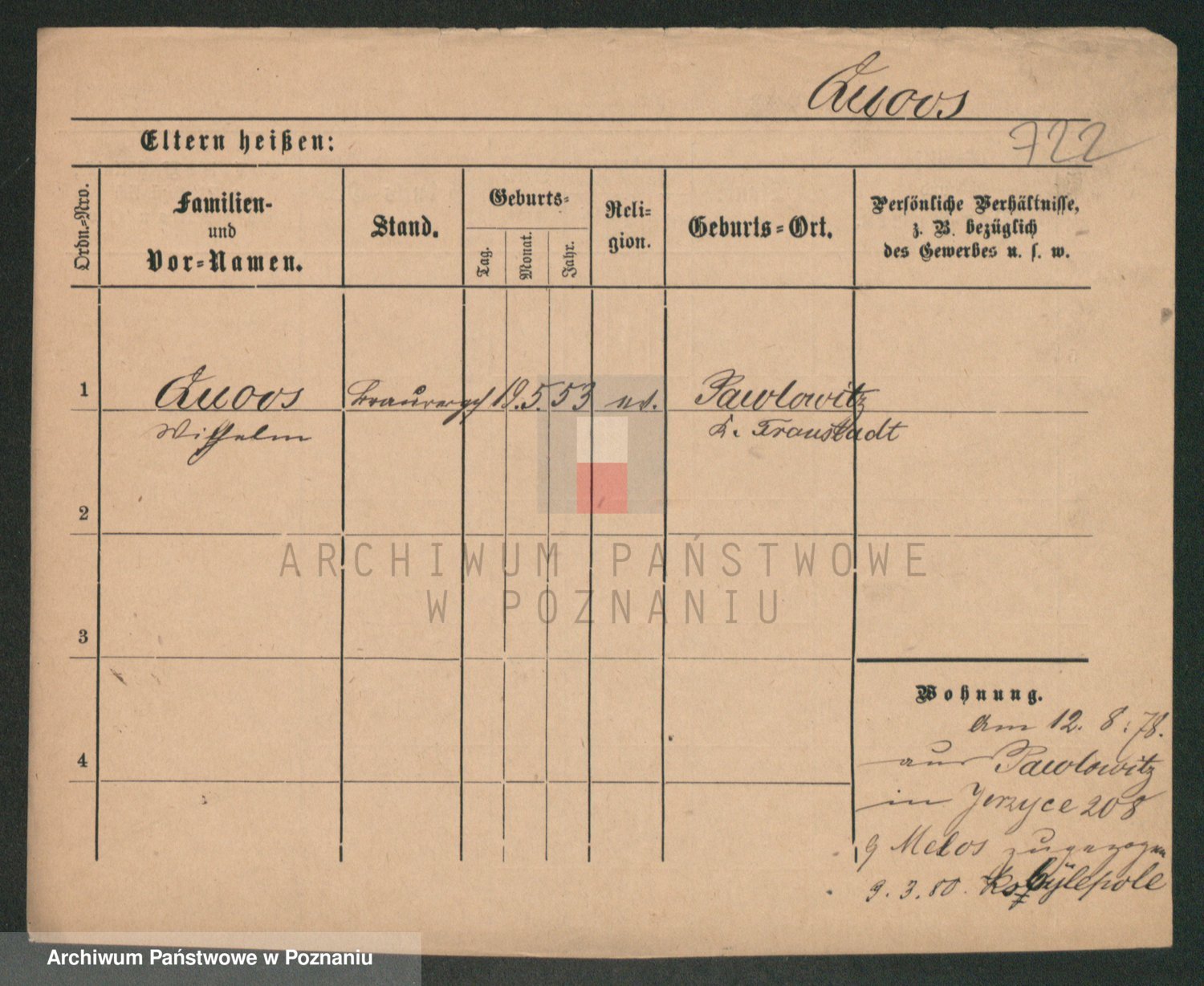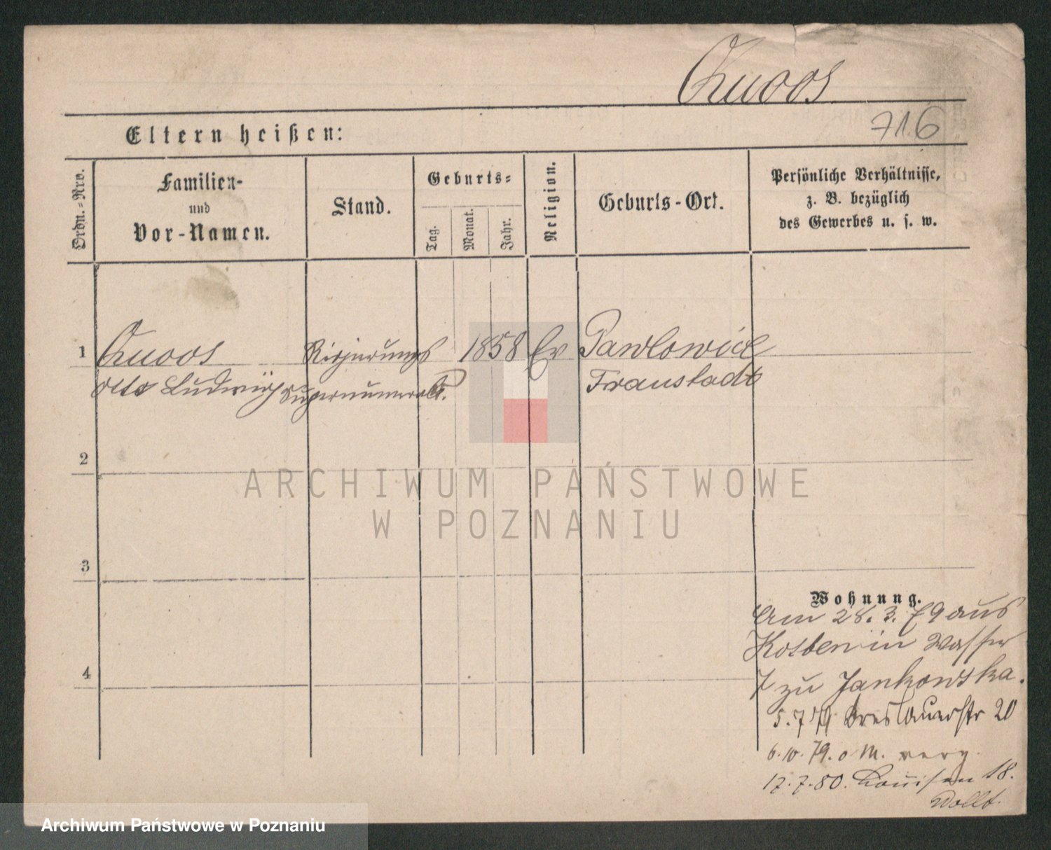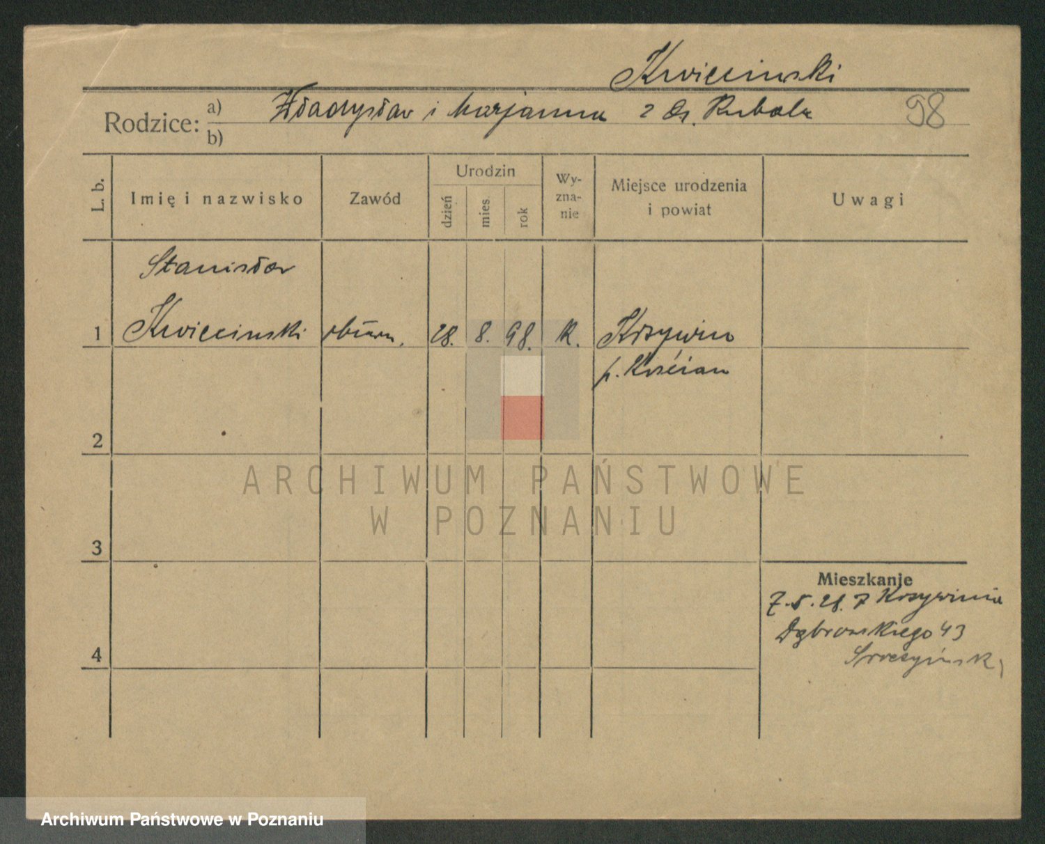 Podgląd karty osobowej dostępny jest po kliknięciu na nazwisko lub ikonkę karty. Można dokonywać powiększenia (ikony na górze) lub przechodzić między kolejnymi skanami (strzałki po bokach).