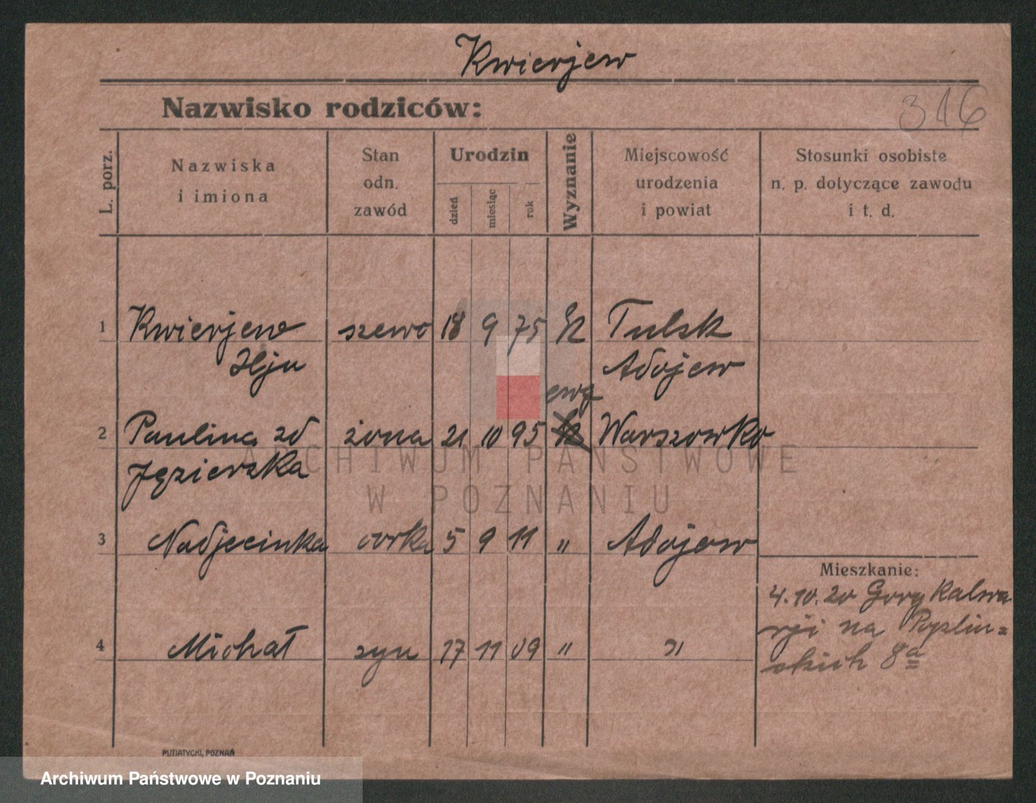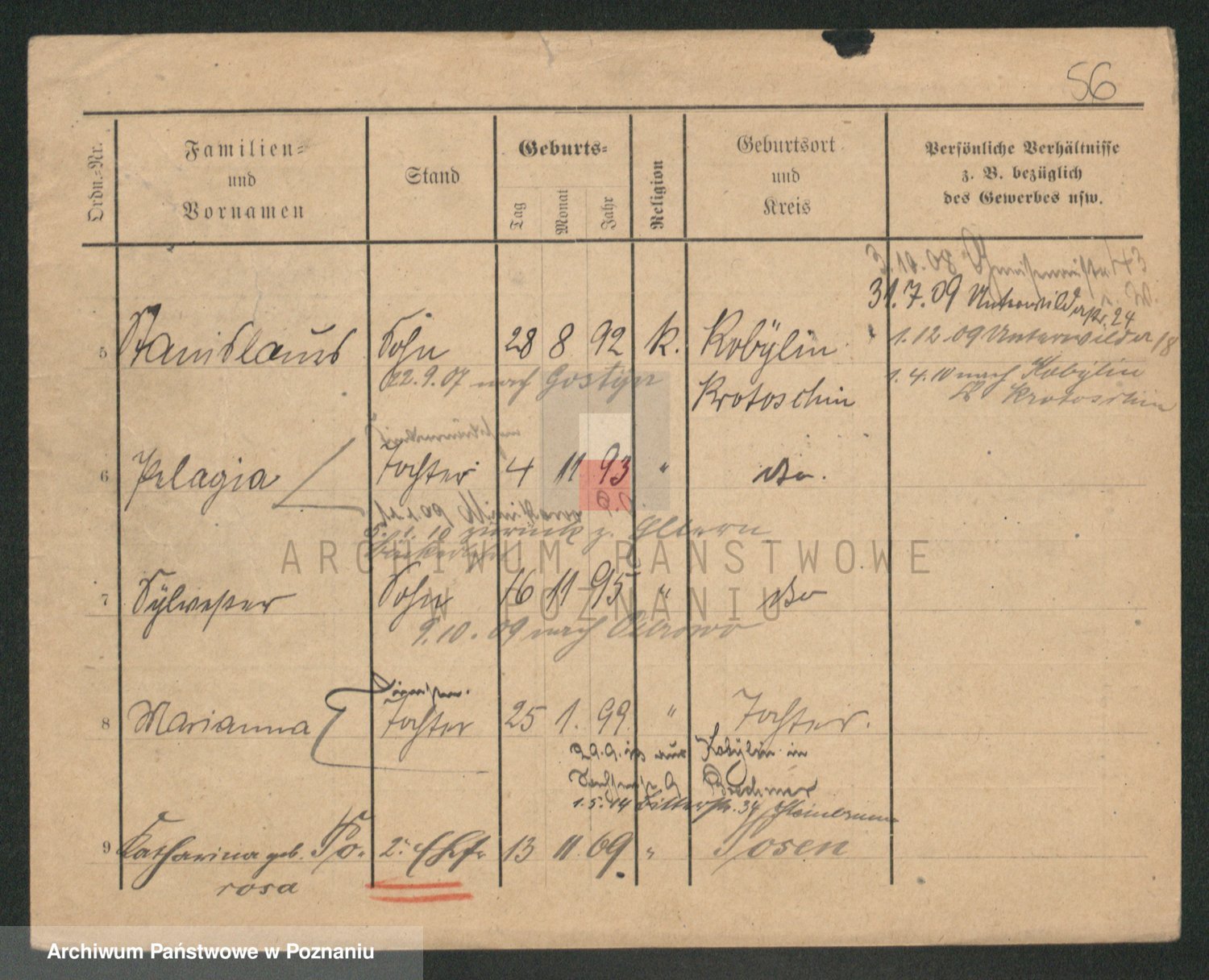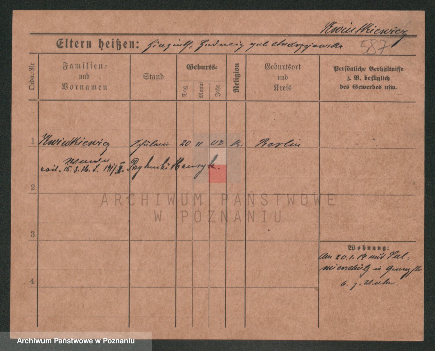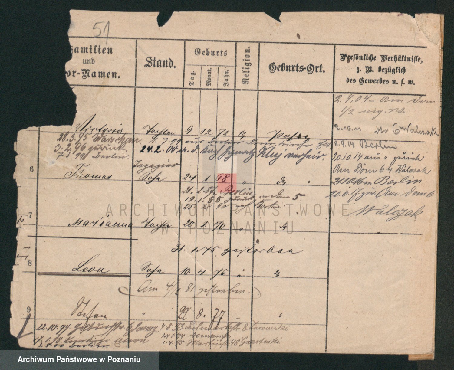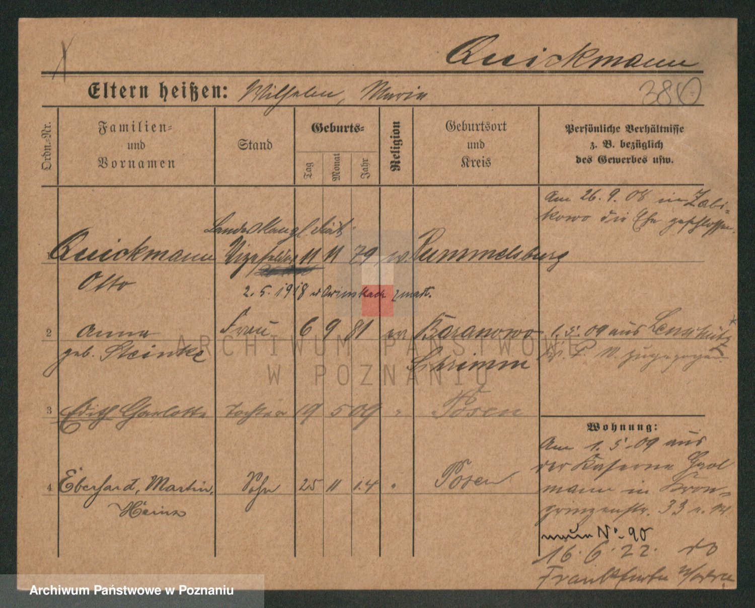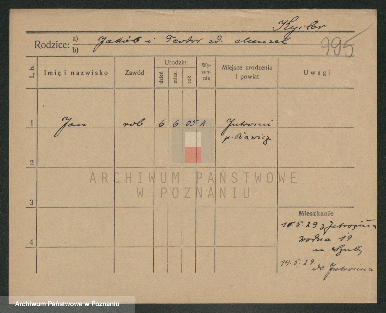 Podgląd karty osobowej dostępny jest po kliknięciu na nazwisko lub ikonkę karty. Można dokonywać powiększenia (ikony na górze) lub przechodzić między kolejnymi skanami (strzałki po bokach).